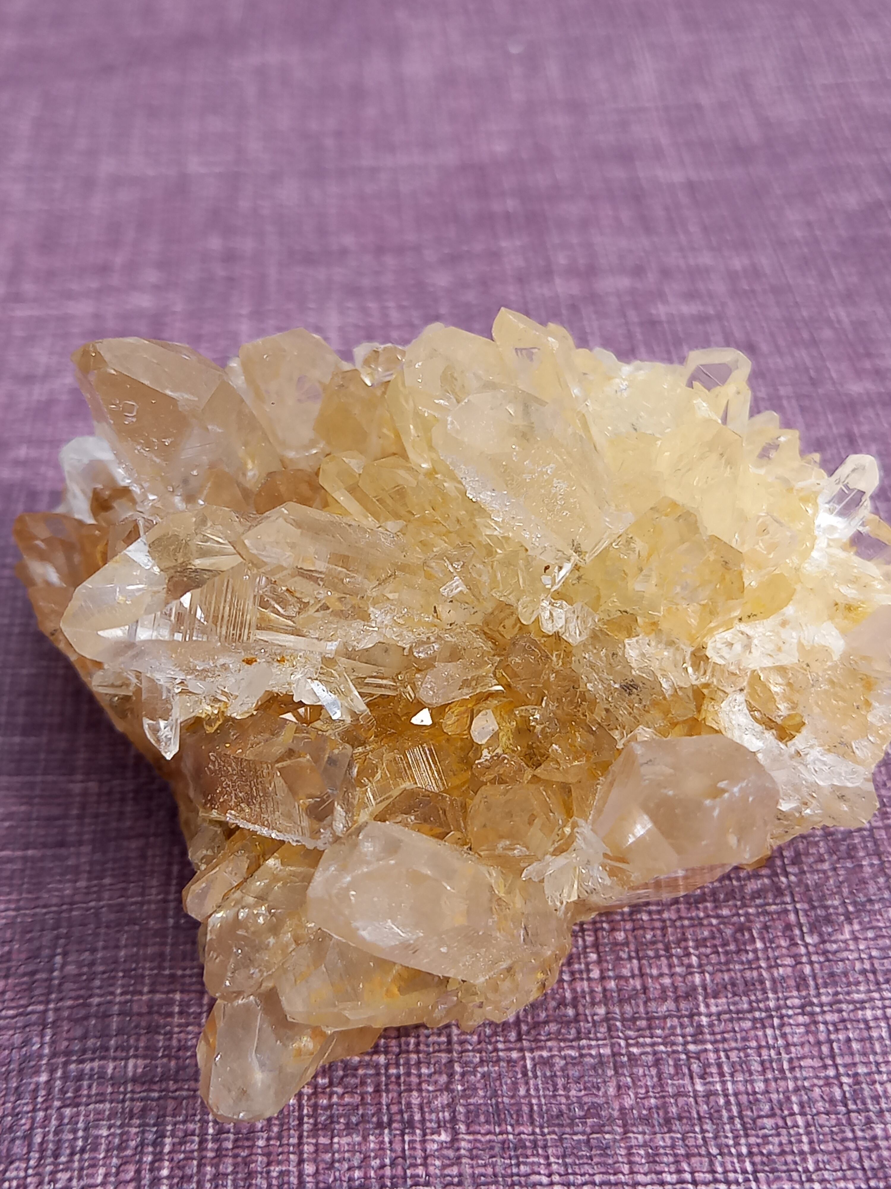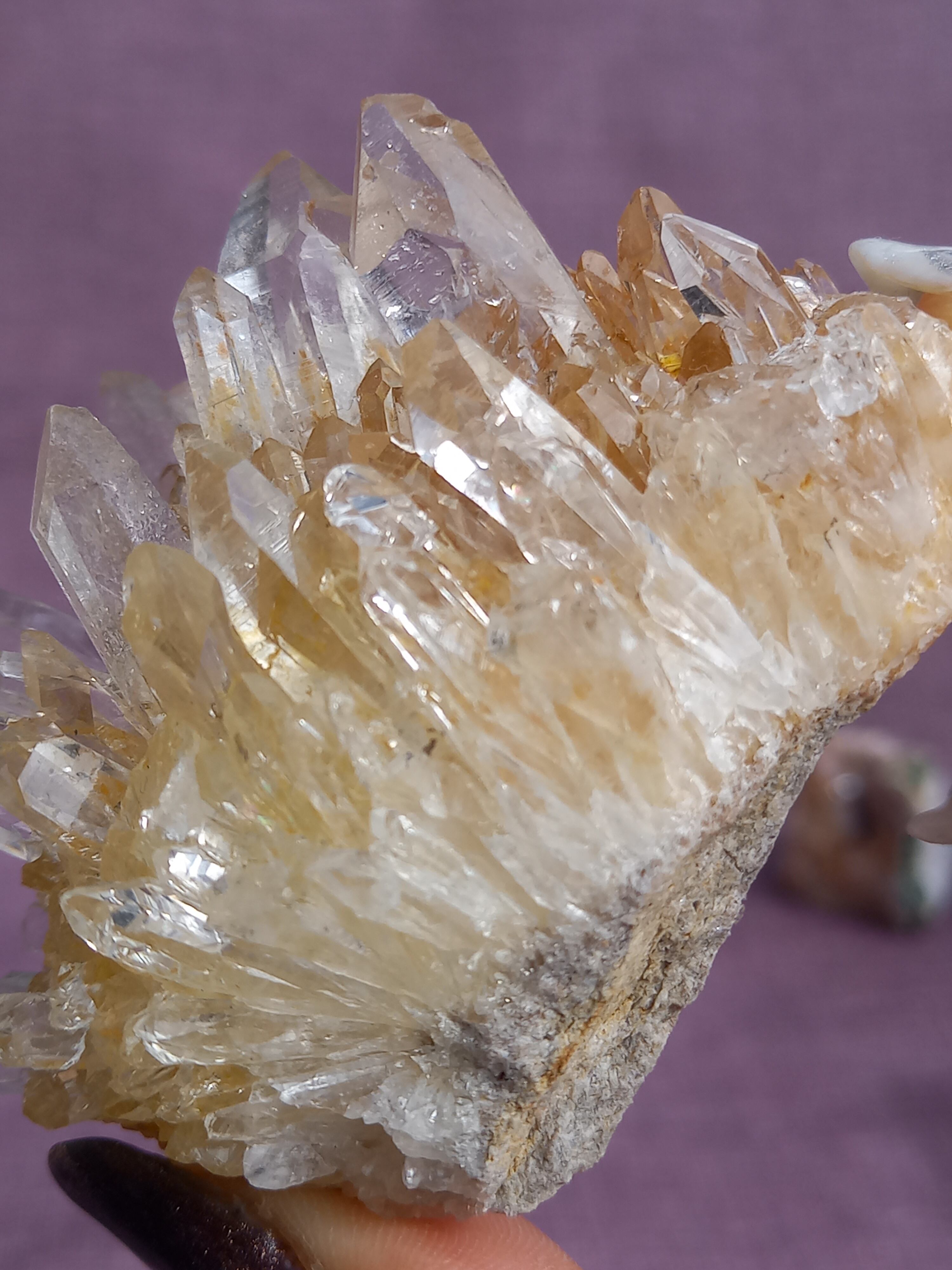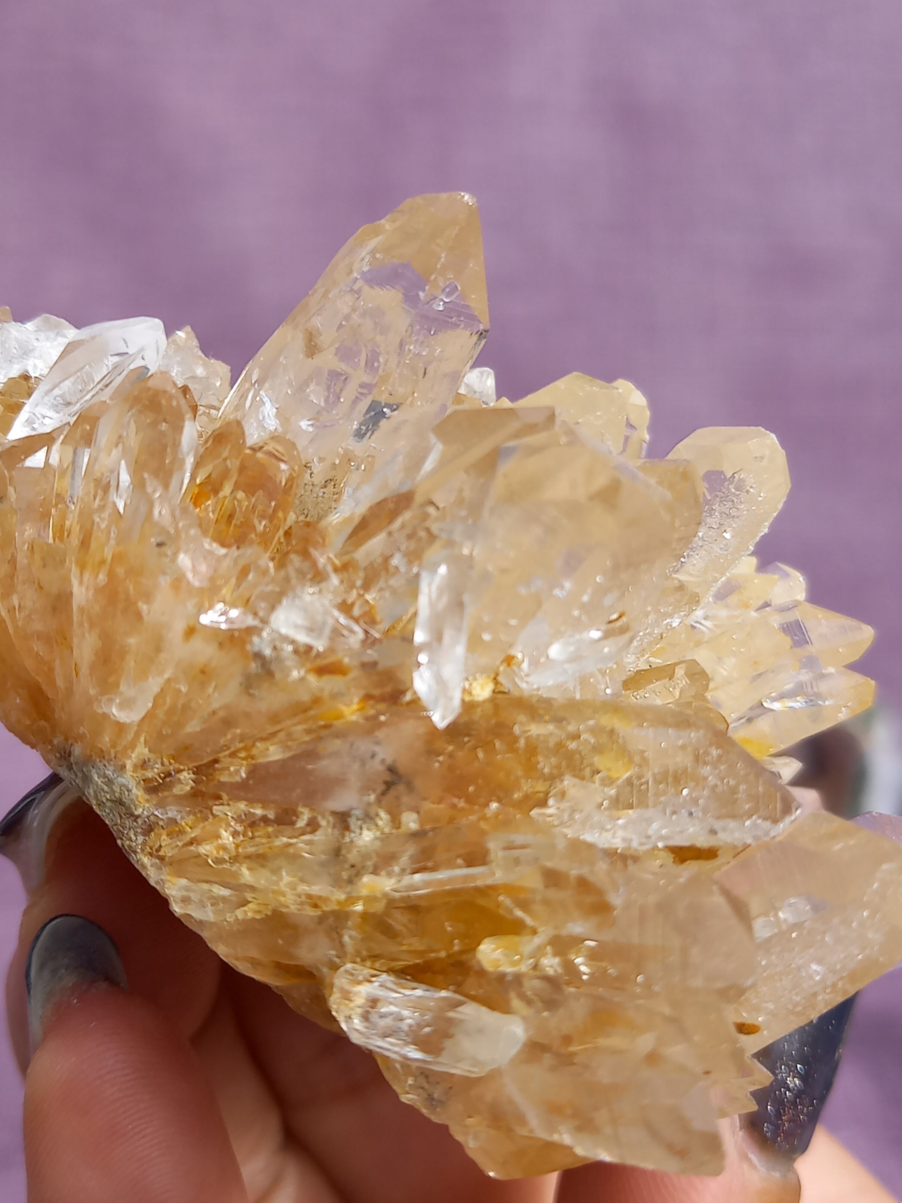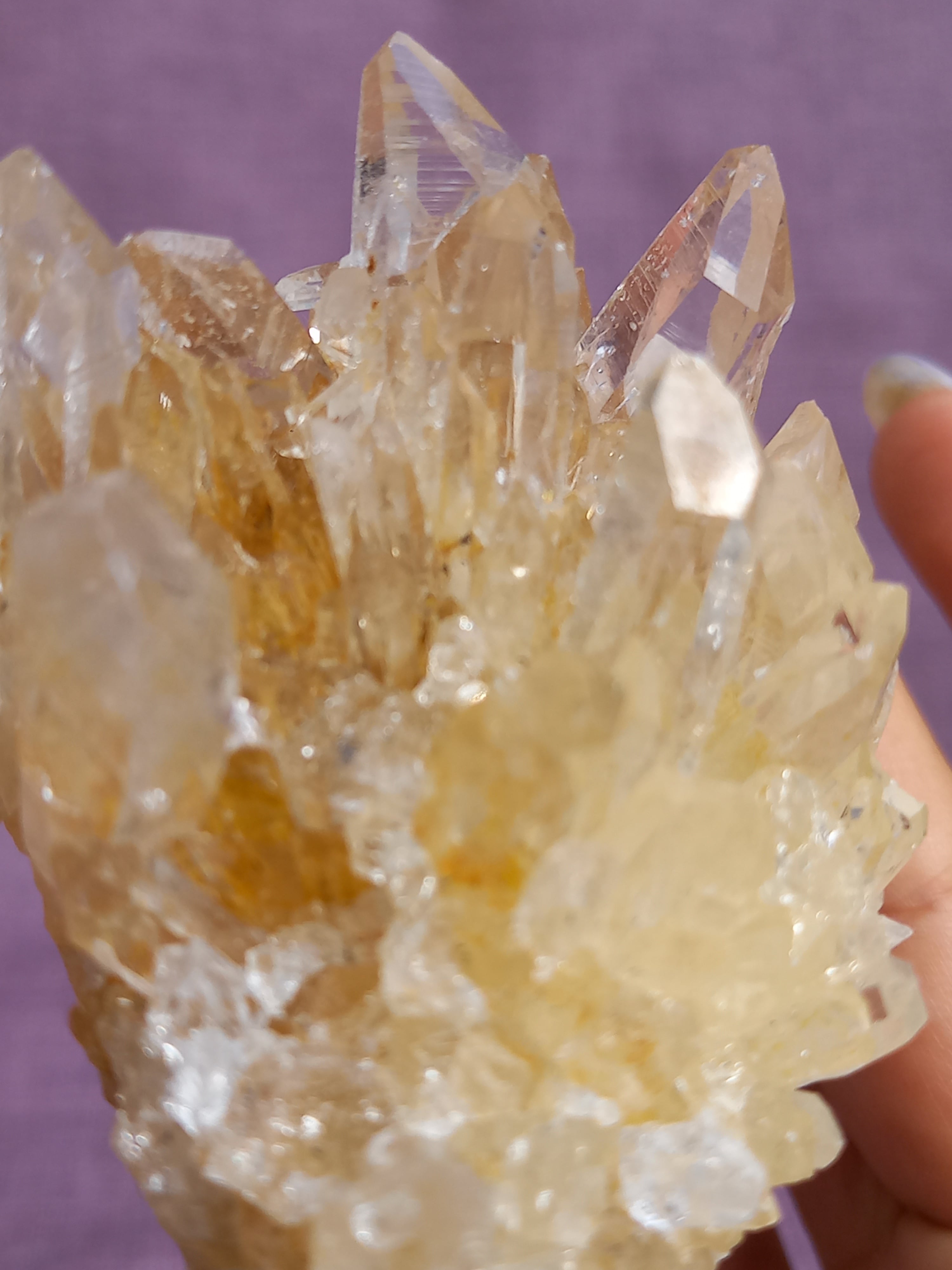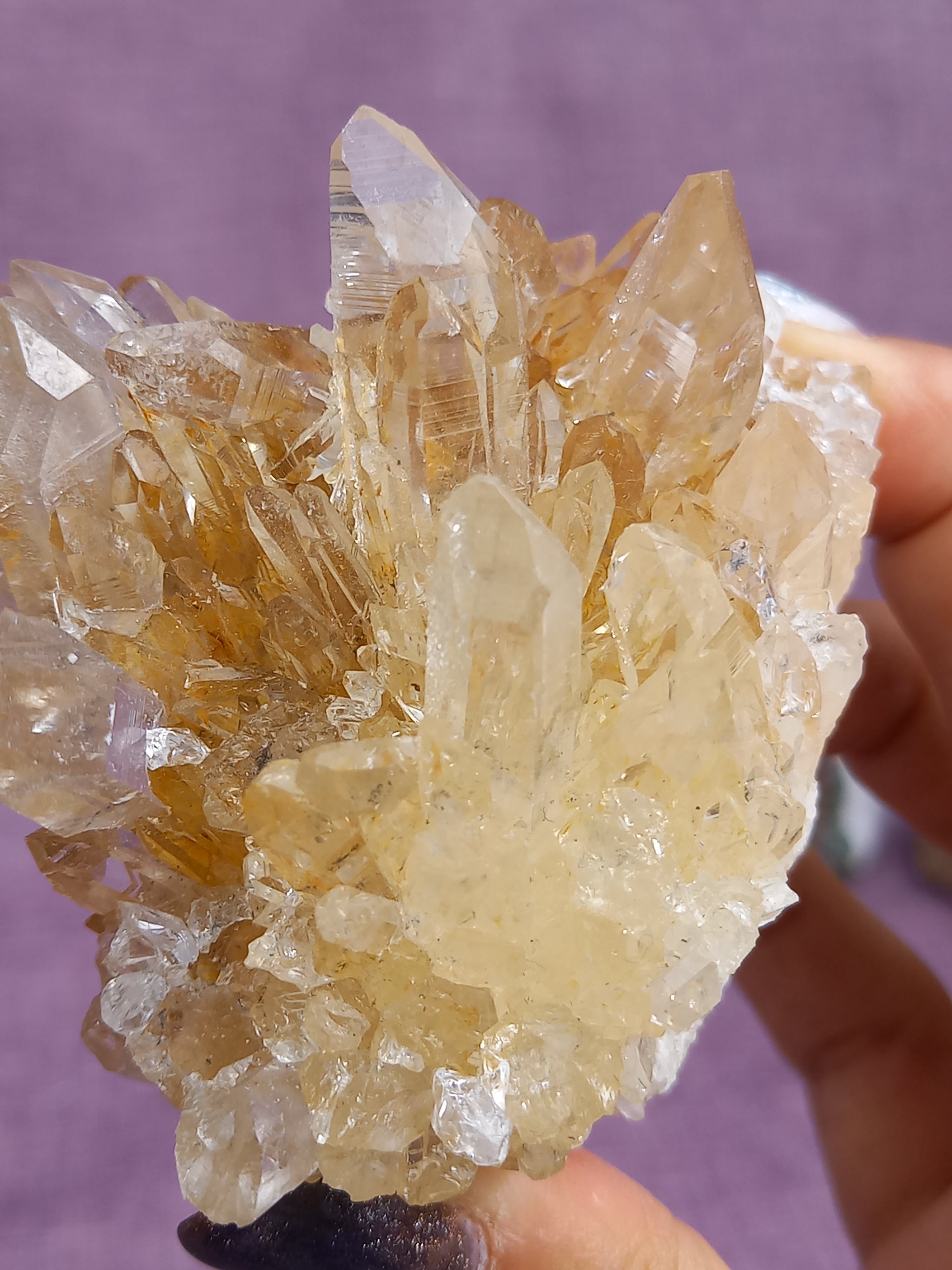 ライモナイトの影響で、ほんのり、はちみつカラーに色付いたクラスターです。