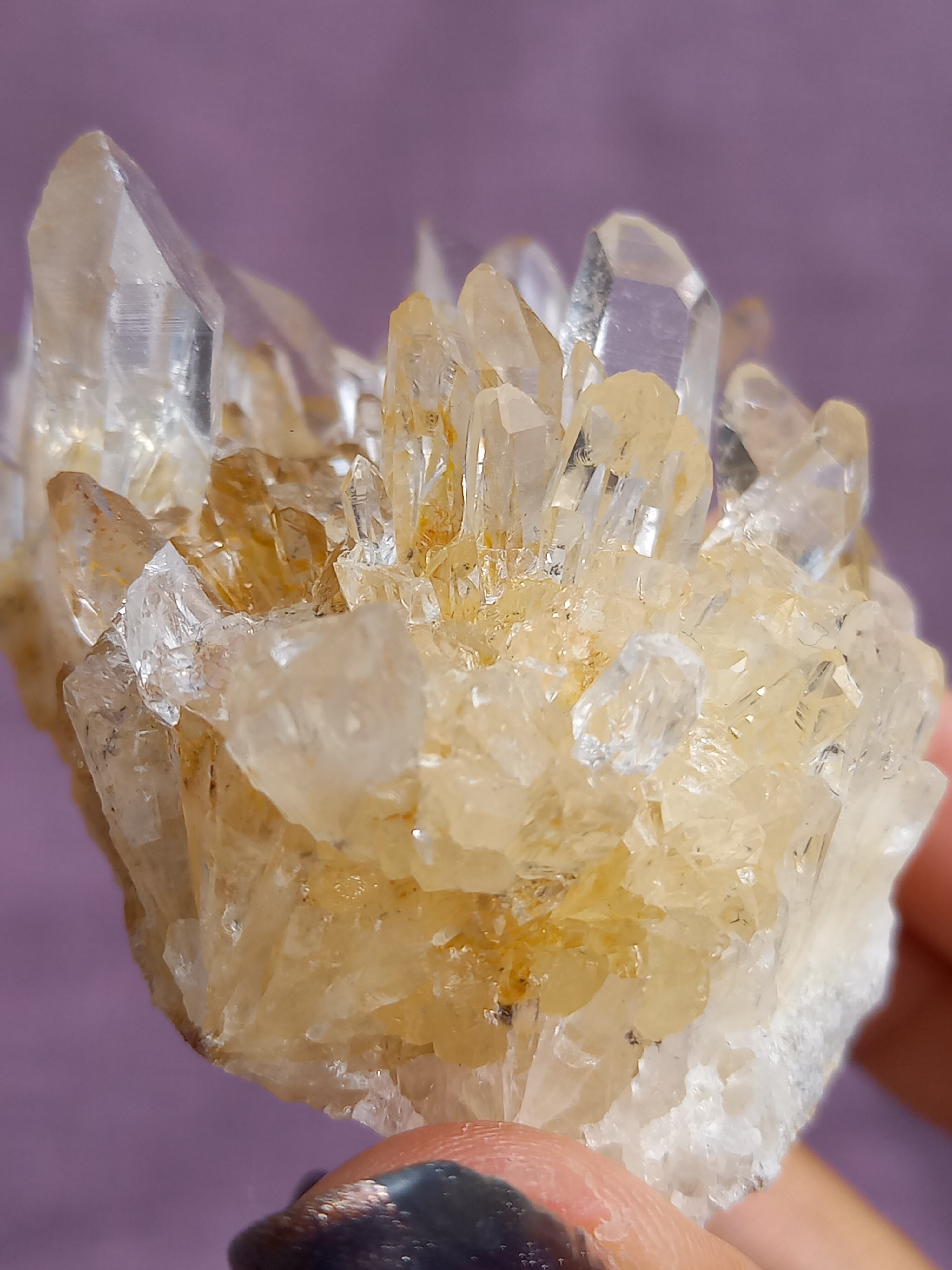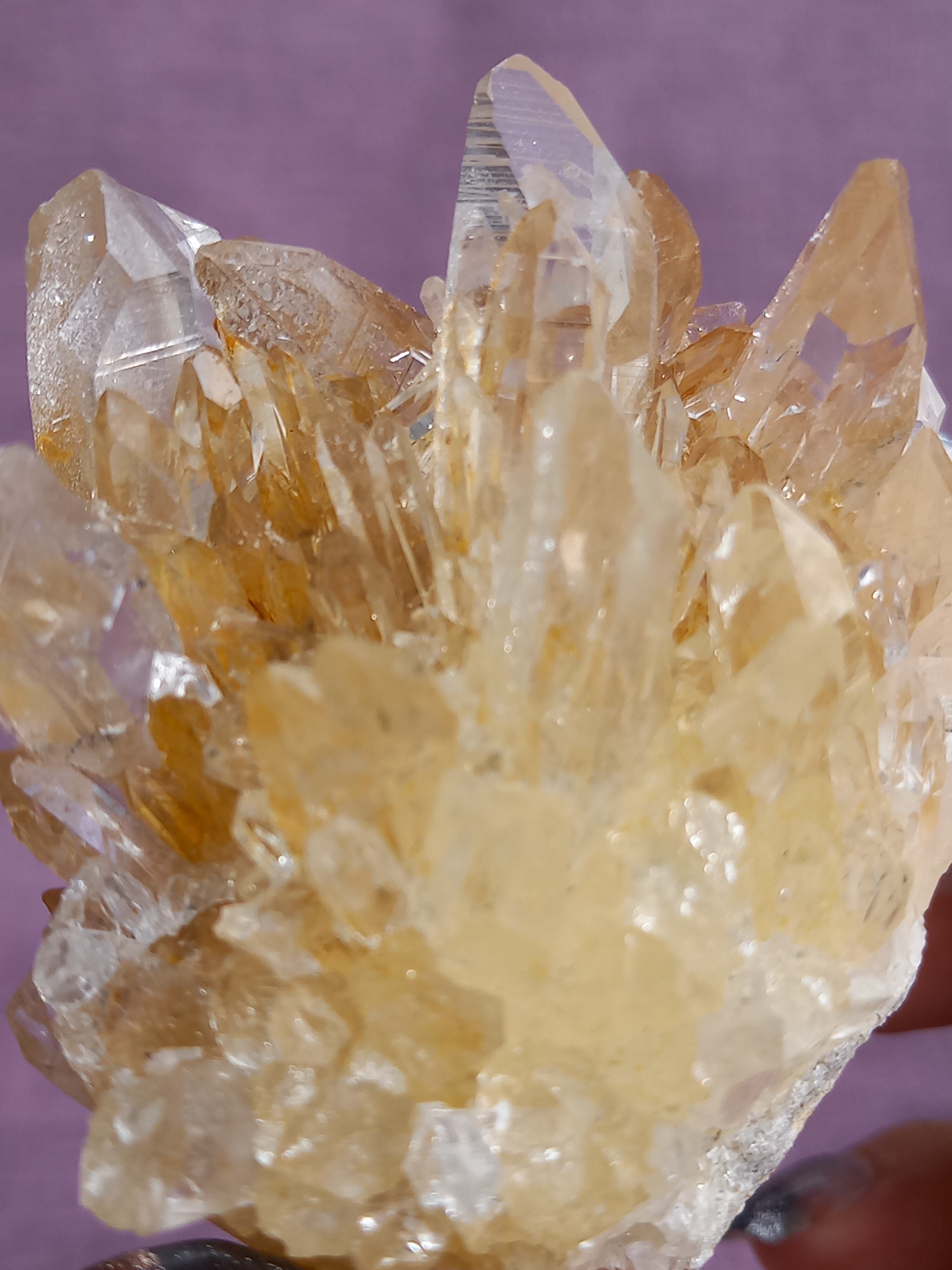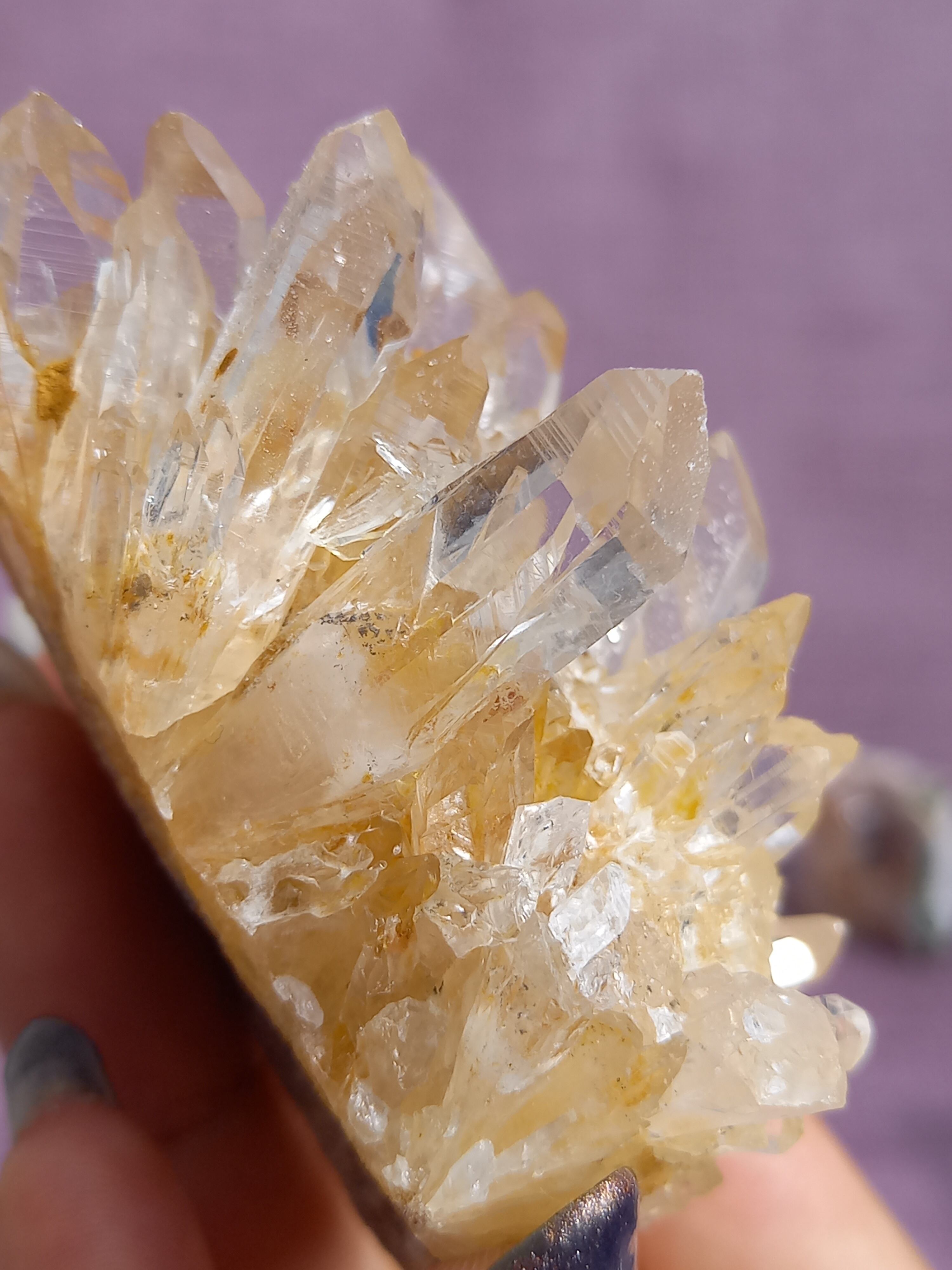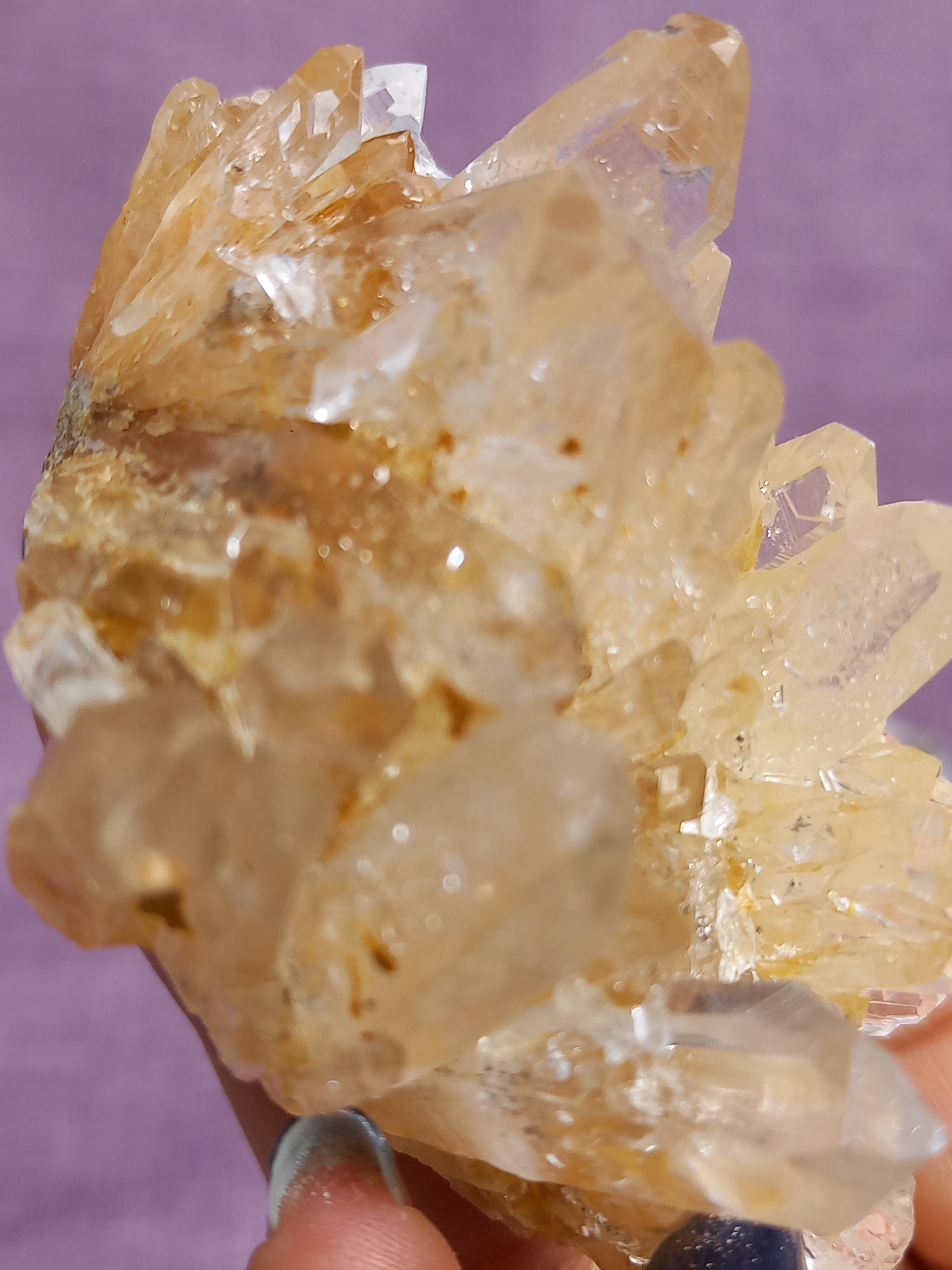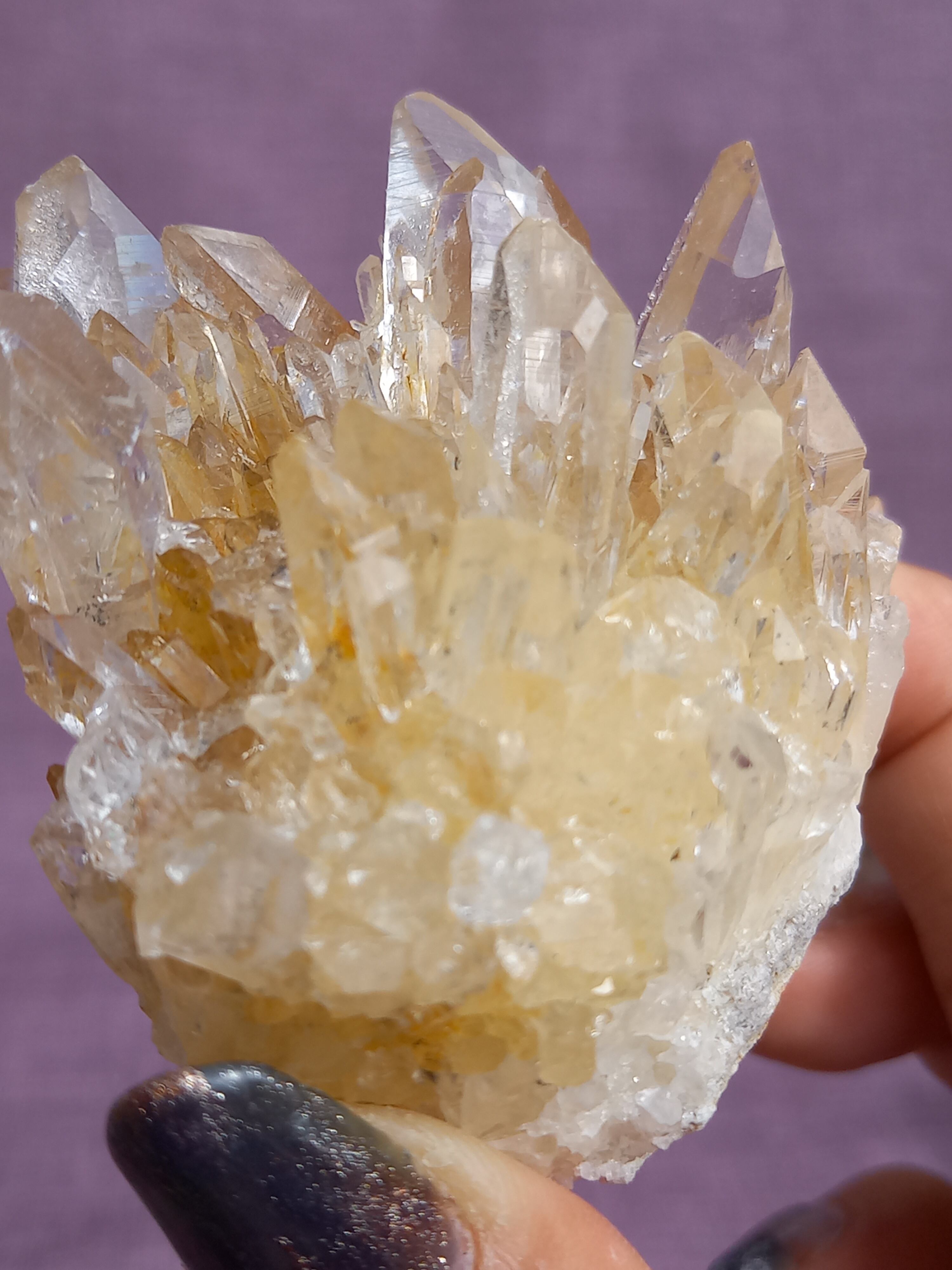 ライモナイトの影響で、ほんのり、はちみつカラーに色付いたクラスターです。