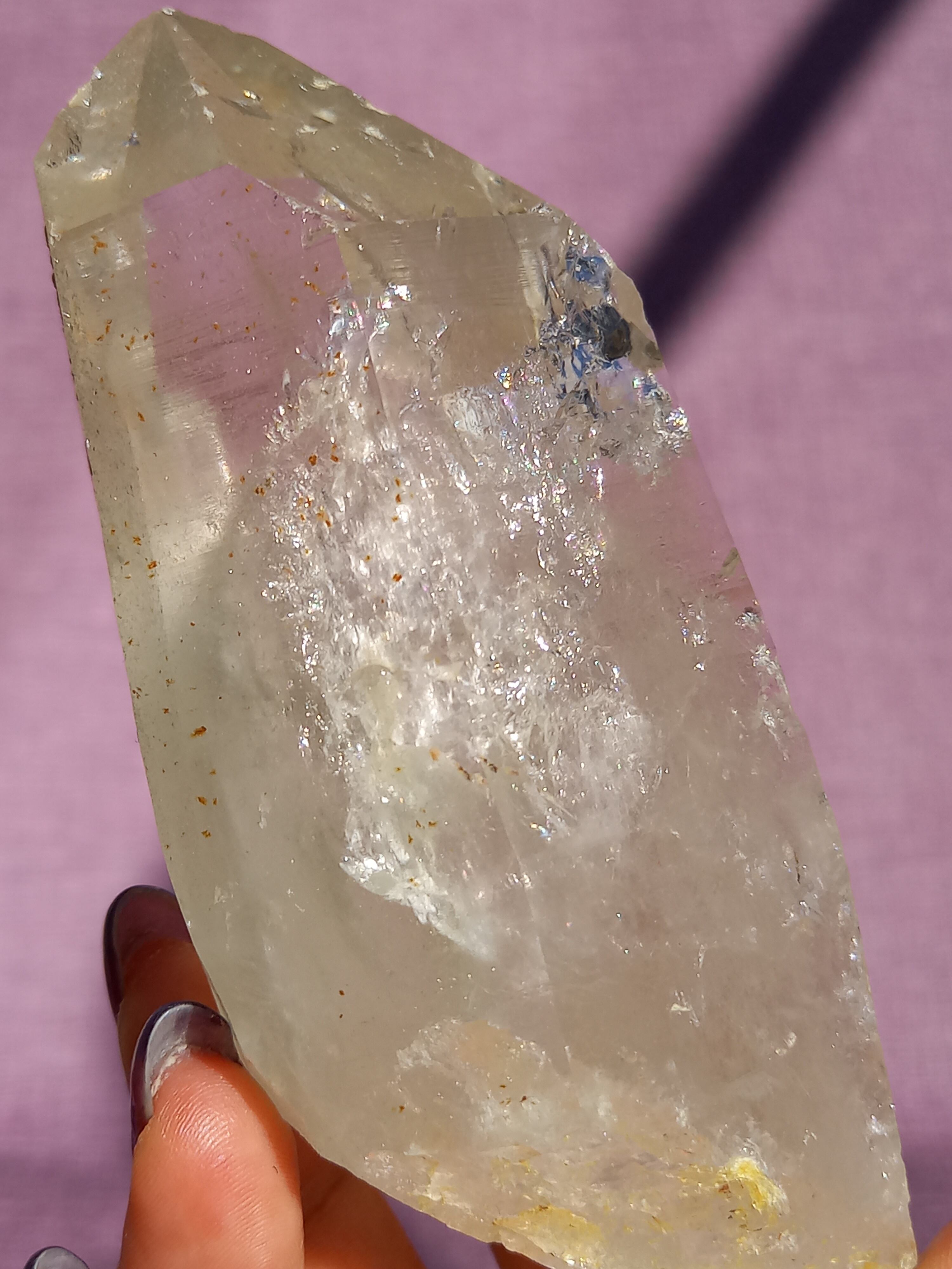 マニハール水晶は、インドのヒマラヤ山脈、ガルサ渓谷にあるマニハール村近くで採掘される水晶です。非常に高い透明度と艶やかな光沢、そしてクローライトやルチル(金紅石)などのインクルージョン(内包物)を伴うことが特徴で、浄化力が特に強いと信じられています。