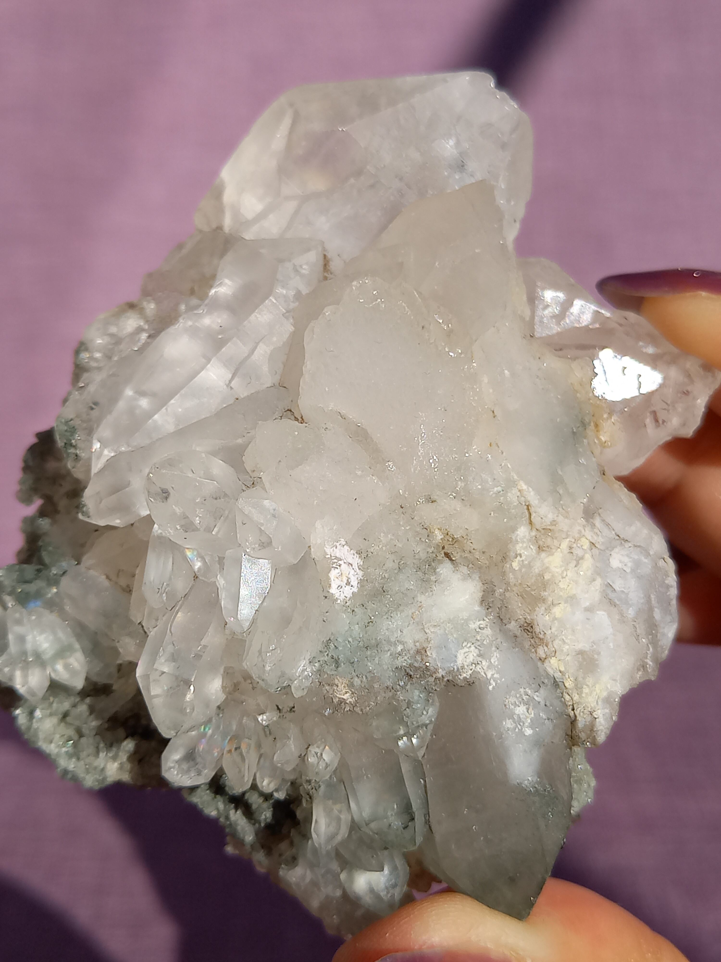 マニハール水晶は、インドのヒマラヤ山脈、ガルサ渓谷にあるマニハール村近くで採掘される水晶です。非常に高い透明度と艶やかな光沢、そしてクローライトやルチル(金紅石)などのインクルージョン(内包物)を伴うことが特徴で、浄化力が特に強いと信じられています。