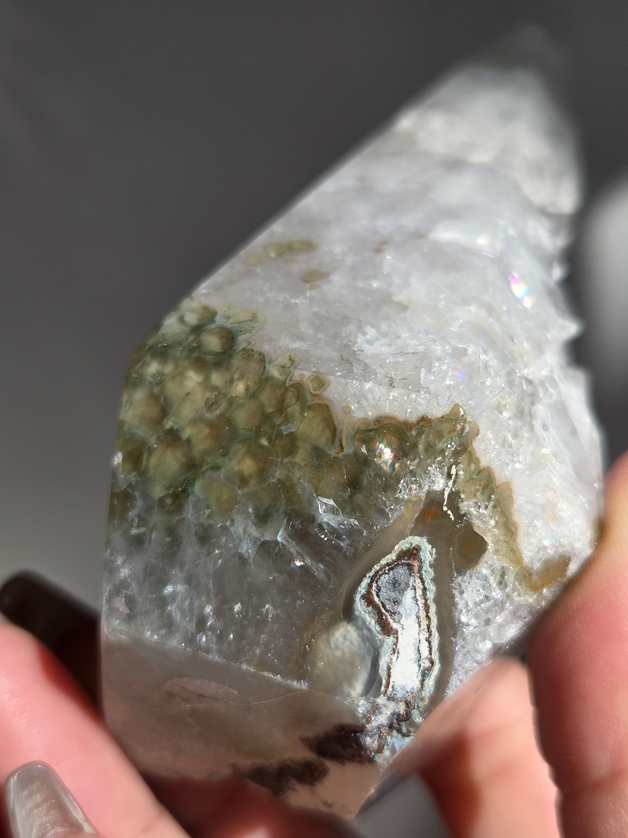 合間から見えるキラッキラの虹の輝きに魅了されます。