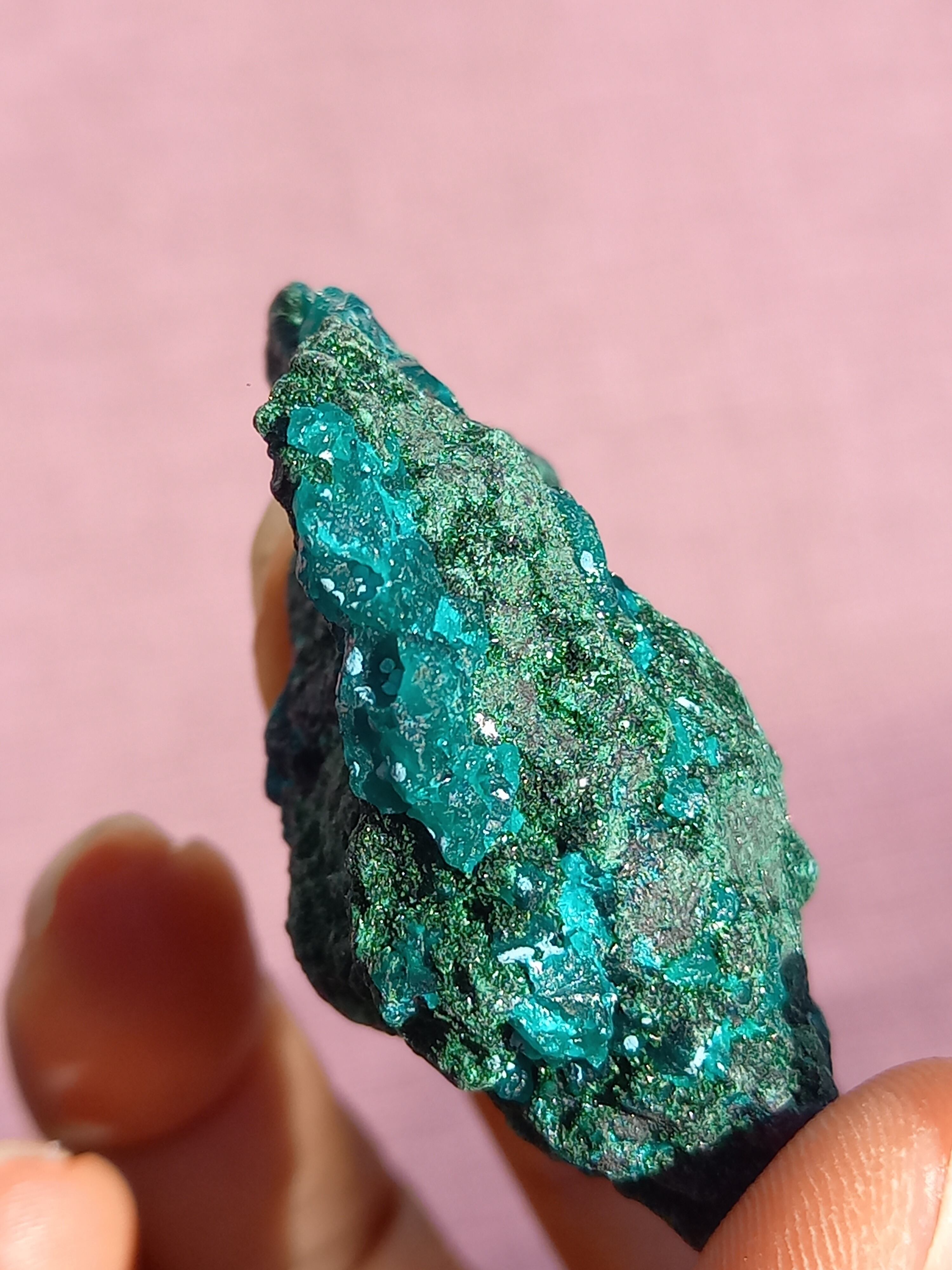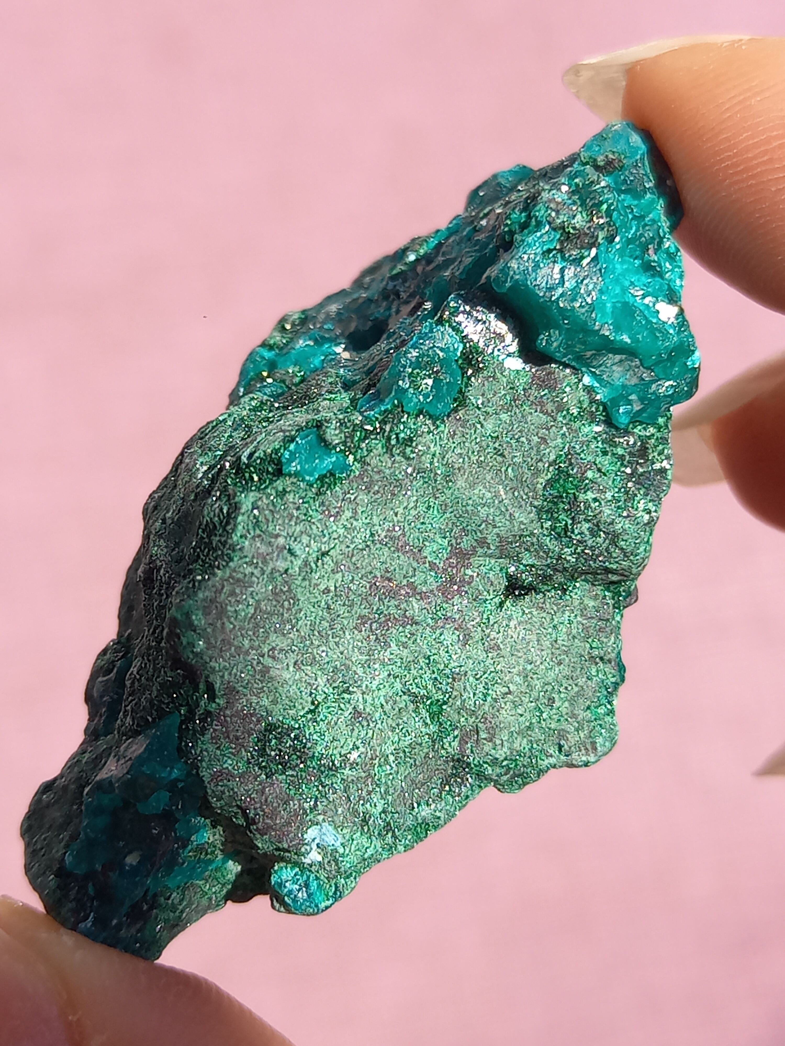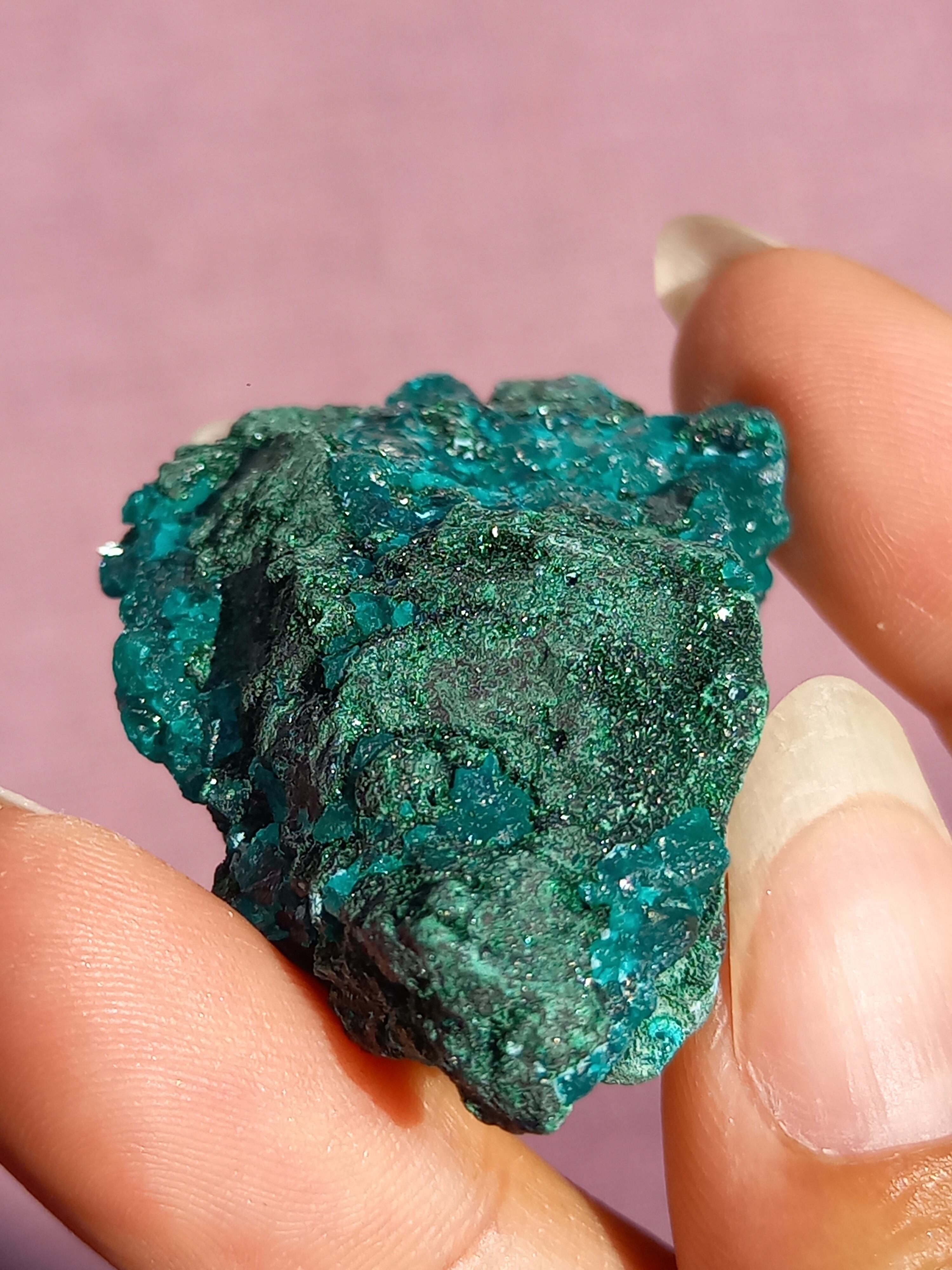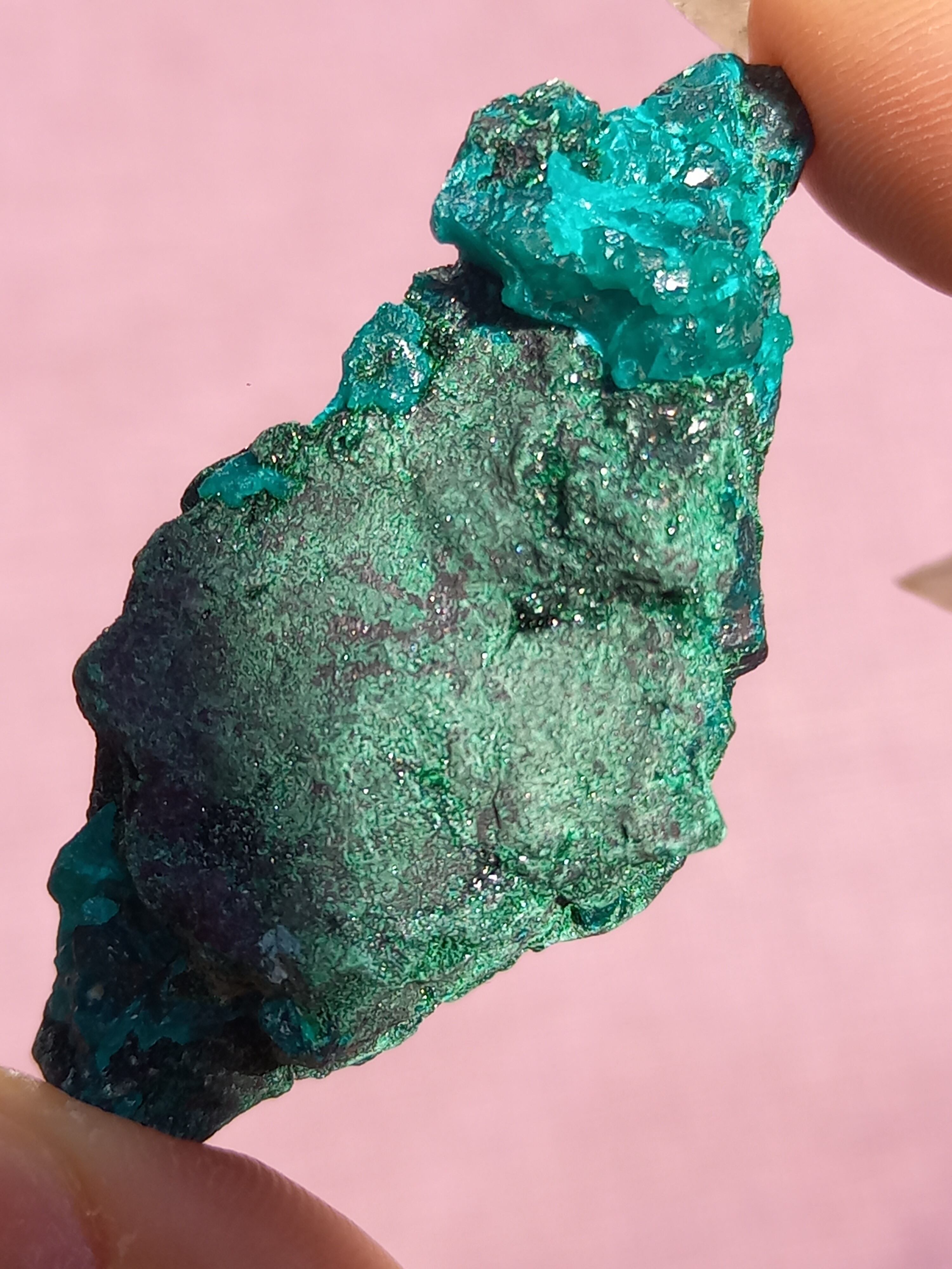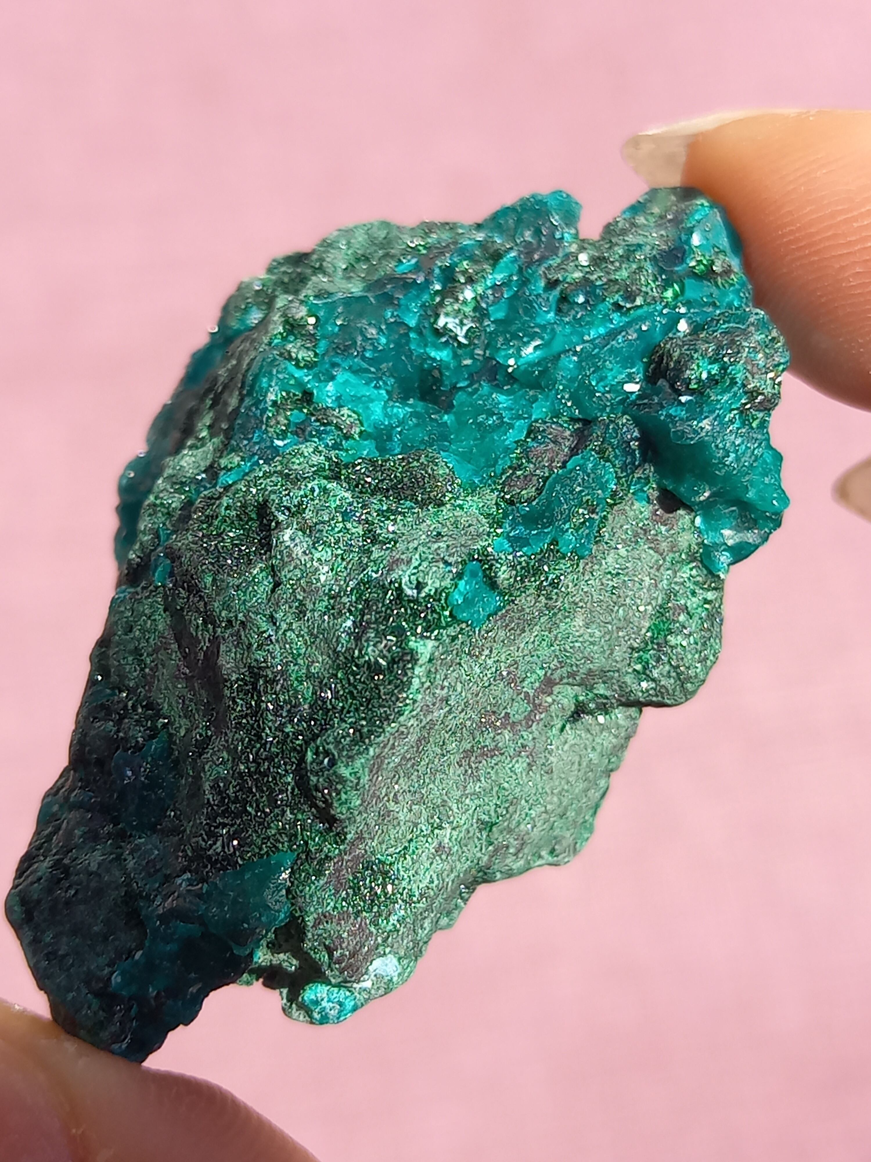 深く鮮やかな独特のグリーンが特徴のダイオプテーズの原石です。