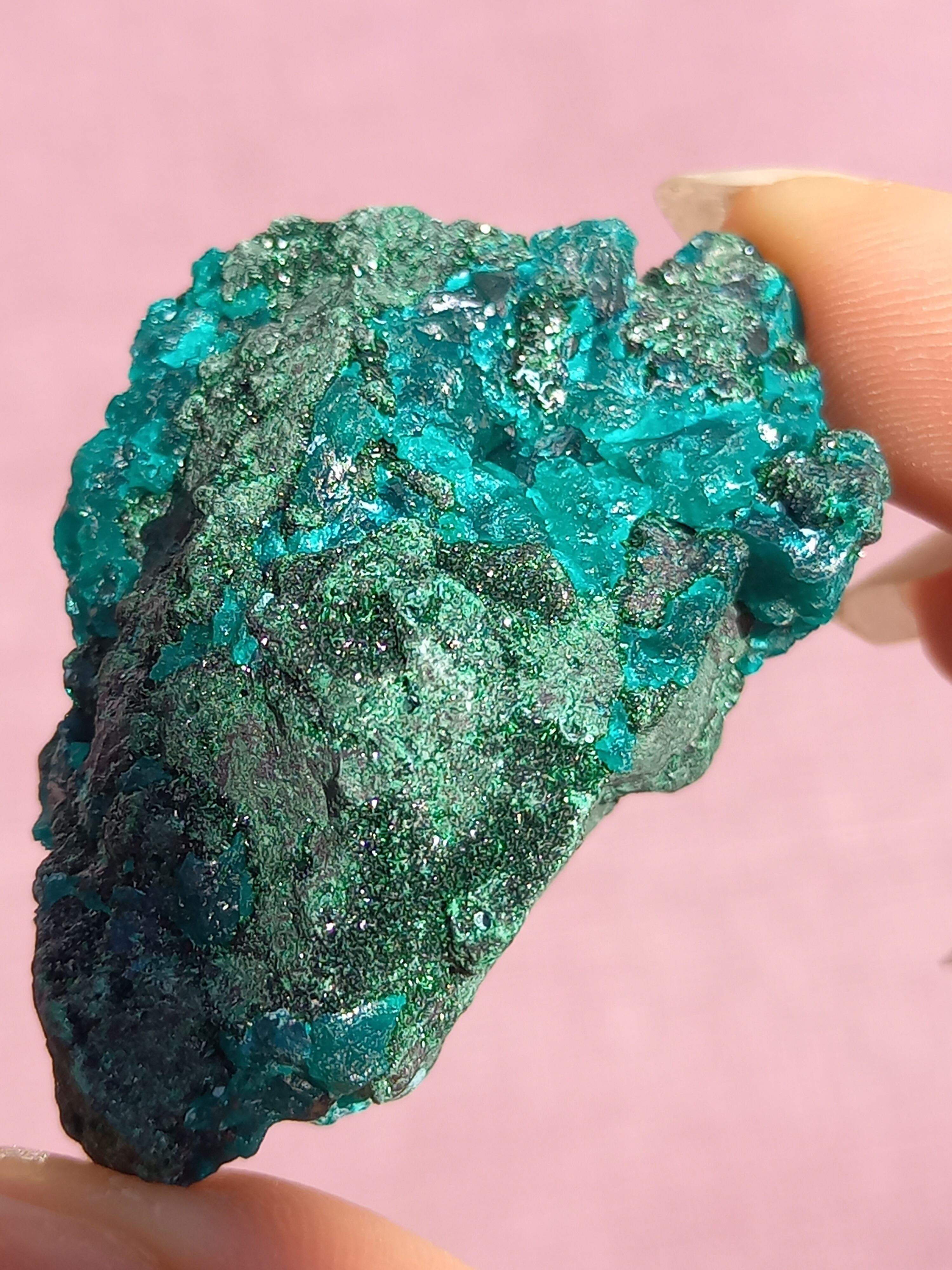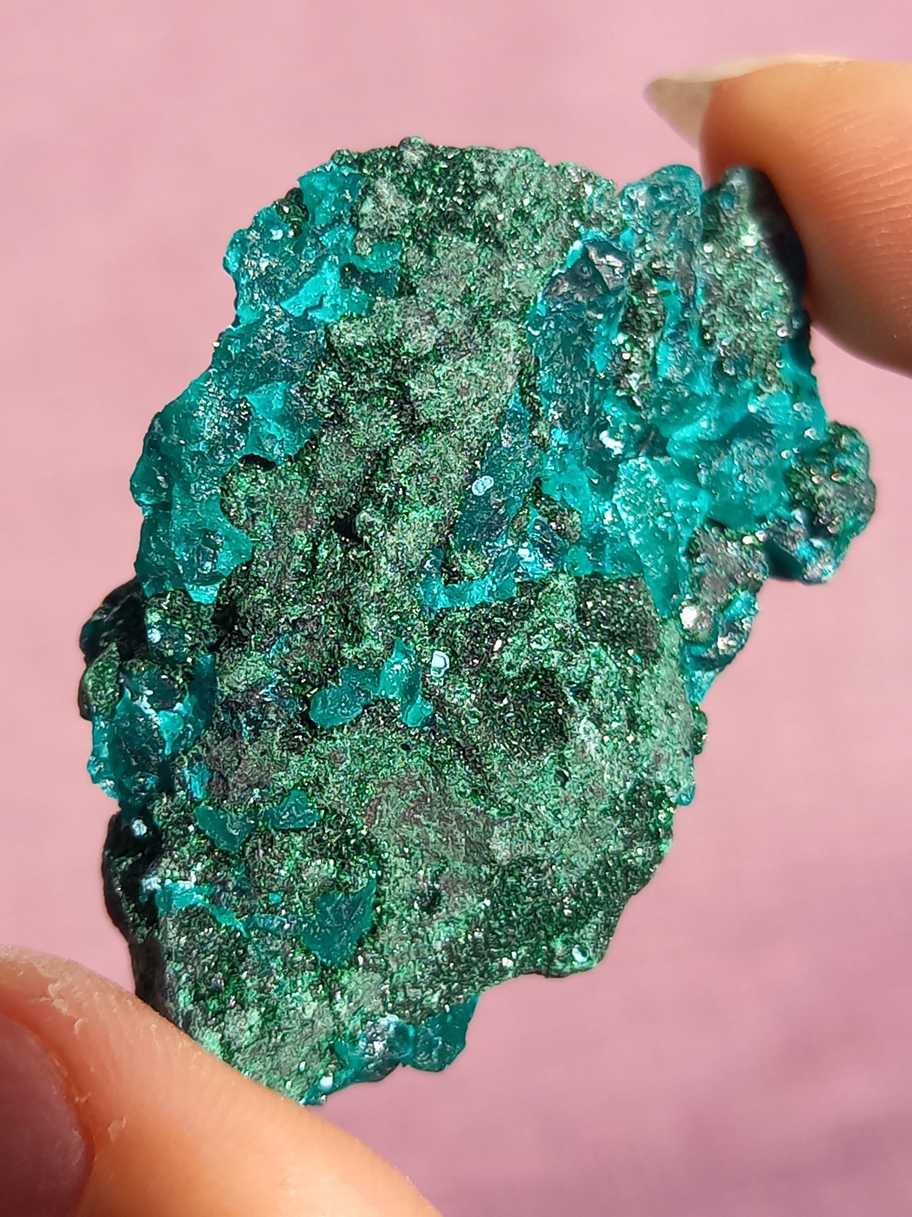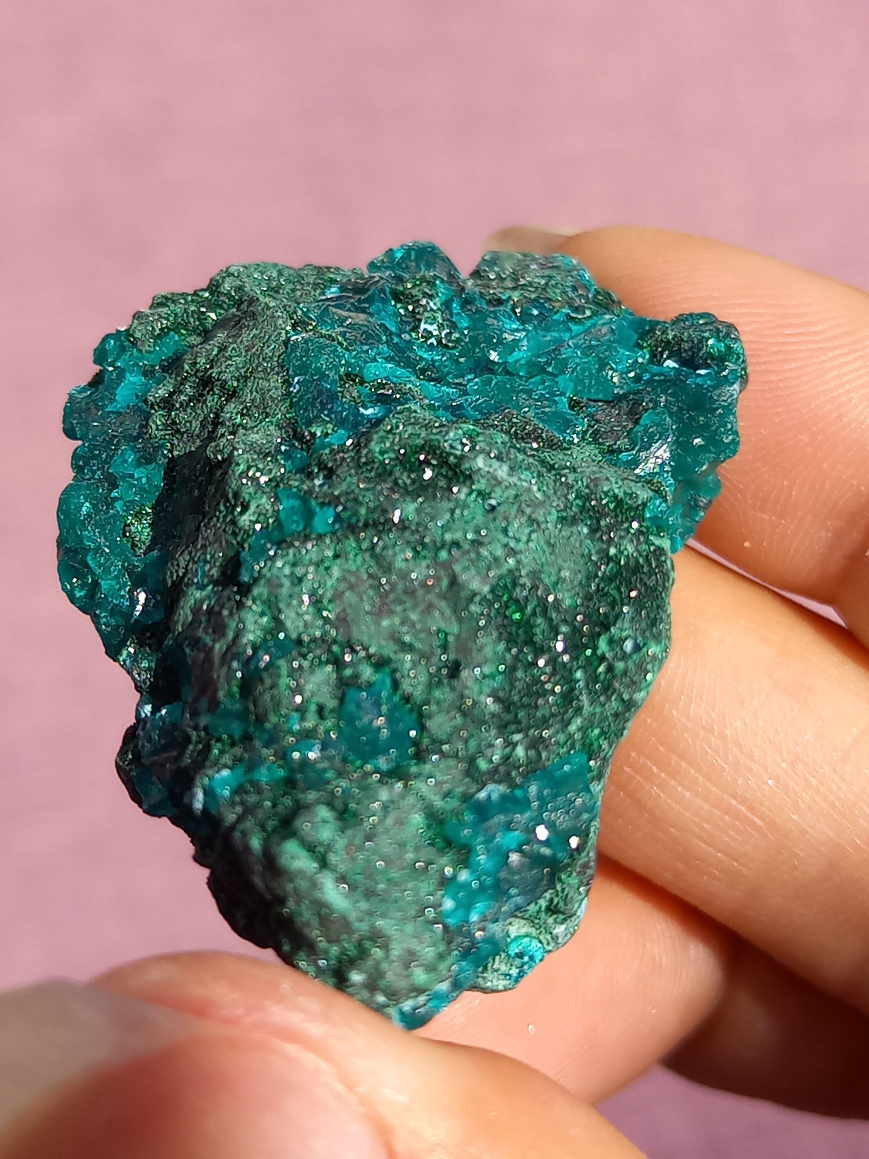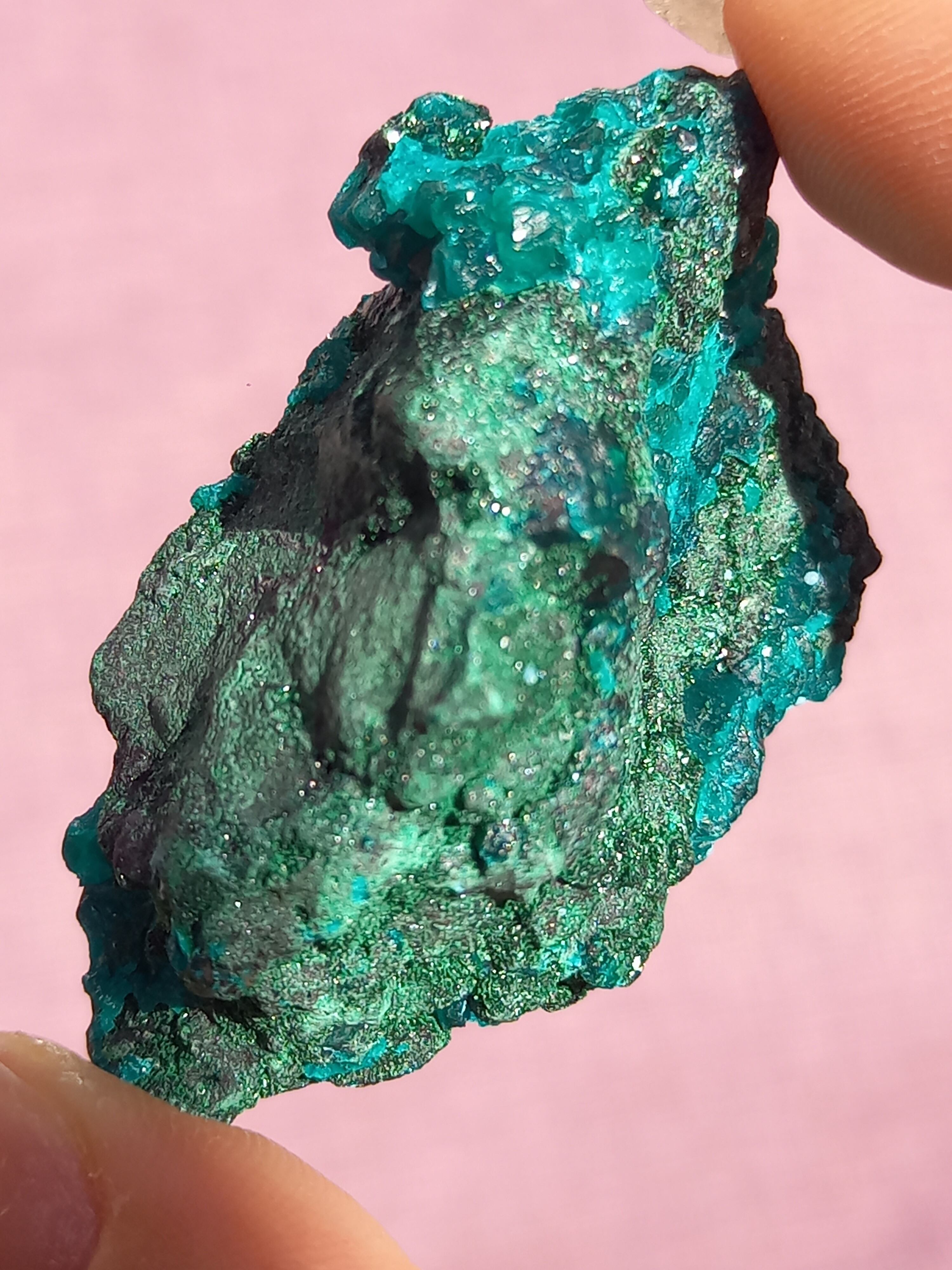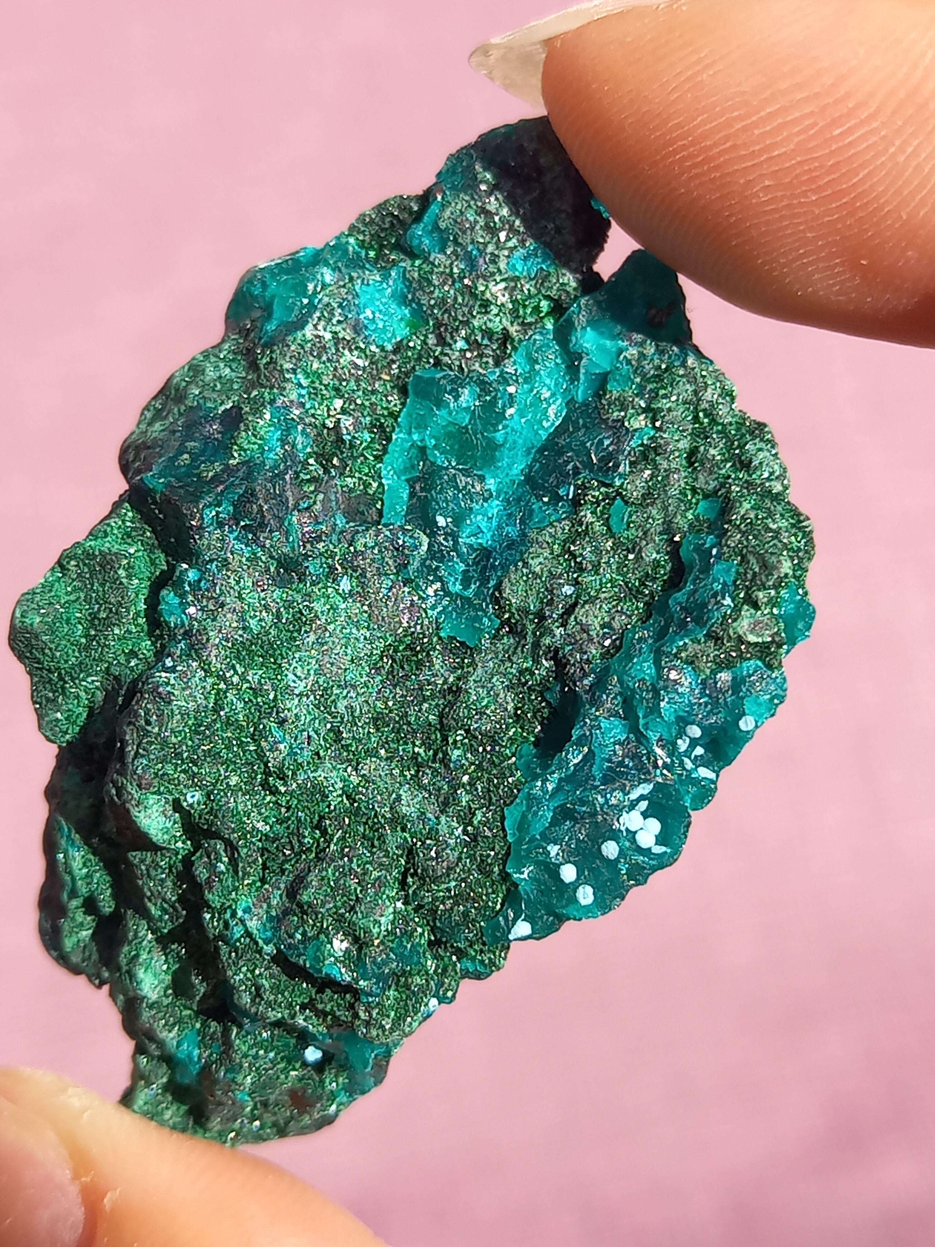 深く鮮やかな独特のグリーンが特徴のダイオプテーズの原石です。