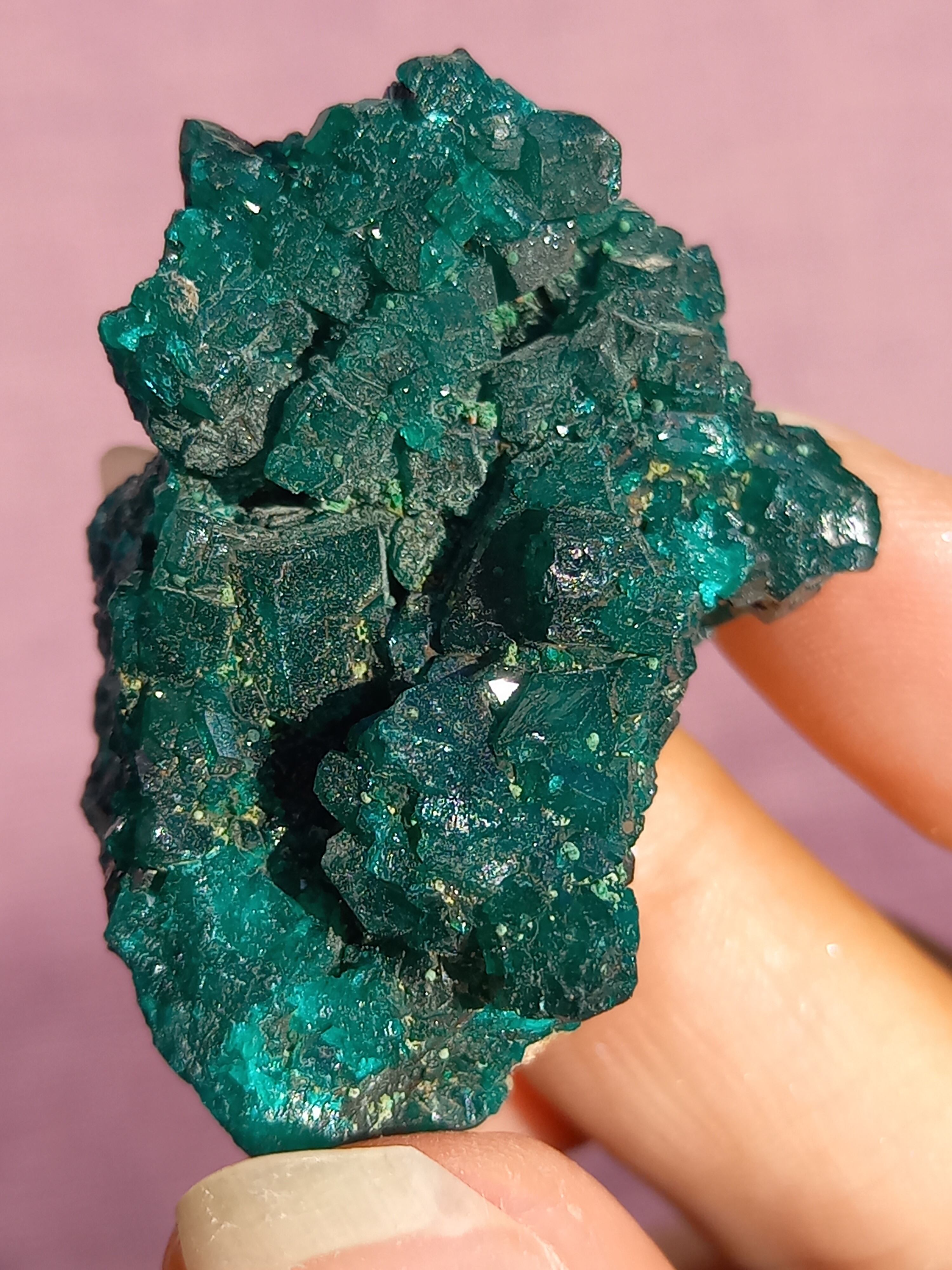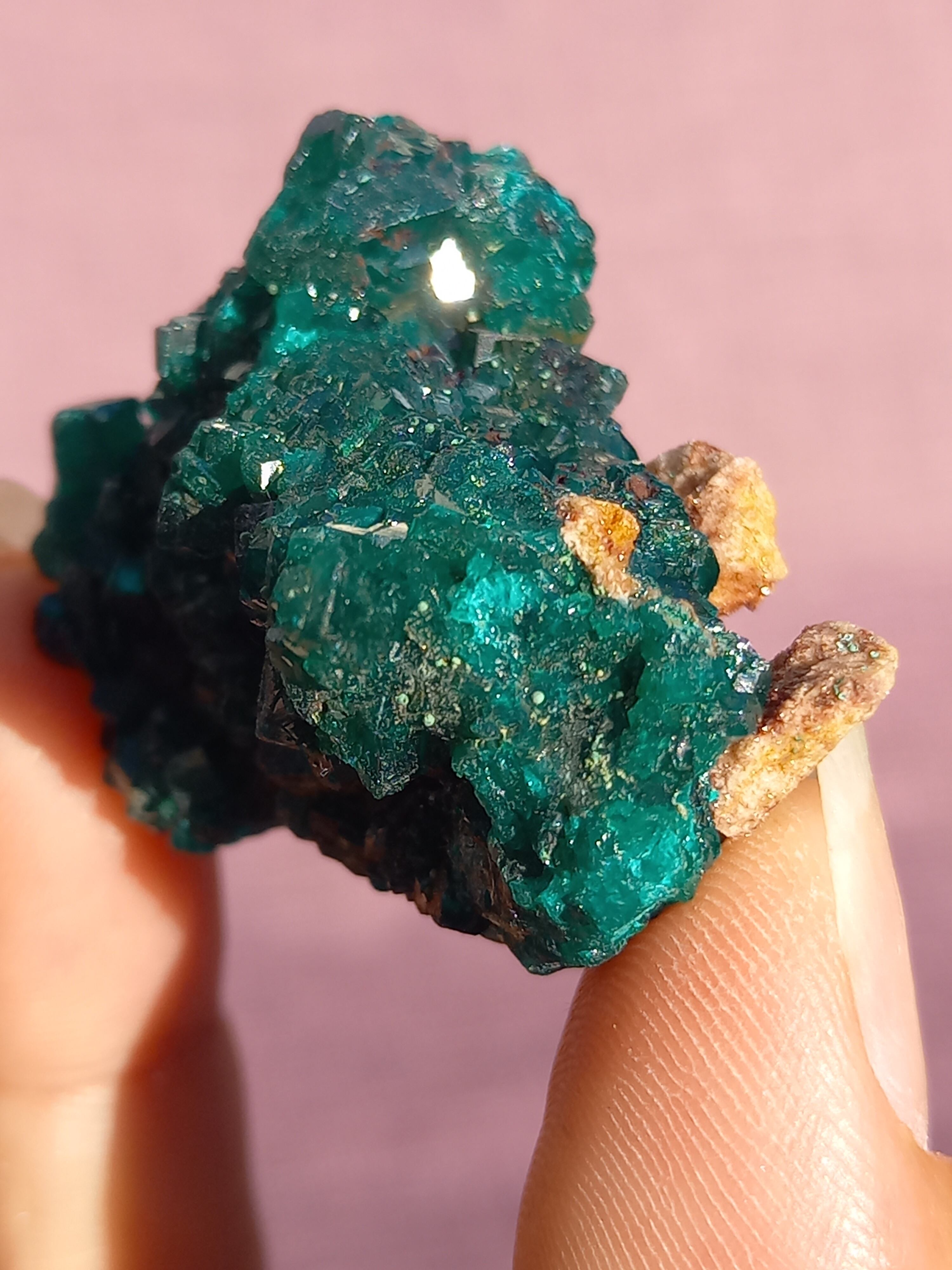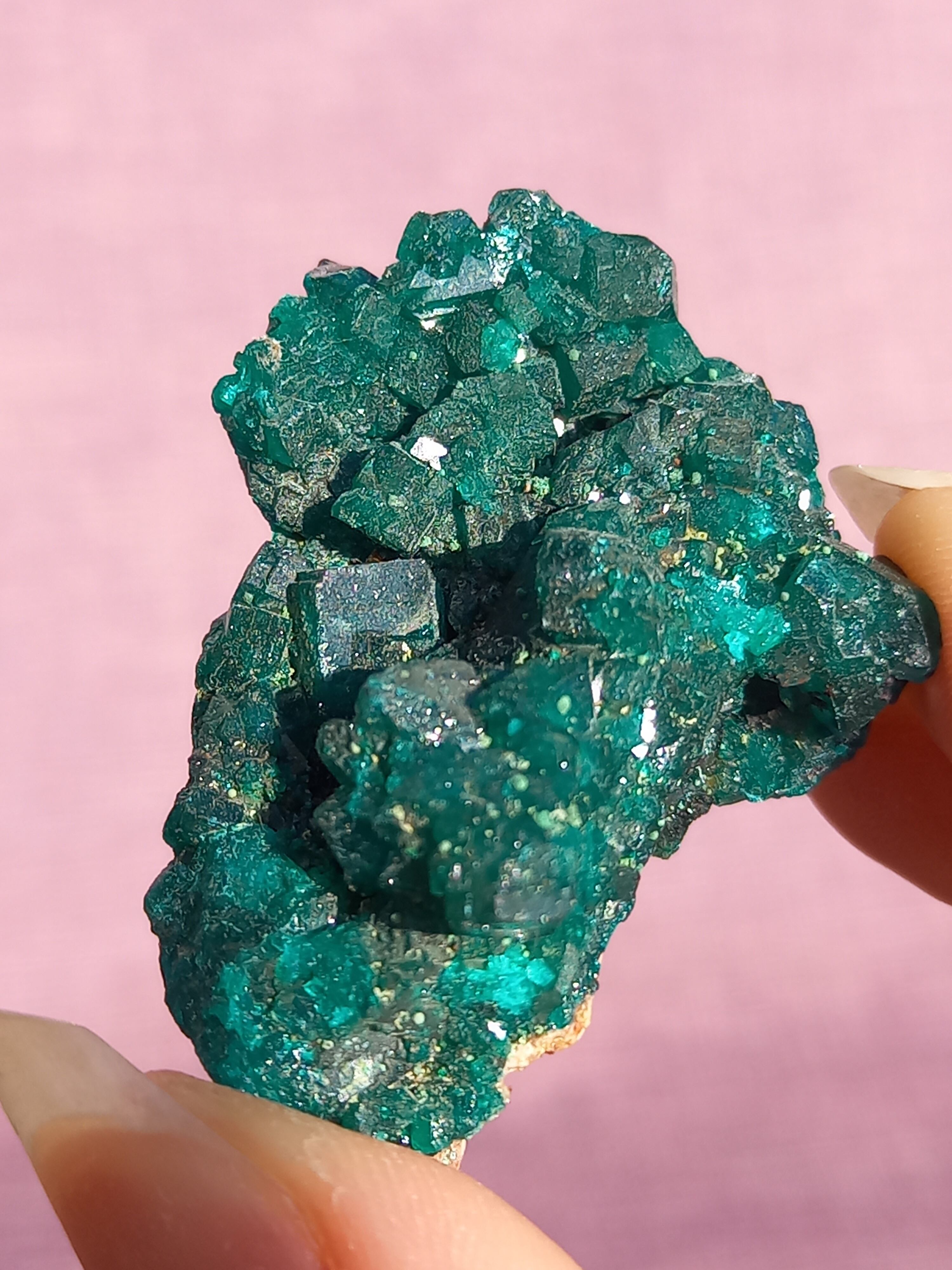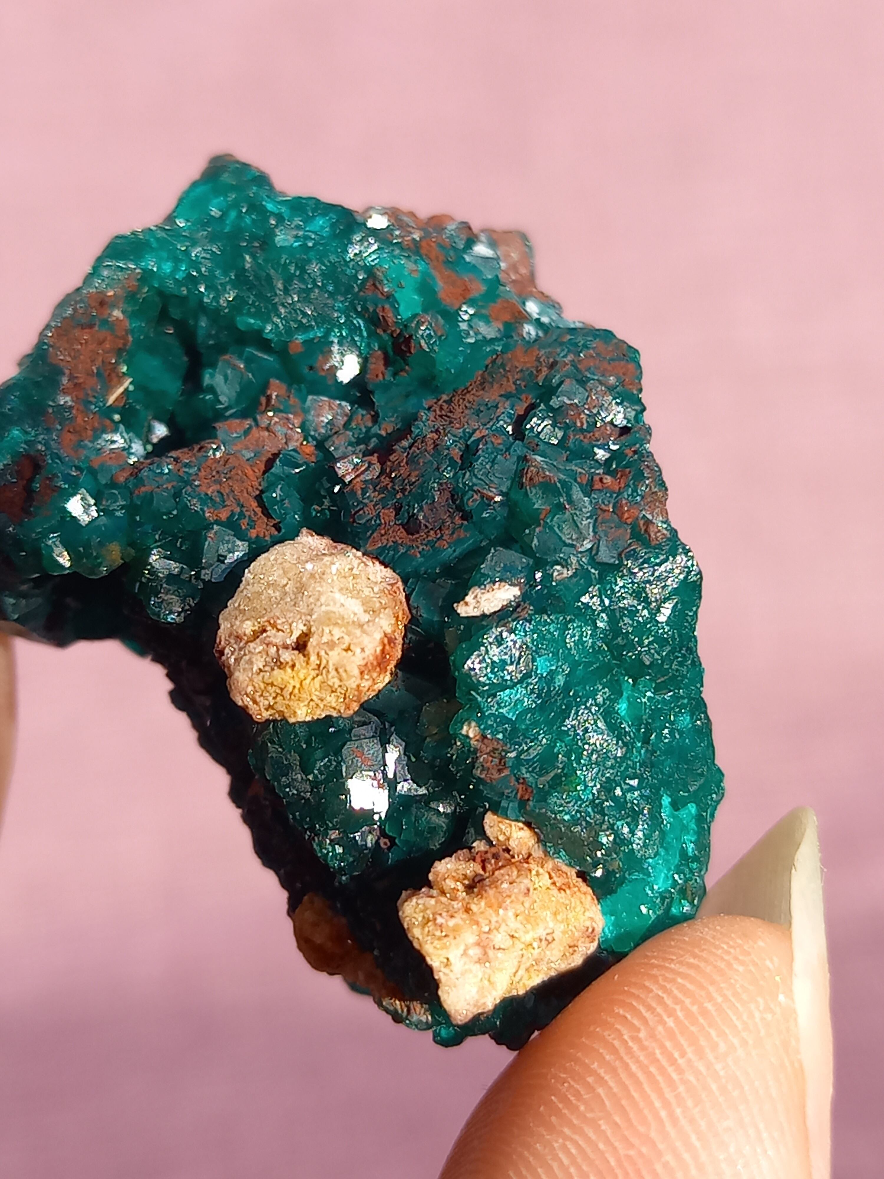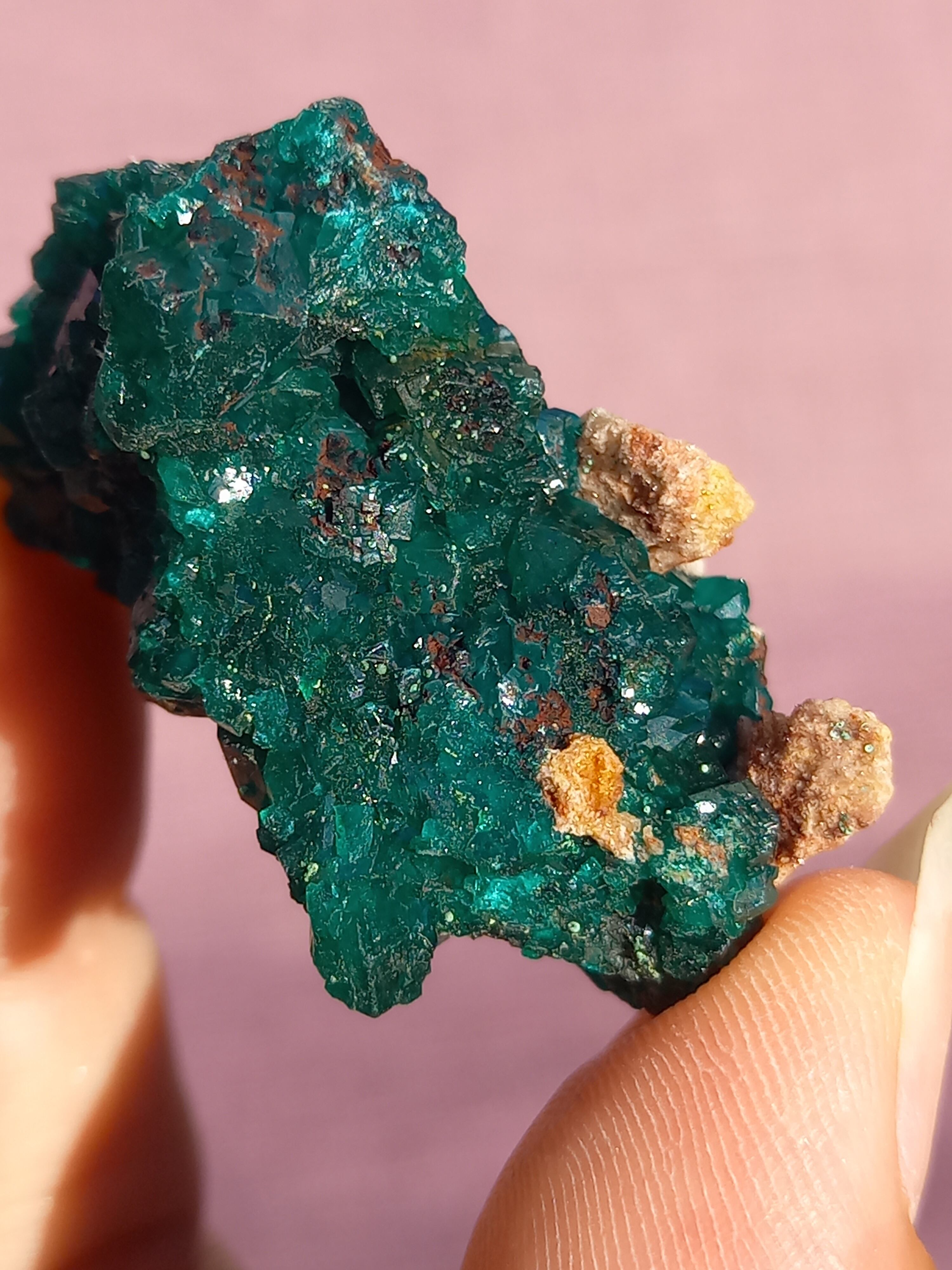 深く鮮やかな独特のグリーンが特徴のダイオプテーズの原石です。