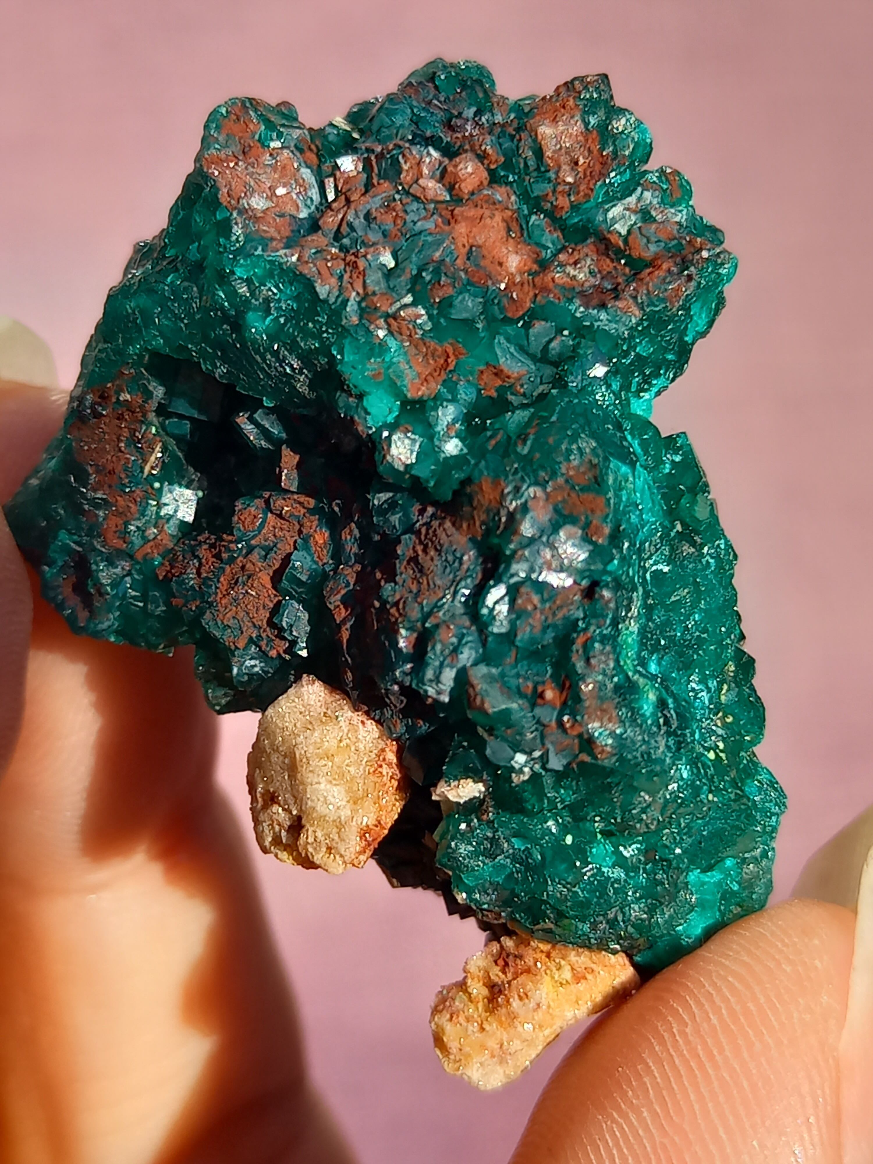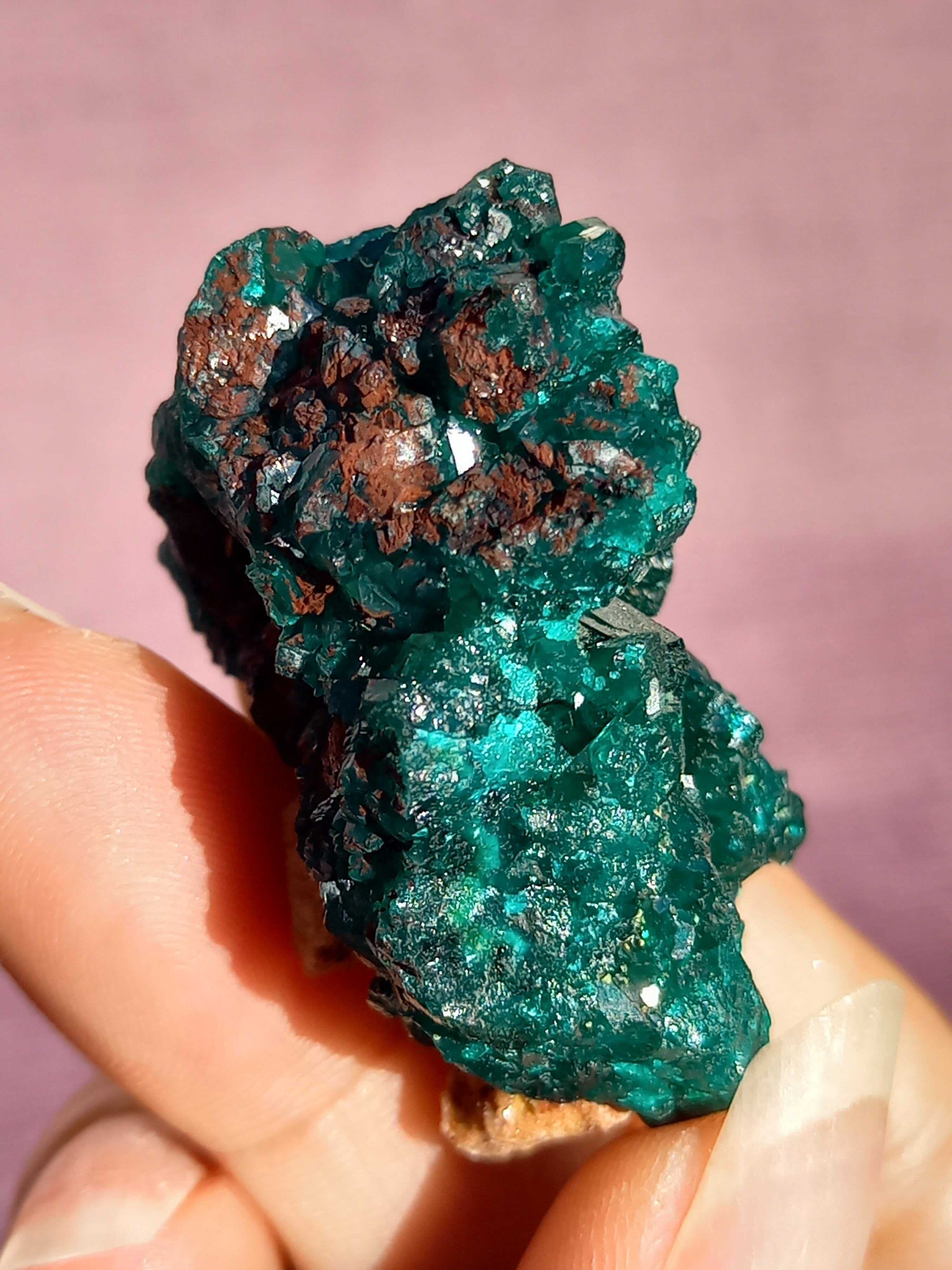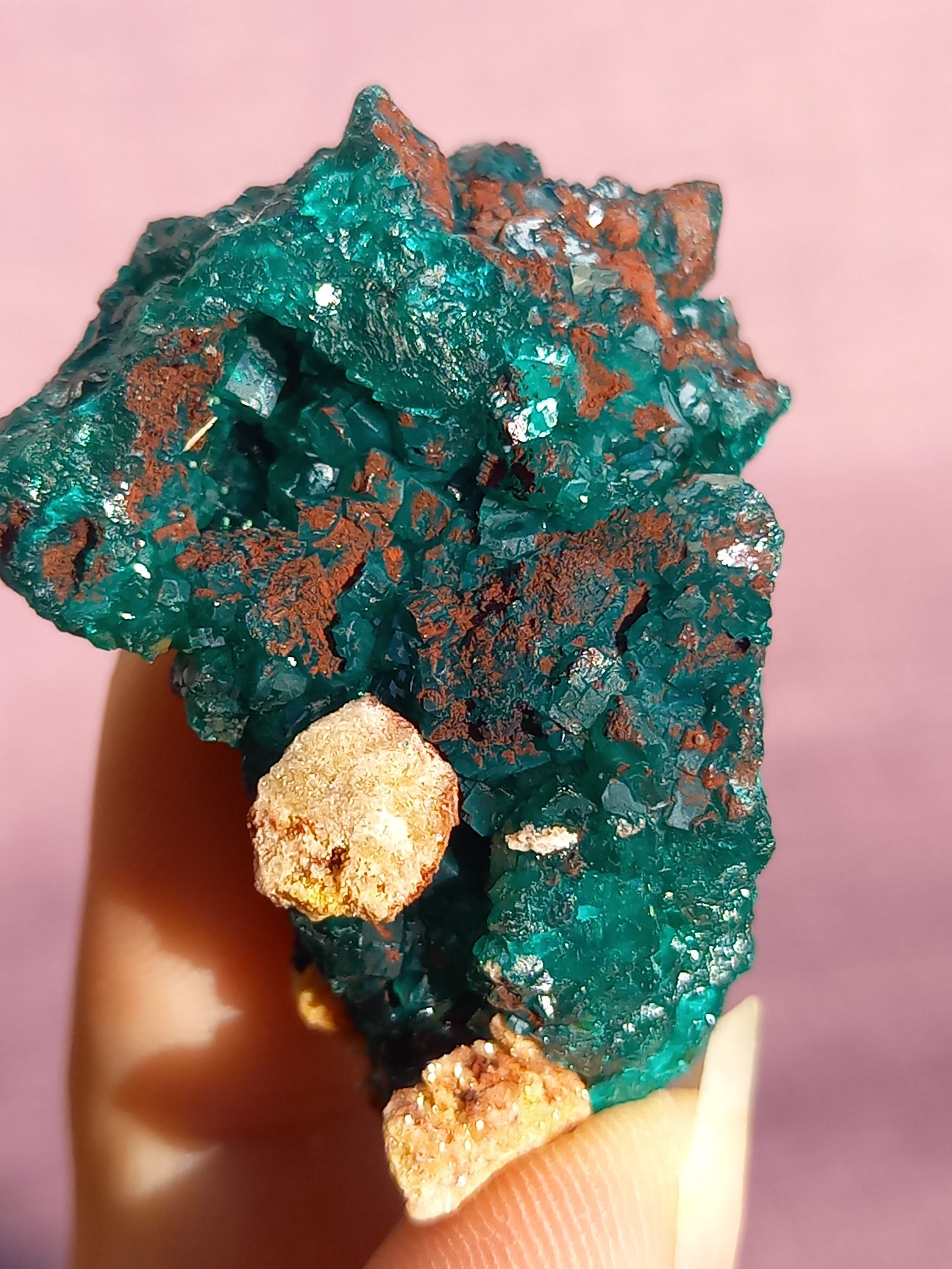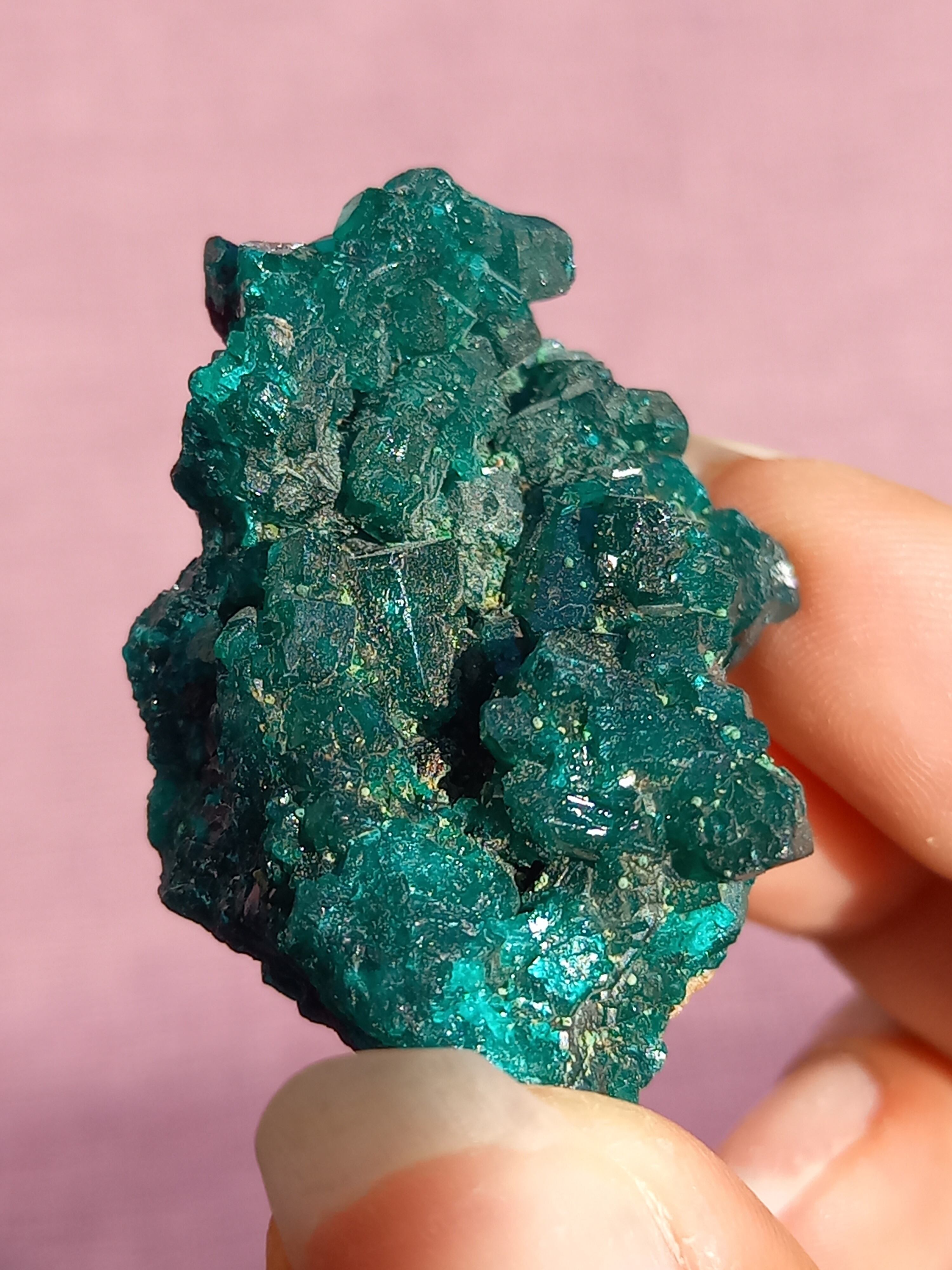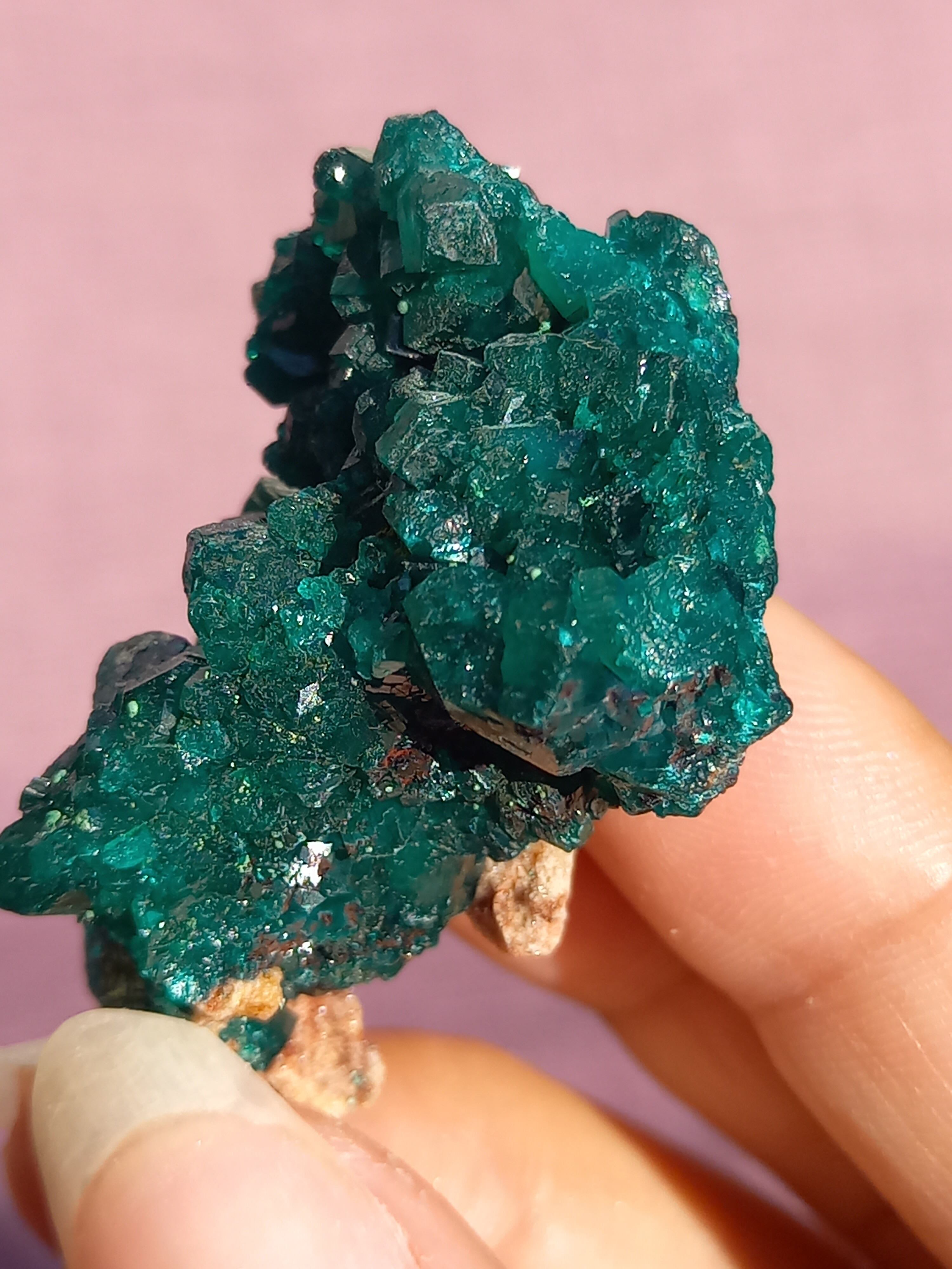 深く鮮やかな独特のグリーンが特徴のダイオプテーズの原石です。