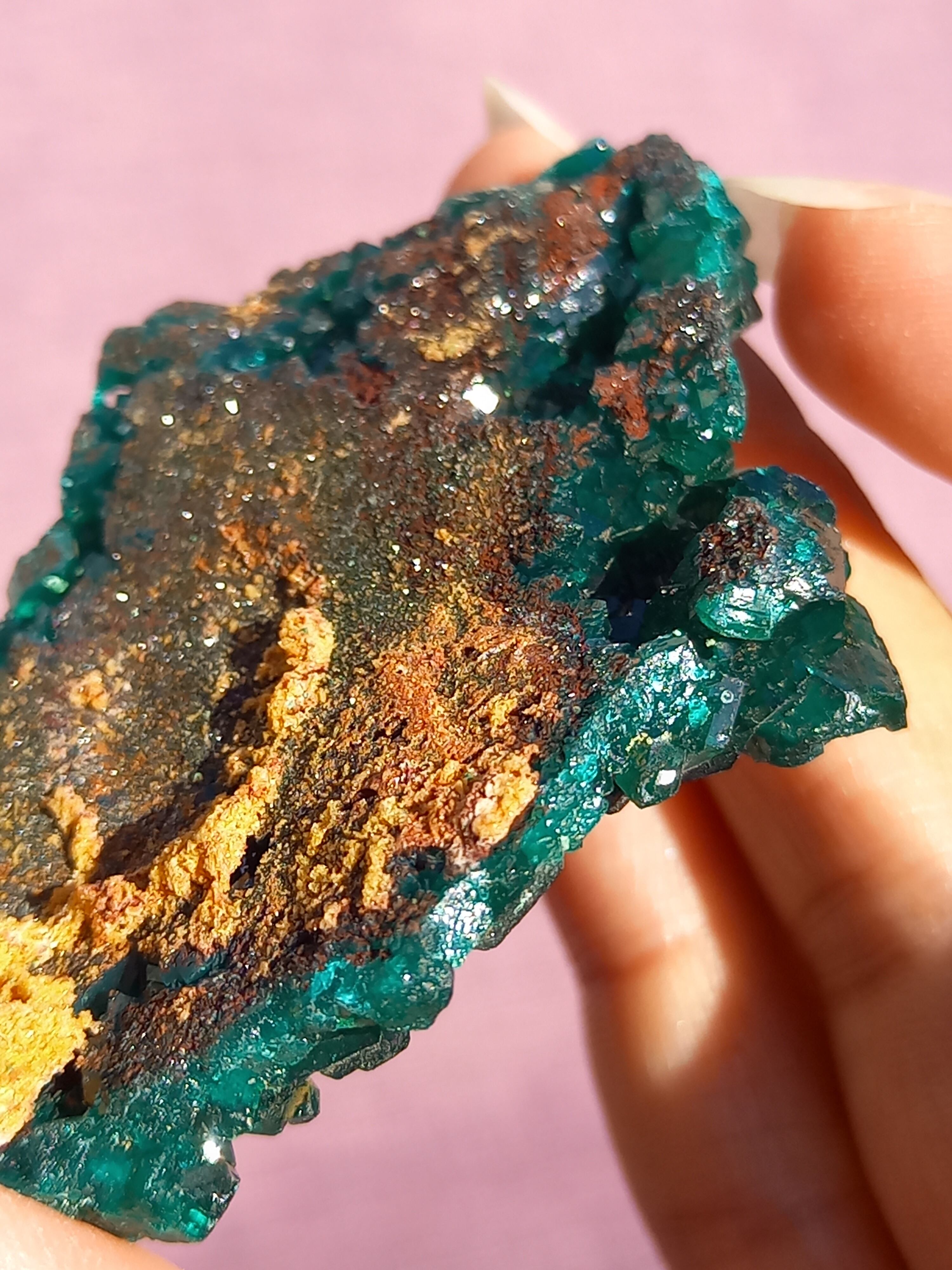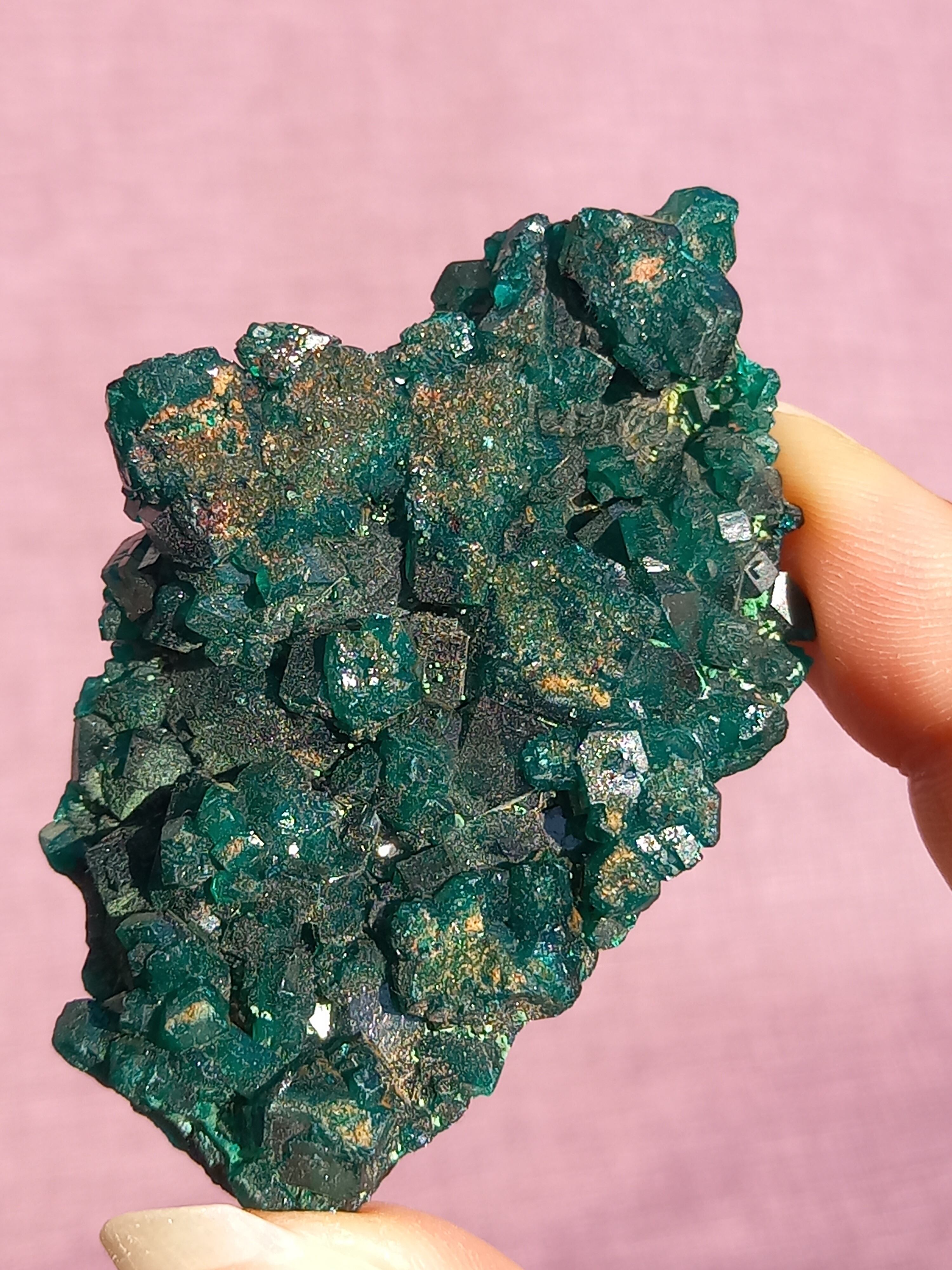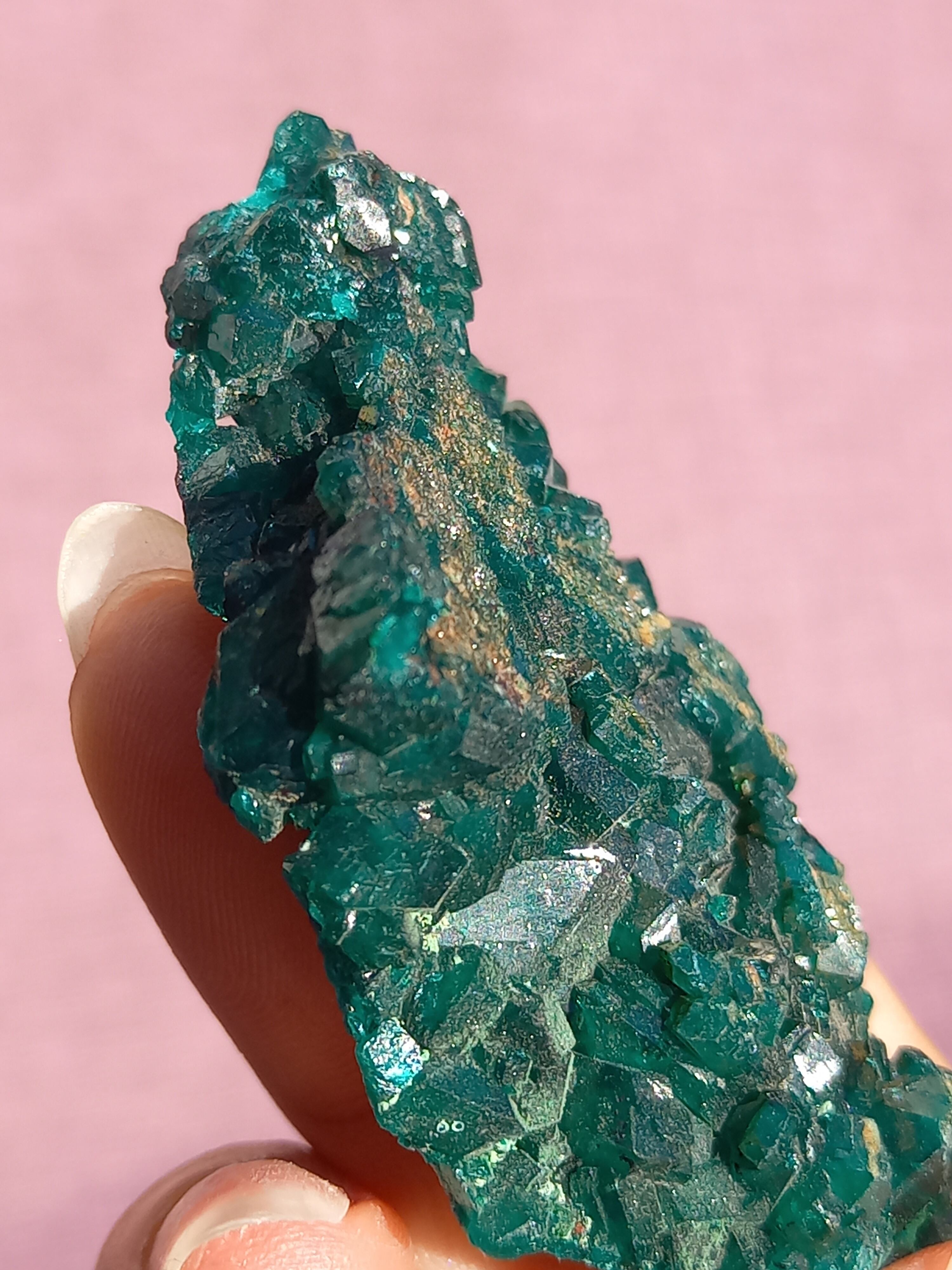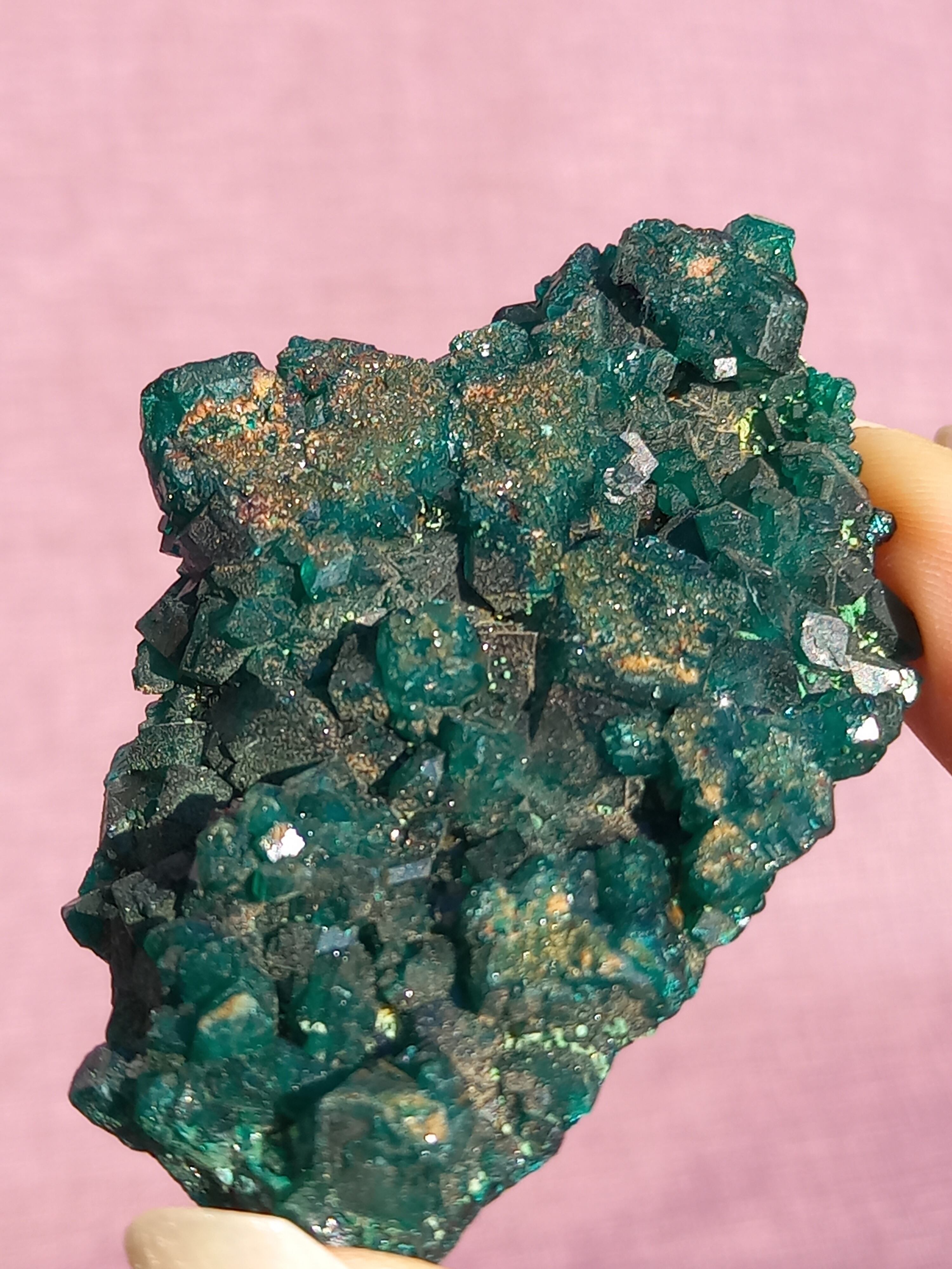 深く鮮やかな独特のグリーンが特徴のダイオプテーズの原石です。