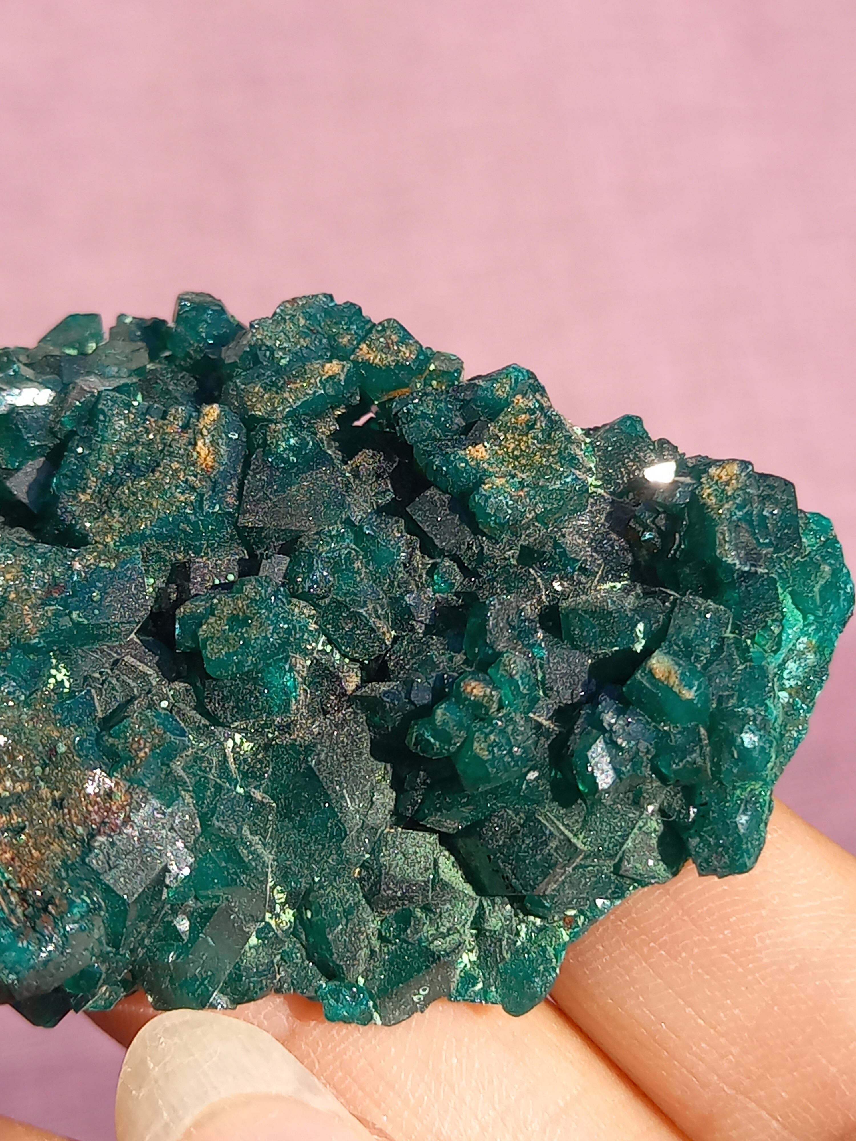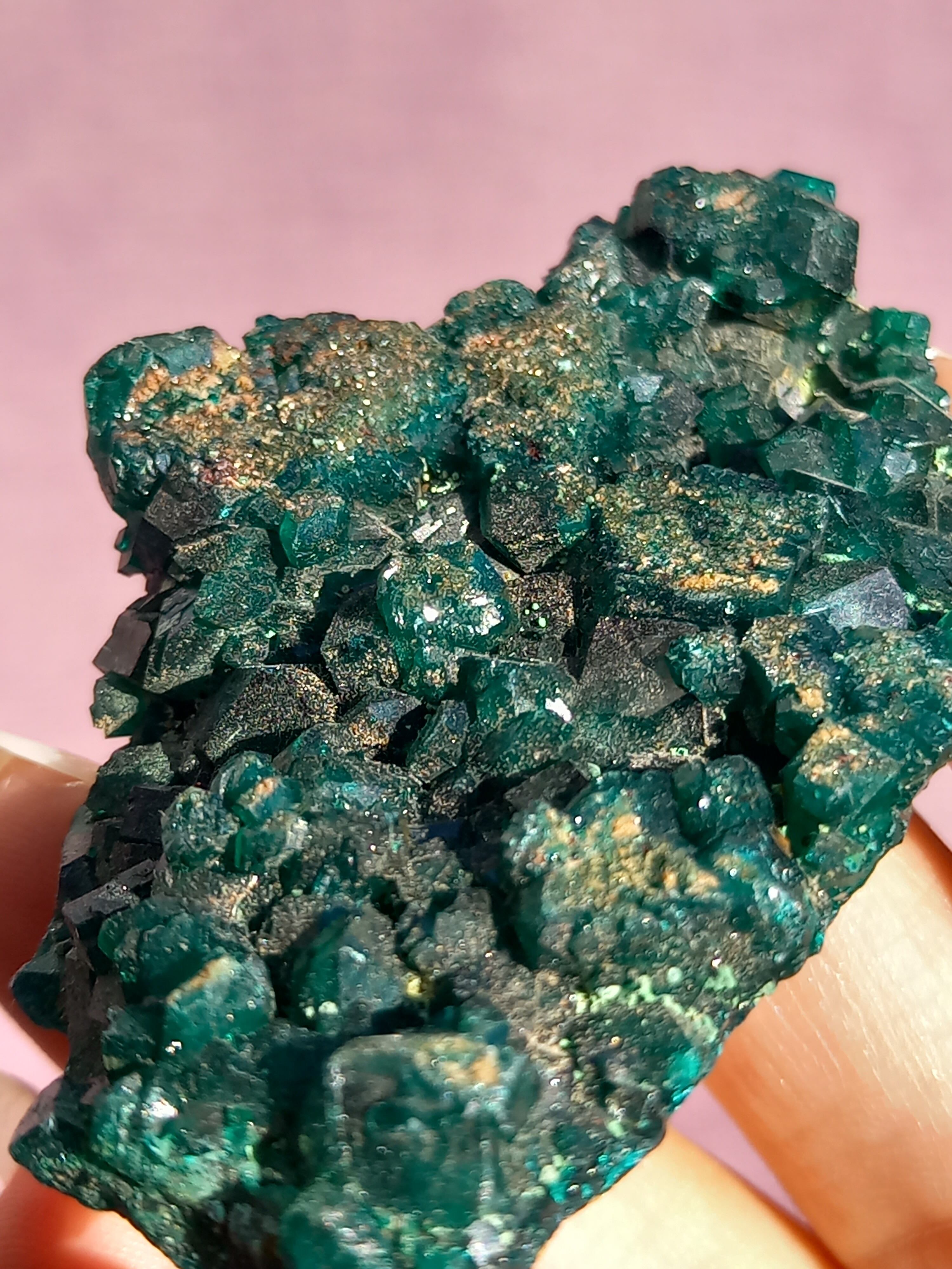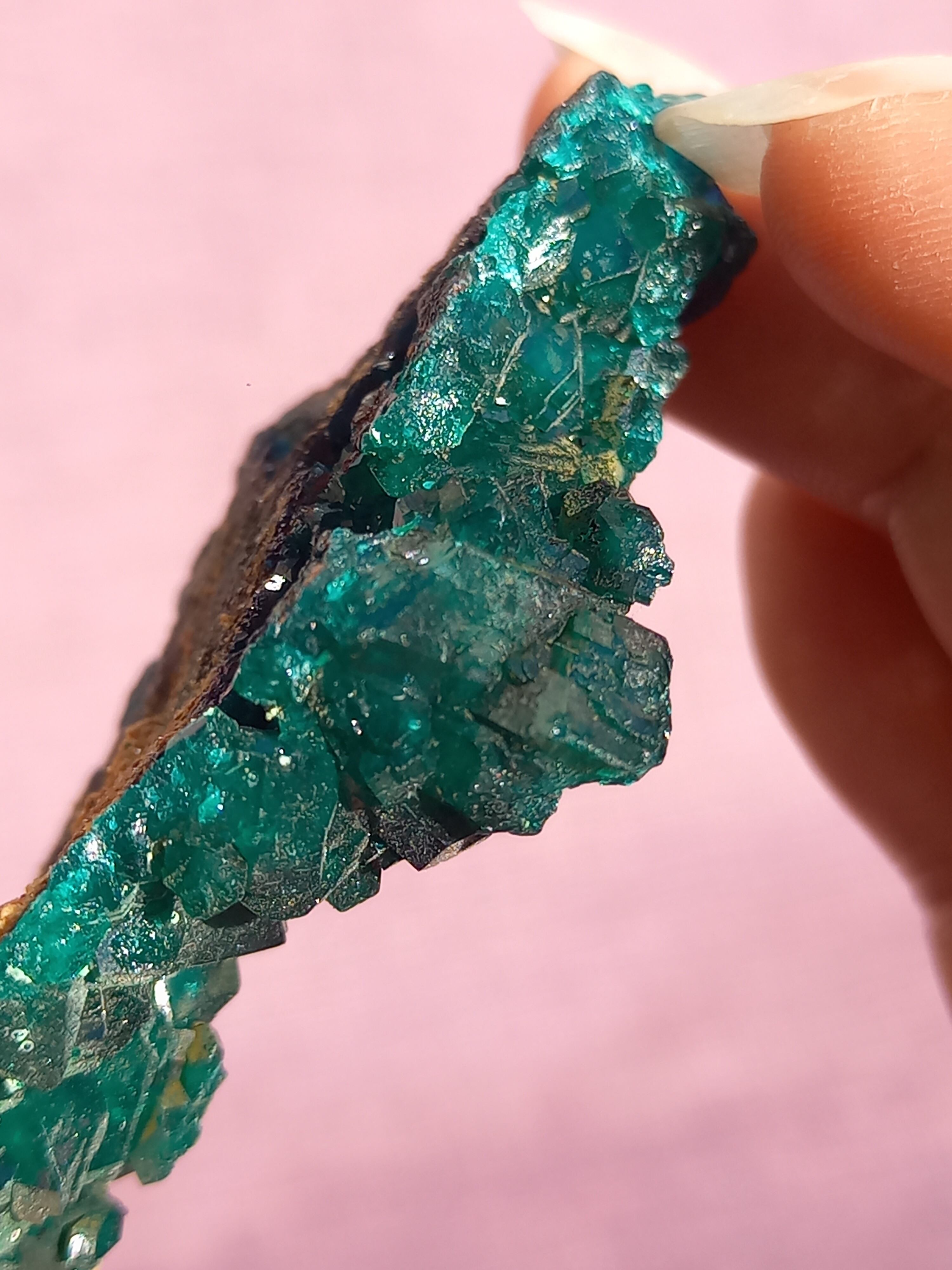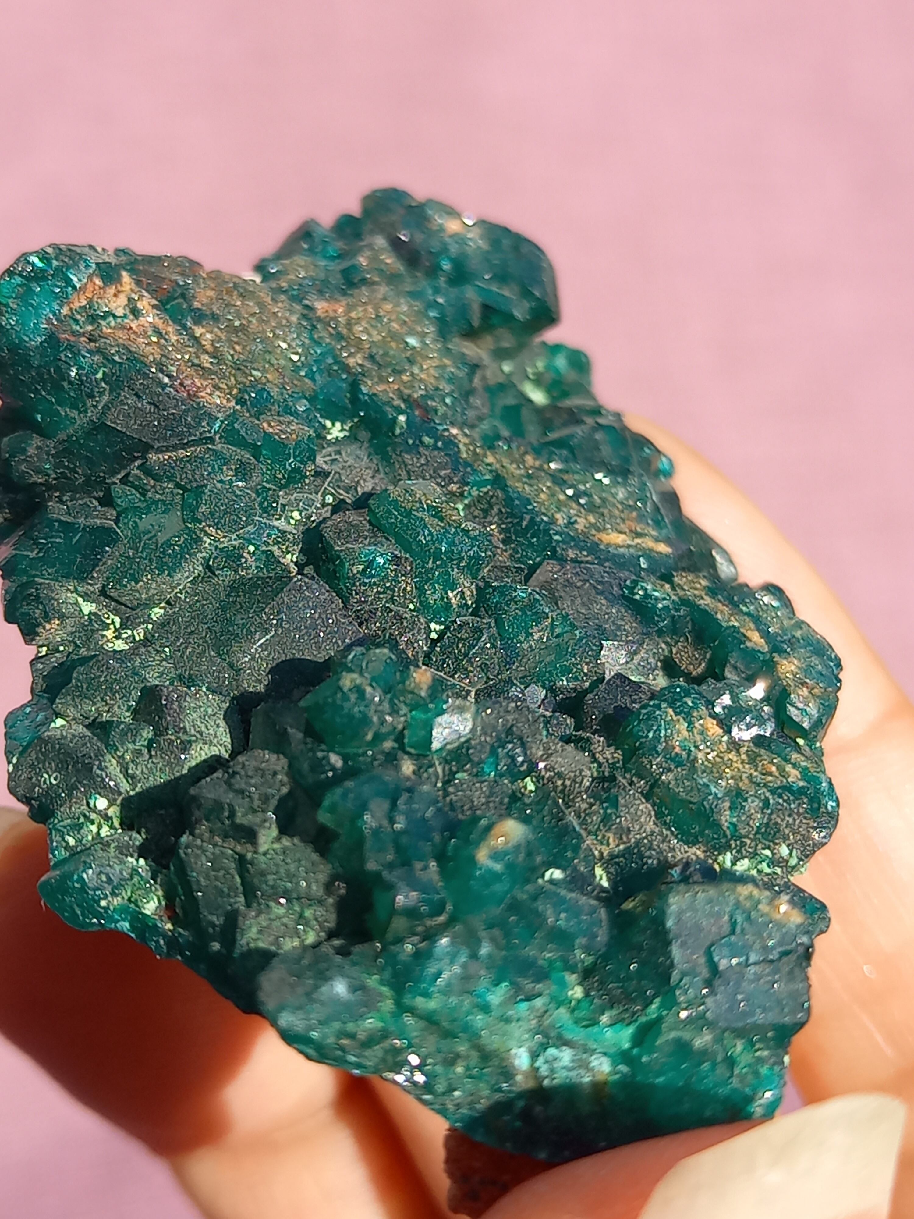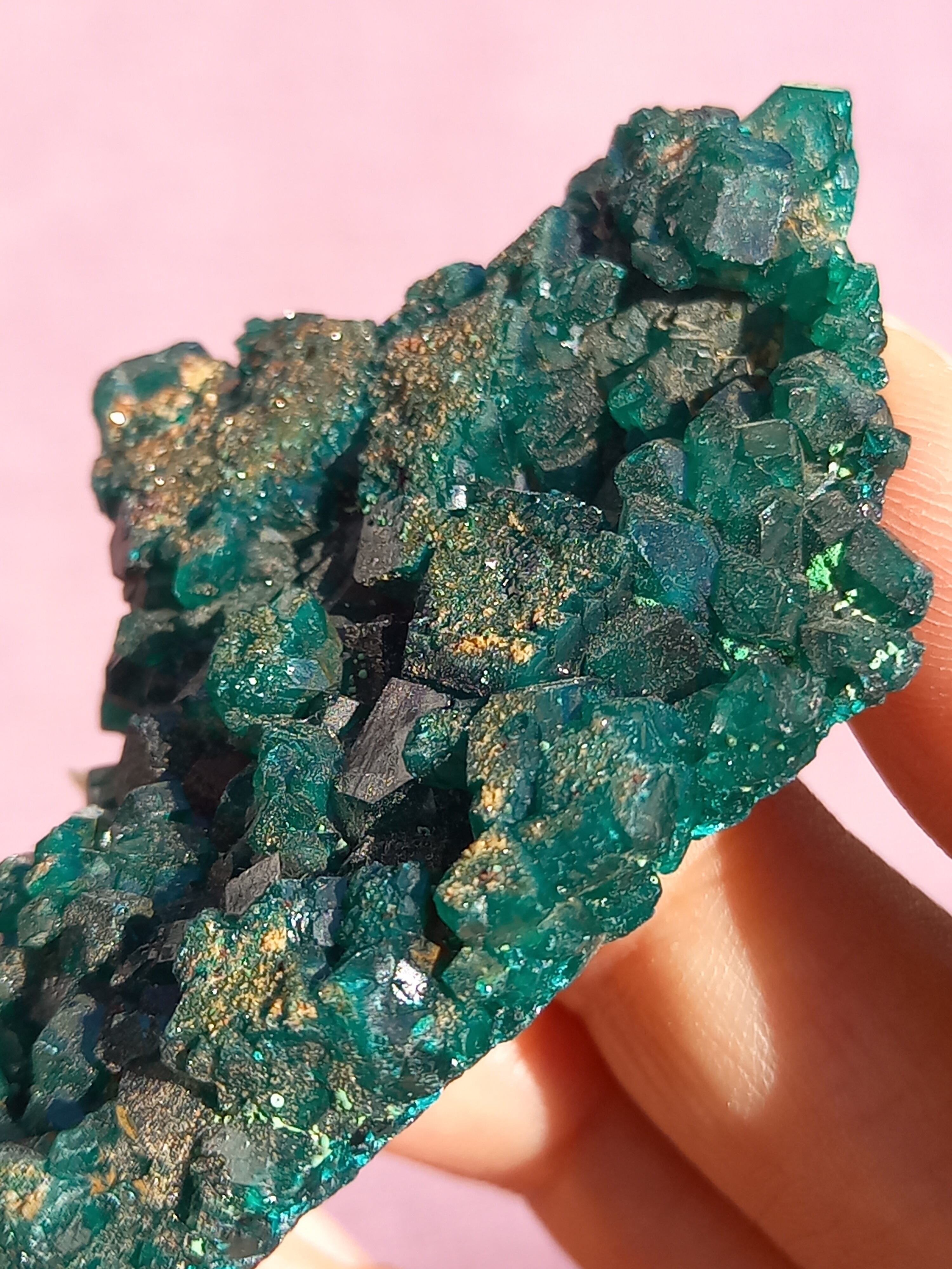 深く鮮やかな独特のグリーンが特徴のダイオプテーズの原石です。