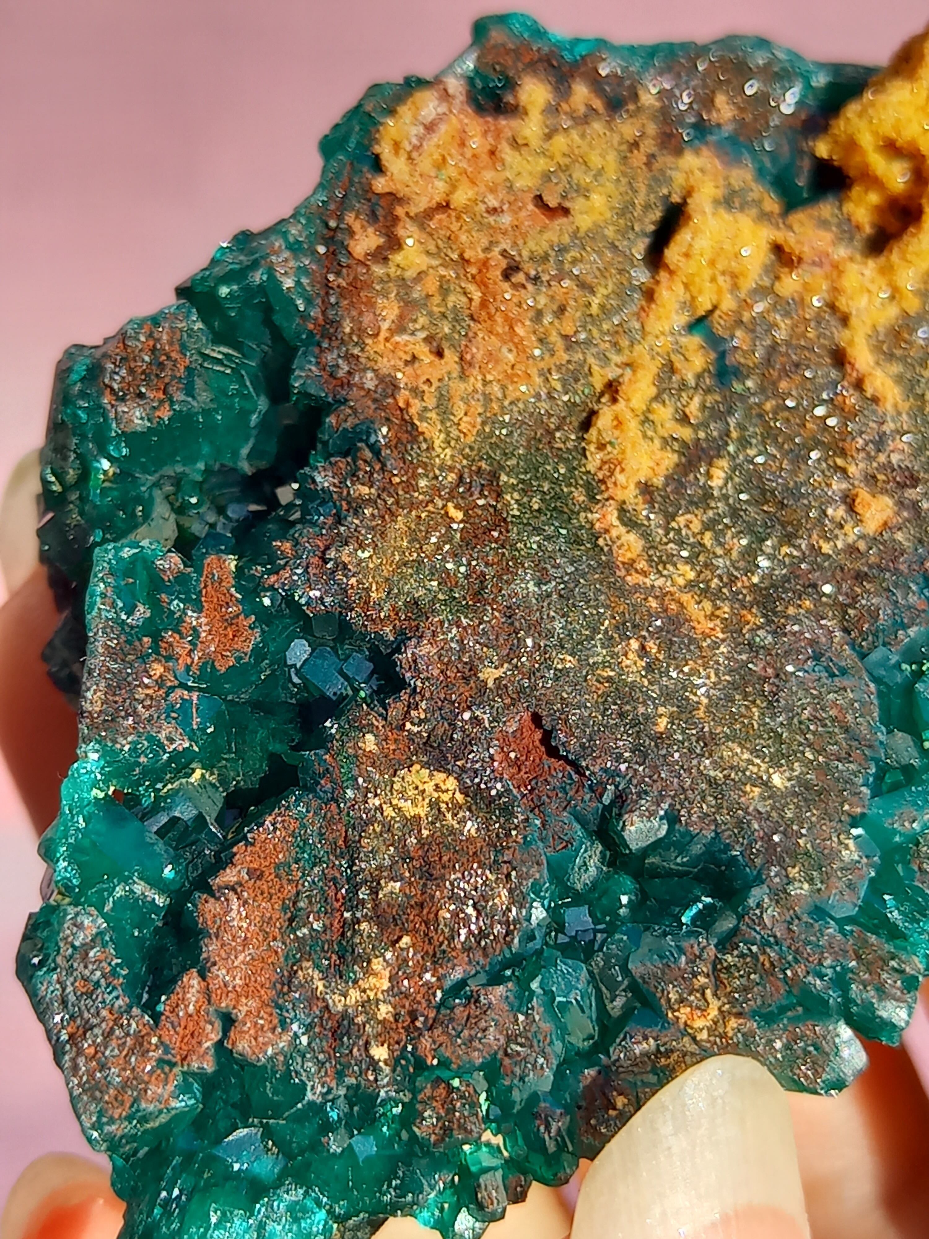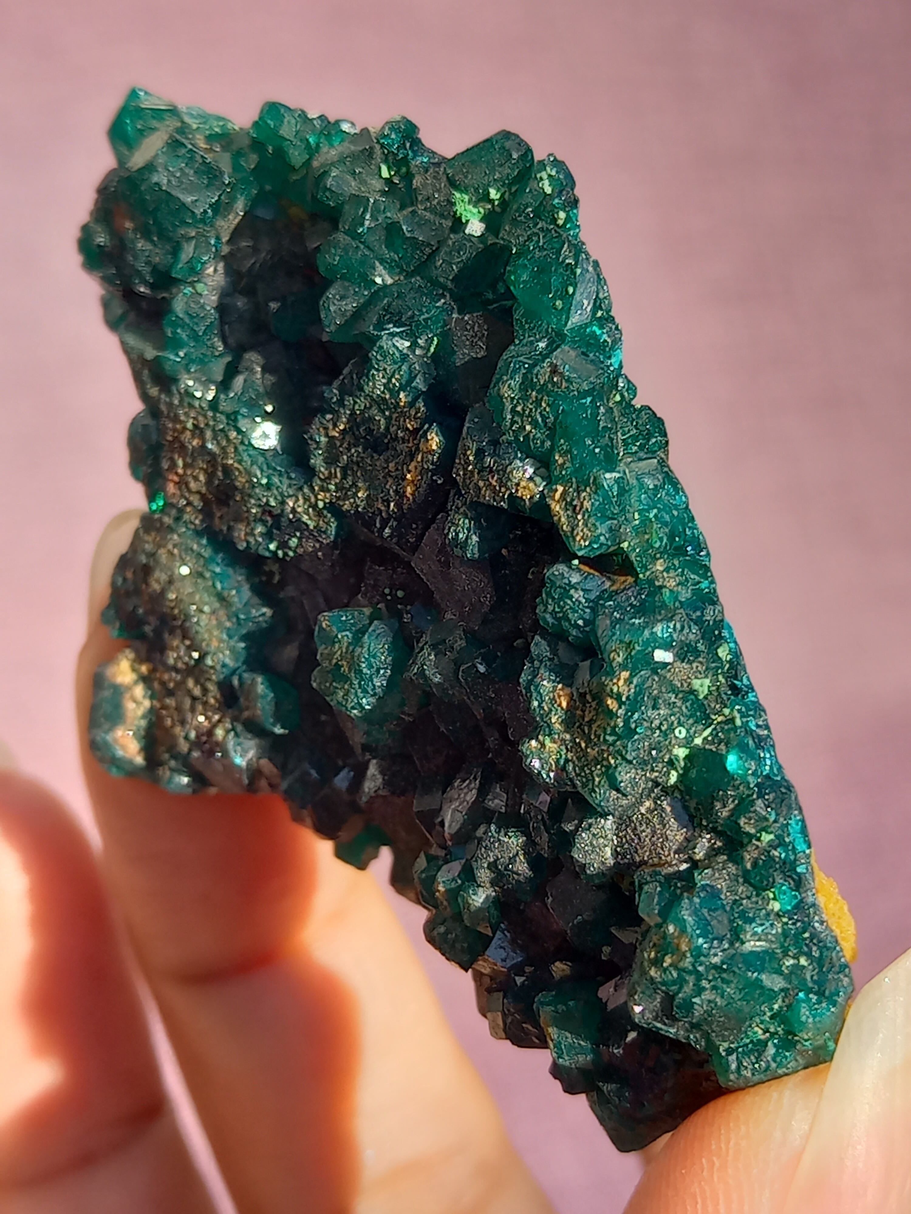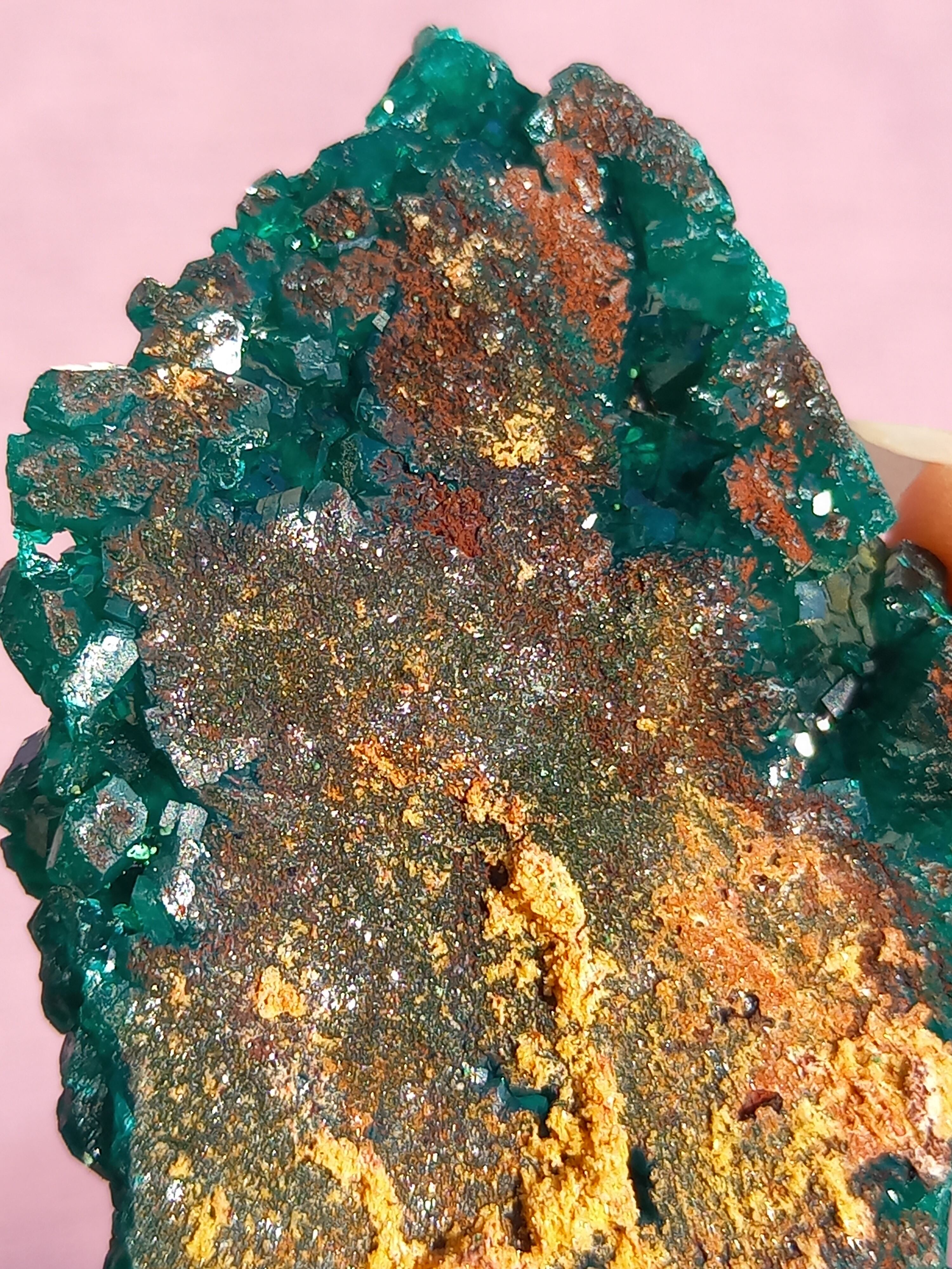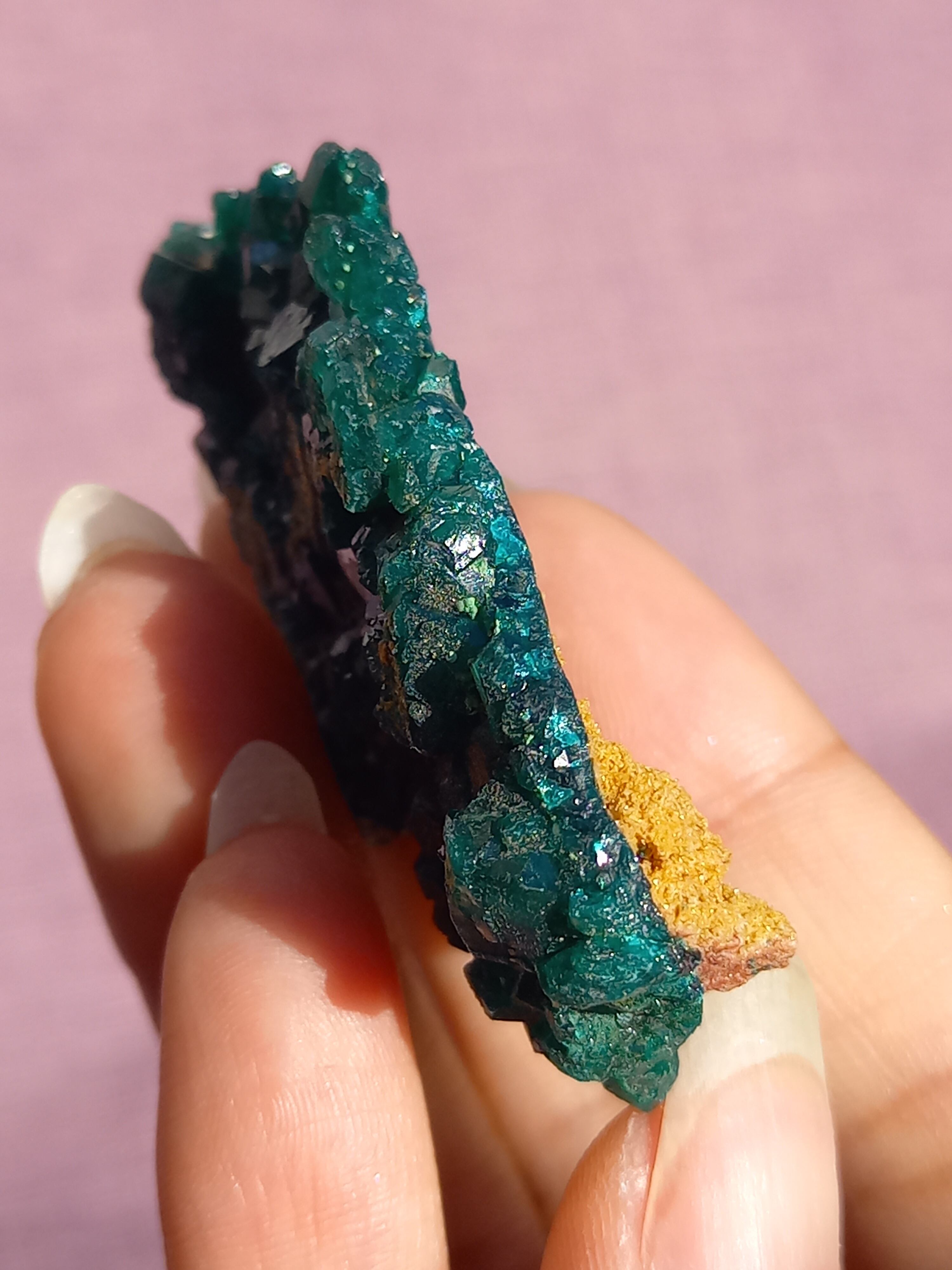深く鮮やかな独特のグリーンが特徴のダイオプテーズの原石です。