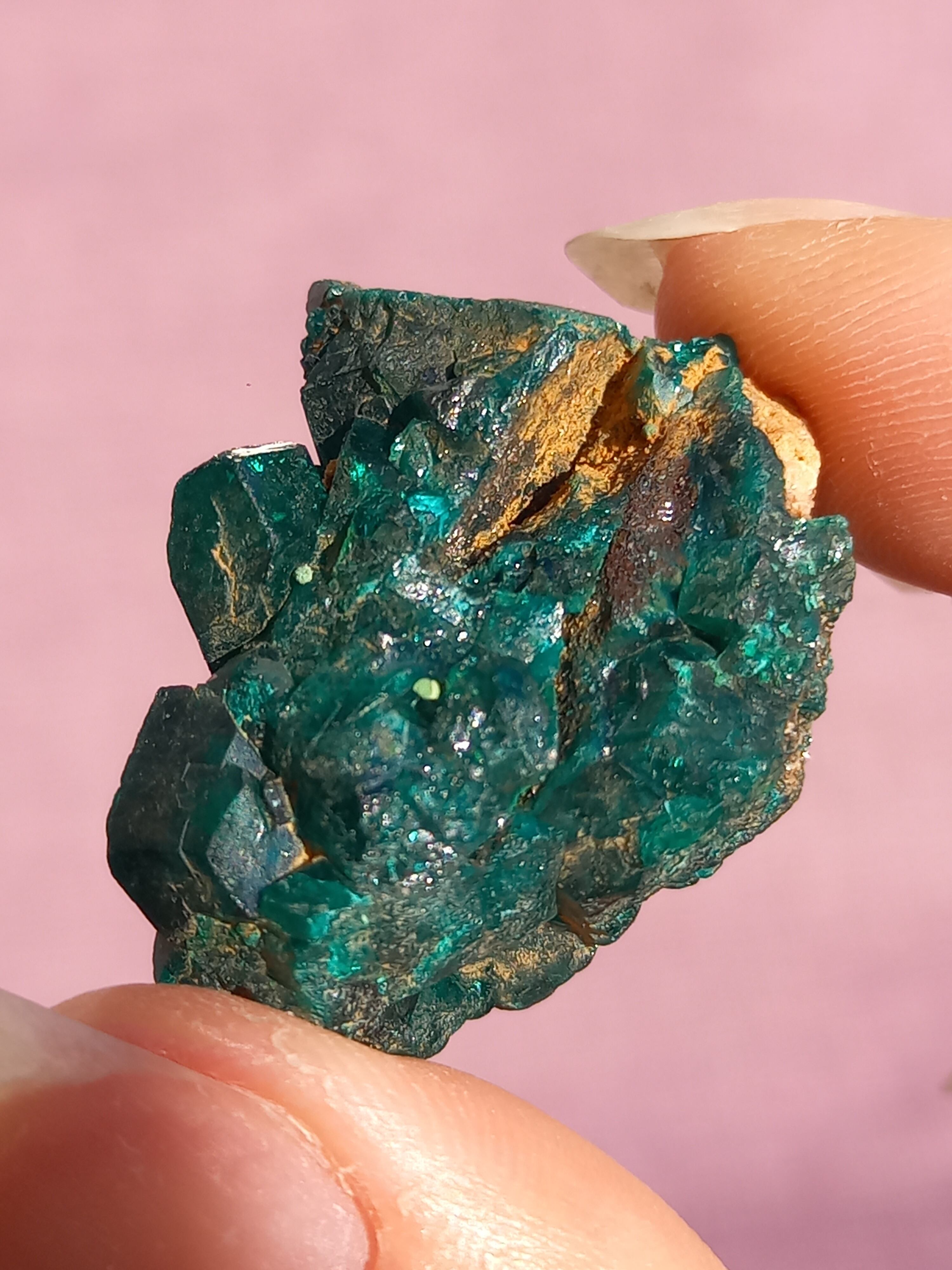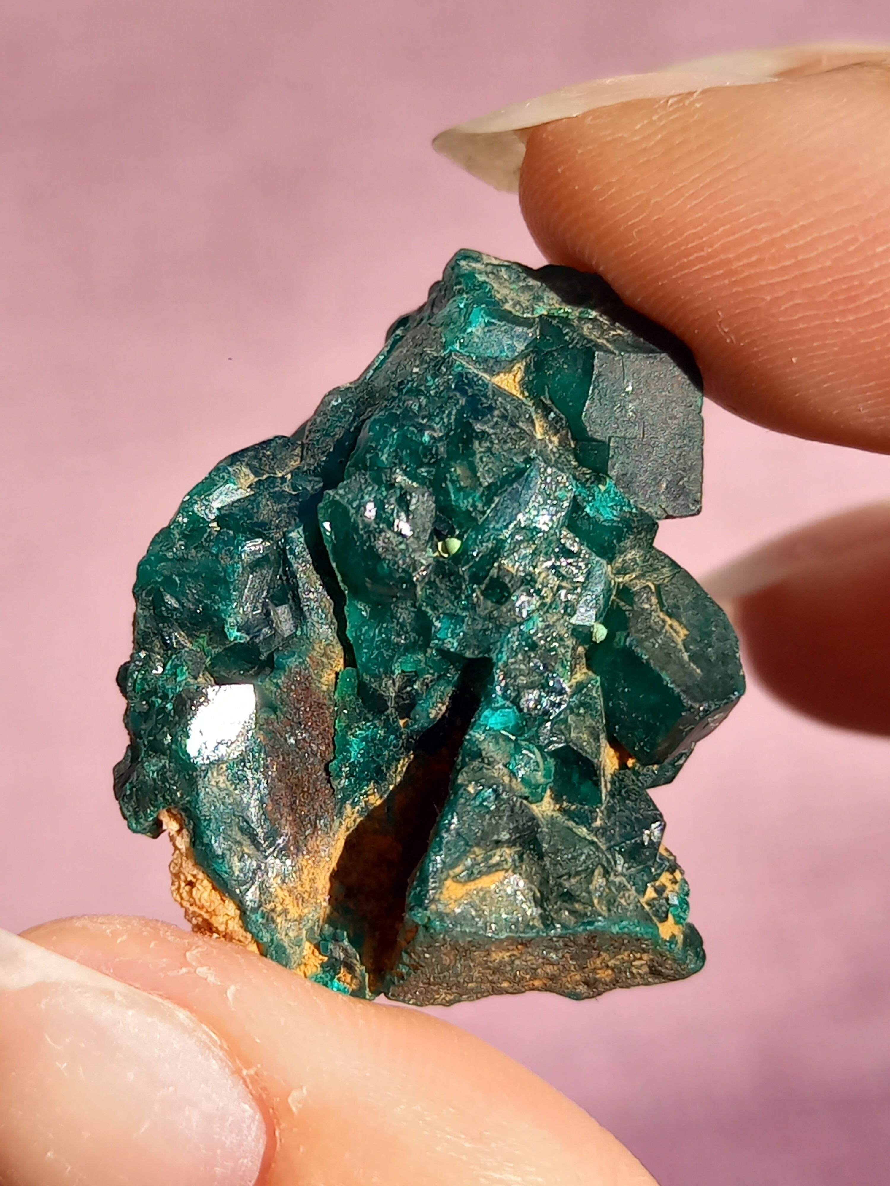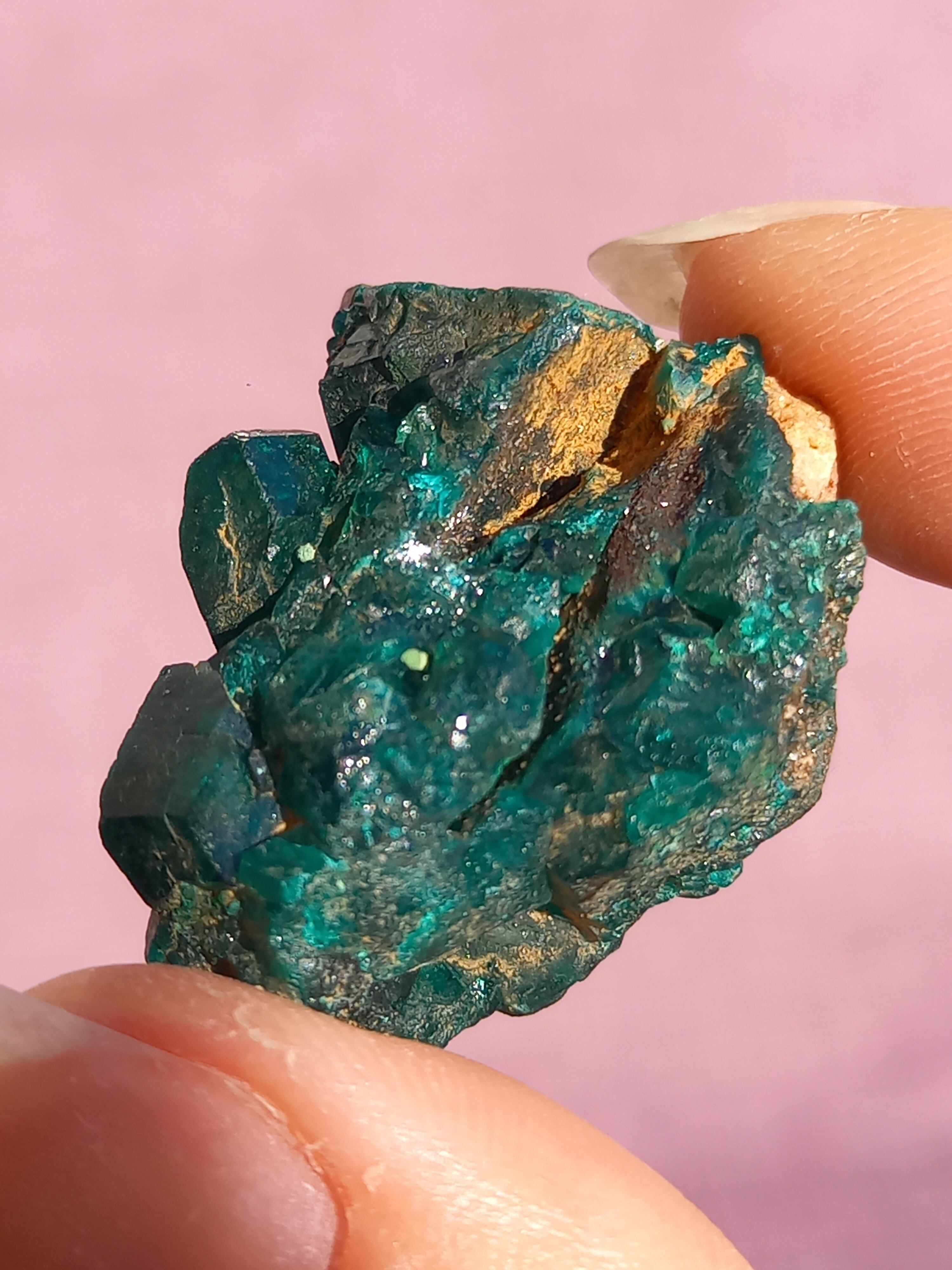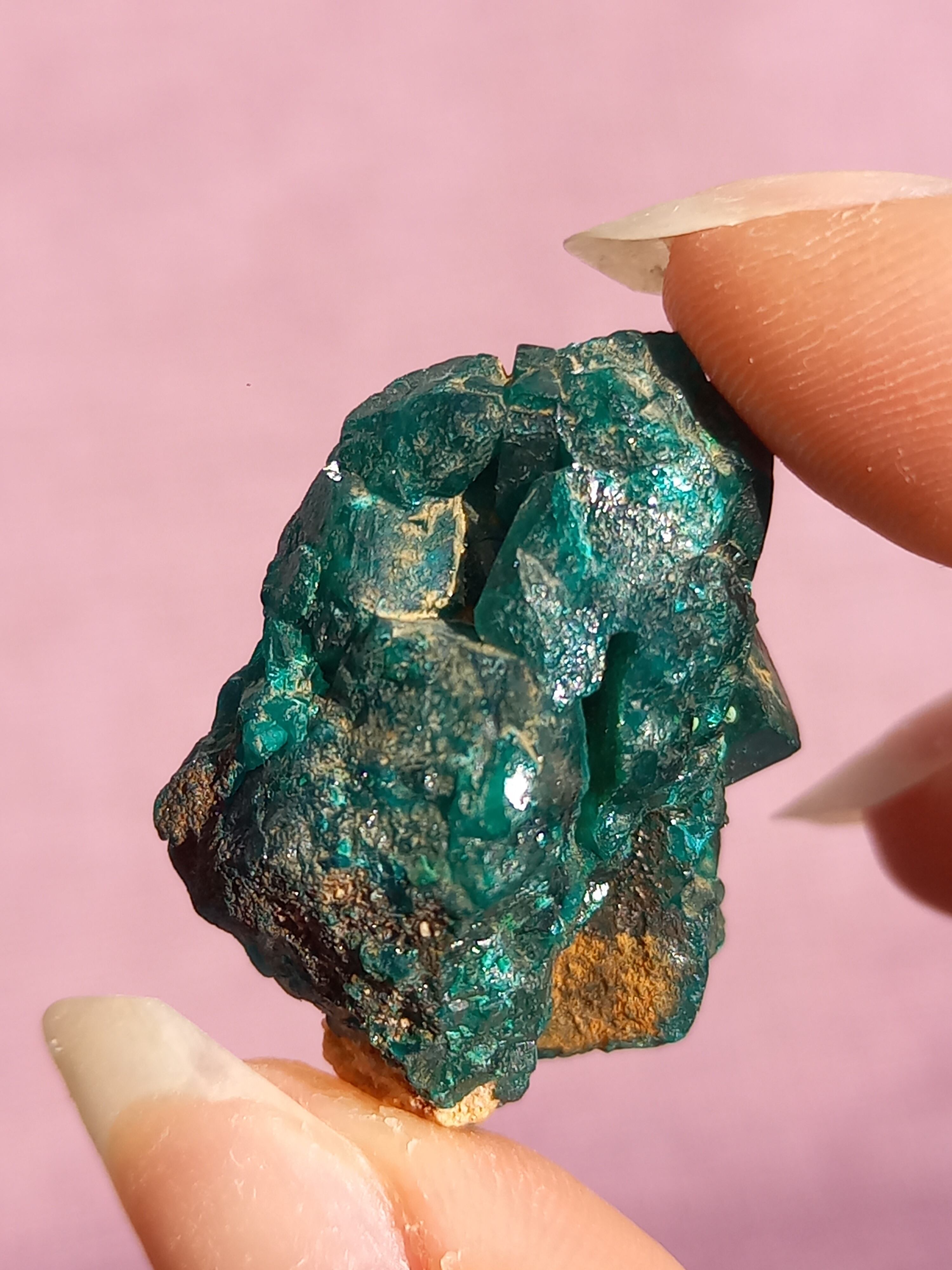 深く鮮やかな独特のグリーンが特徴のダイオプテーズの原石です。