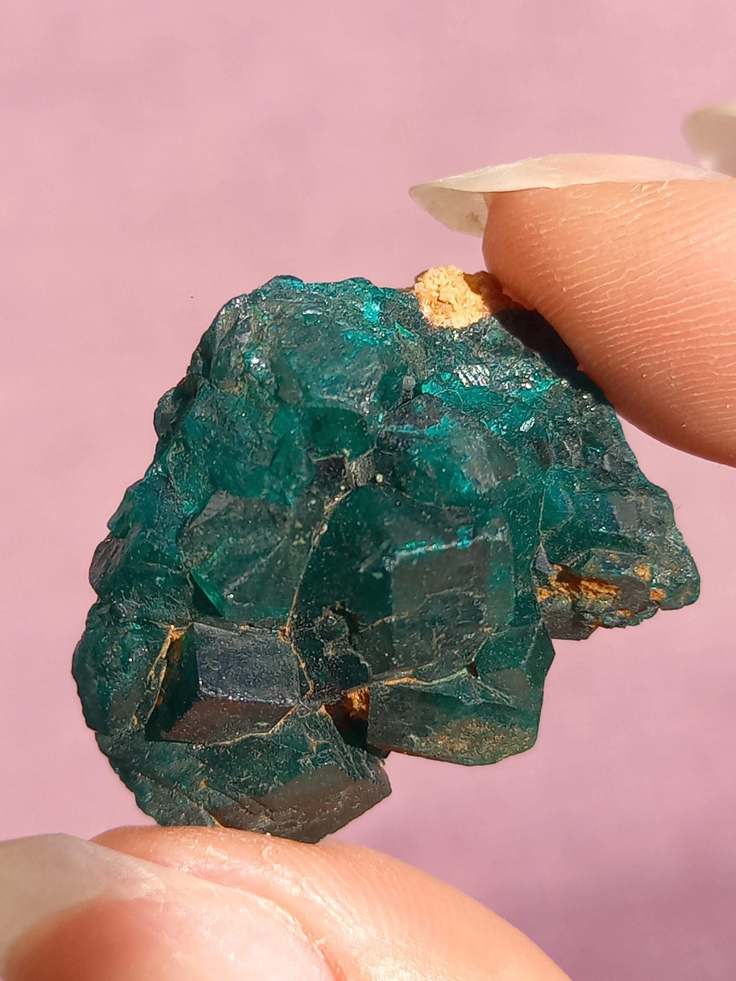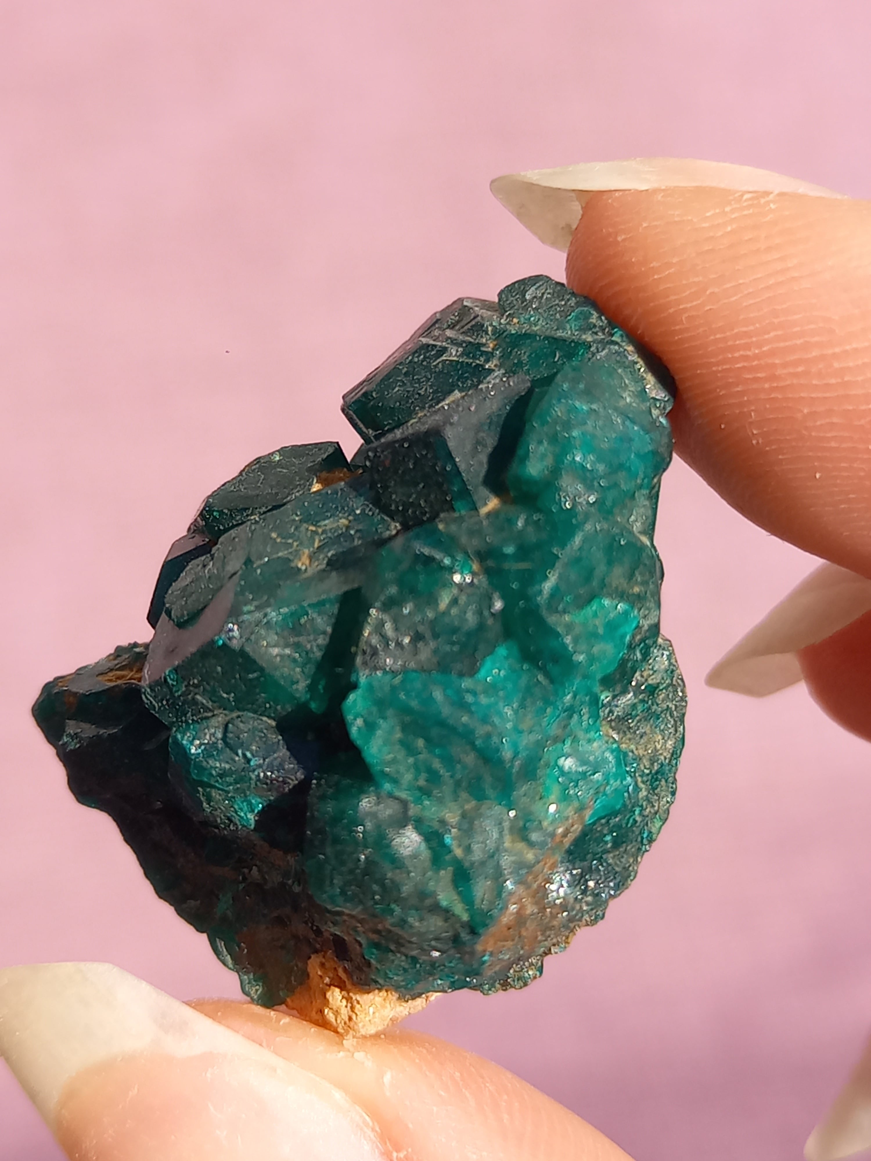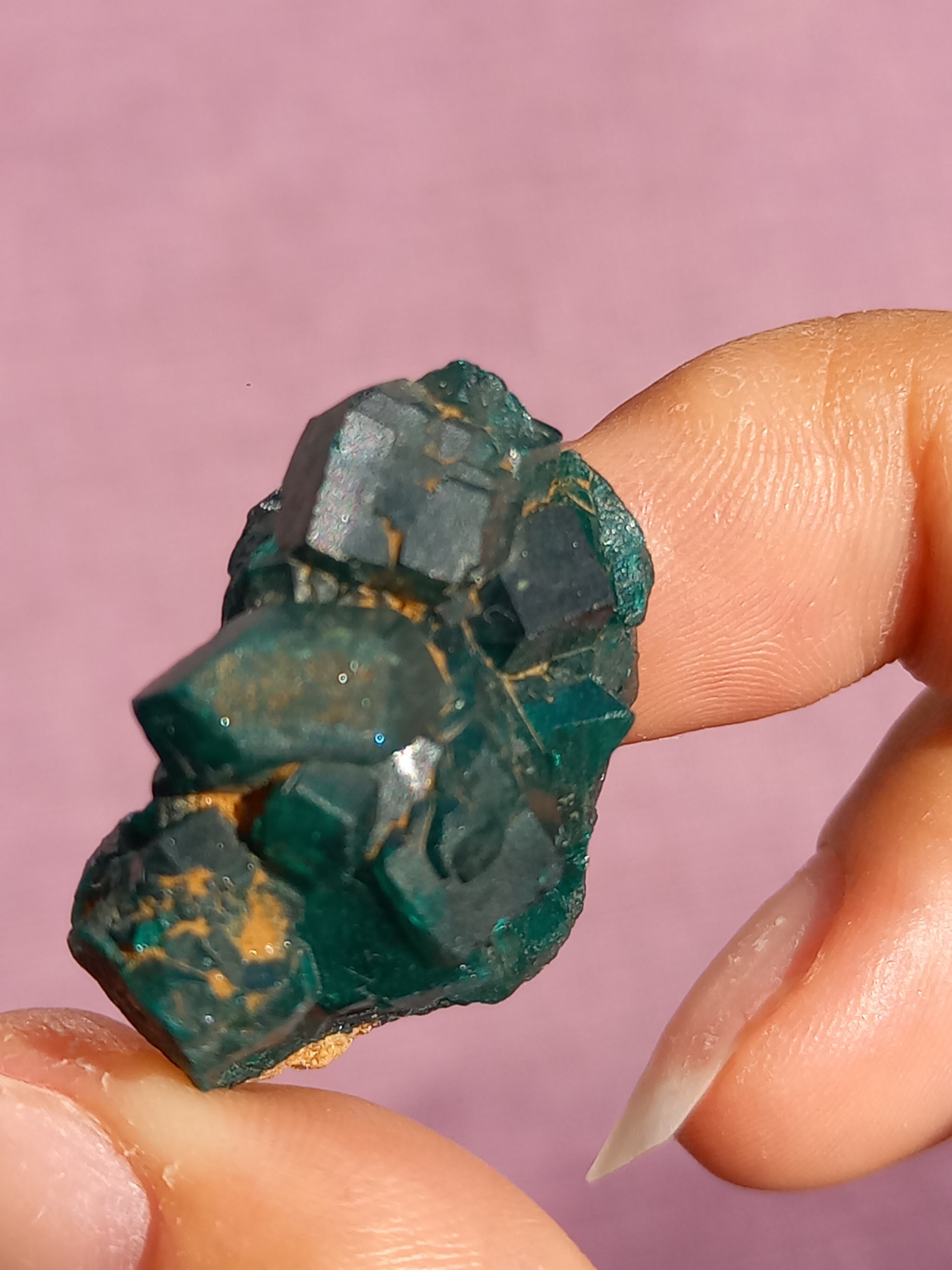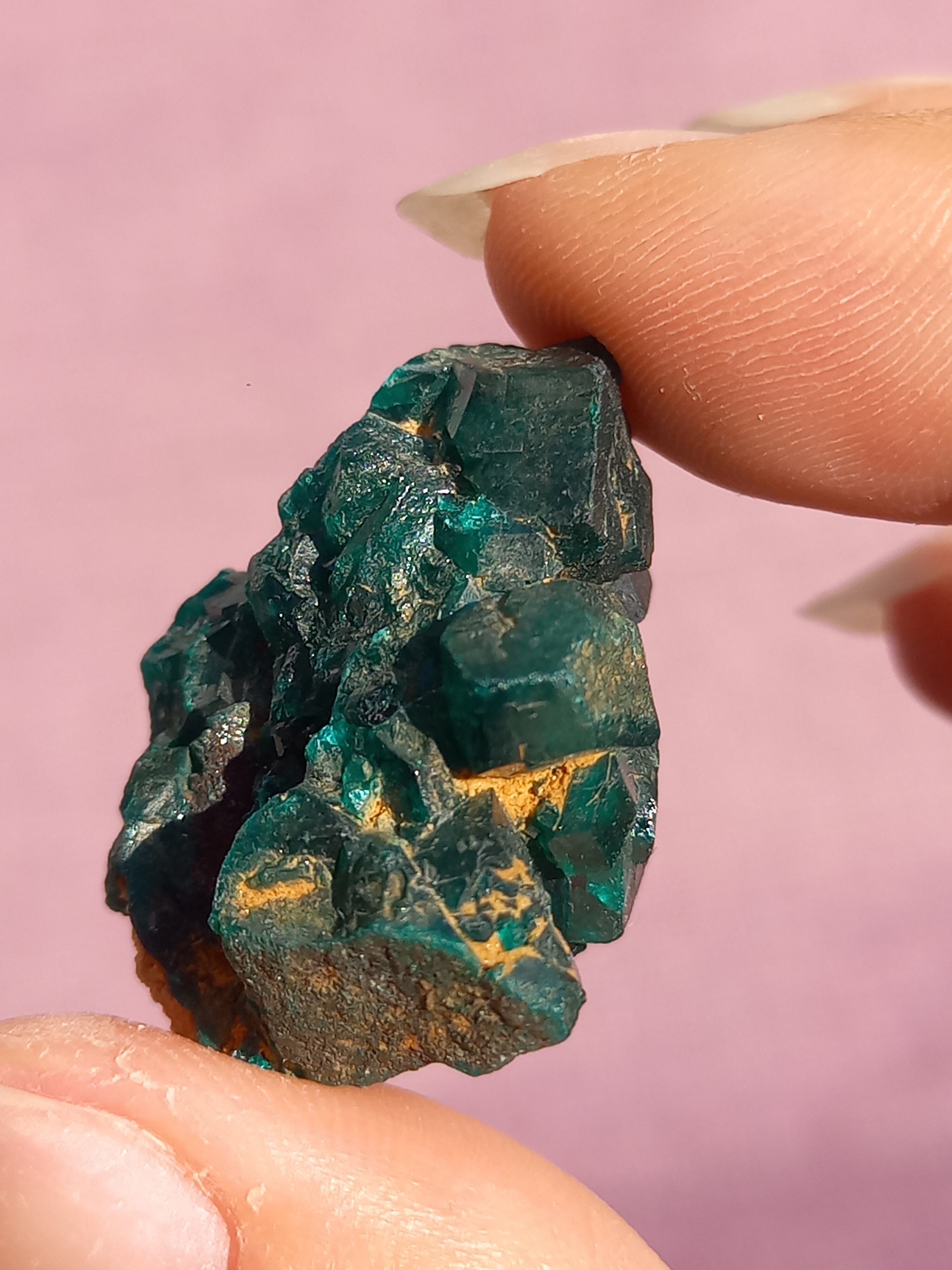 深く鮮やかな独特のグリーンが特徴のダイオプテーズの原石です。
