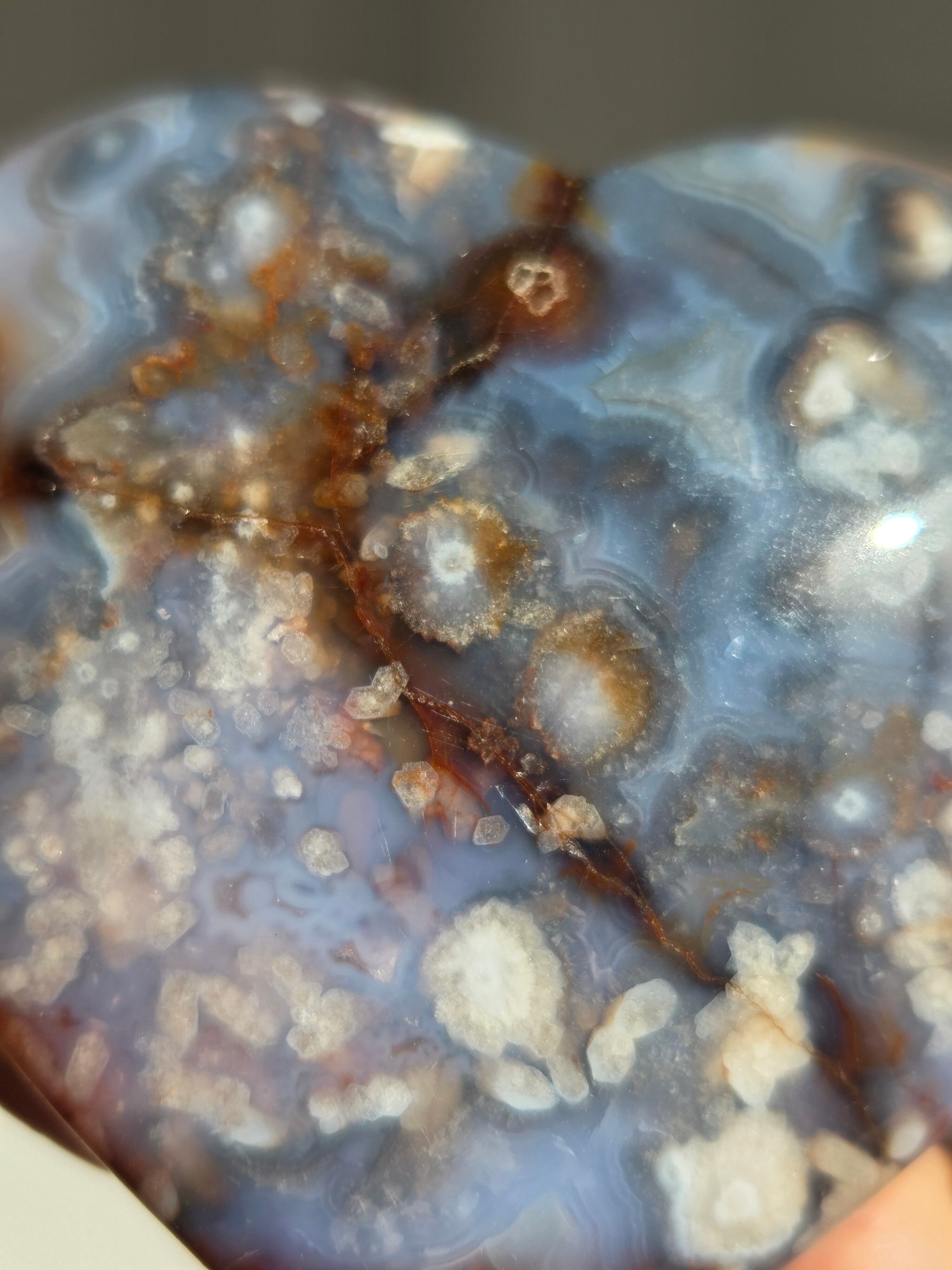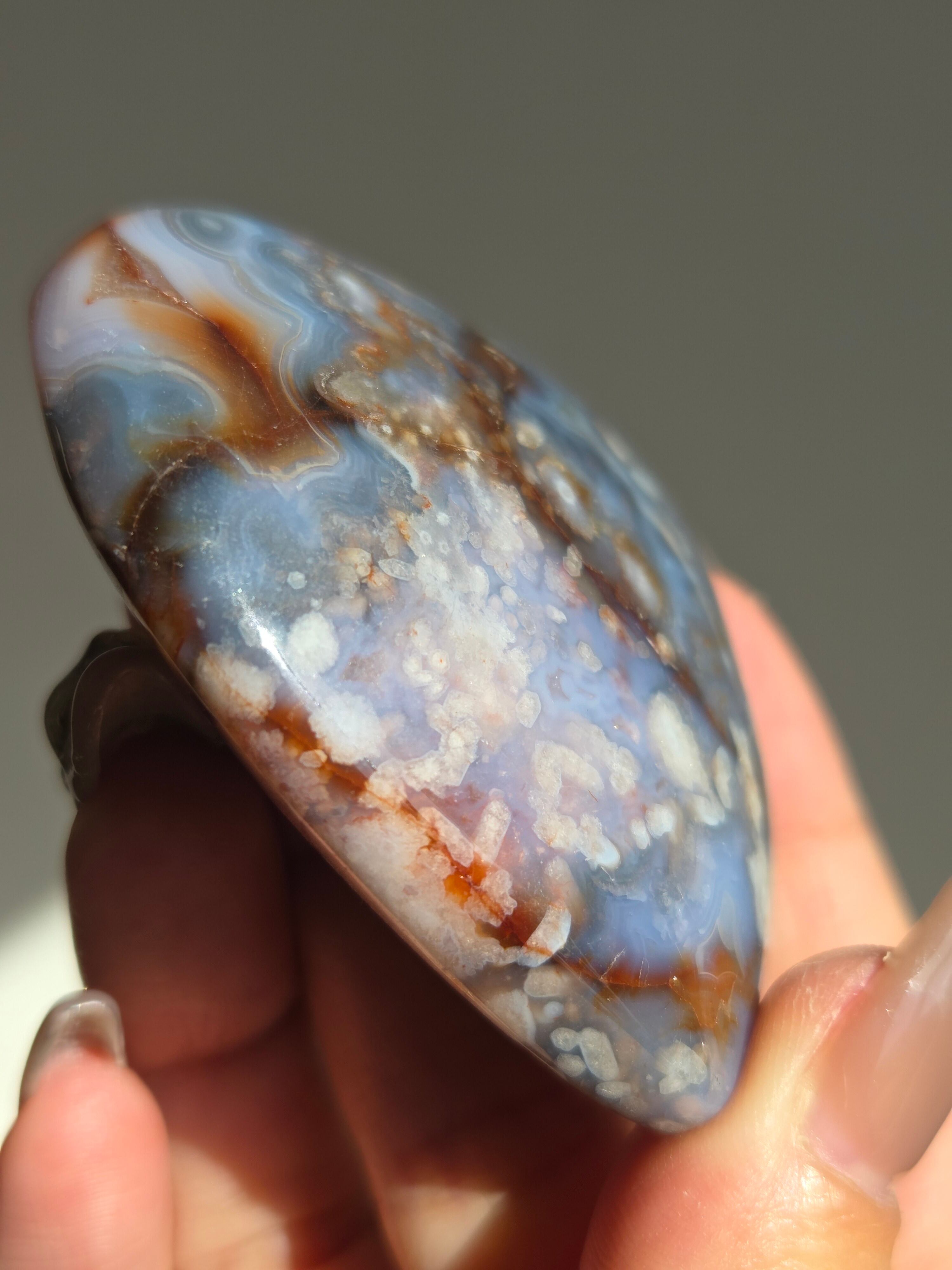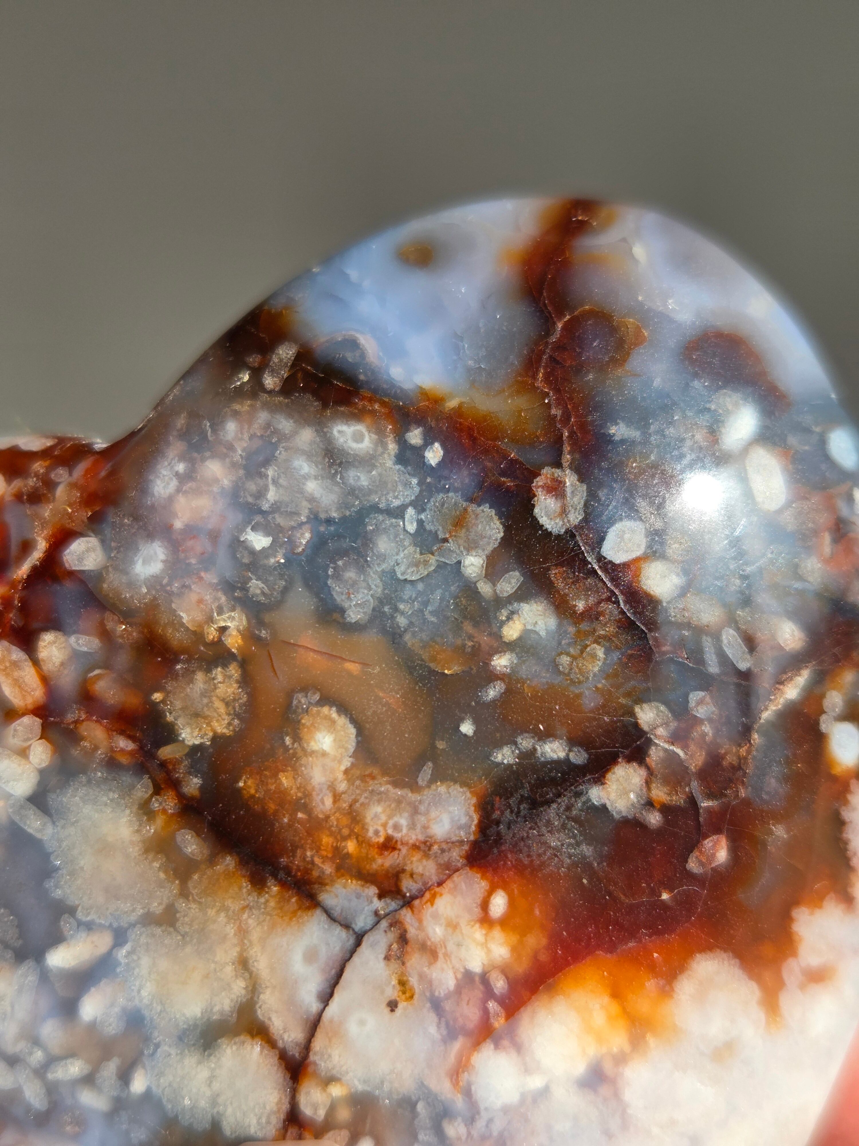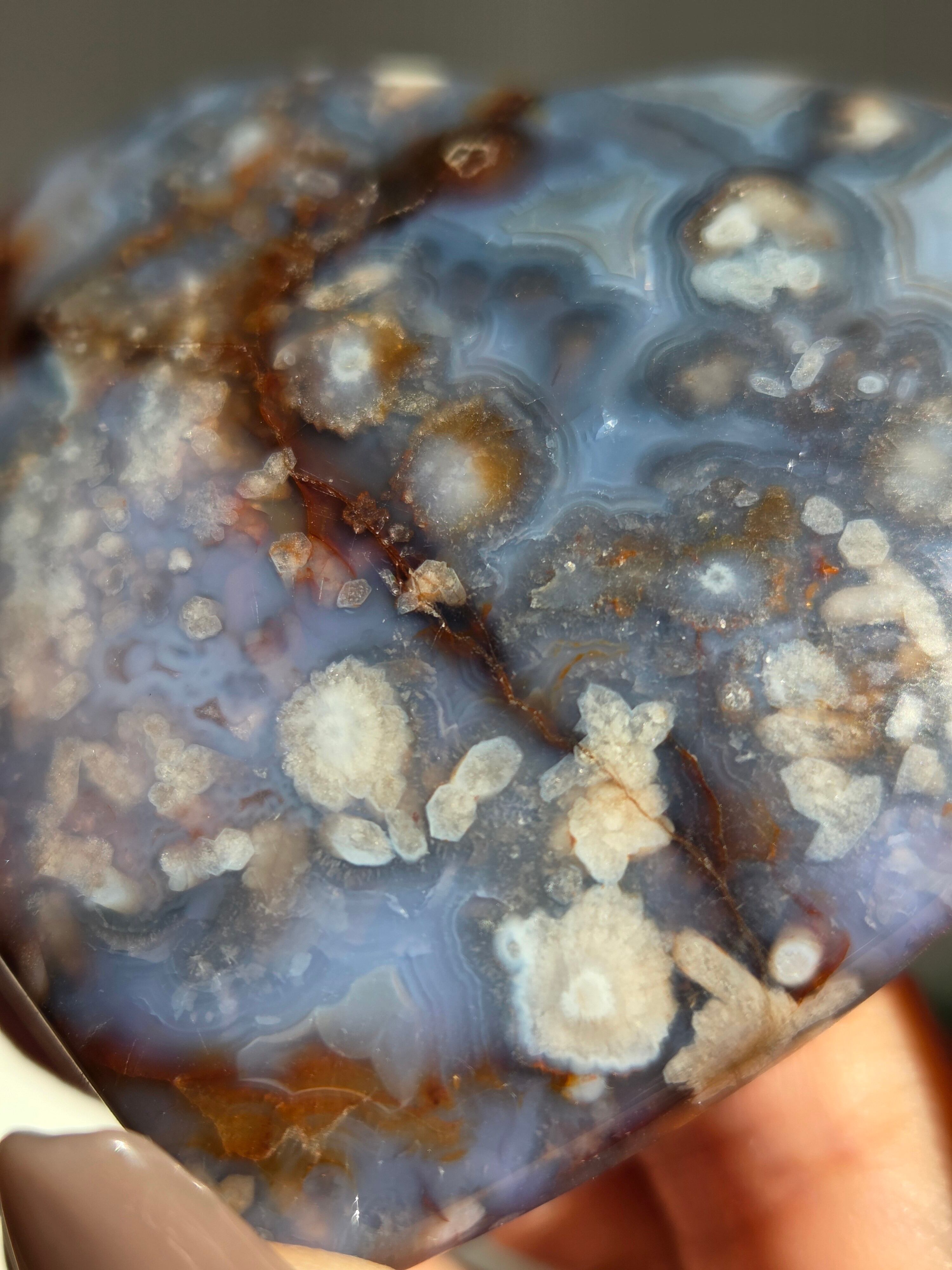 小さな石英の集合体という構造から、寄り集まる、基盤を作る、絆を深めるなどの意味があります。 アゲートは金運、人間関係運、愛情運、仕事運、健康運など、あらゆる運気に対応するオールマイティさが魅力です。 フラワーアゲートはこれらの効果はもちろんのこと、特に愛情に関する願いにパワーを発揮すると言われています