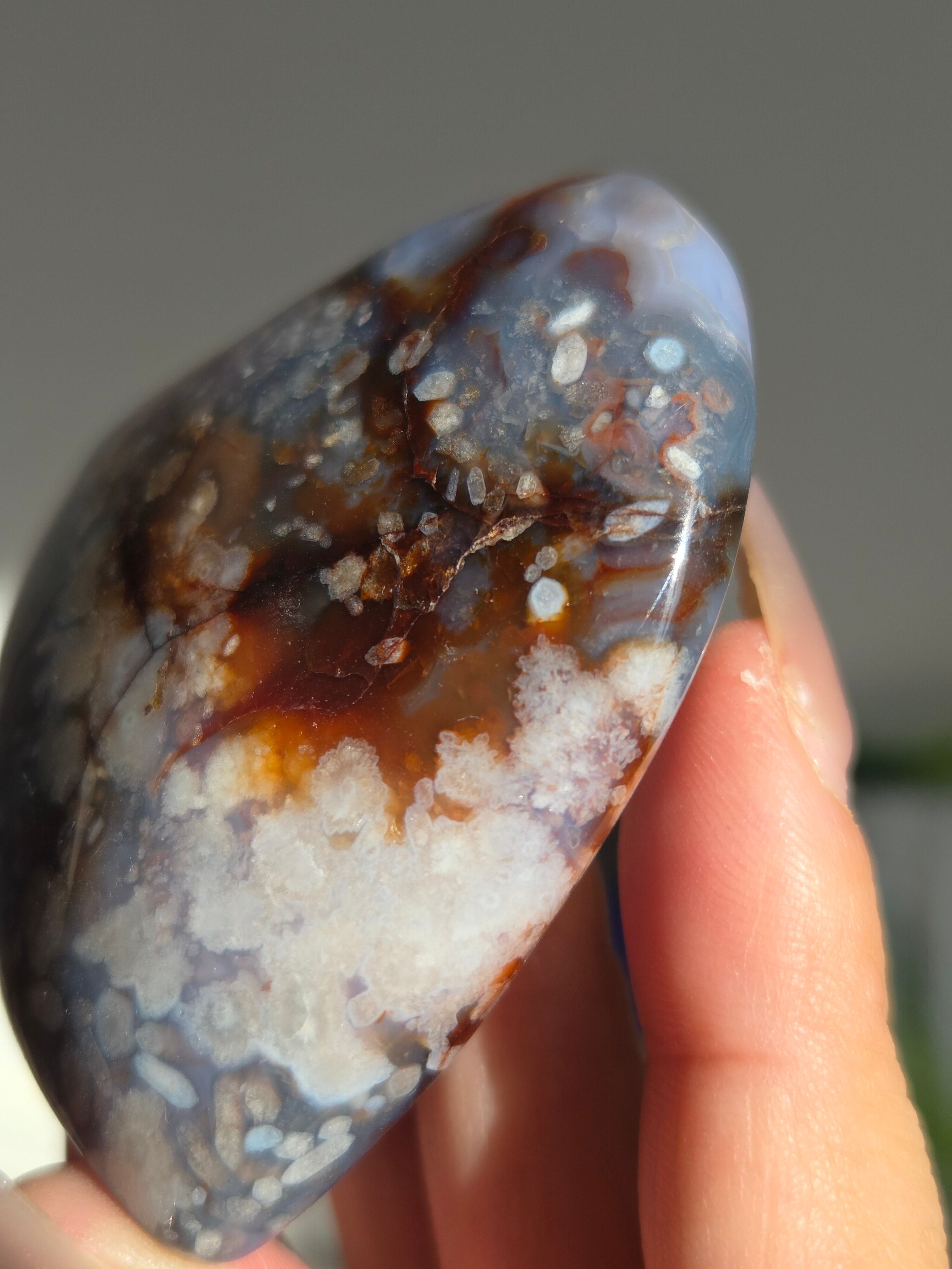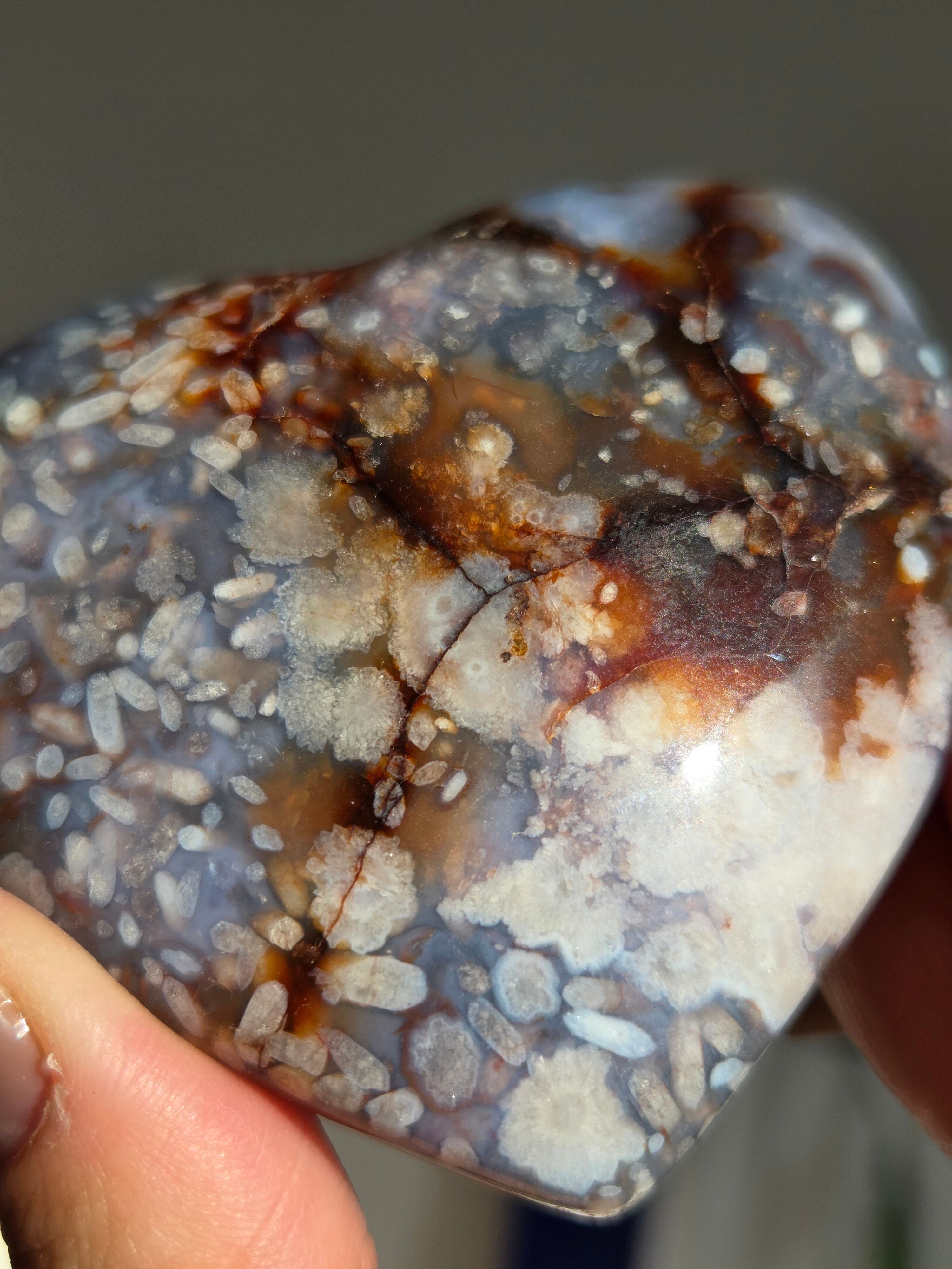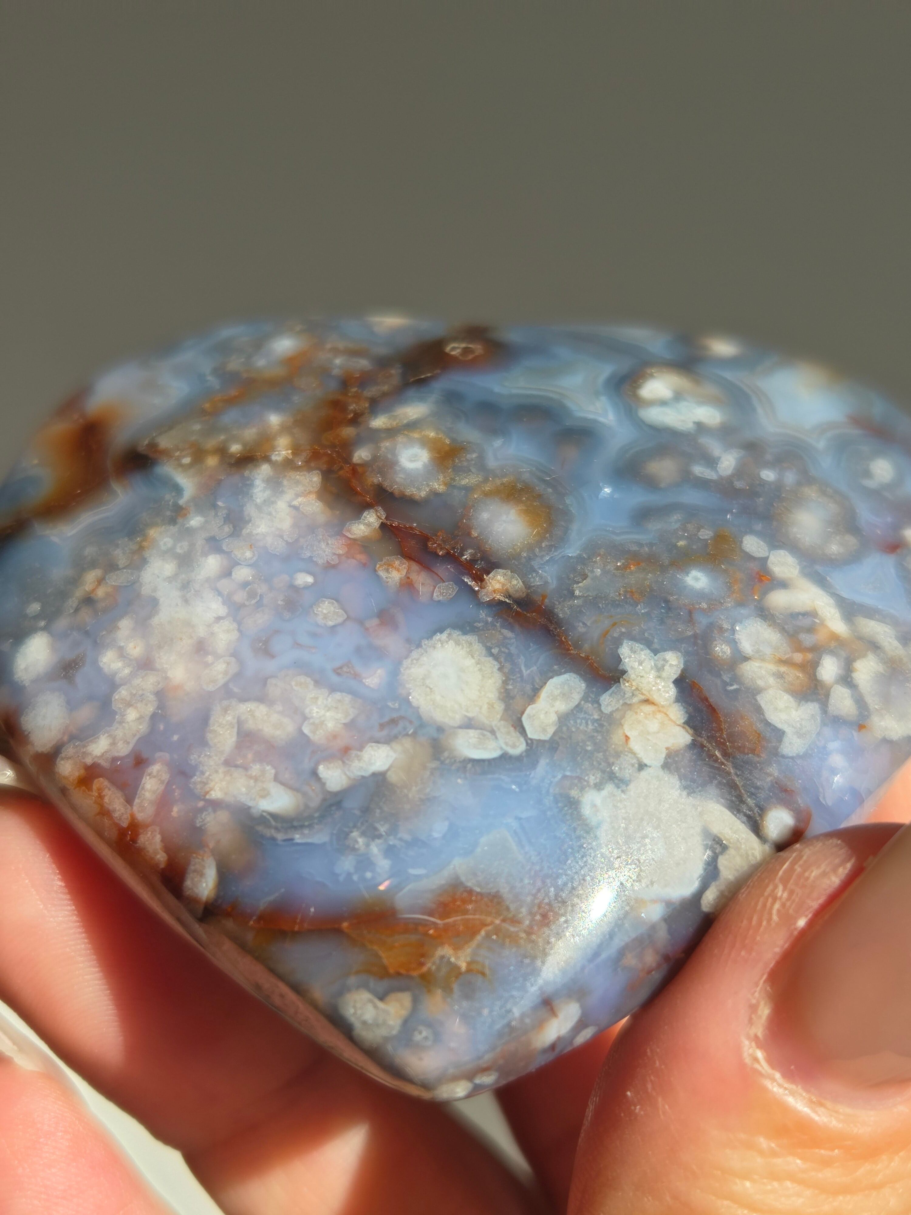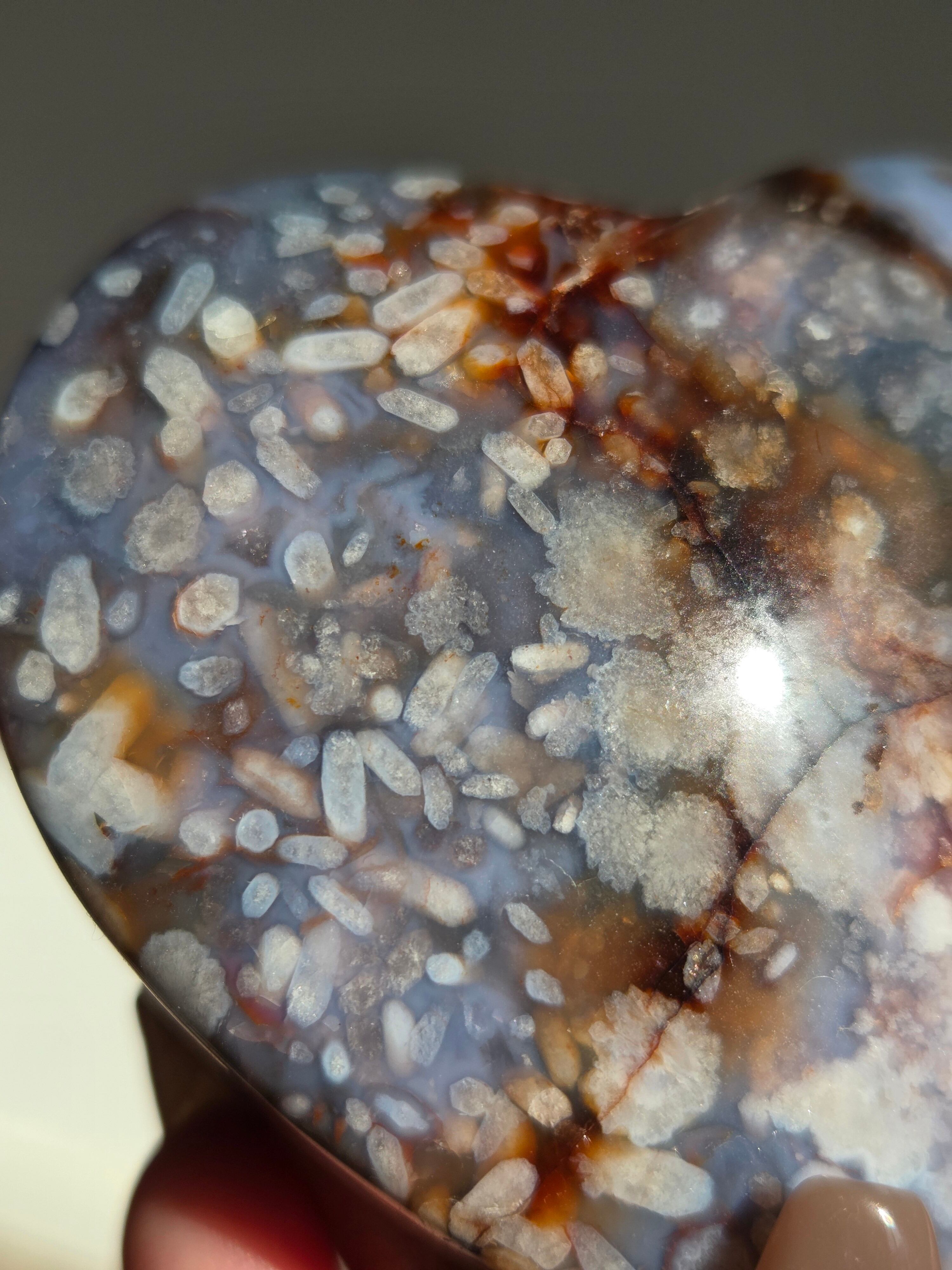 小さな石英の集合体という構造から、寄り集まる、基盤を作る、絆を深めるなどの意味があります。 アゲートは金運、人間関係運、愛情運、仕事運、健康運など、あらゆる運気に対応するオールマイティさが魅力です。 フラワーアゲートはこれらの効果はもちろんのこと、特に愛情に関する願いにパワーを発揮すると言われています