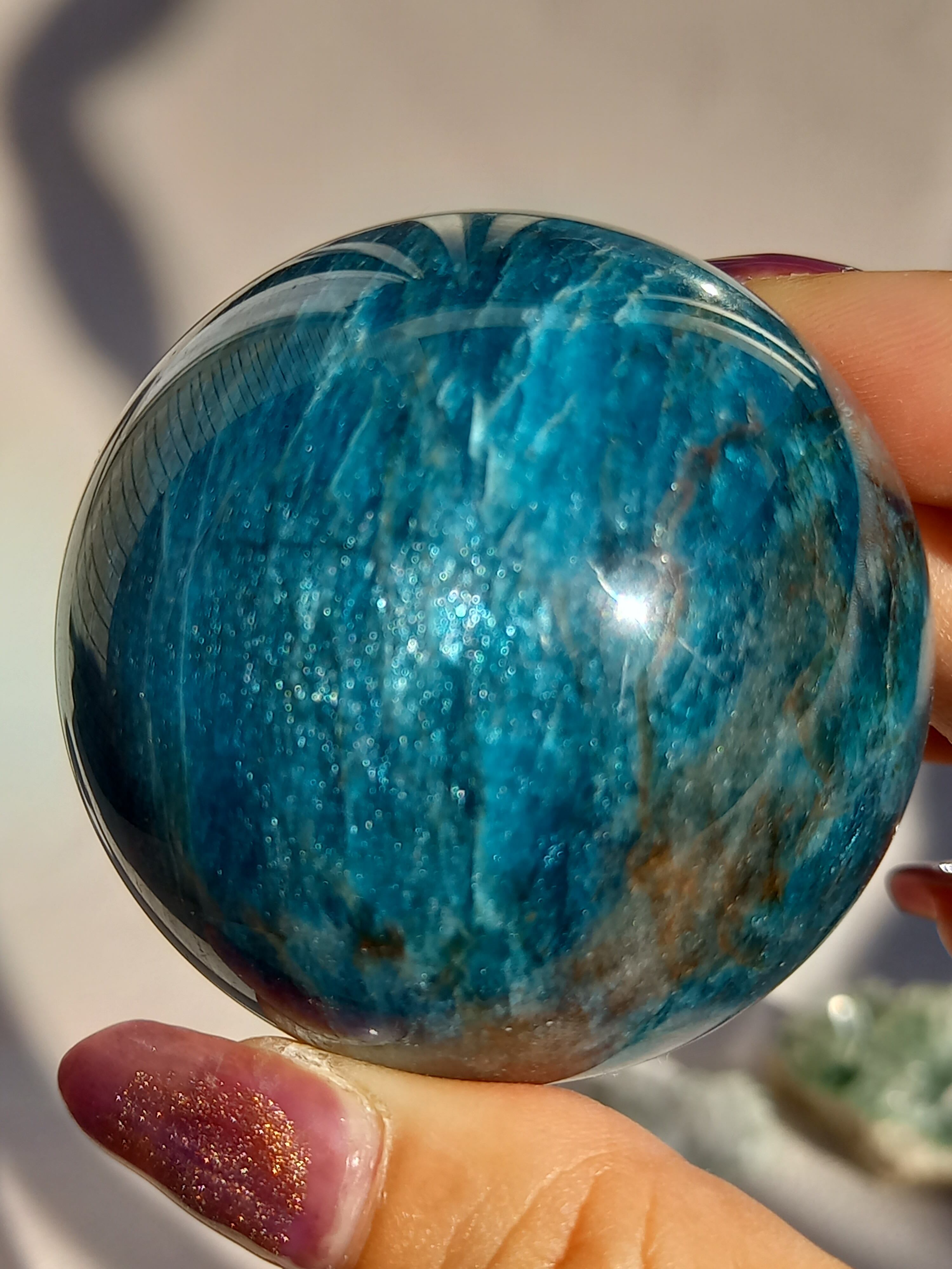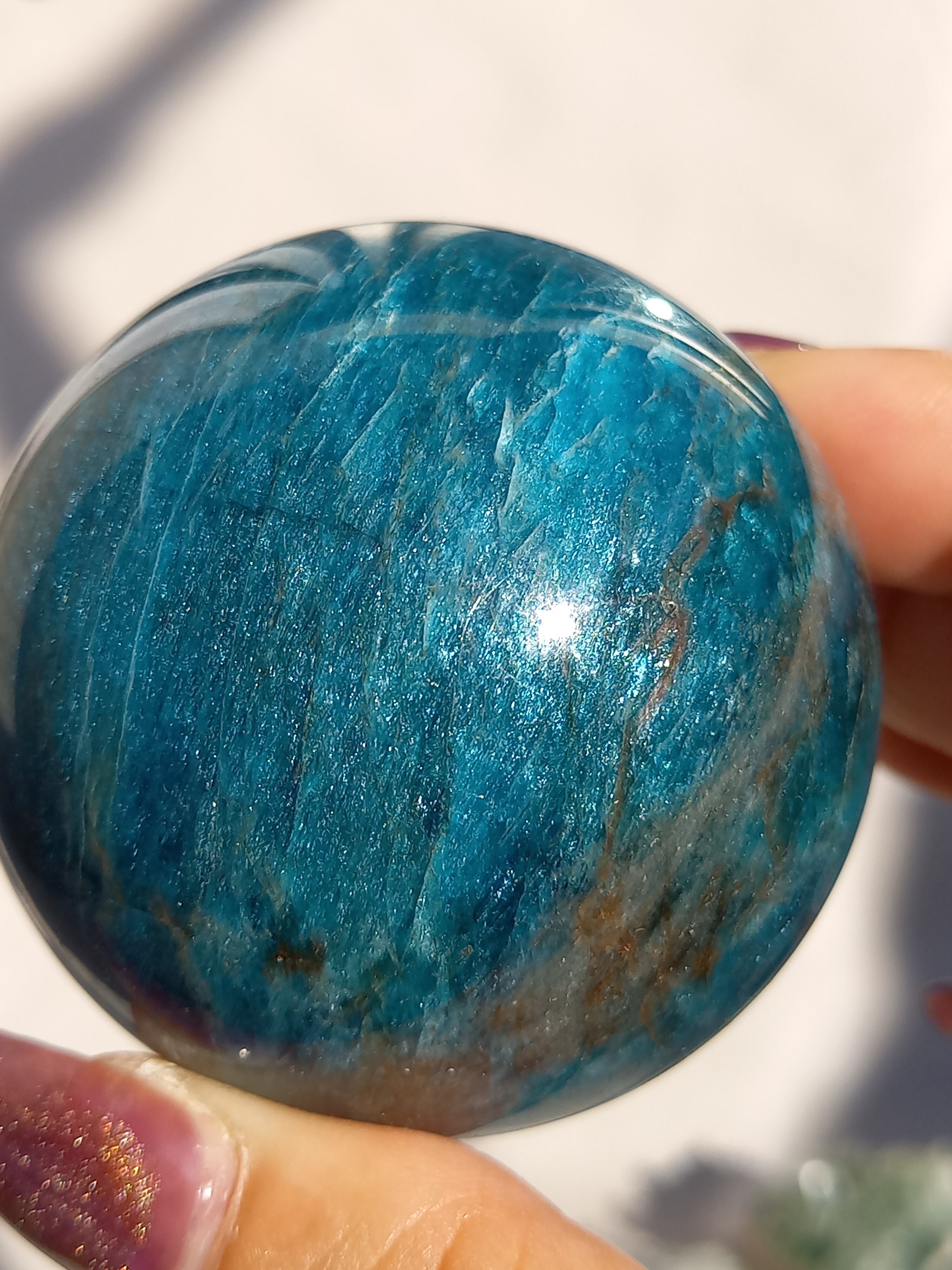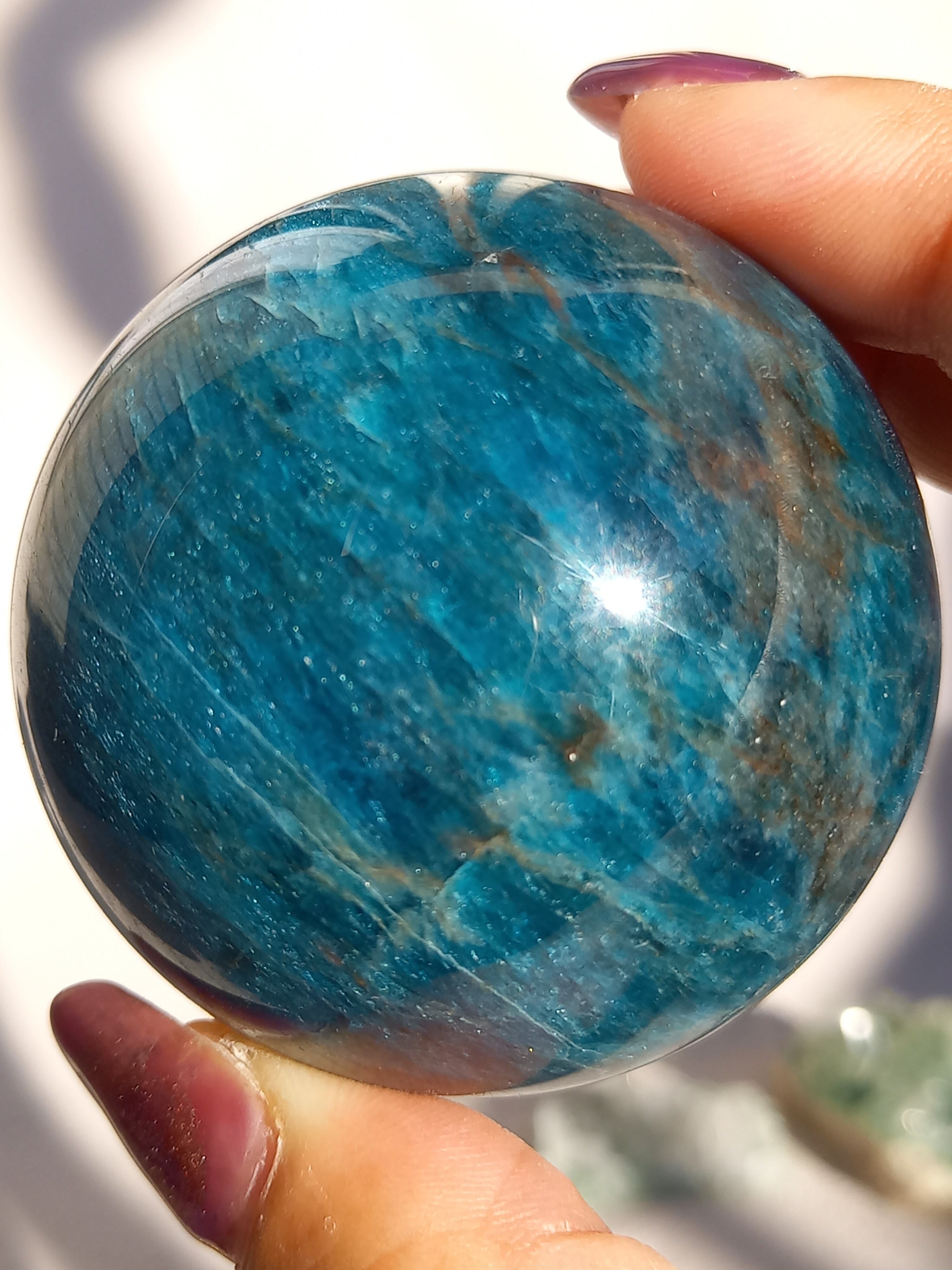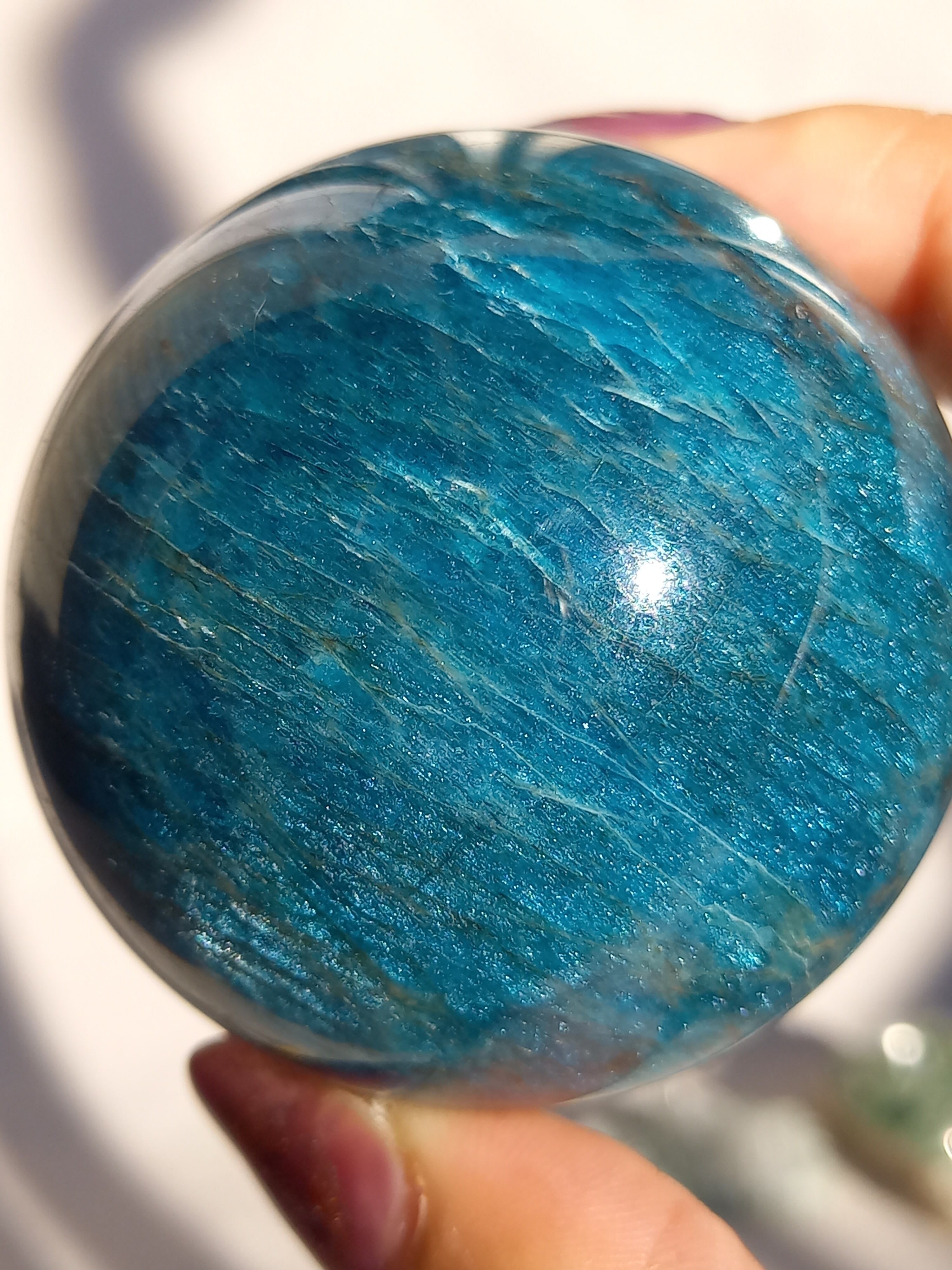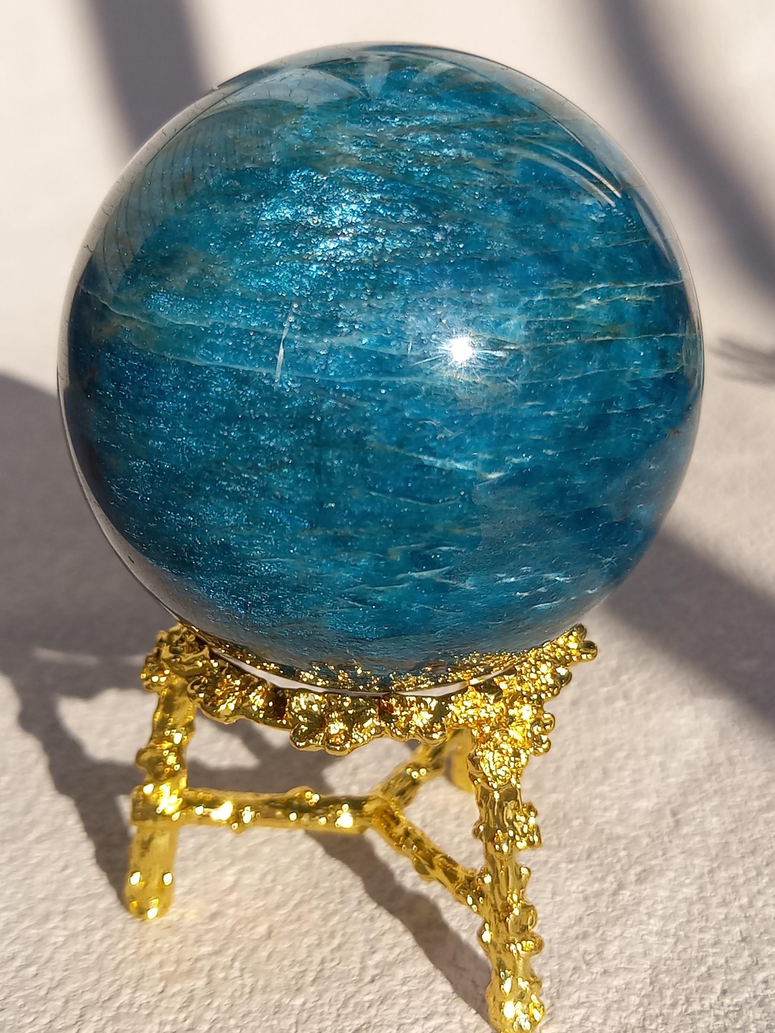鮮やかなブルーと、シラーが特徴のアパタイトです。