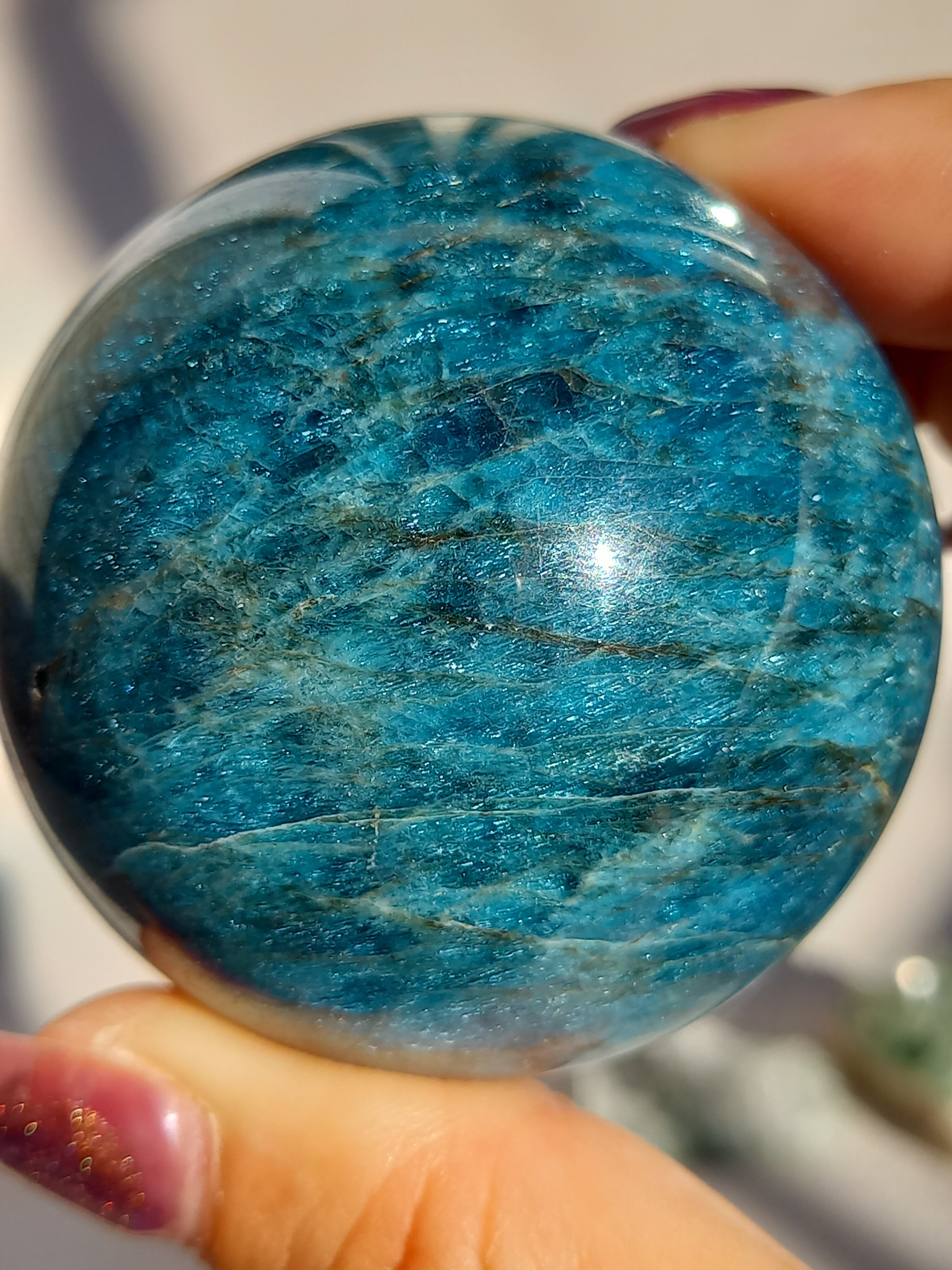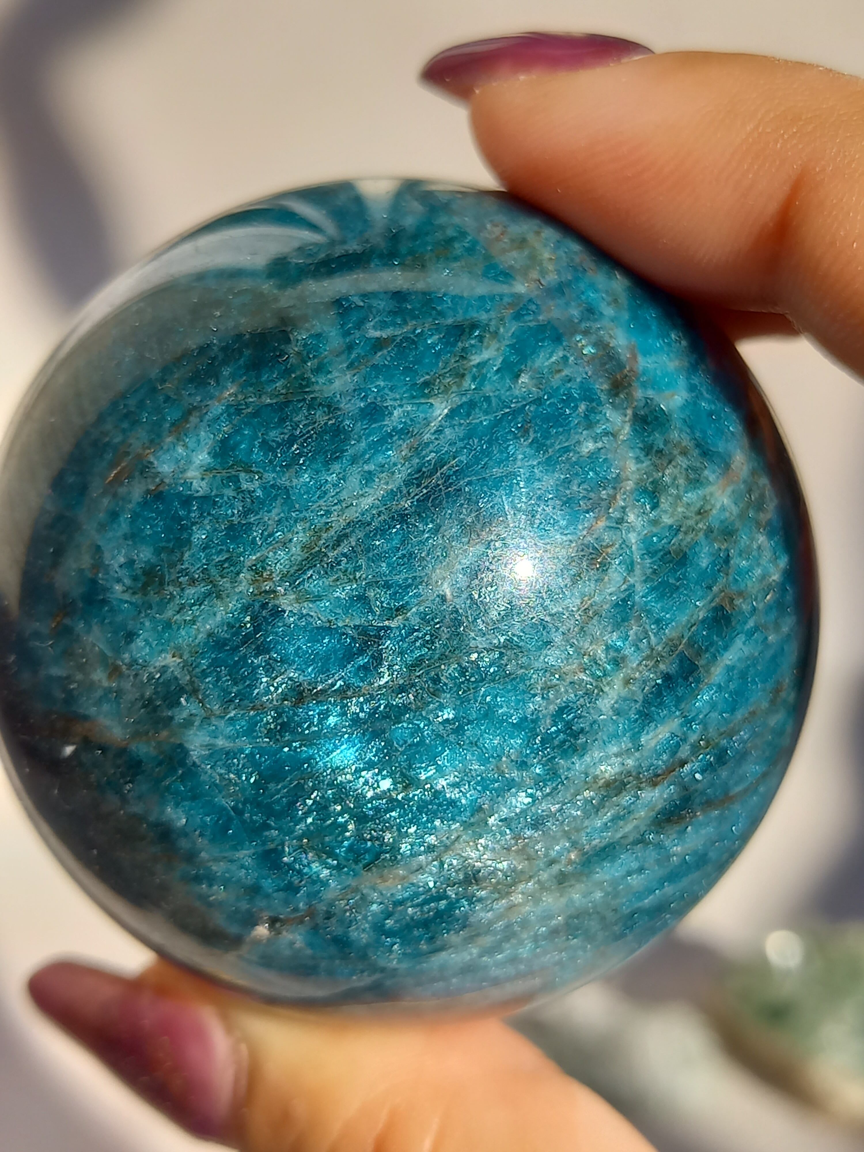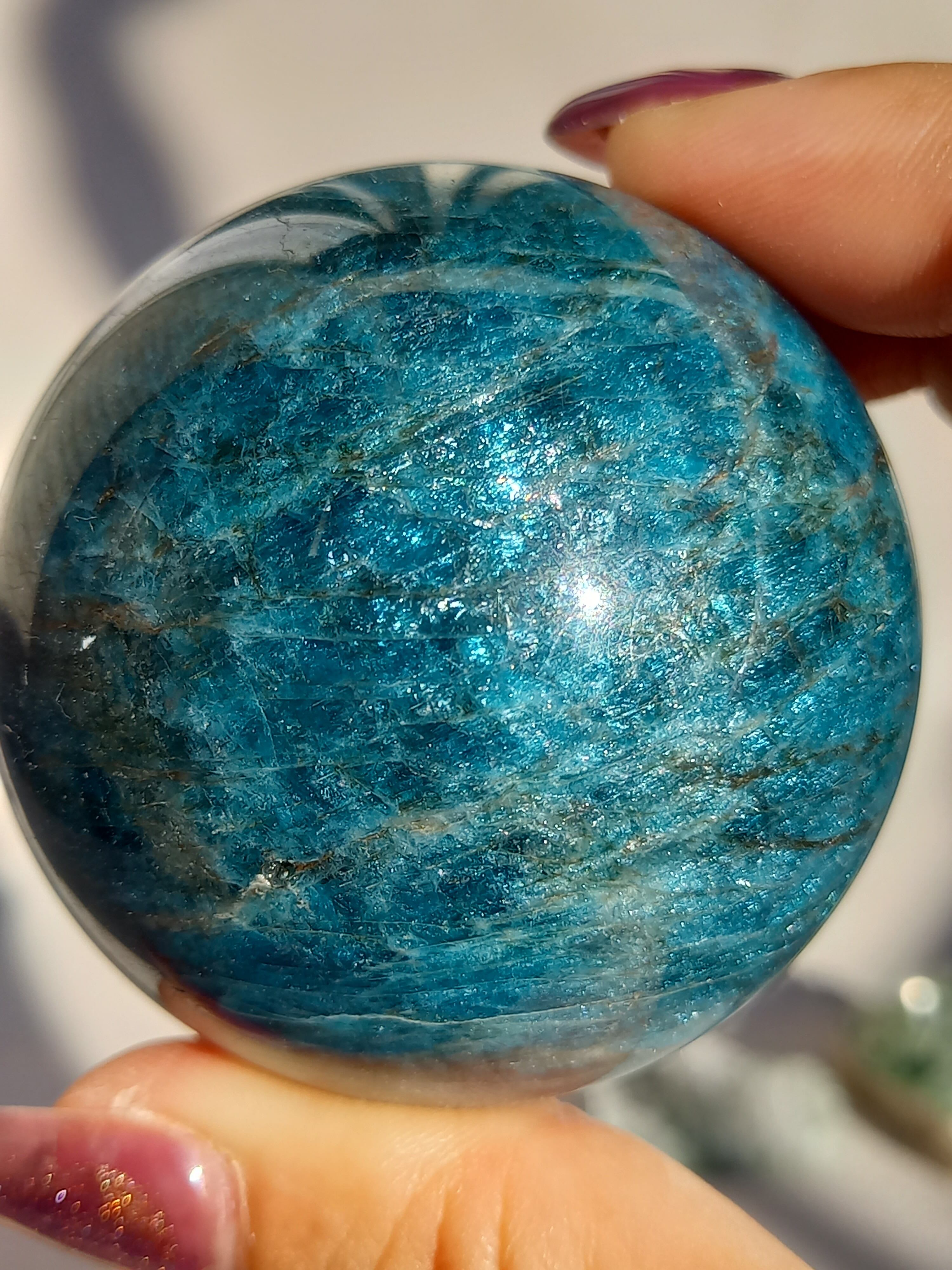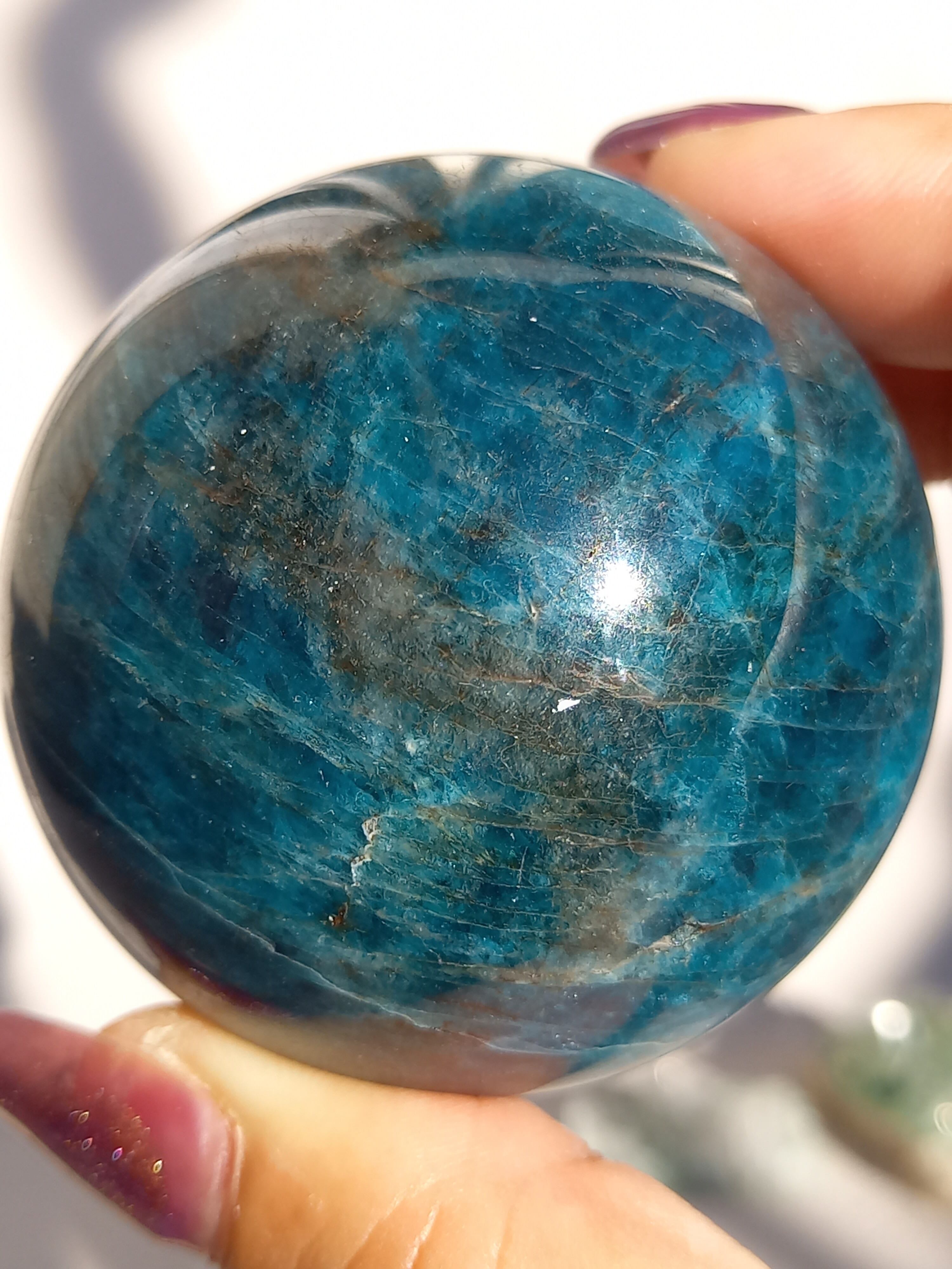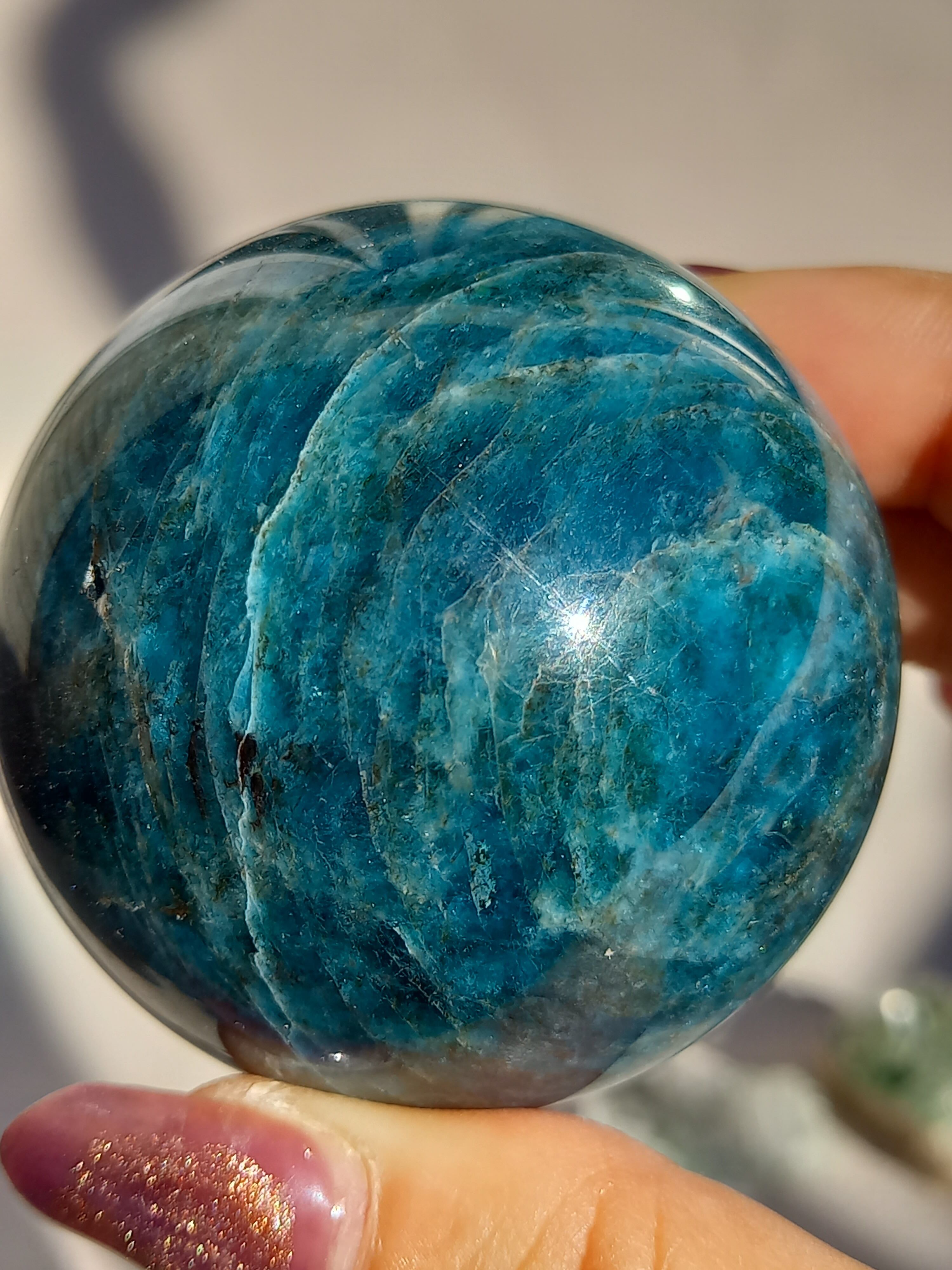 鮮やかなブルーと、シラーが特徴のアパタイトです。