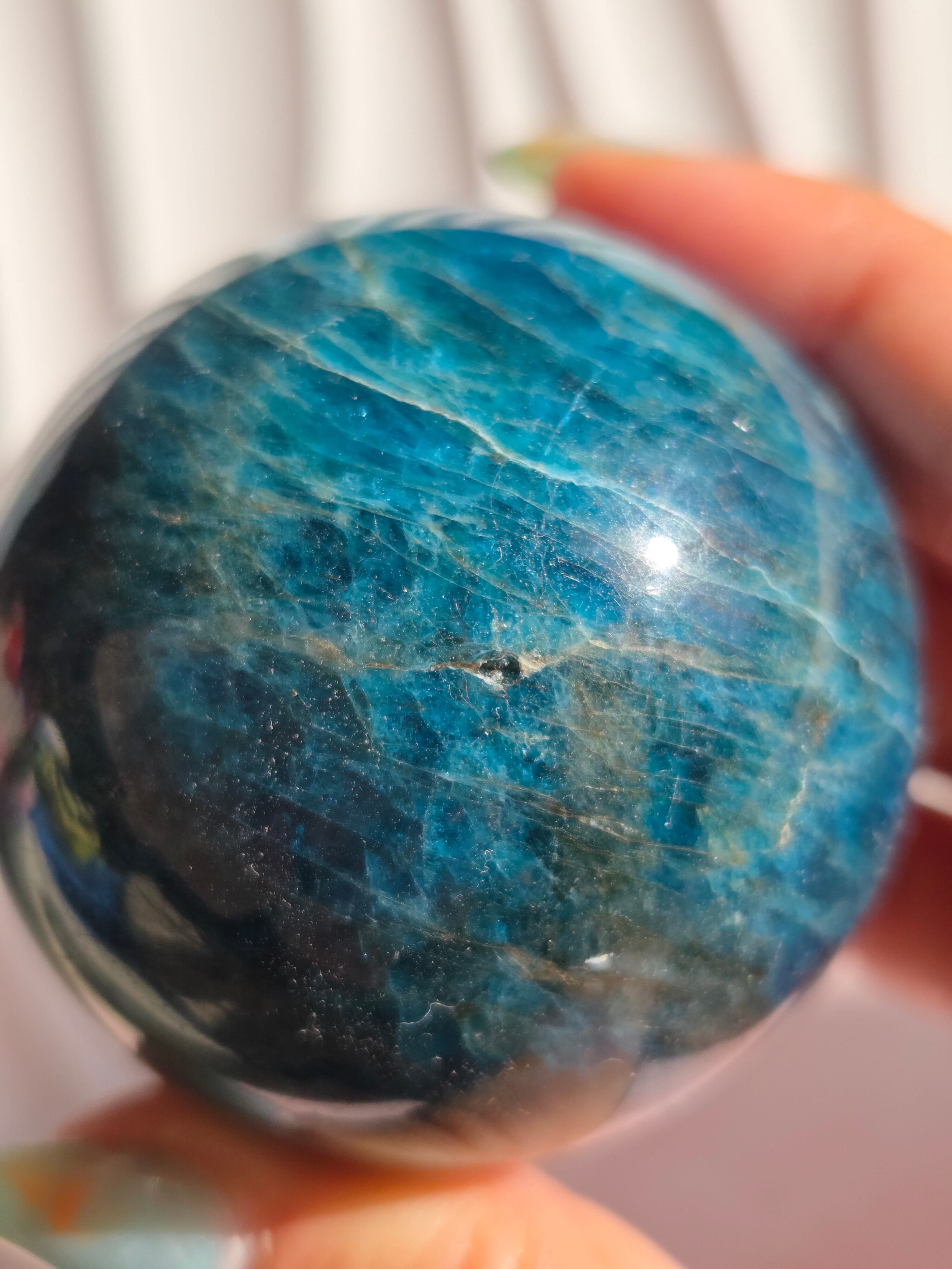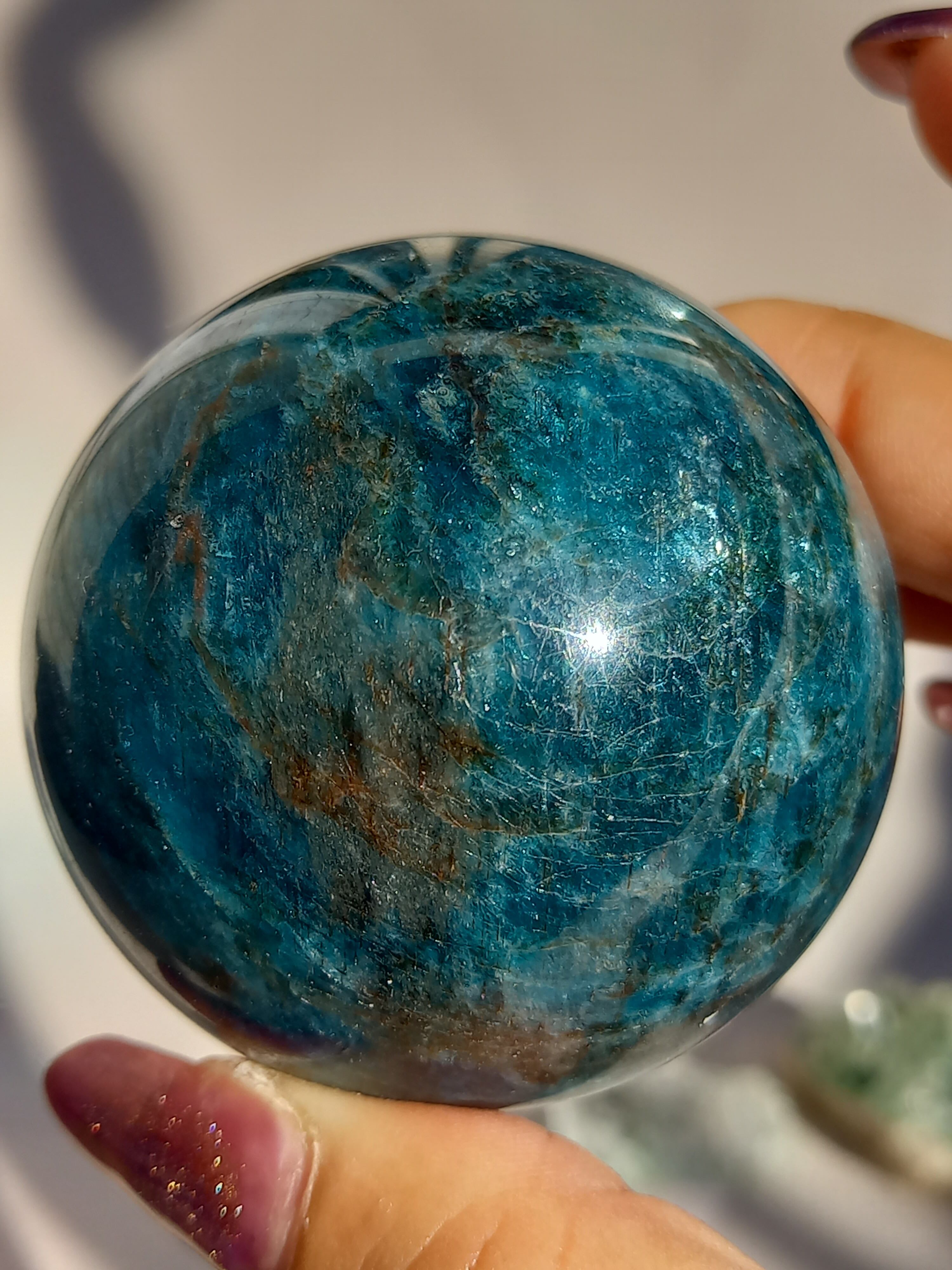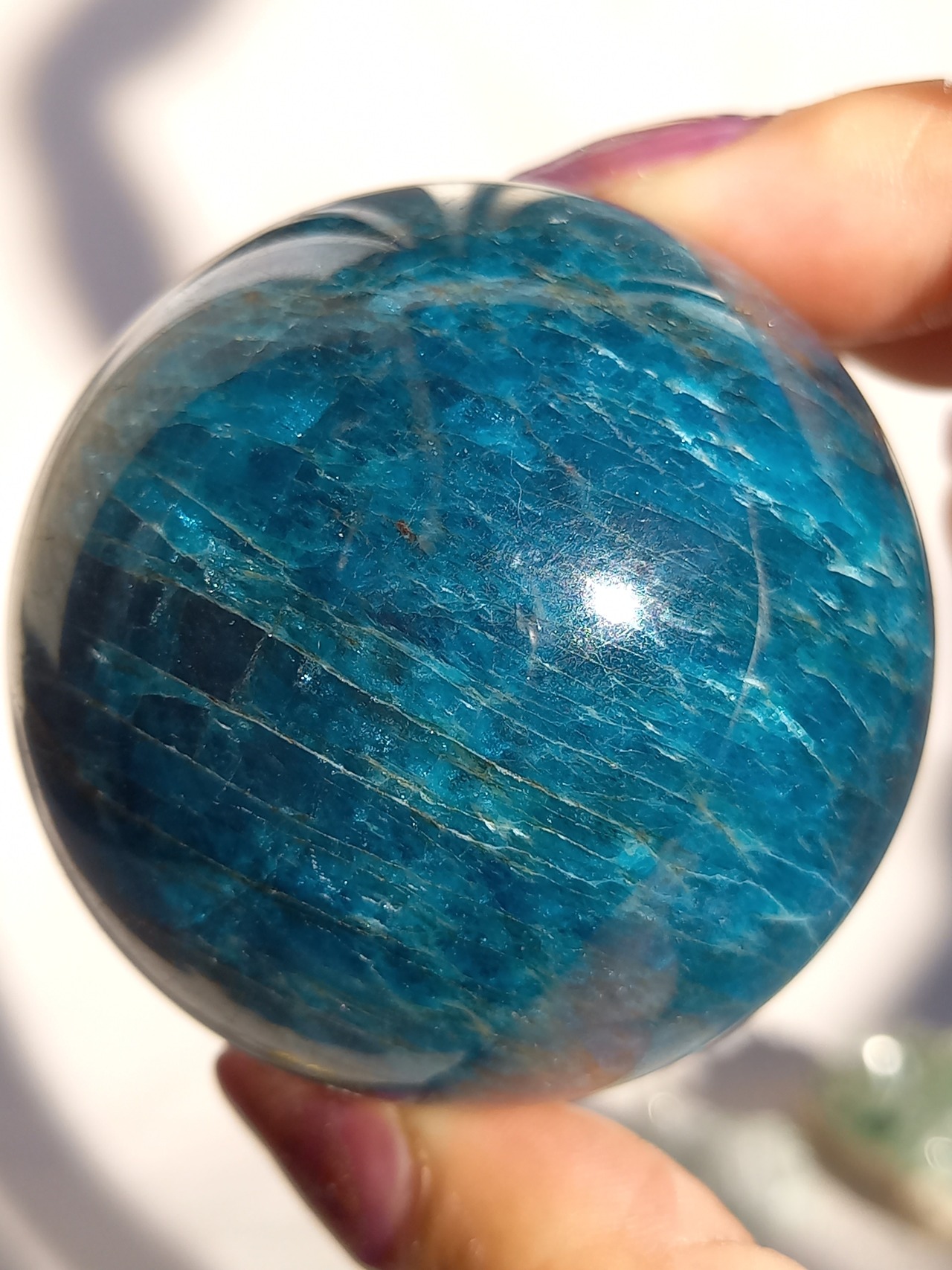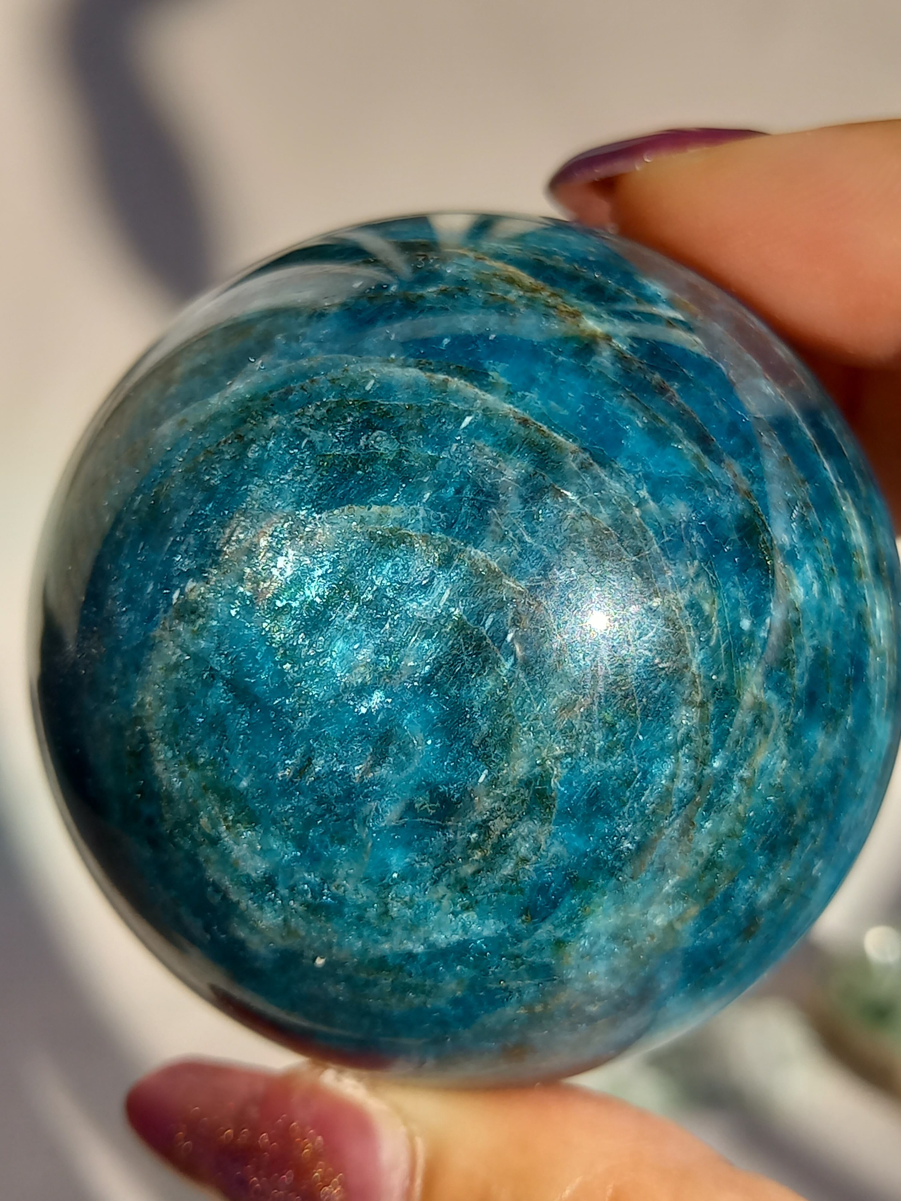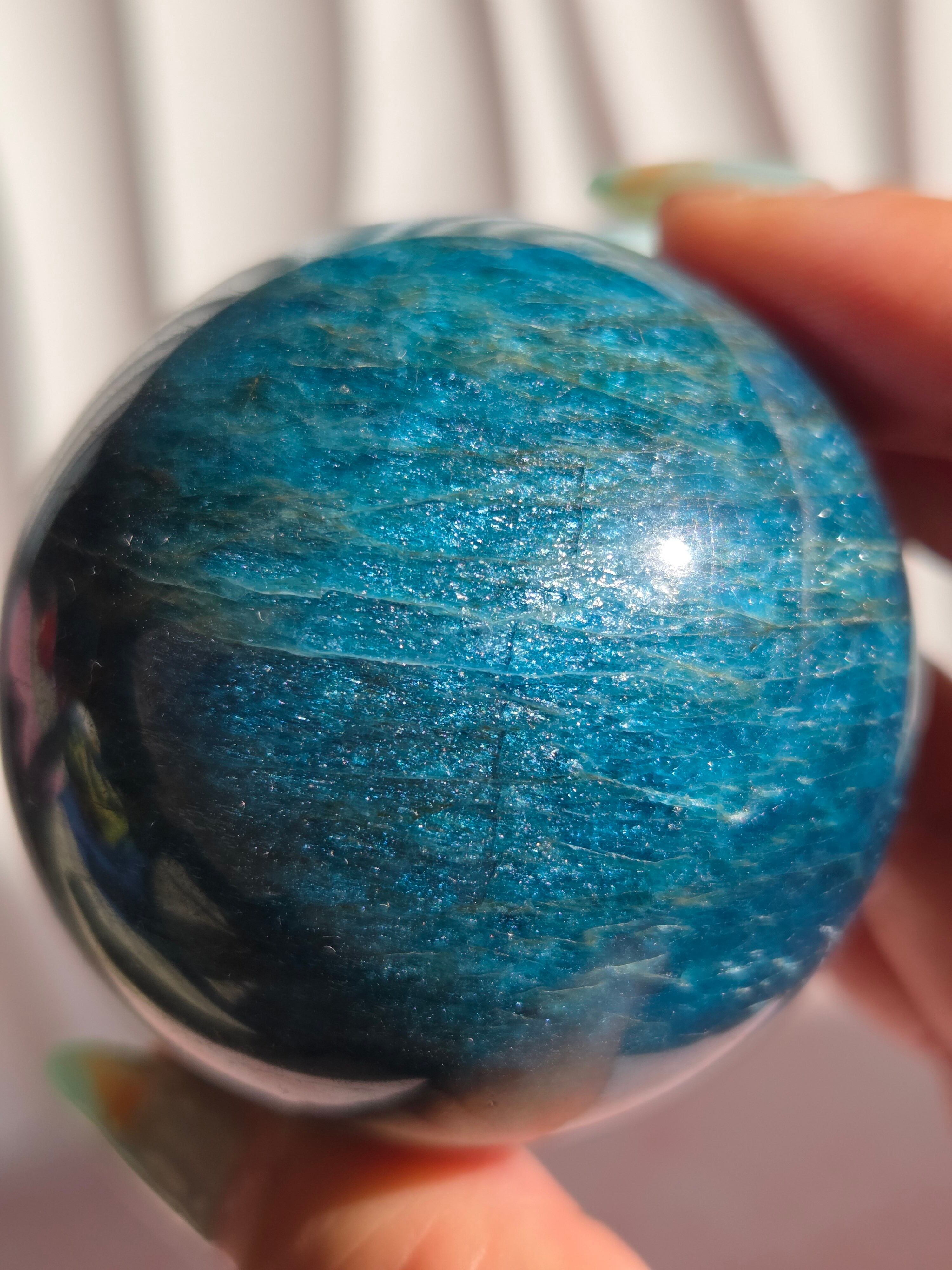 鮮やかなブルーと、シラーが特徴のアパタイトです。