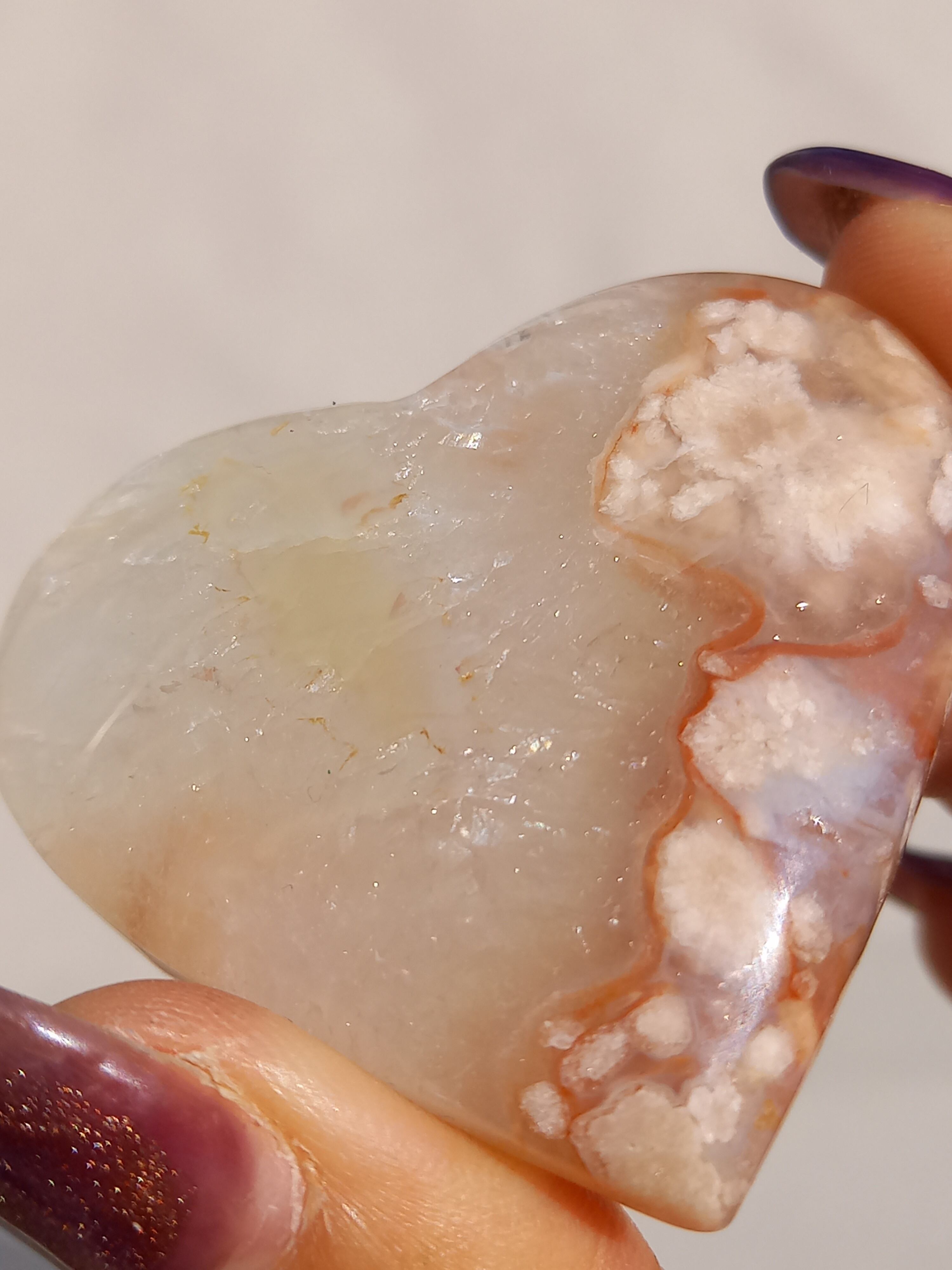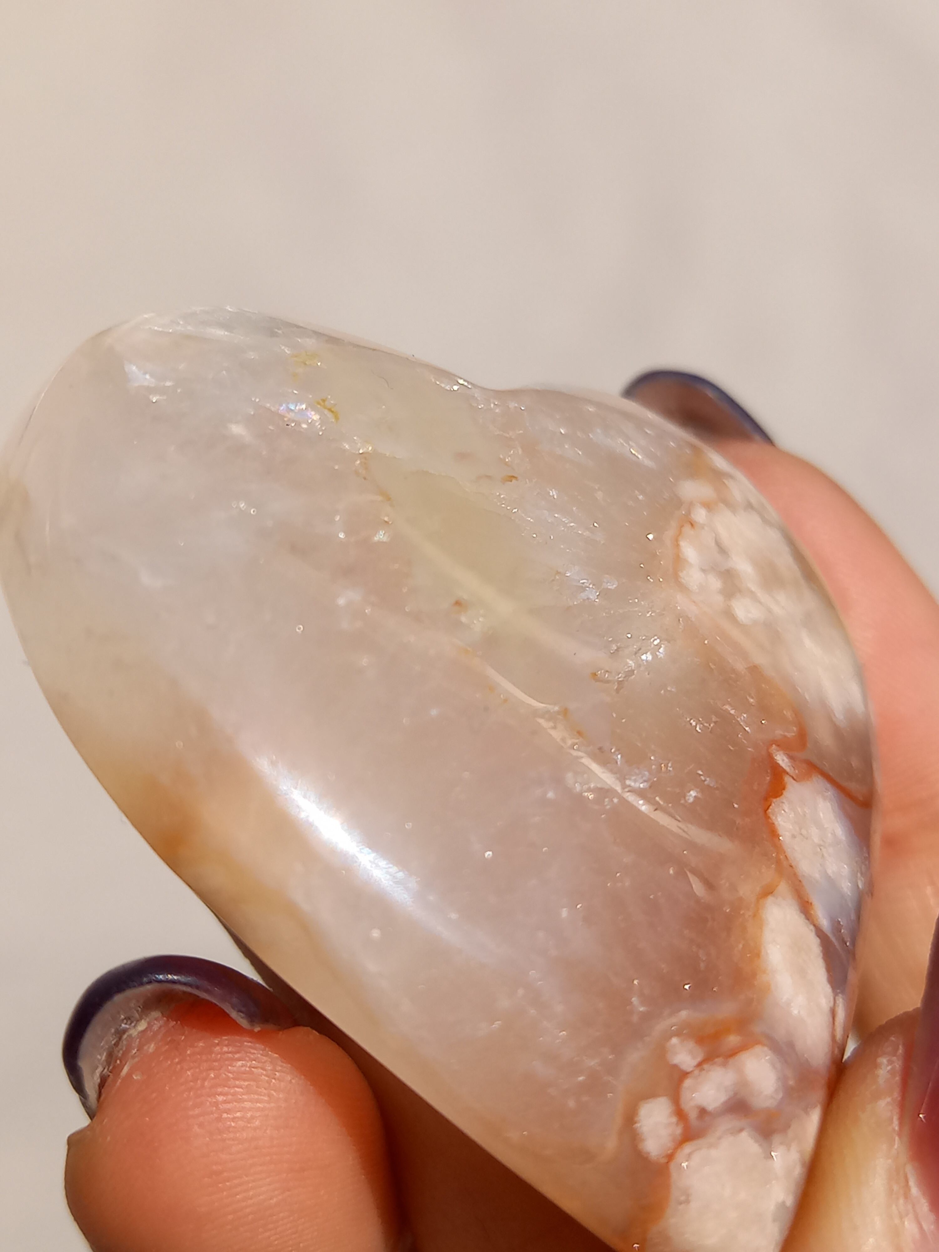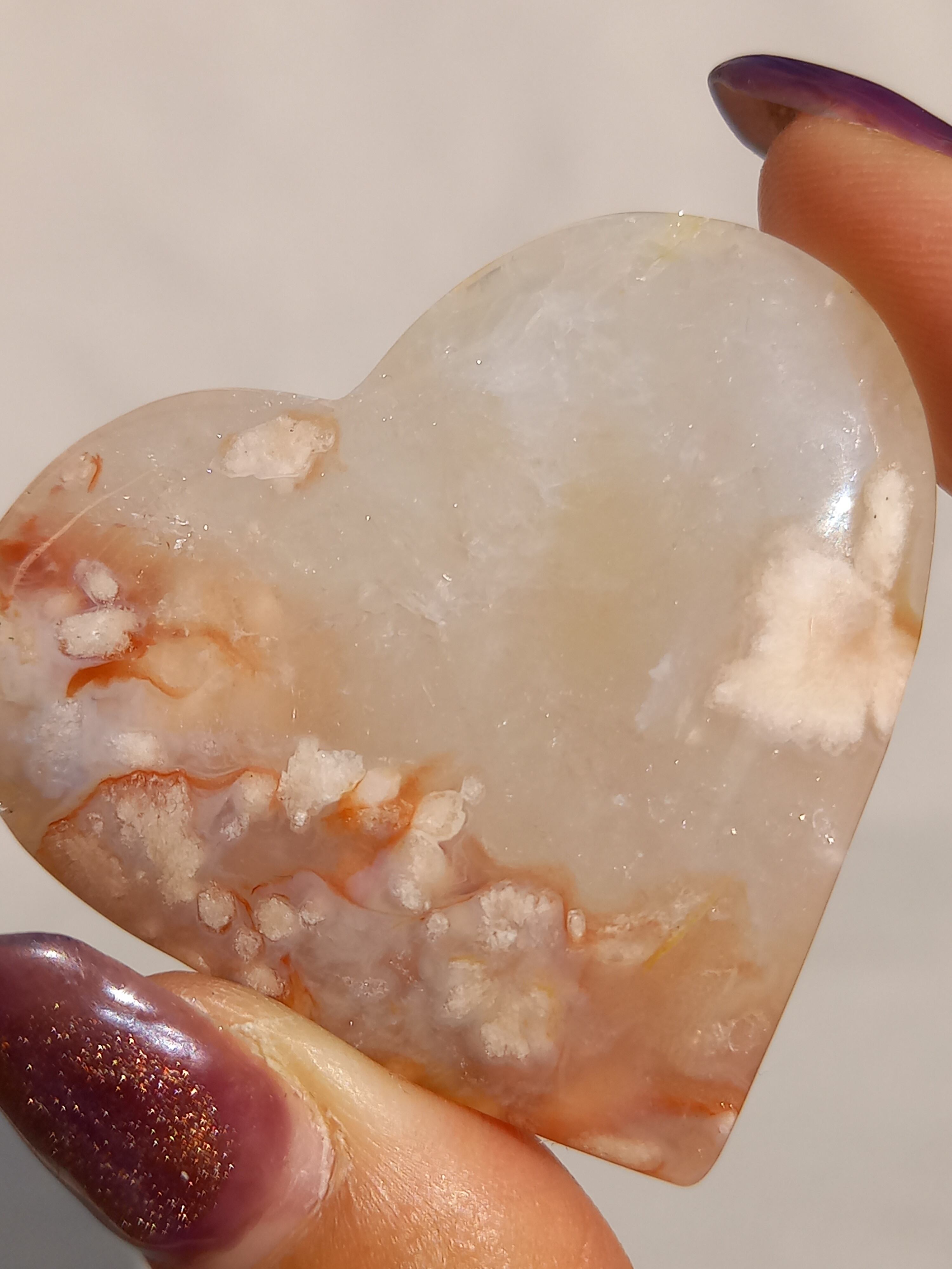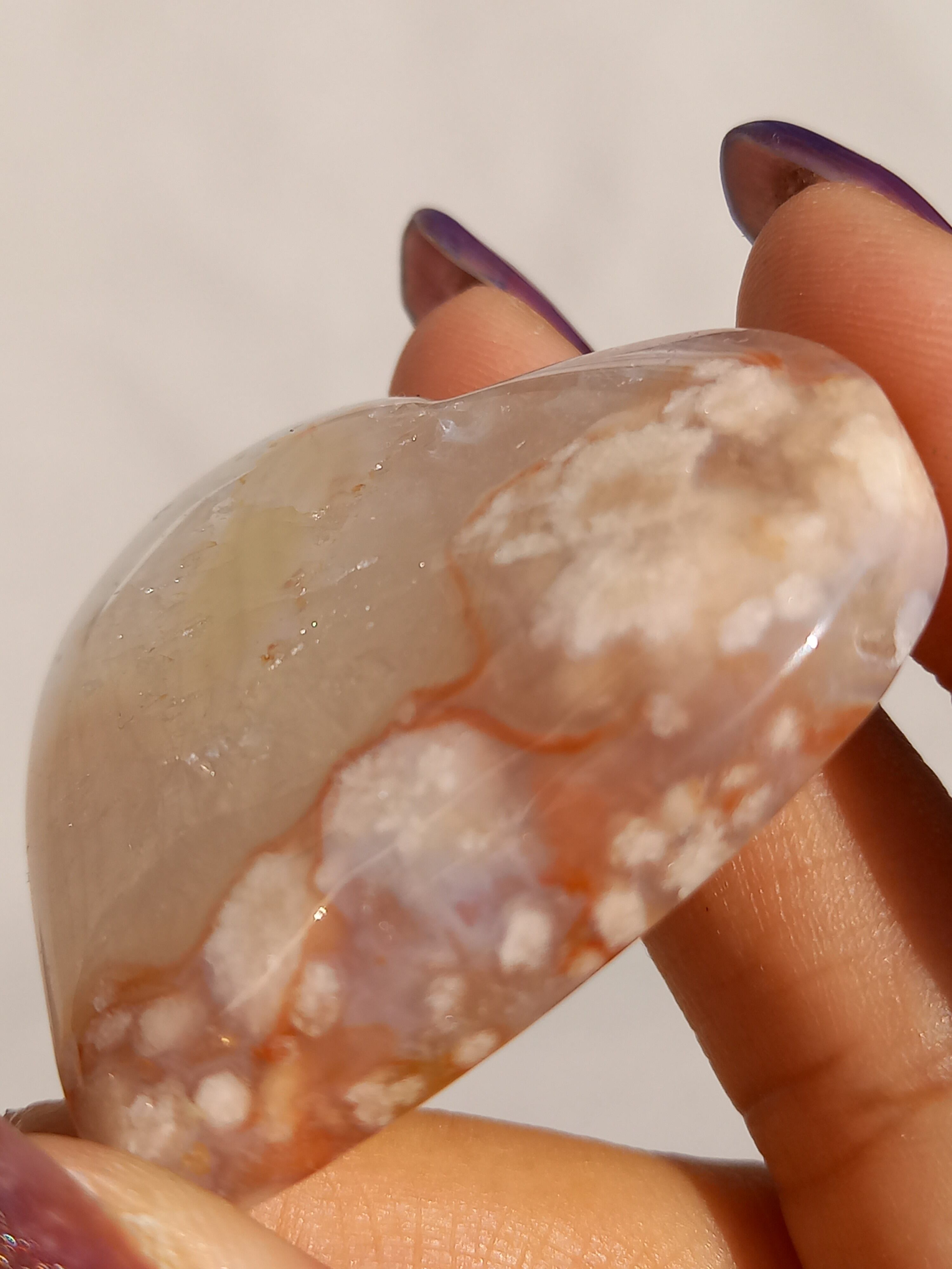 アメジストに、フラワーアゲートが共生したハートパームになります。