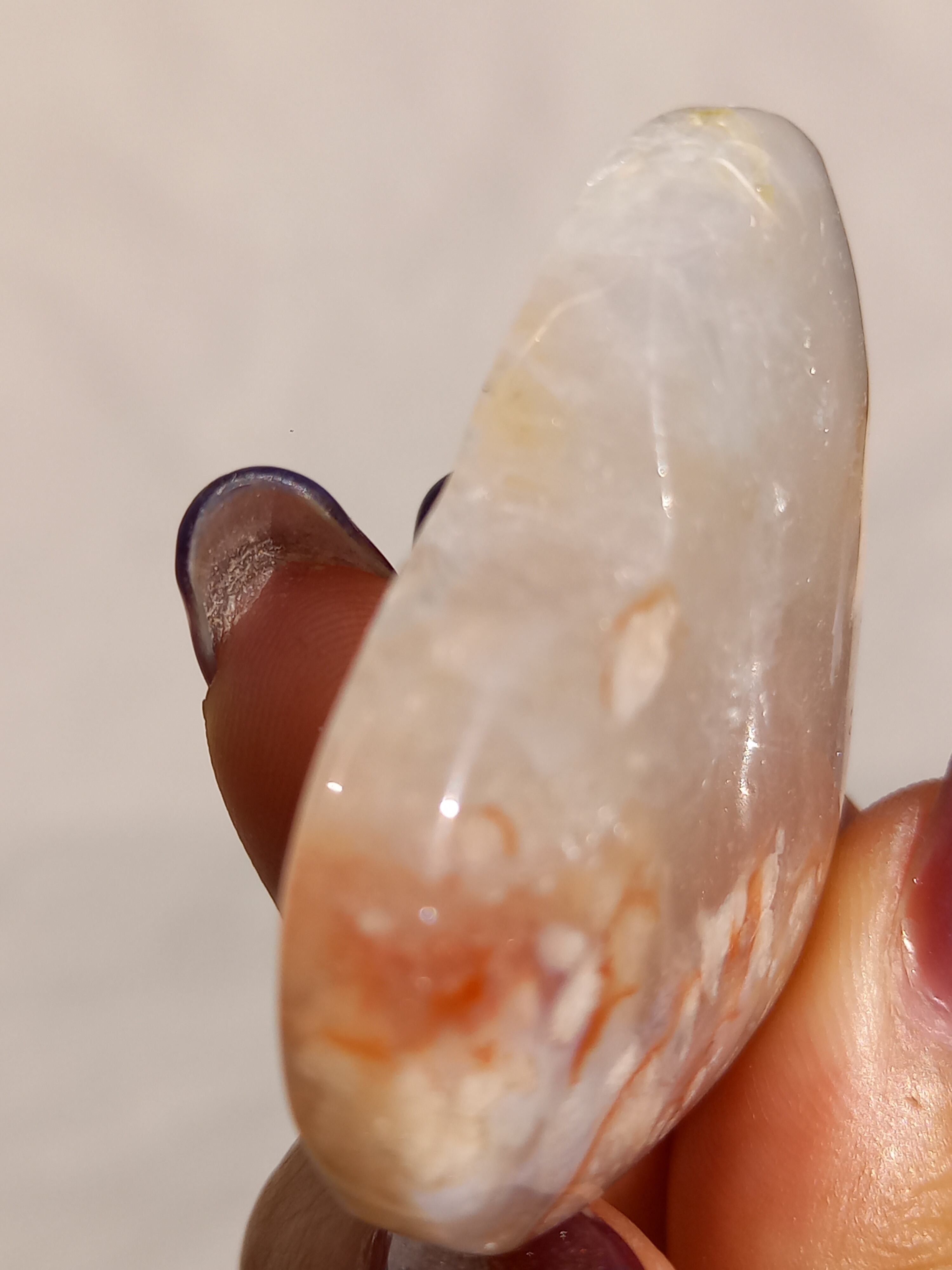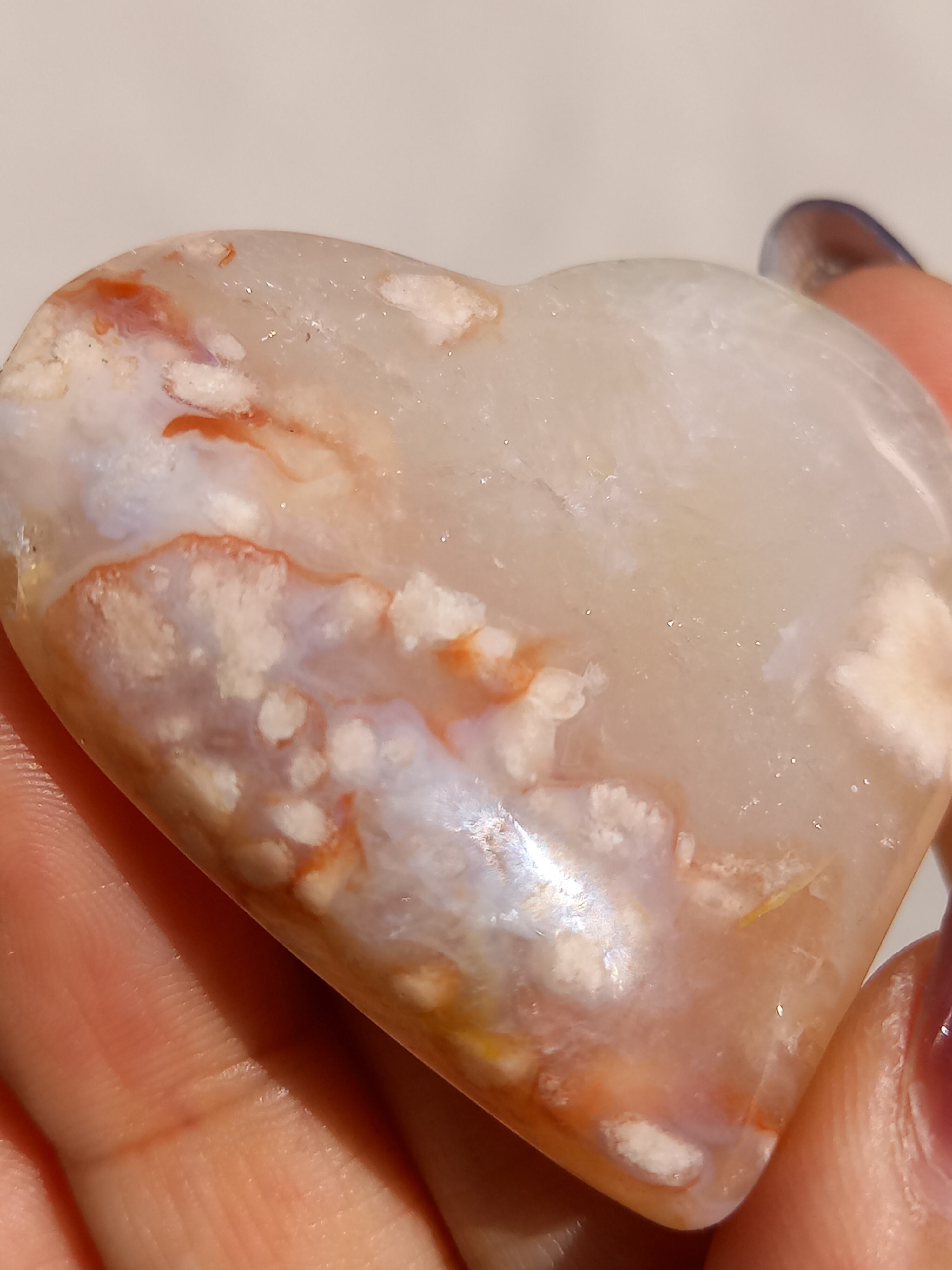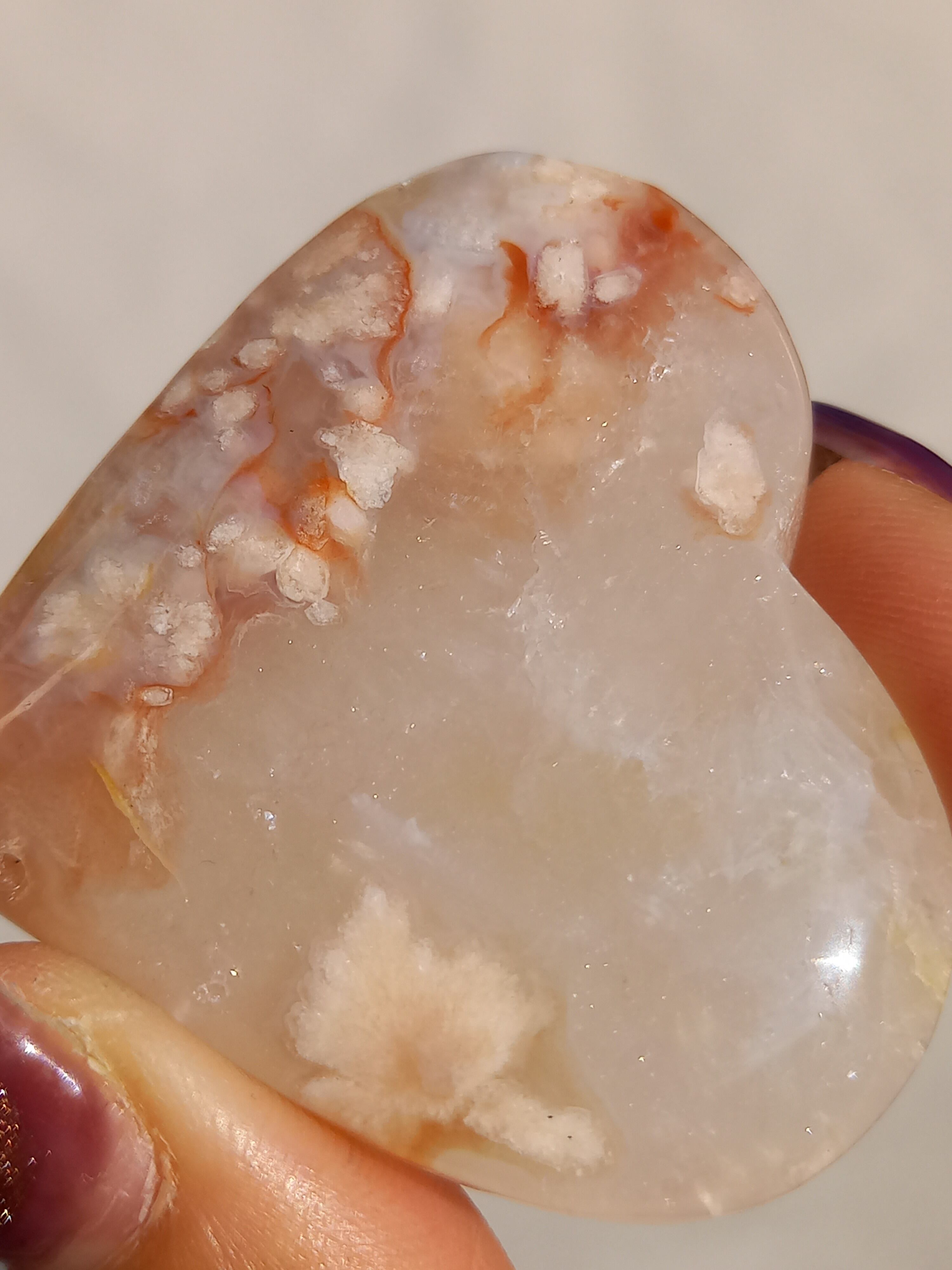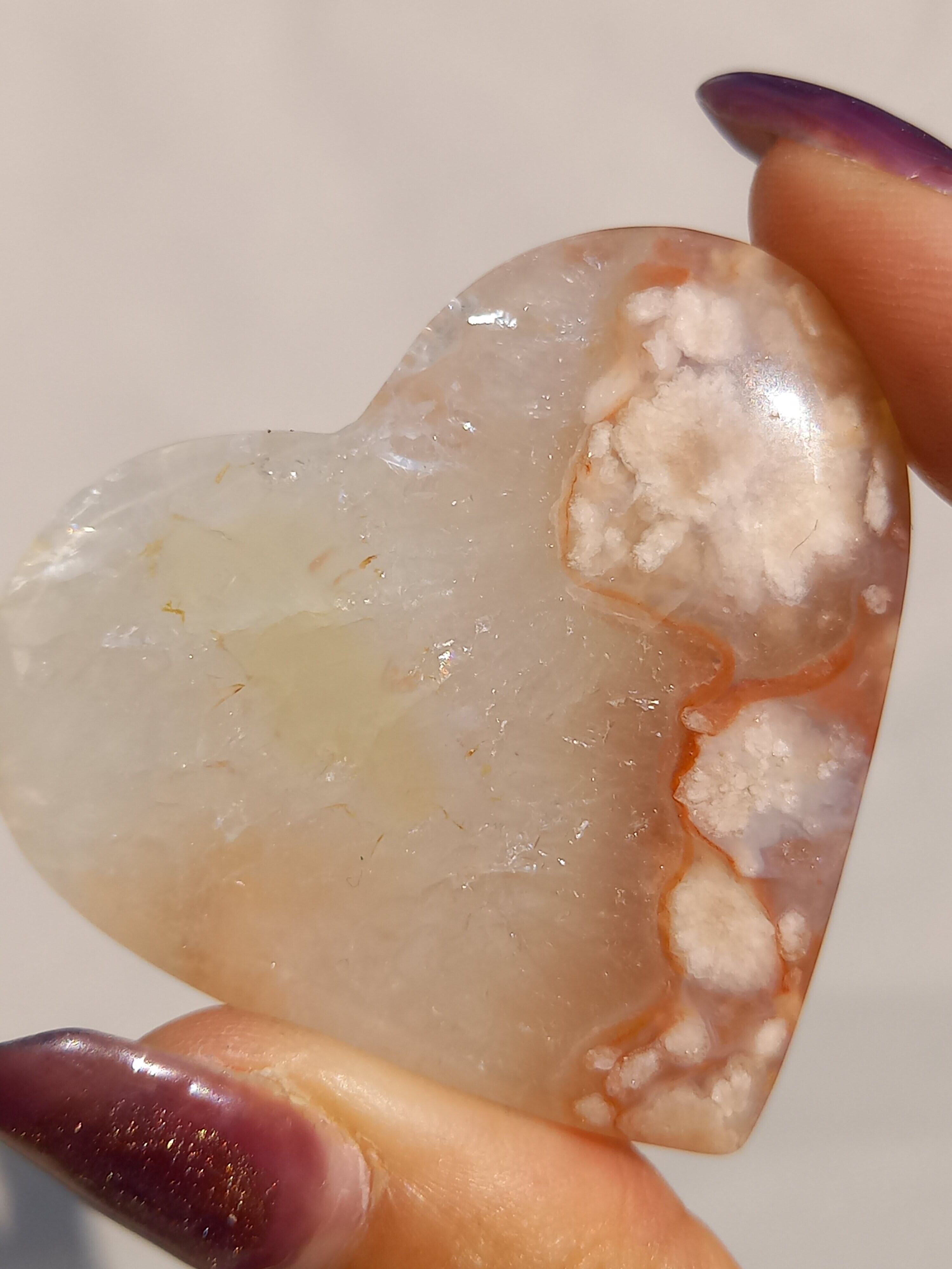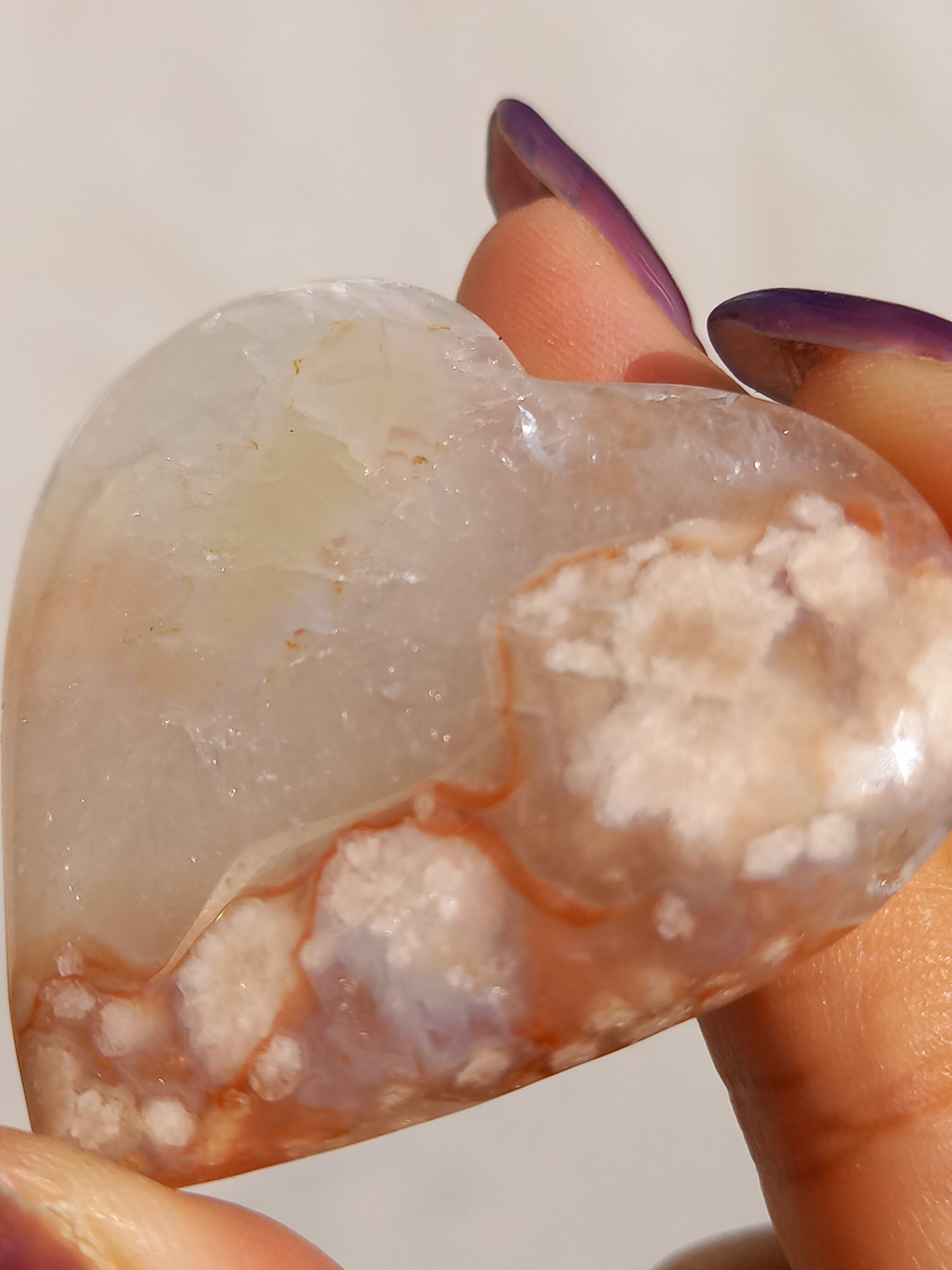アメジストに、フラワーアゲートが共生したハートパームになります。