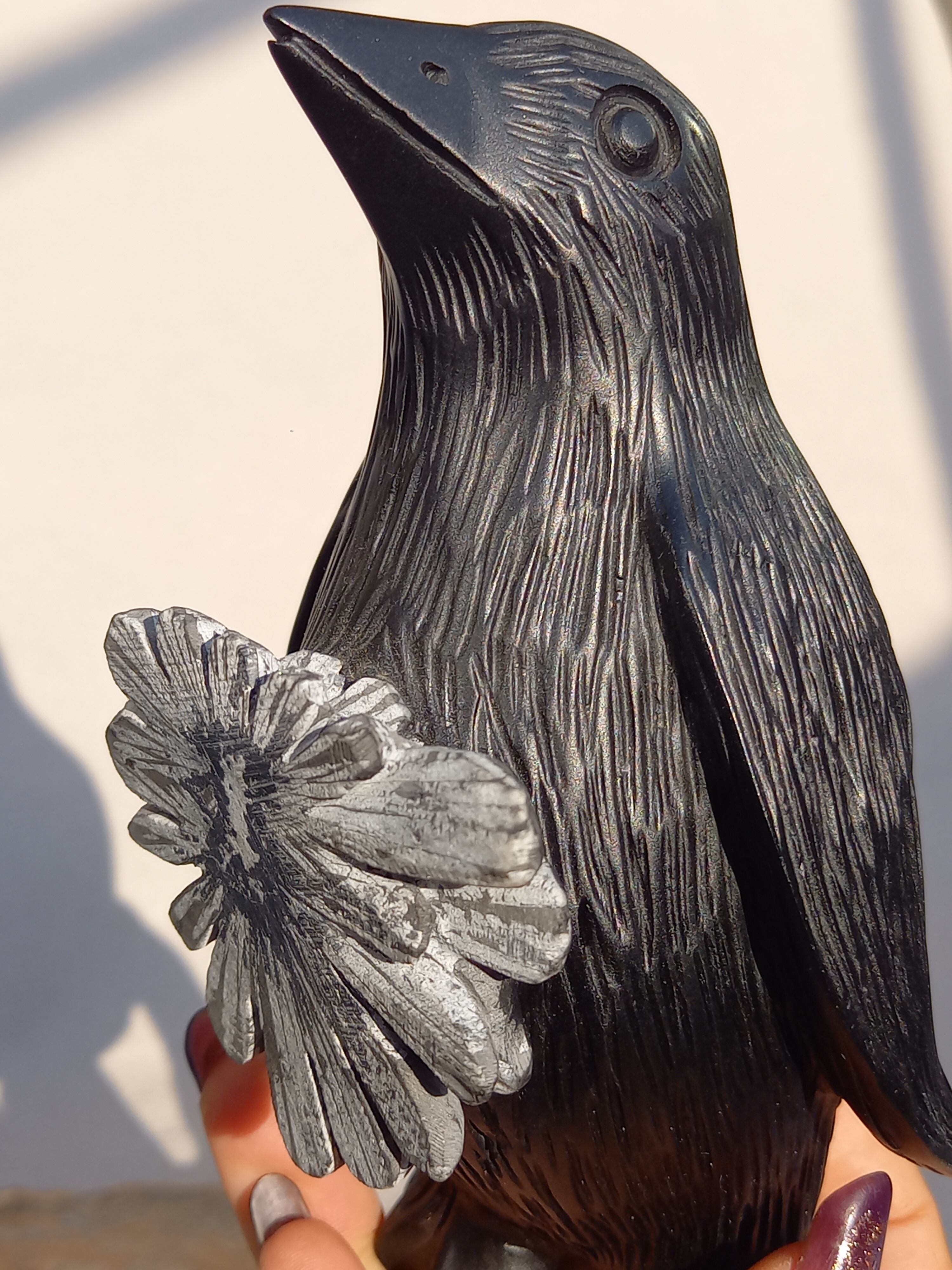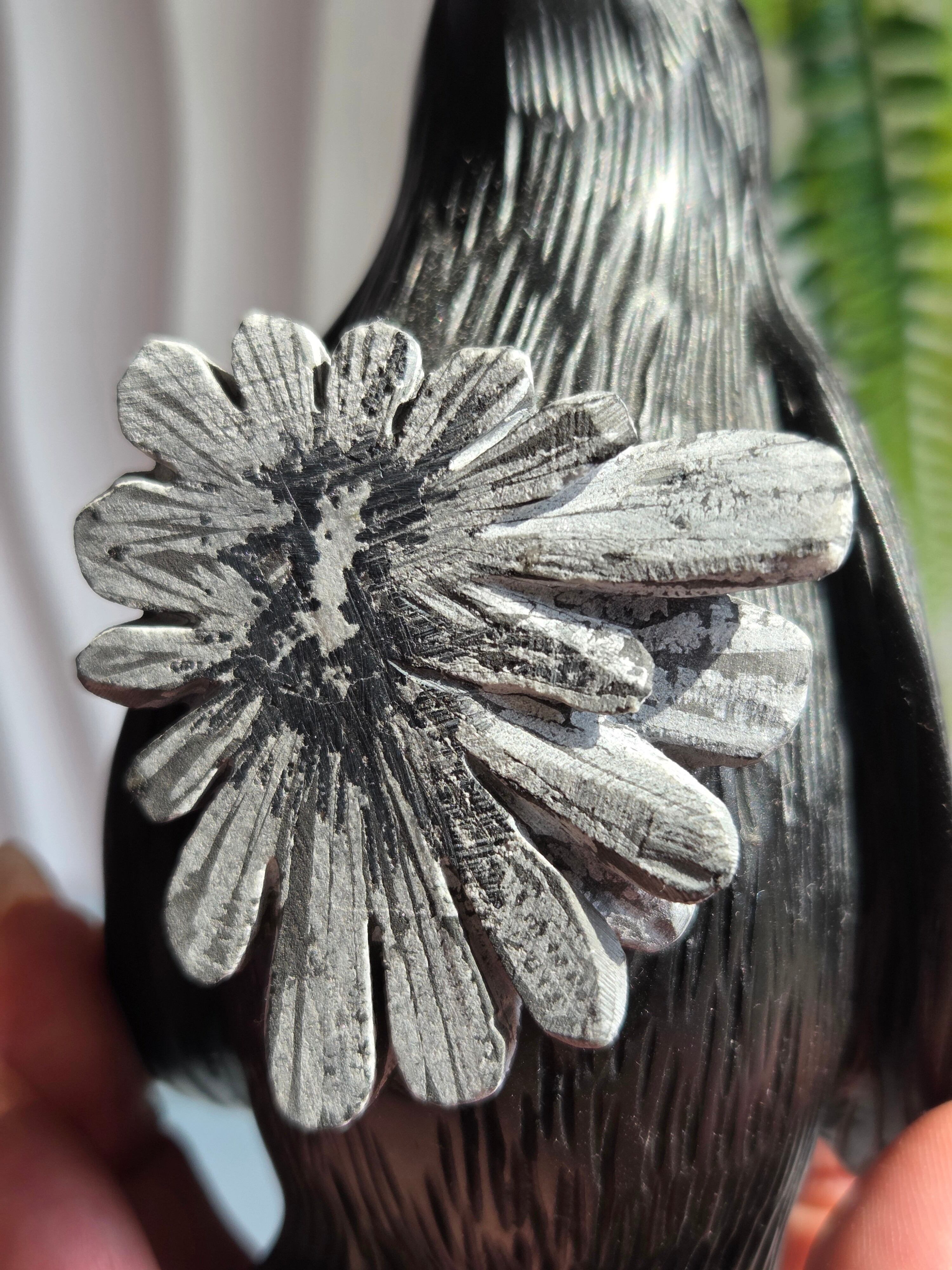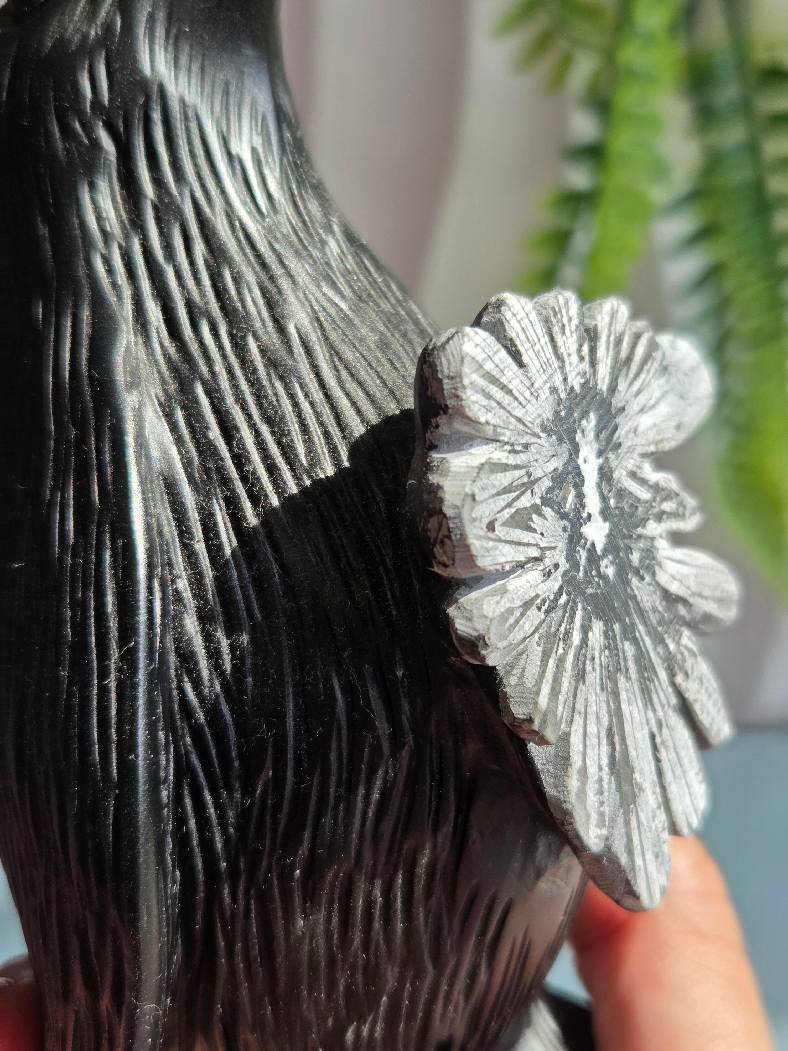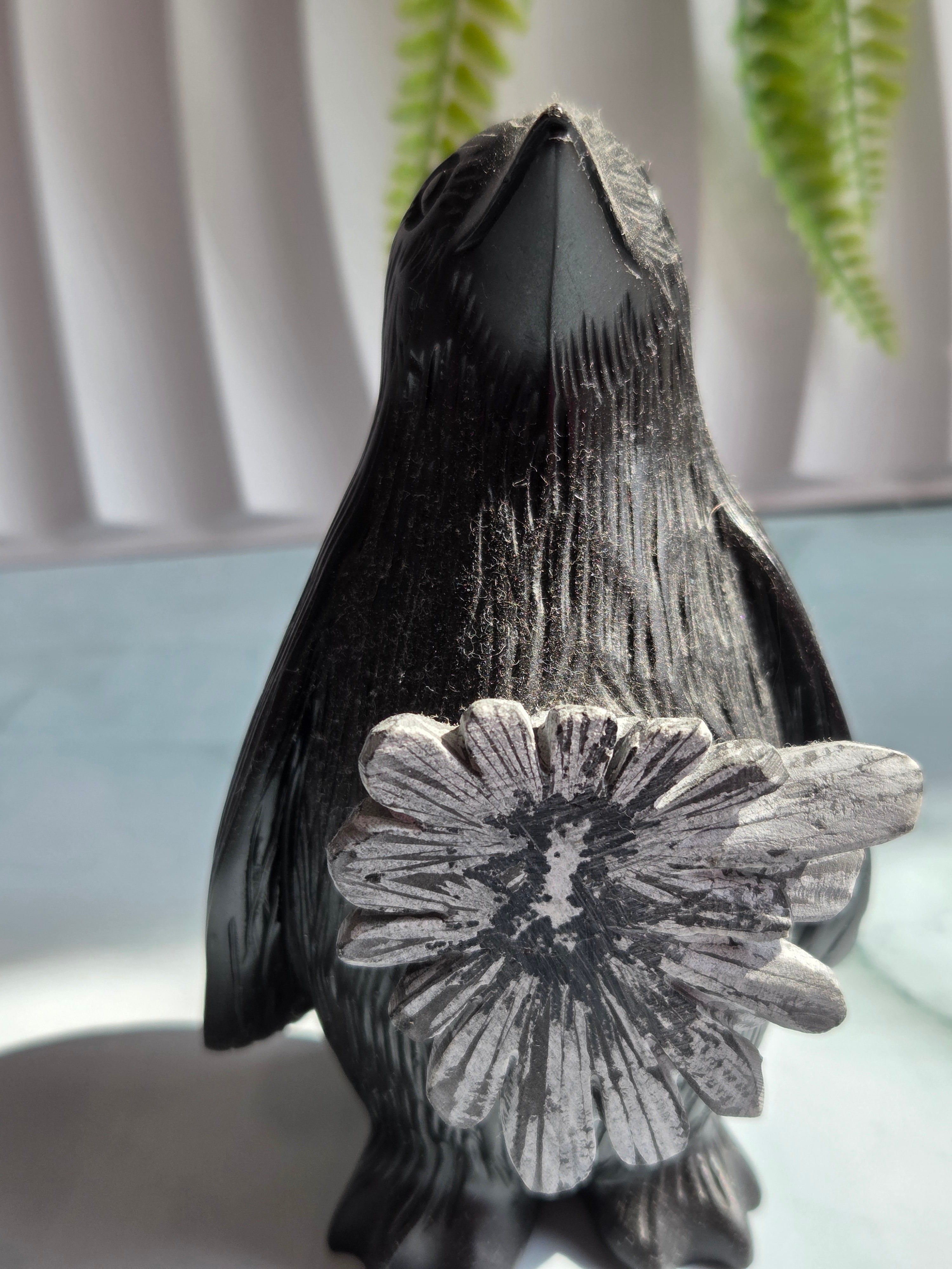 お花模様が美しい菊花石ペンギンカービングです。