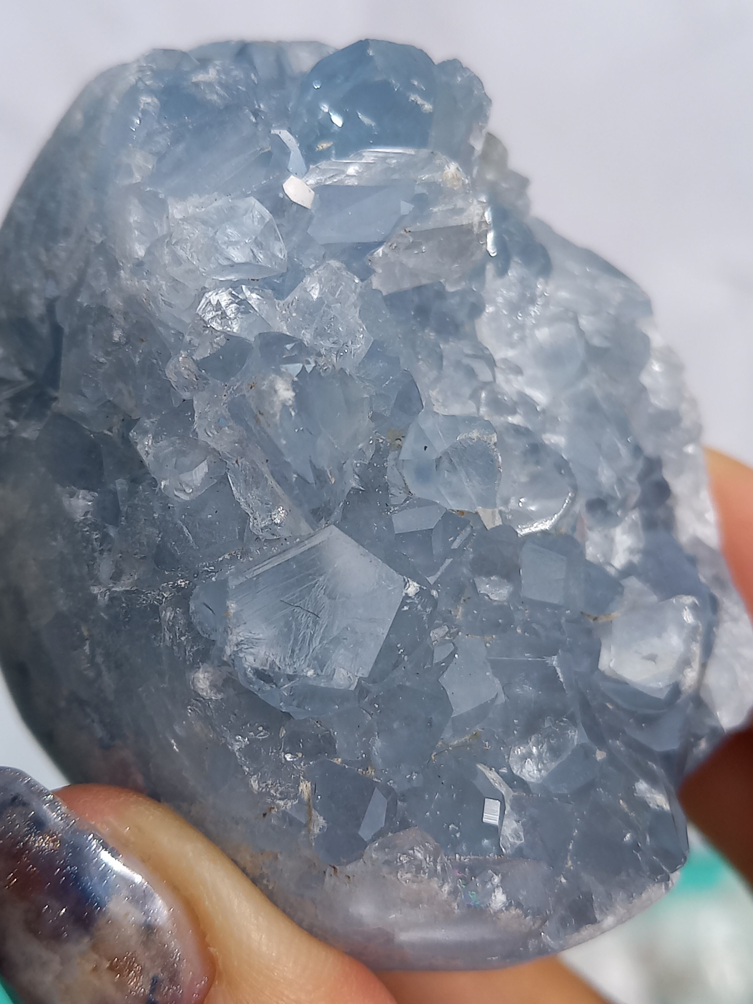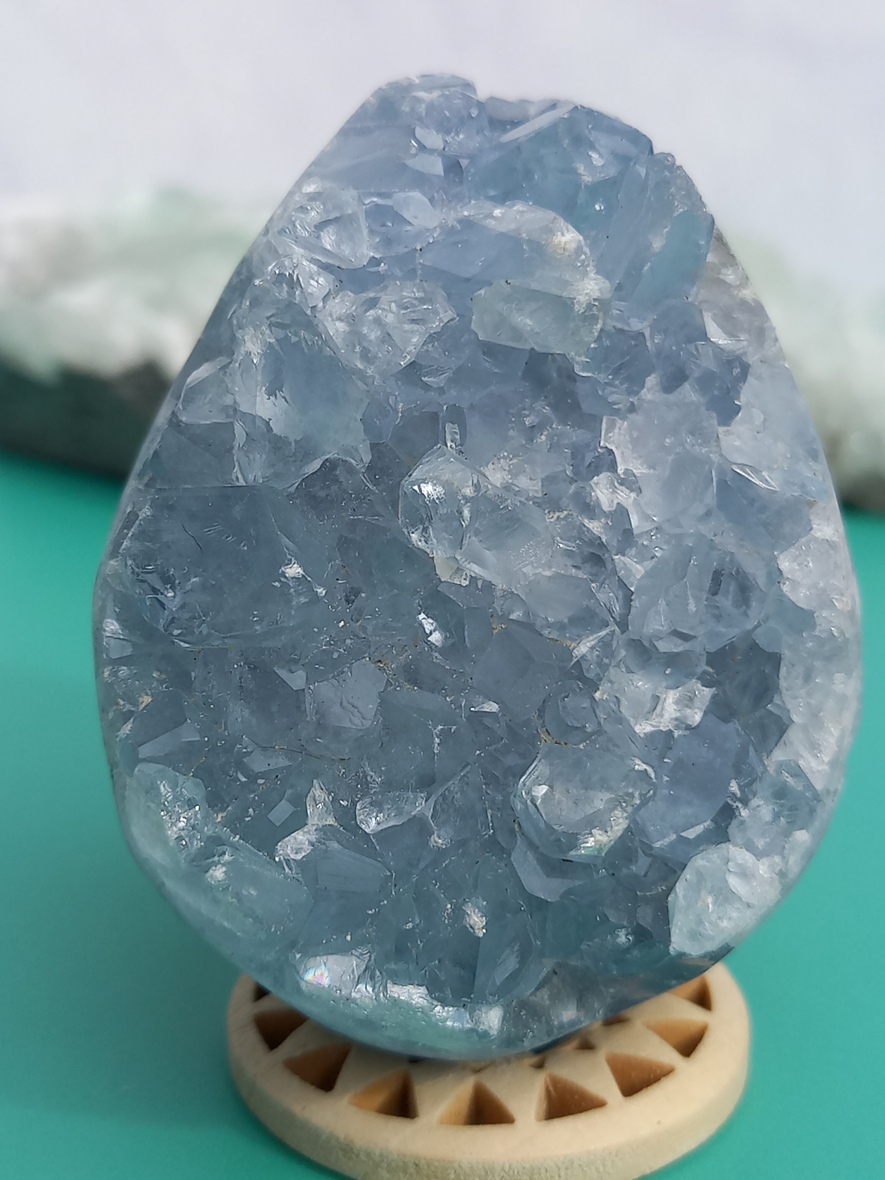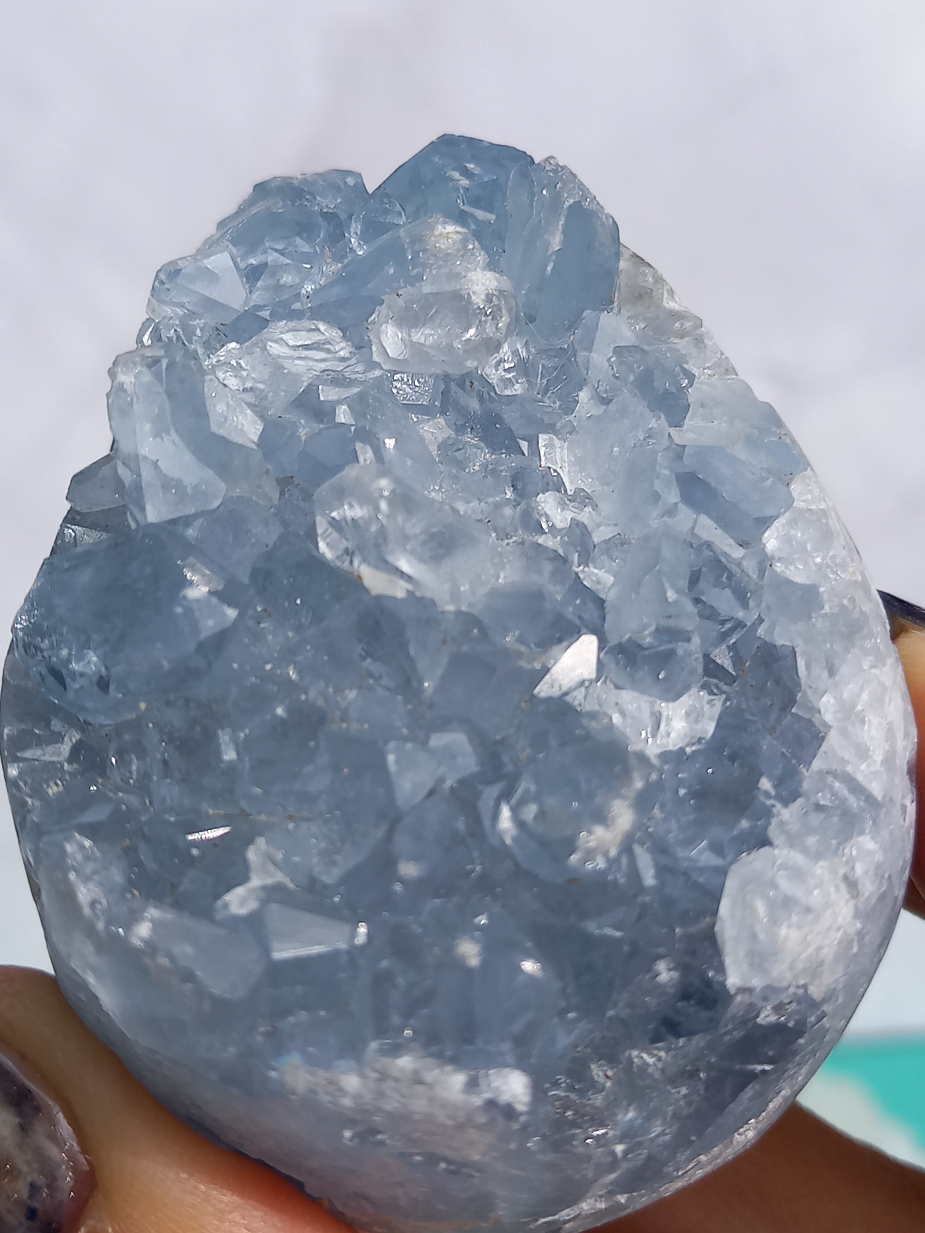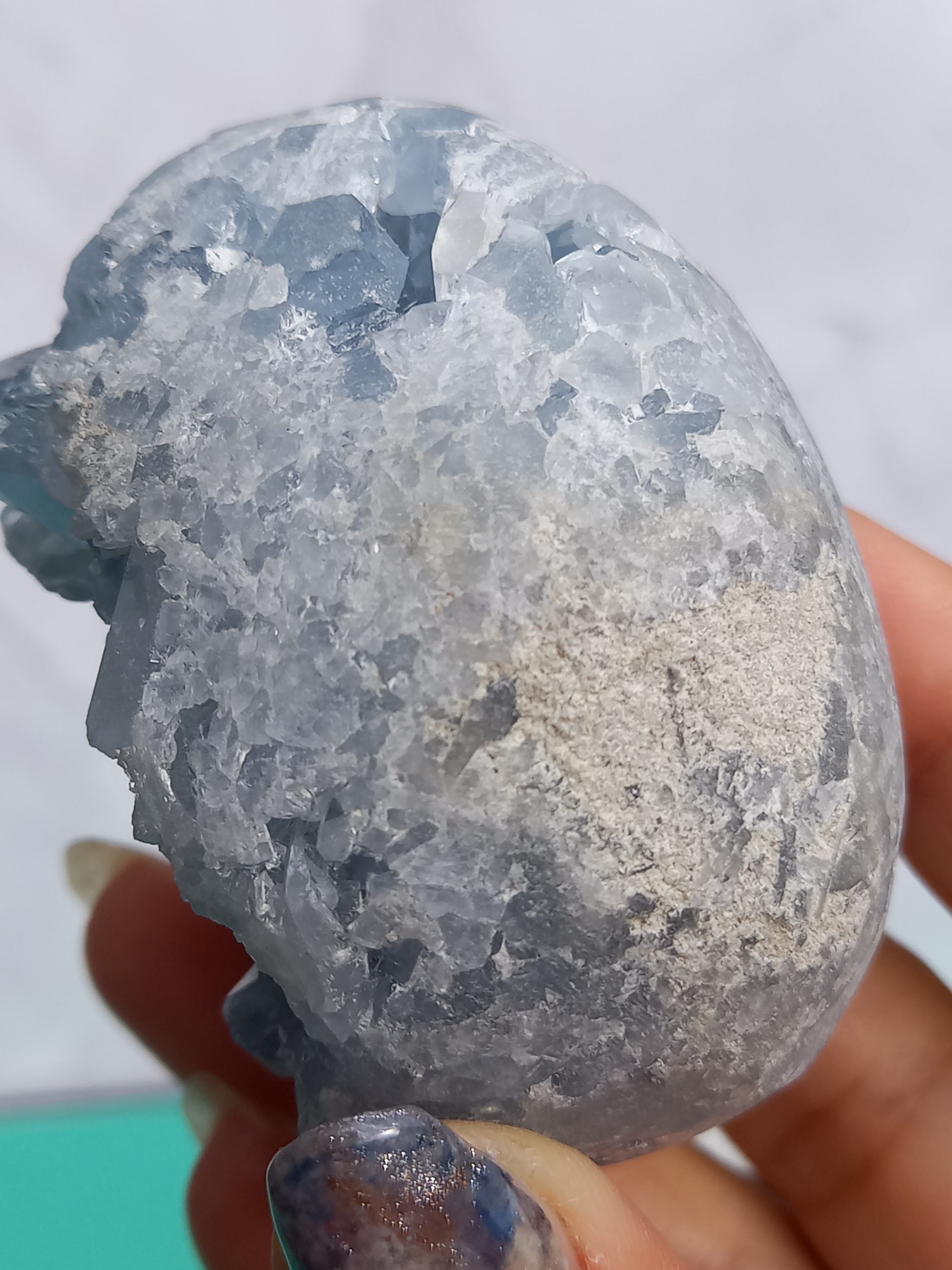 ころんとしたフォルムが、可愛い、セレスタイトエッグフォームクラスターです。