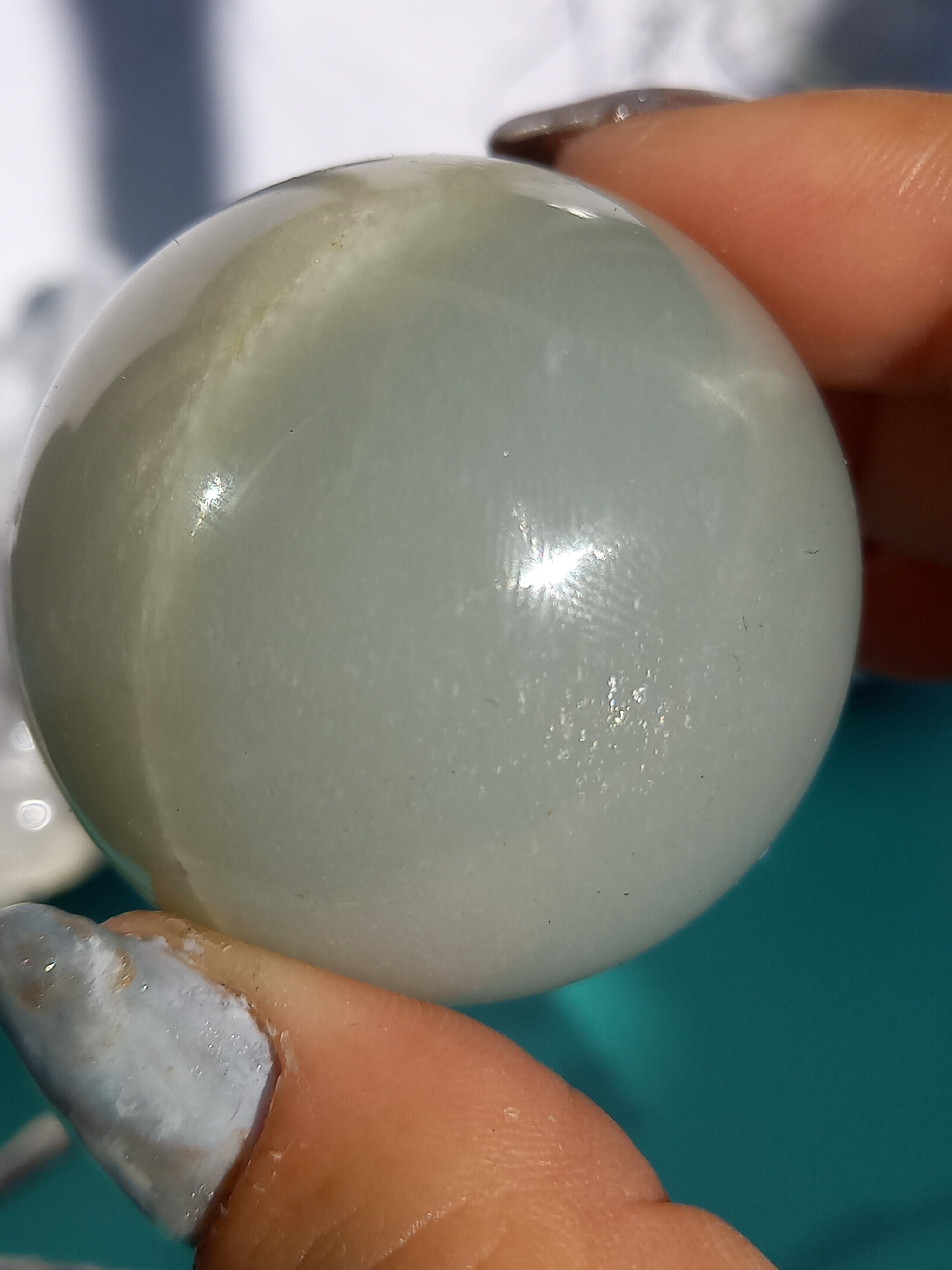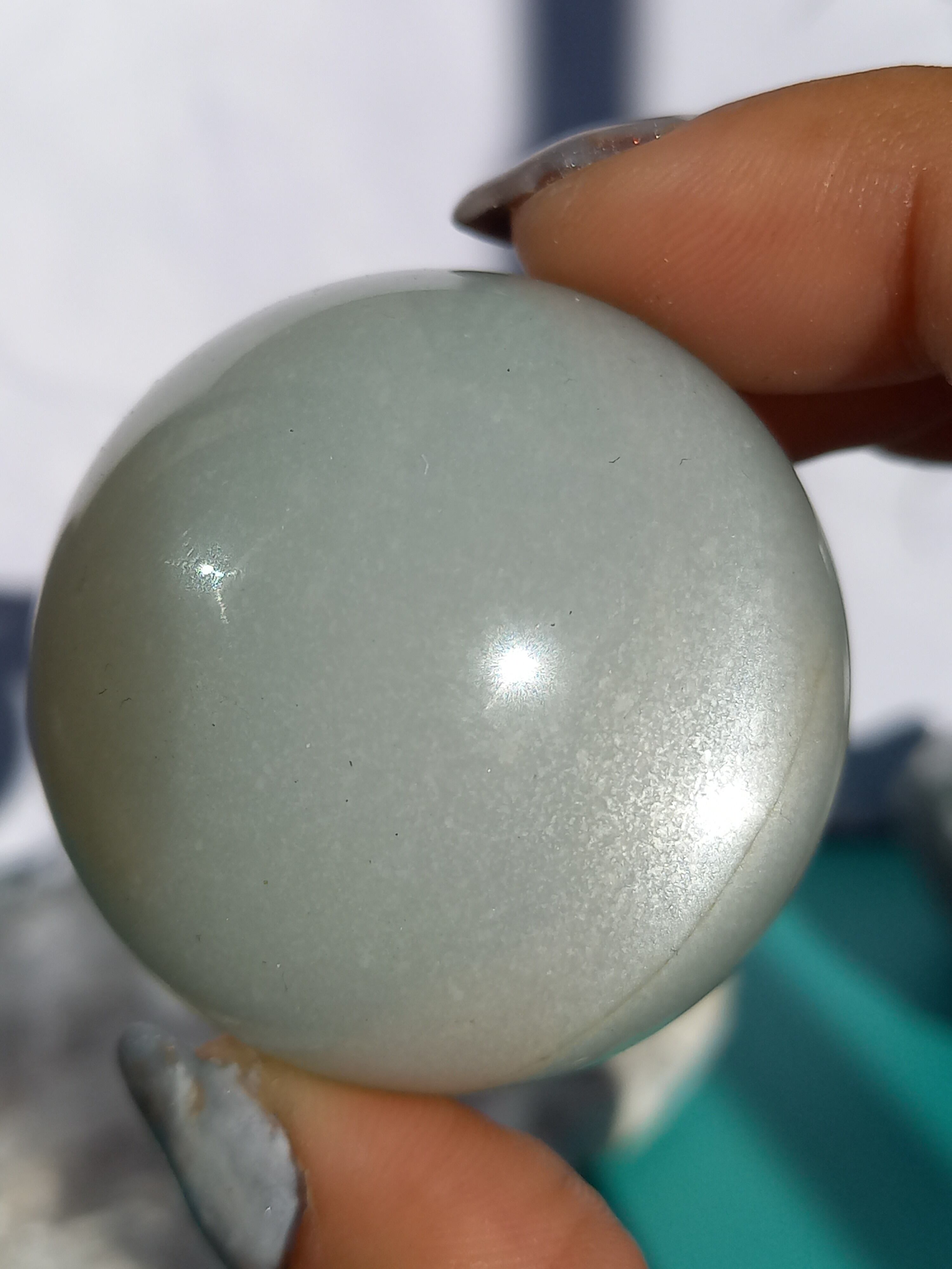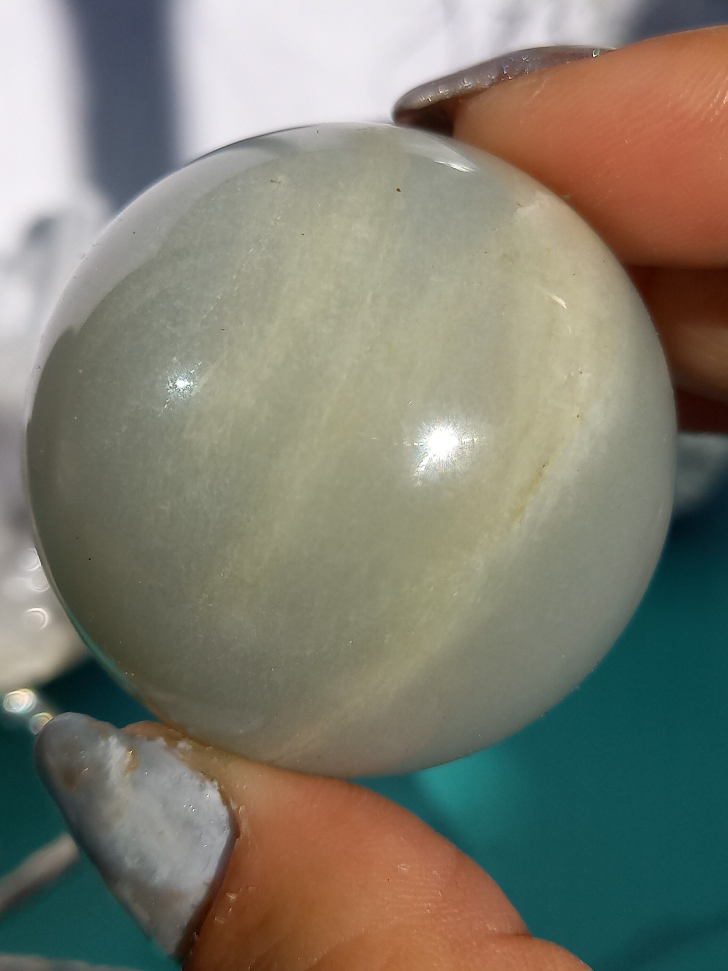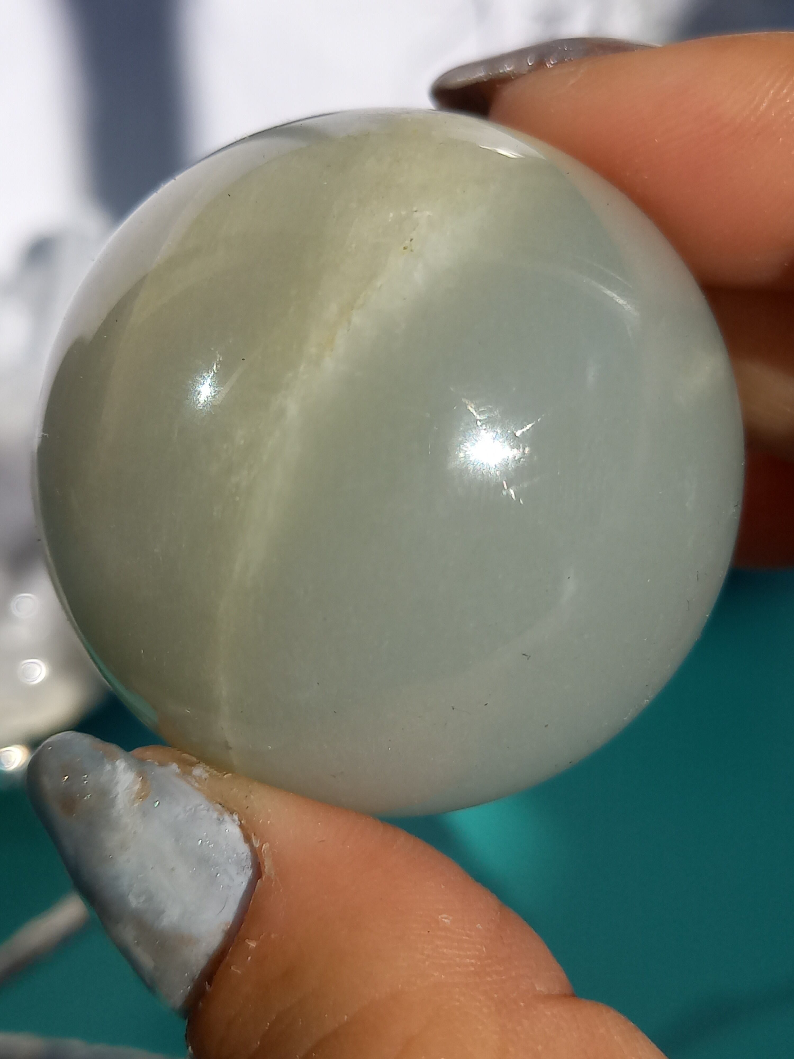 【ガーニエライト(グリーンムーンストーン)】 永遠の愛を象徴する石、魅力を高める石、持ち主を愛情で満たし、家族や親しい友人などの危険を知らせて守護してくれる石などのムーンストーンの効果に加えて、癒しや直感力を向上させてくれるとされています。
