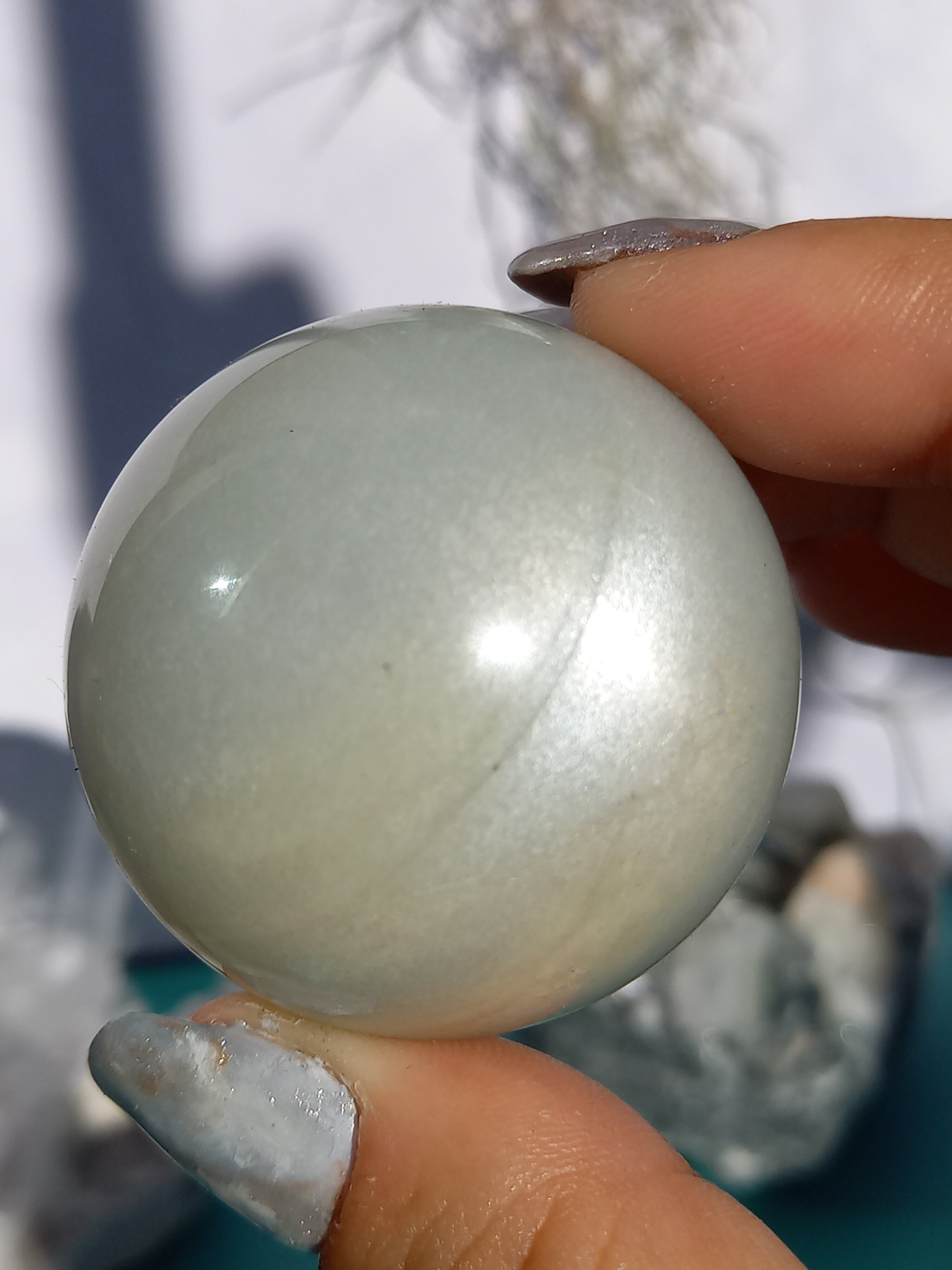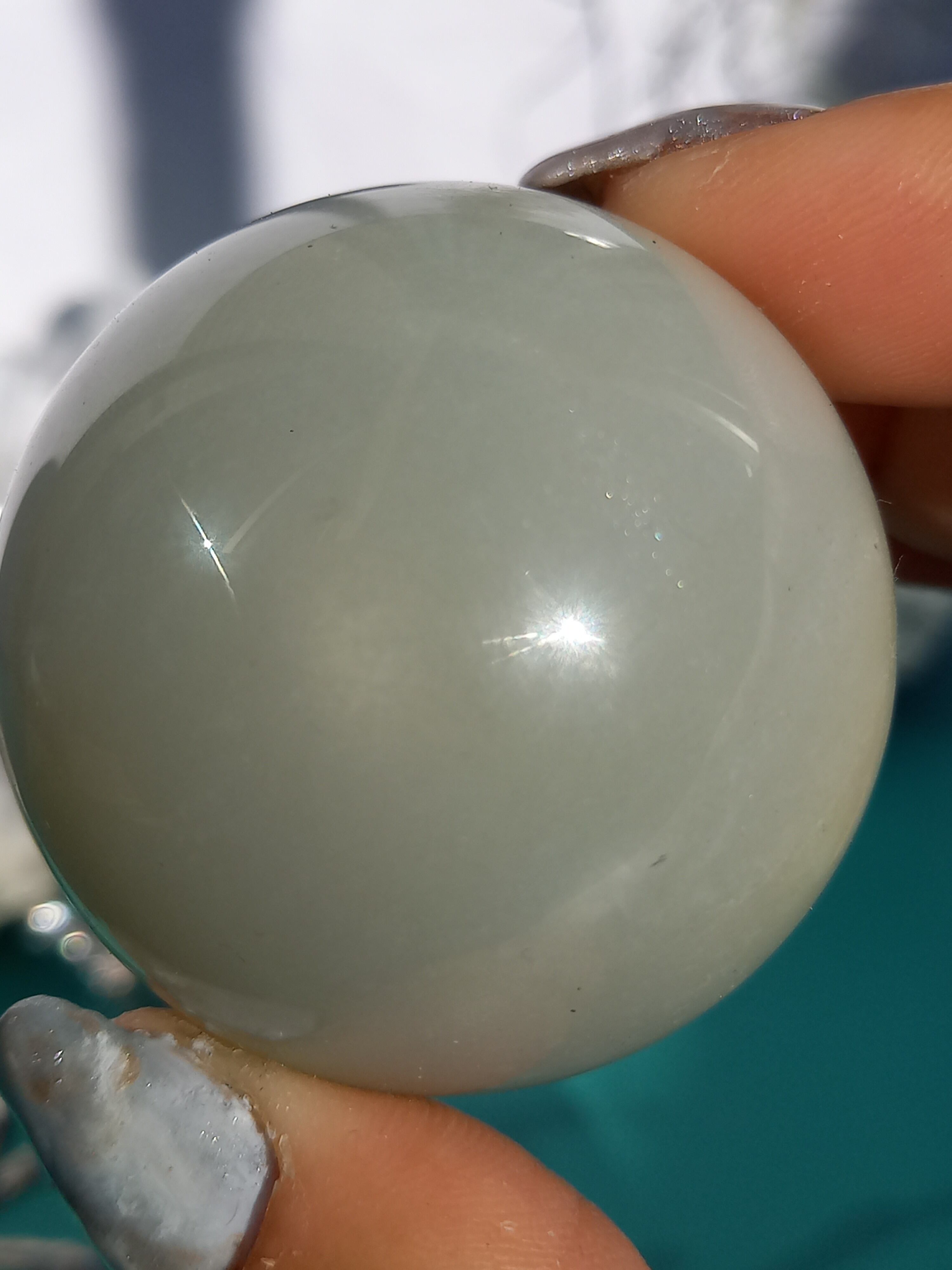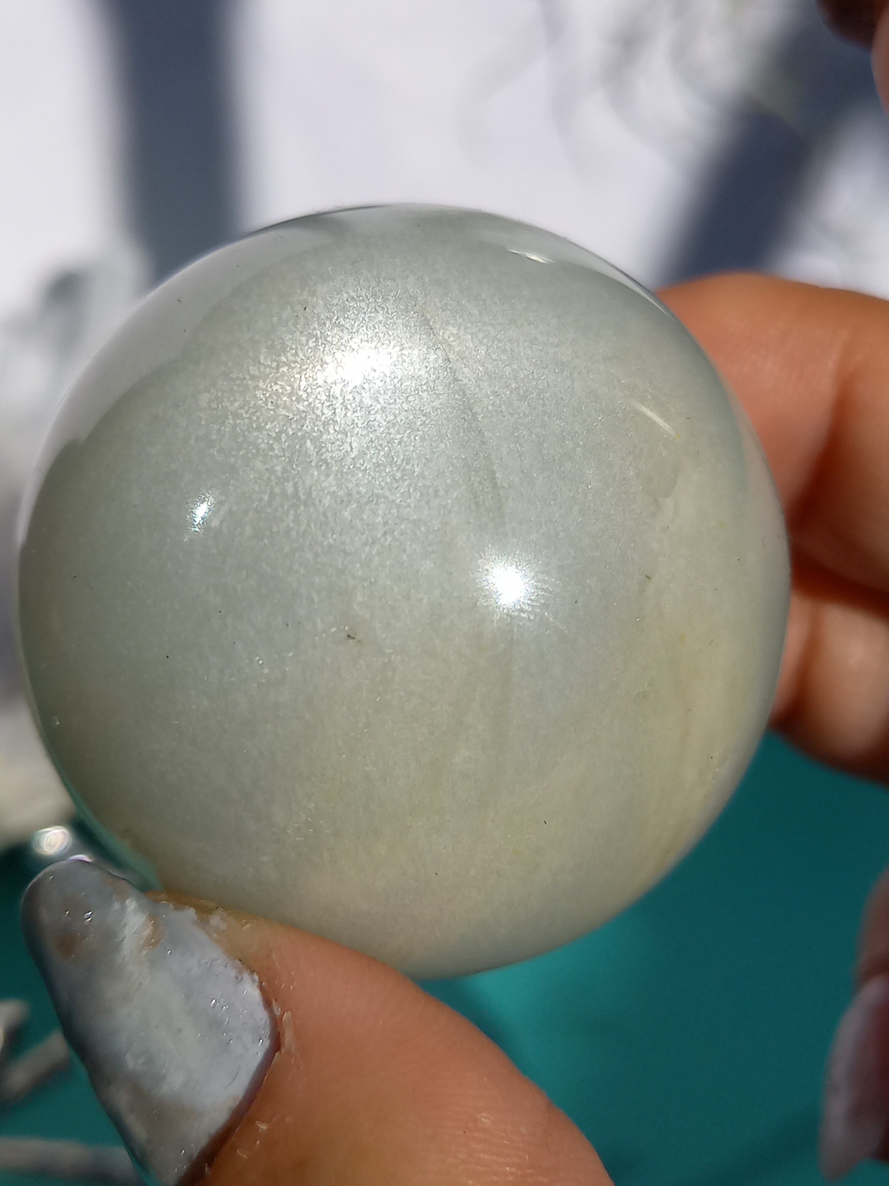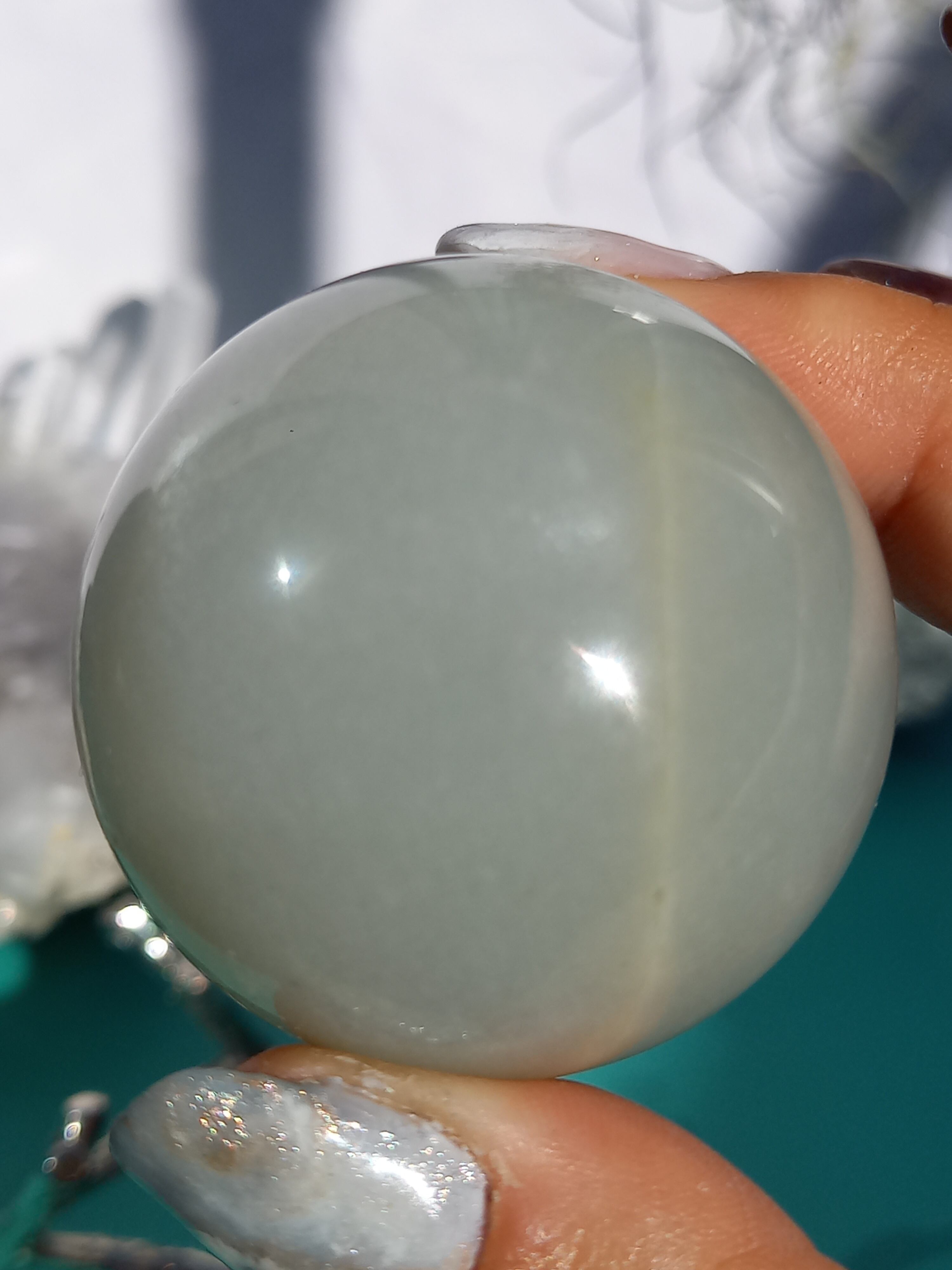 【ガーニエライト(グリーンムーンストーン)】 永遠の愛を象徴する石、魅力を高める石、持ち主を愛情で満たし、家族や親しい友人などの危険を知らせて守護してくれる石などのムーンストーンの効果に加えて、癒しや直感力を向上させてくれるとされています。