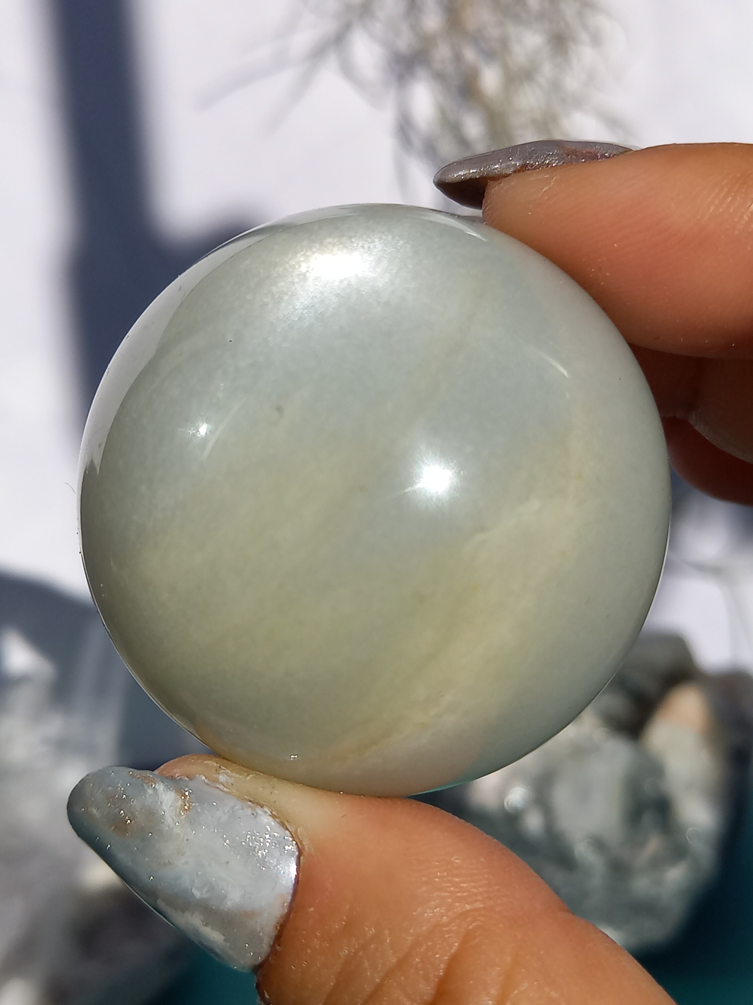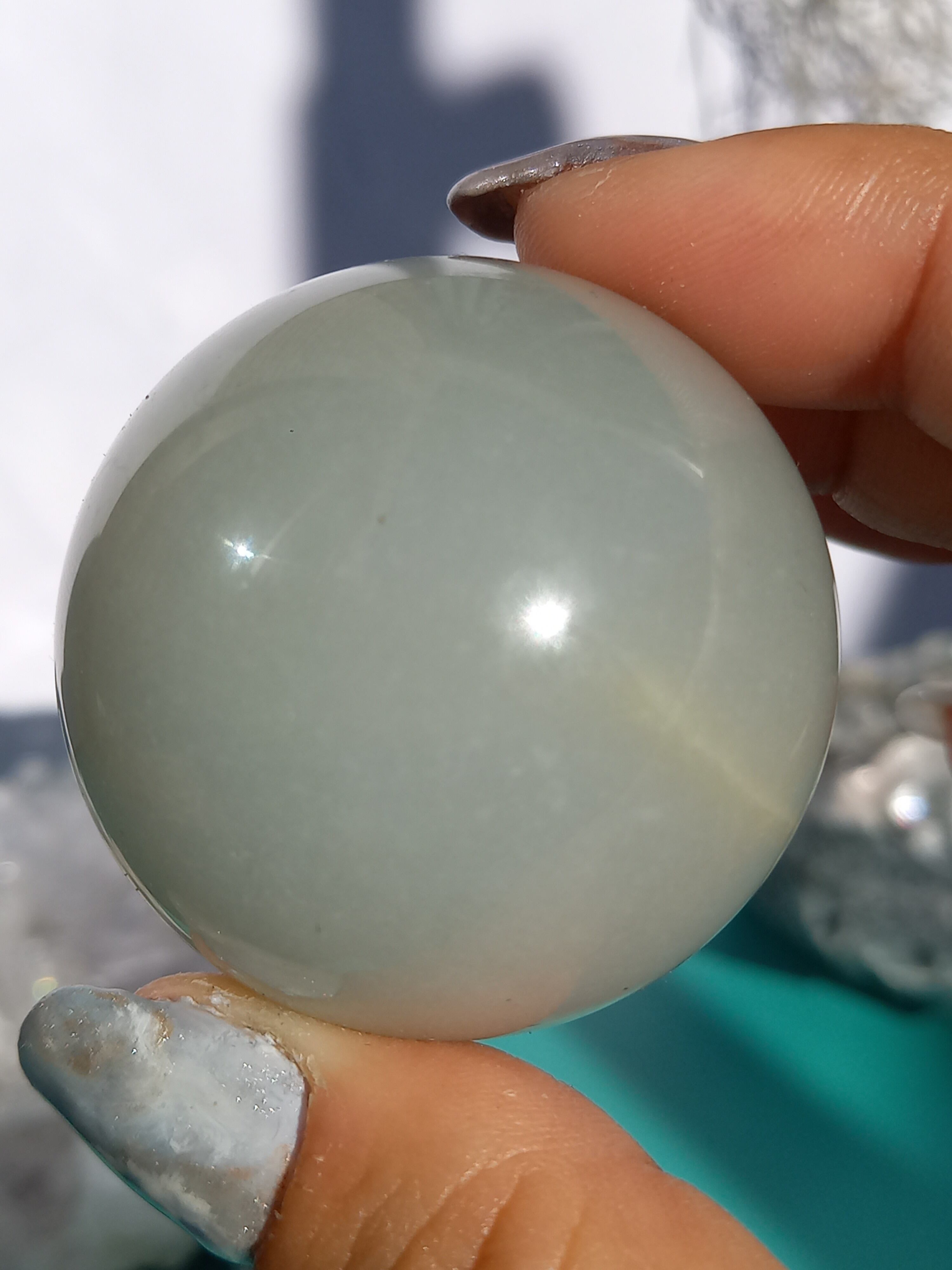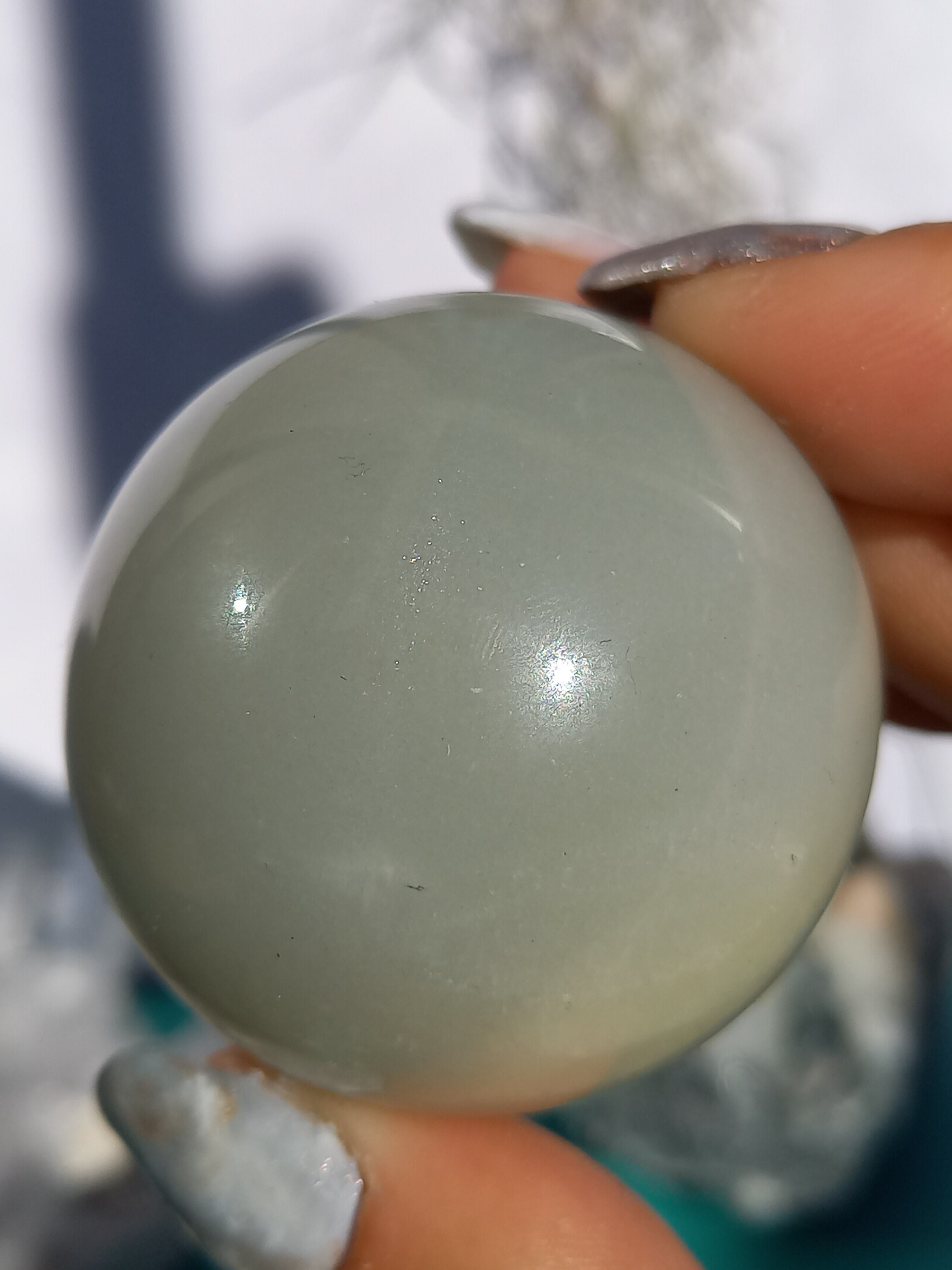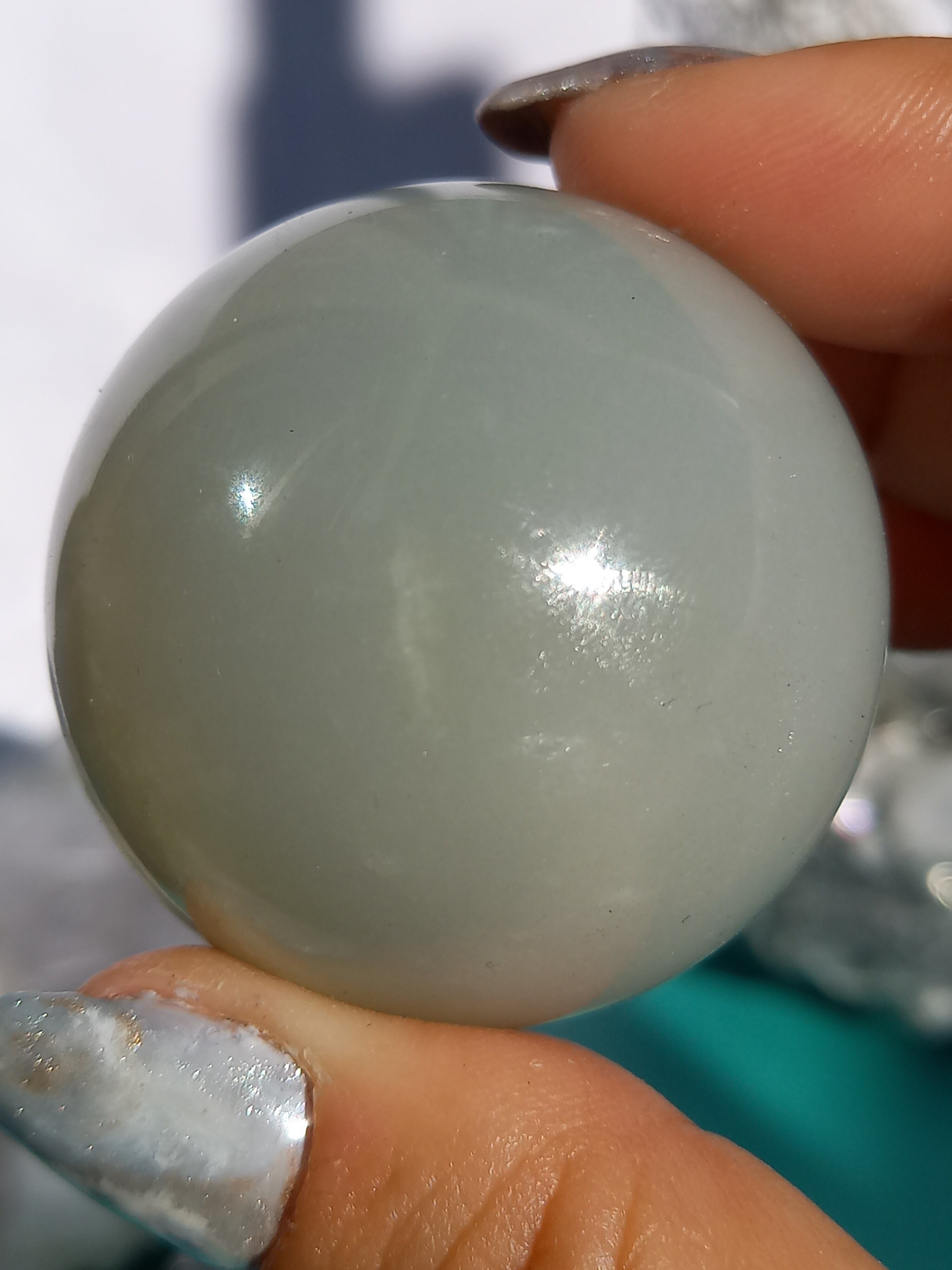 【ガーニエライト(グリーンムーンストーン)】 永遠の愛を象徴する石、魅力を高める石、持ち主を愛情で満たし、家族や親しい友人などの危険を知らせて守護してくれる石などのムーンストーンの効果に加えて、癒しや直感力を向上させてくれるとされています。