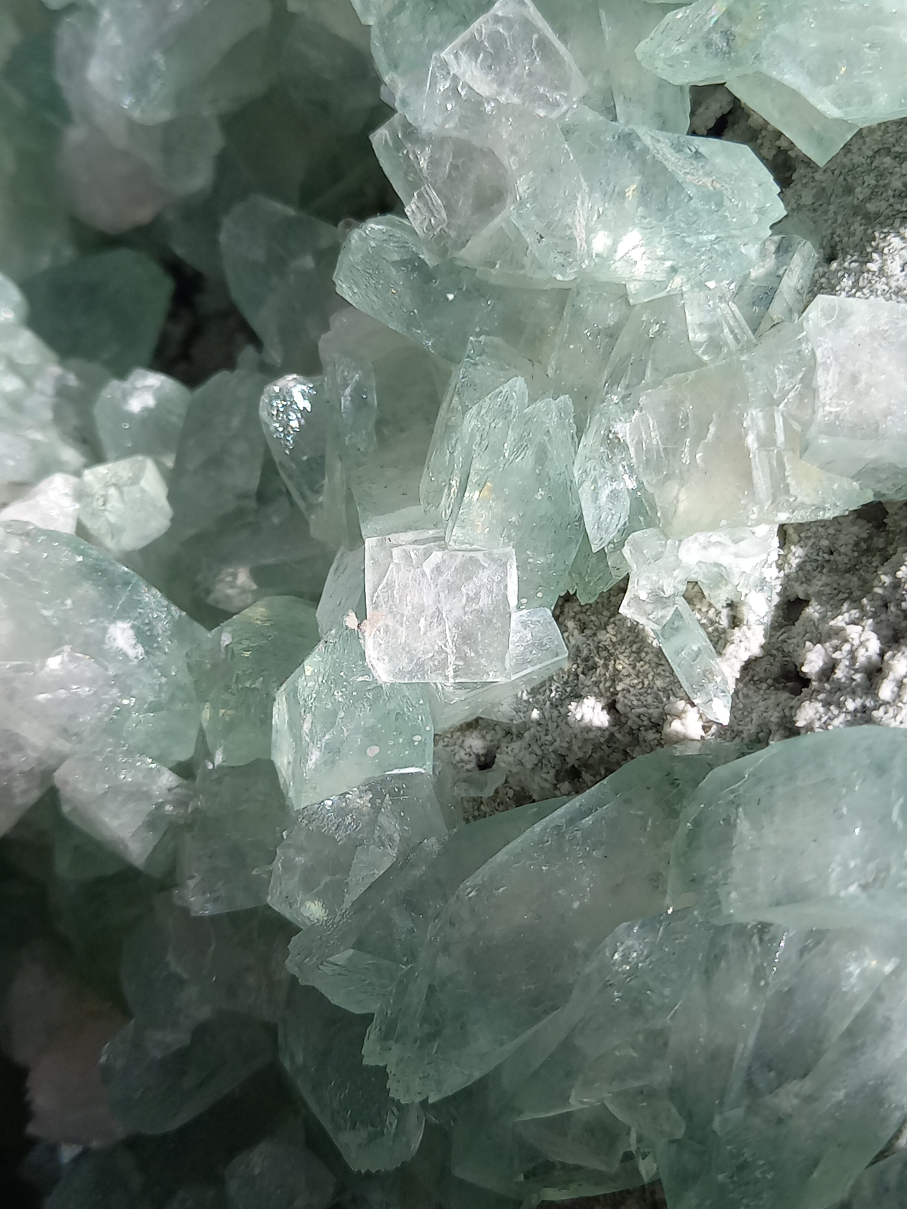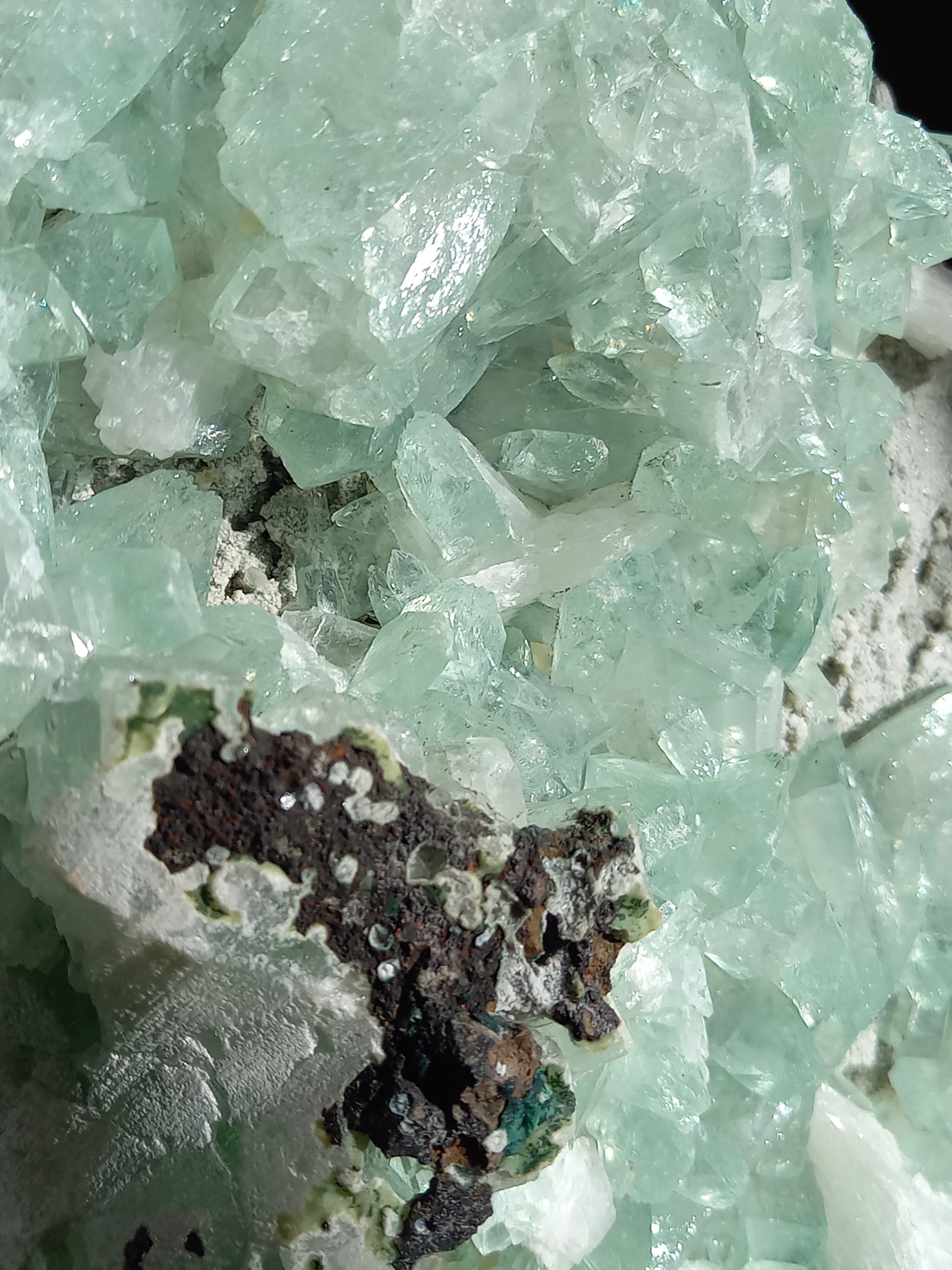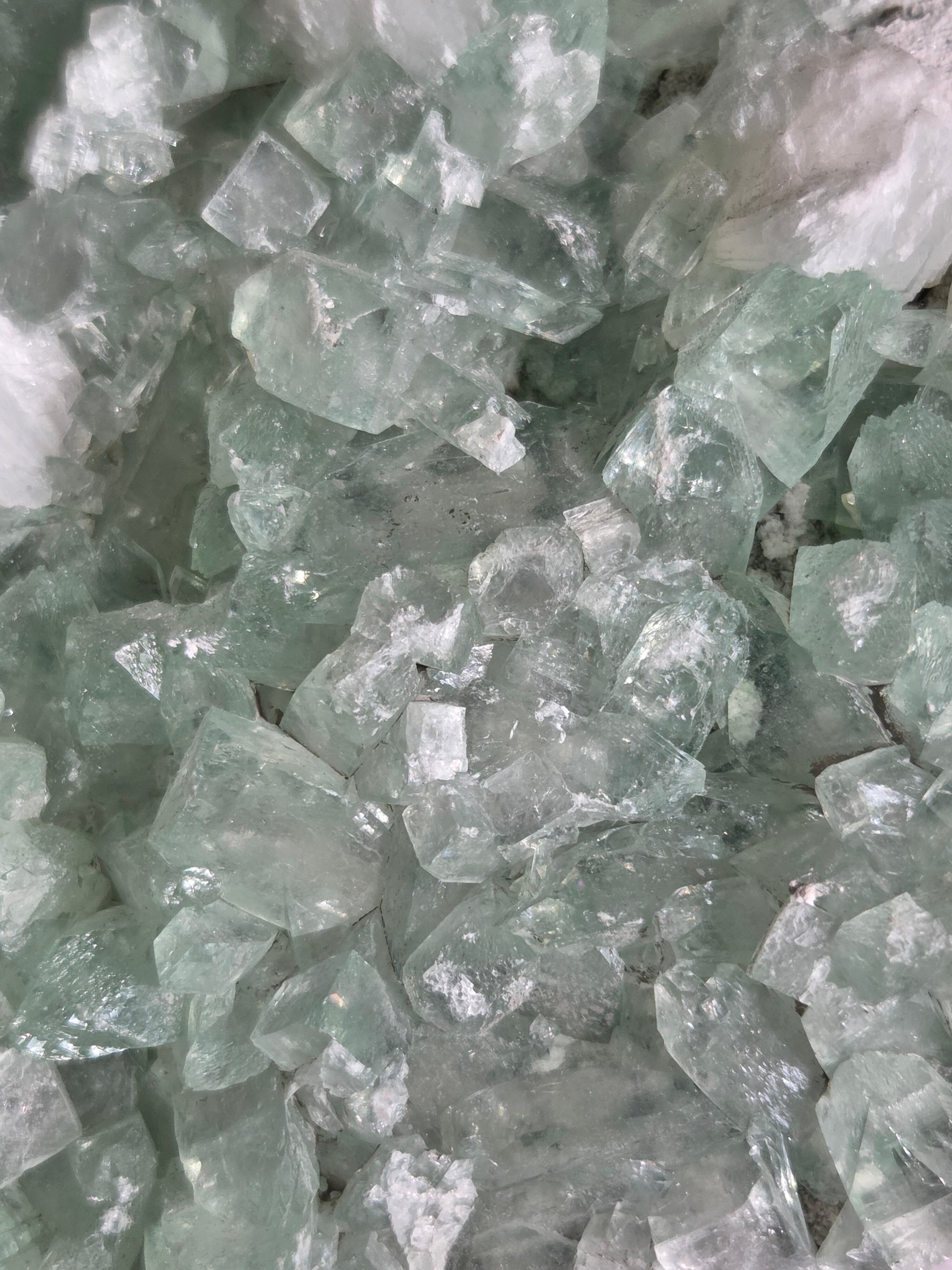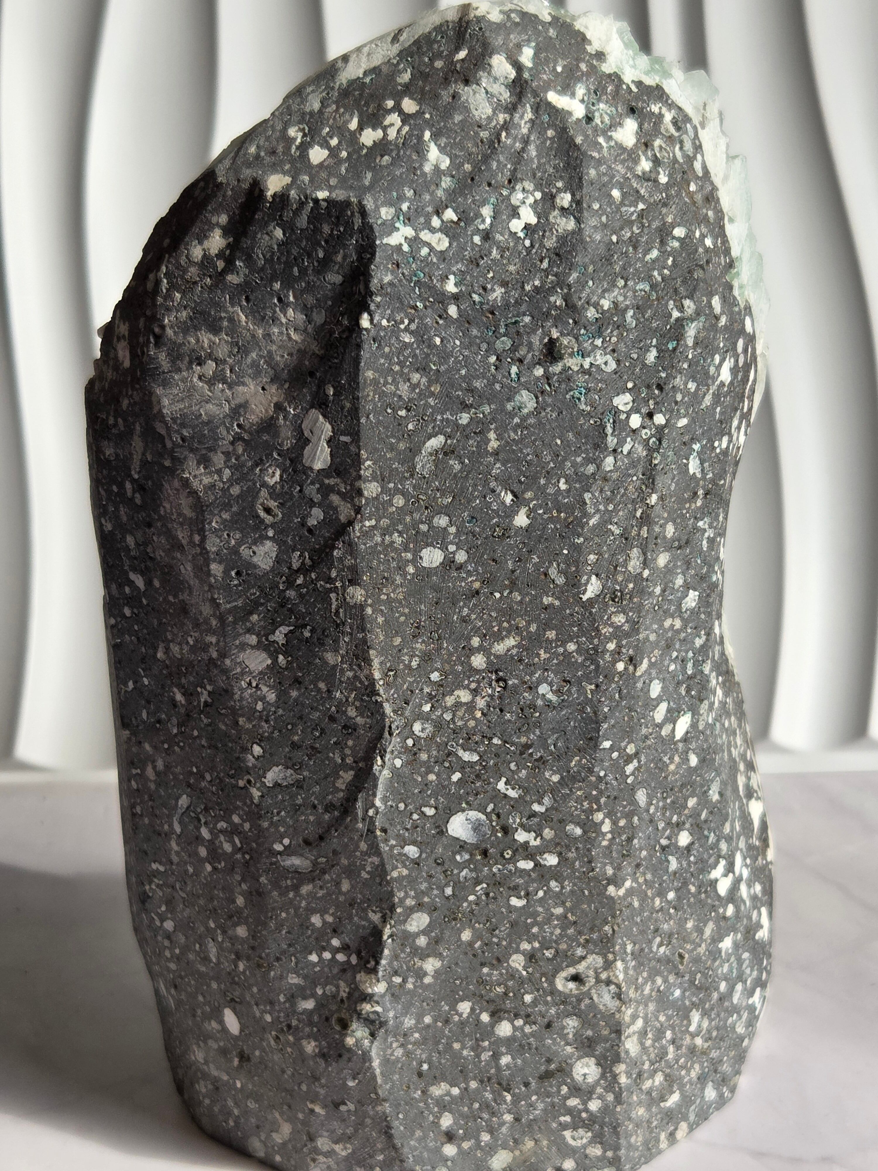 存在感抜群の大きなドームで、母岩まで美しいです。インド産のアポフィライトは、透明度があるアポフィライトが多く産出されており、年々価値があがっています。キラキラな透明感あるアポフィライトで、エメラルドグリーンカラーがとっても素敵で、沢山の虹が見え美しいです。