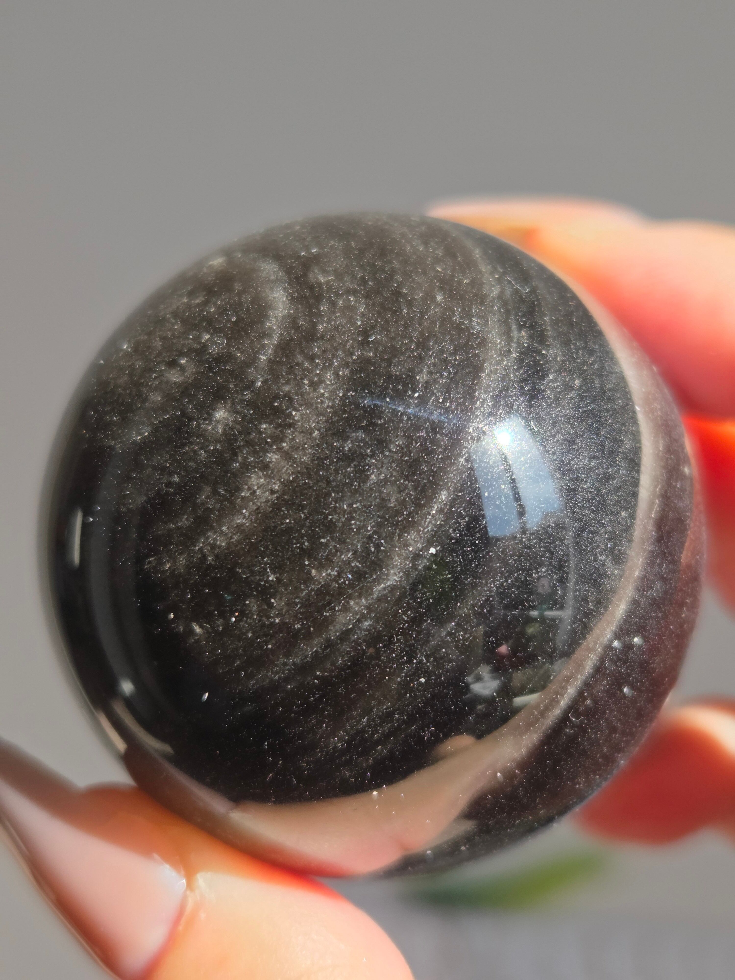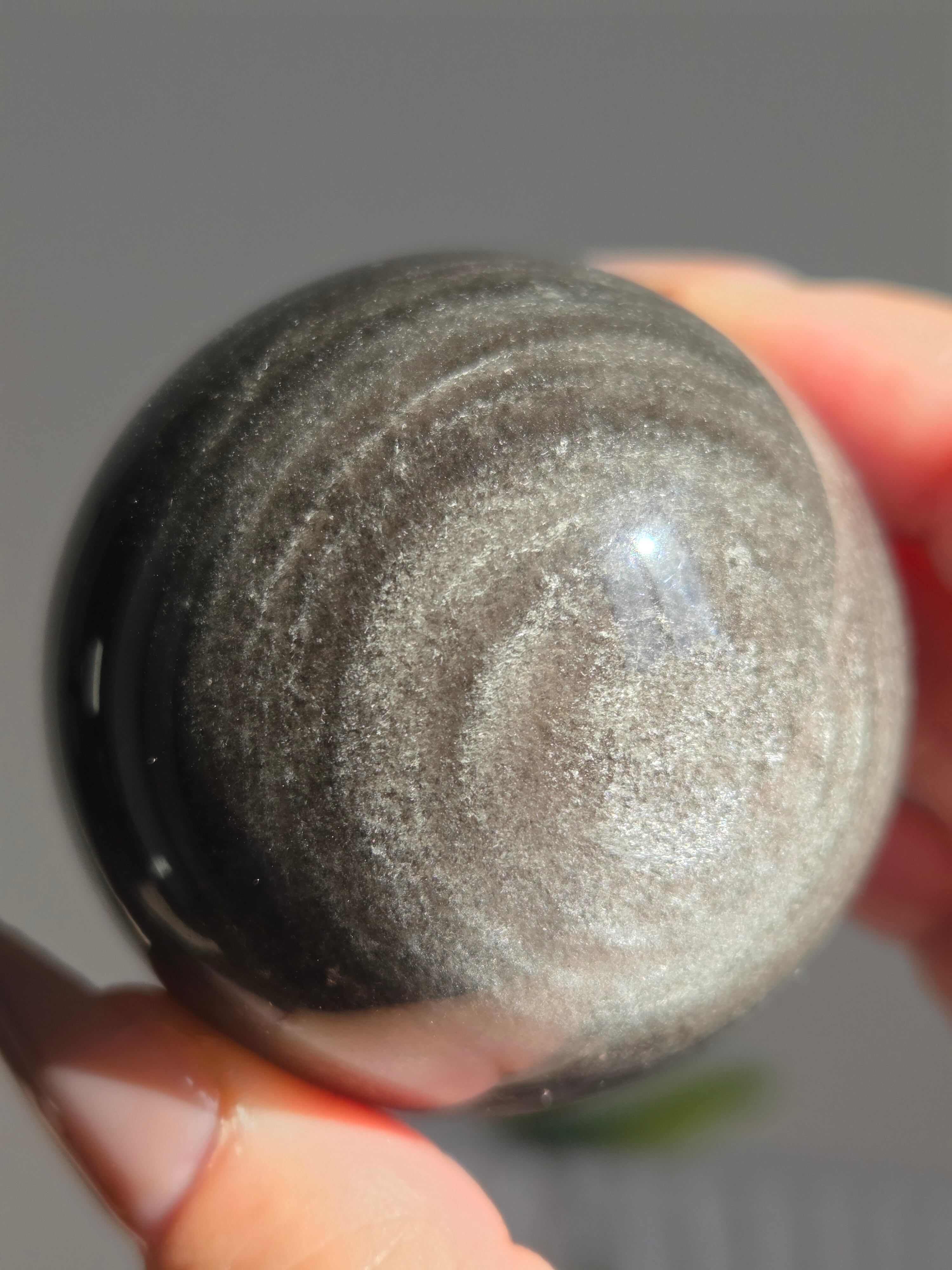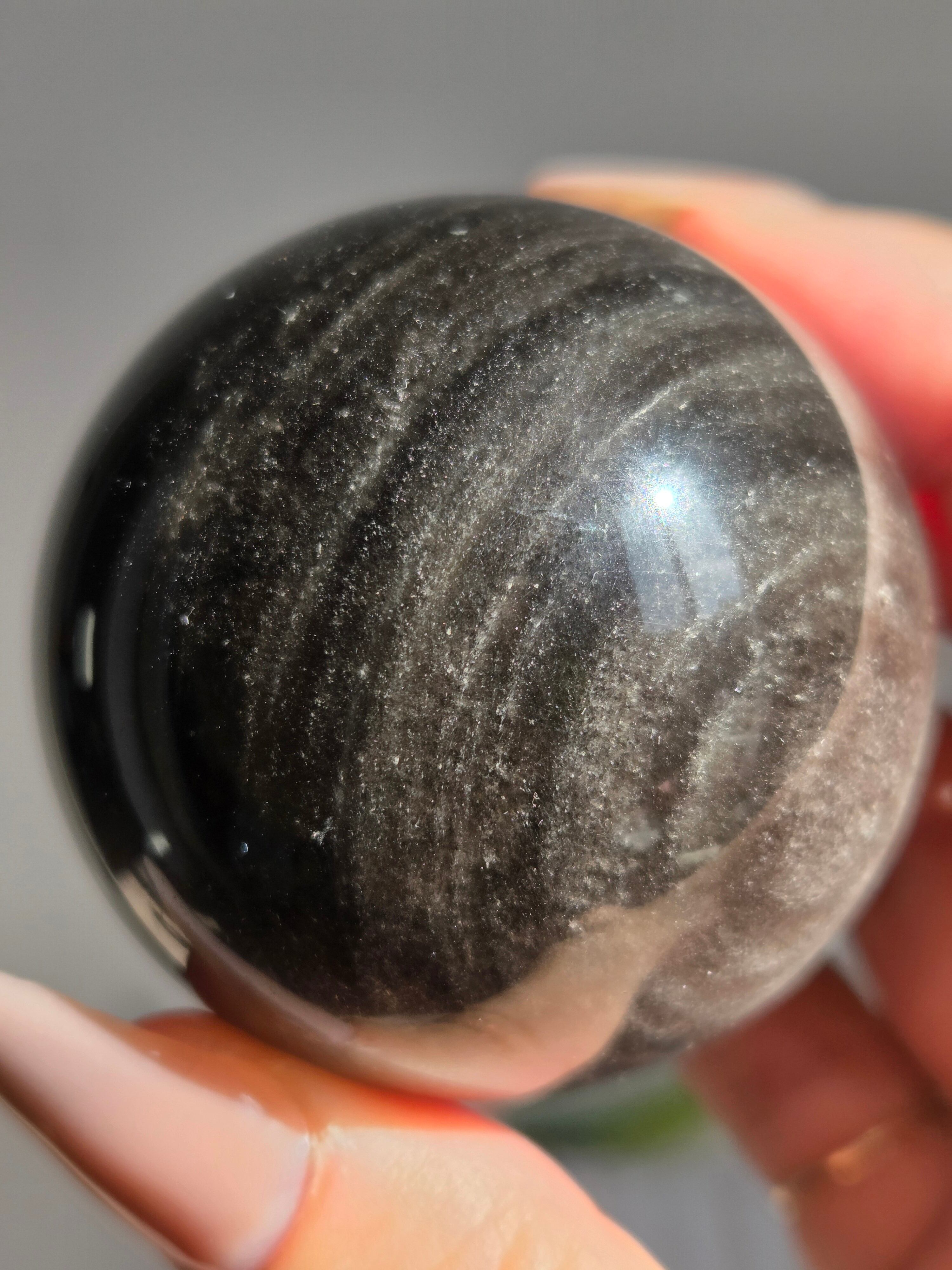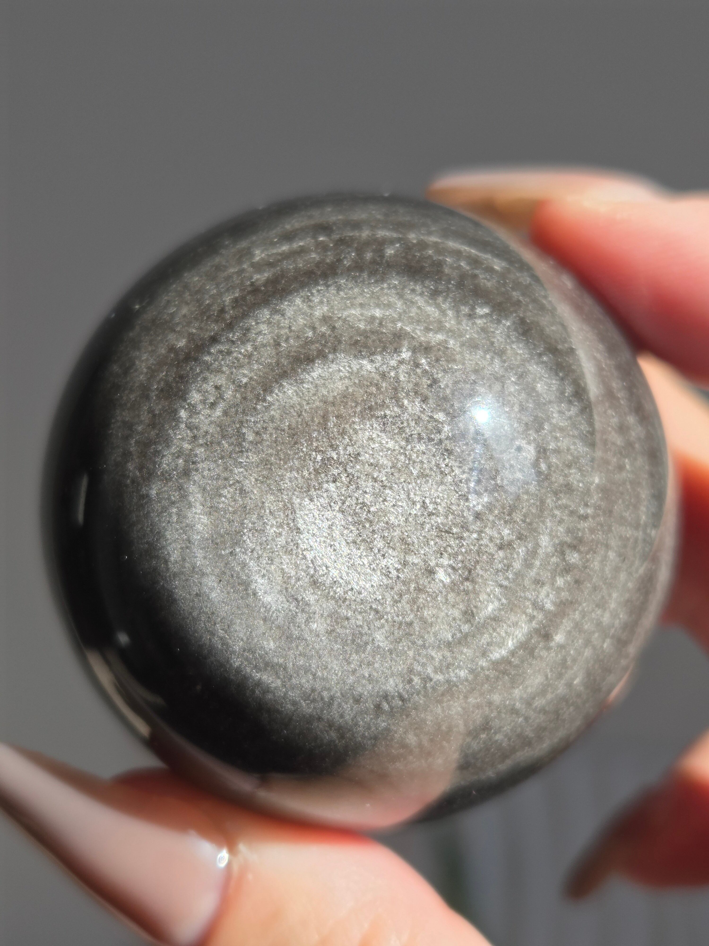 黒いオブシディアンの中に浮かぶ白銀の輝きが神々しいです。
