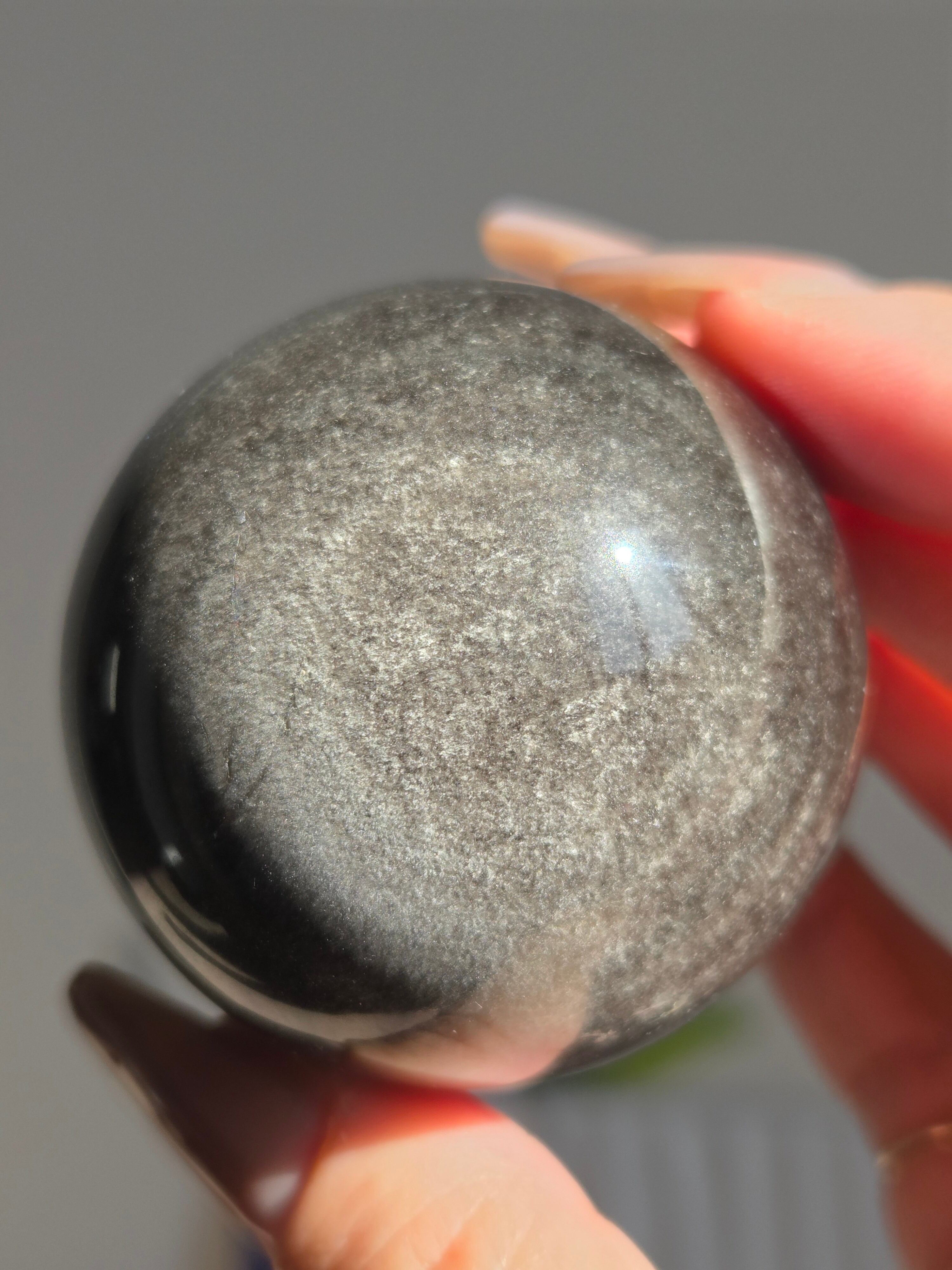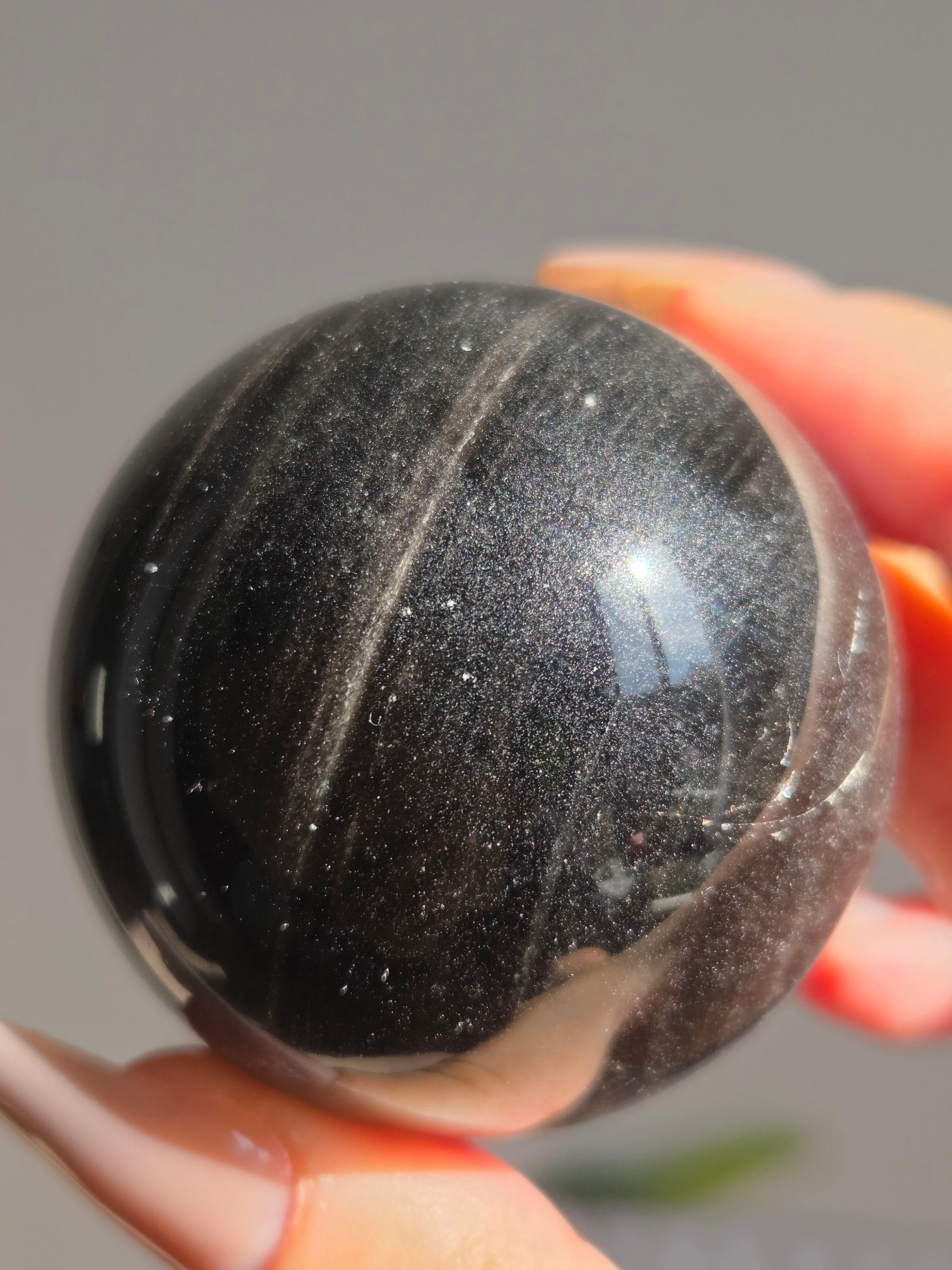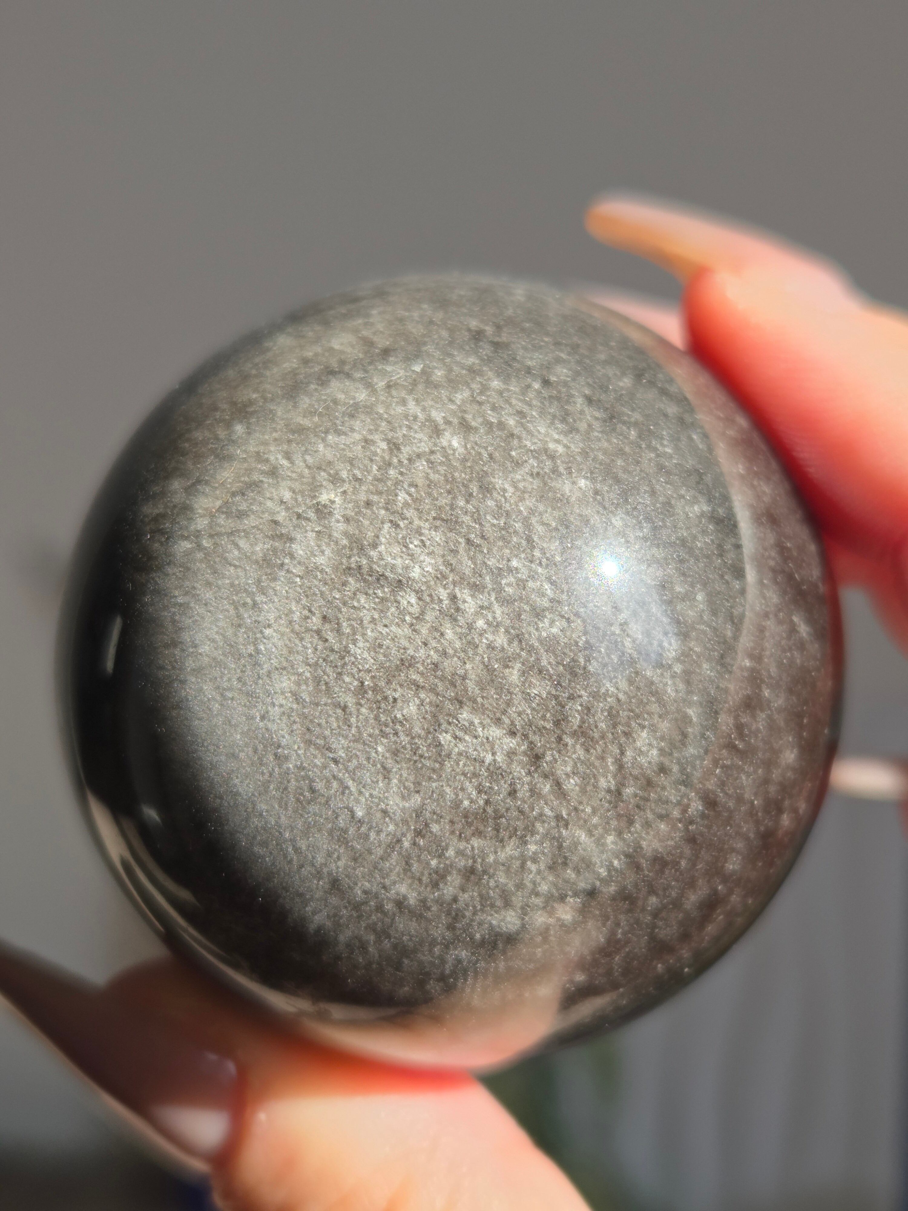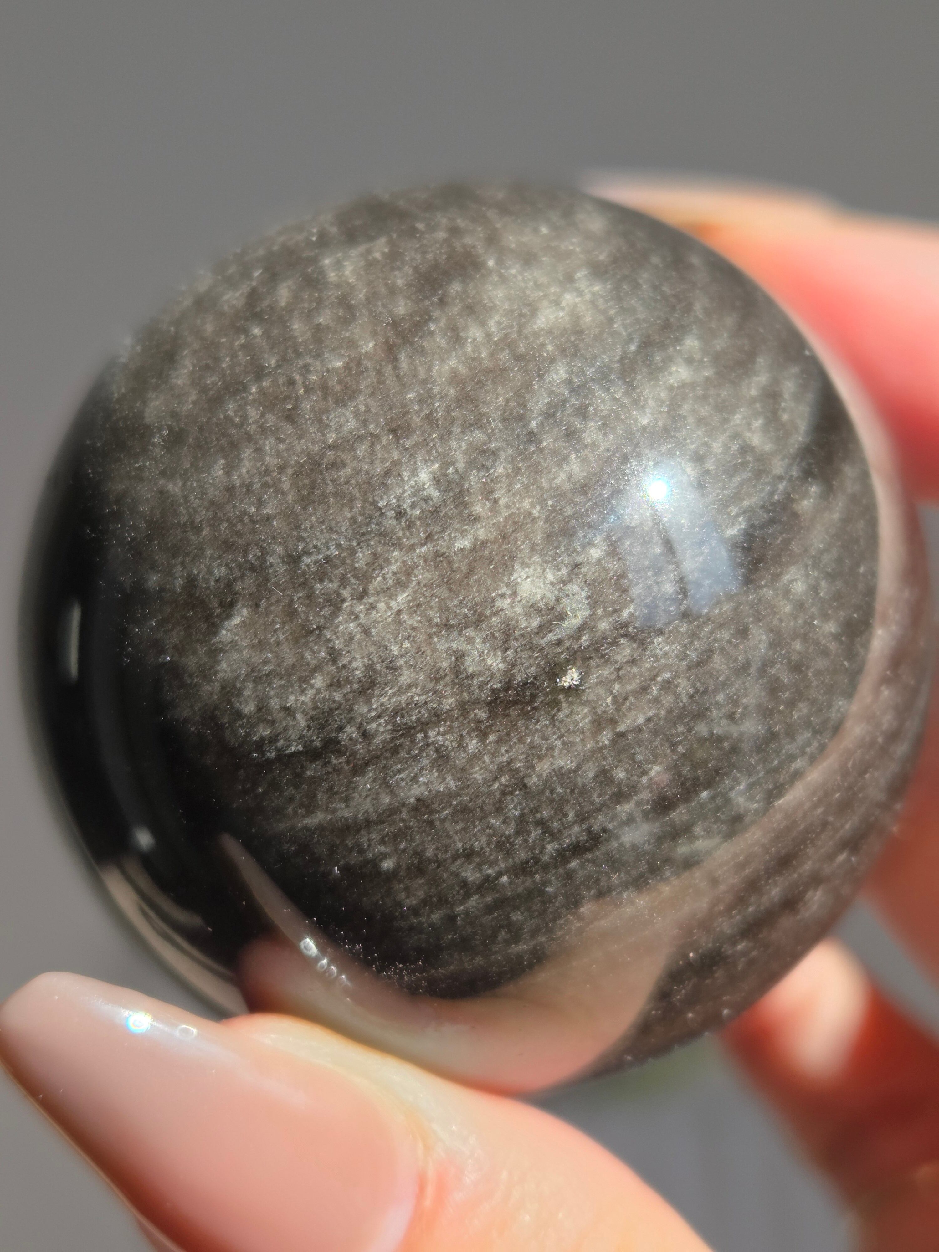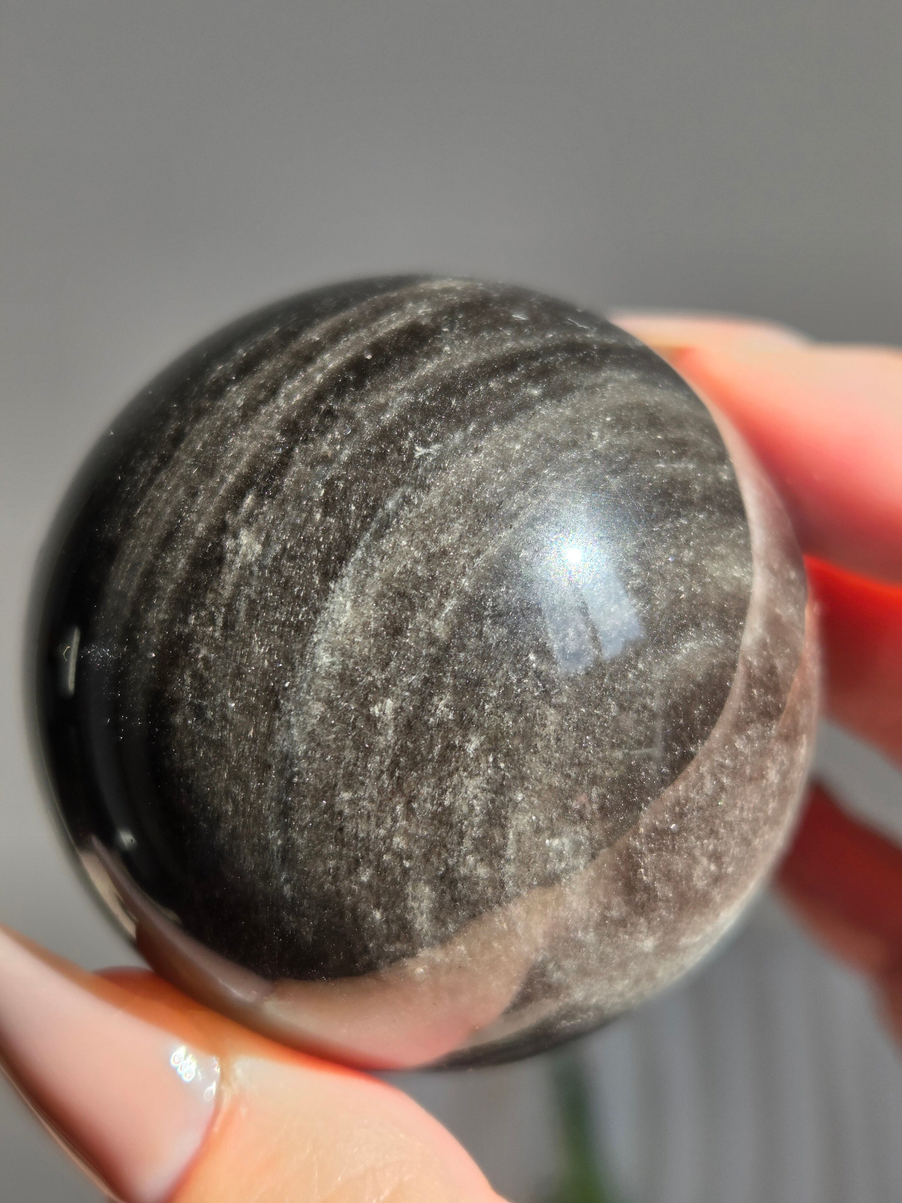 黒いオブシディアンの中に浮かぶ白銀の輝きが神々しいです。