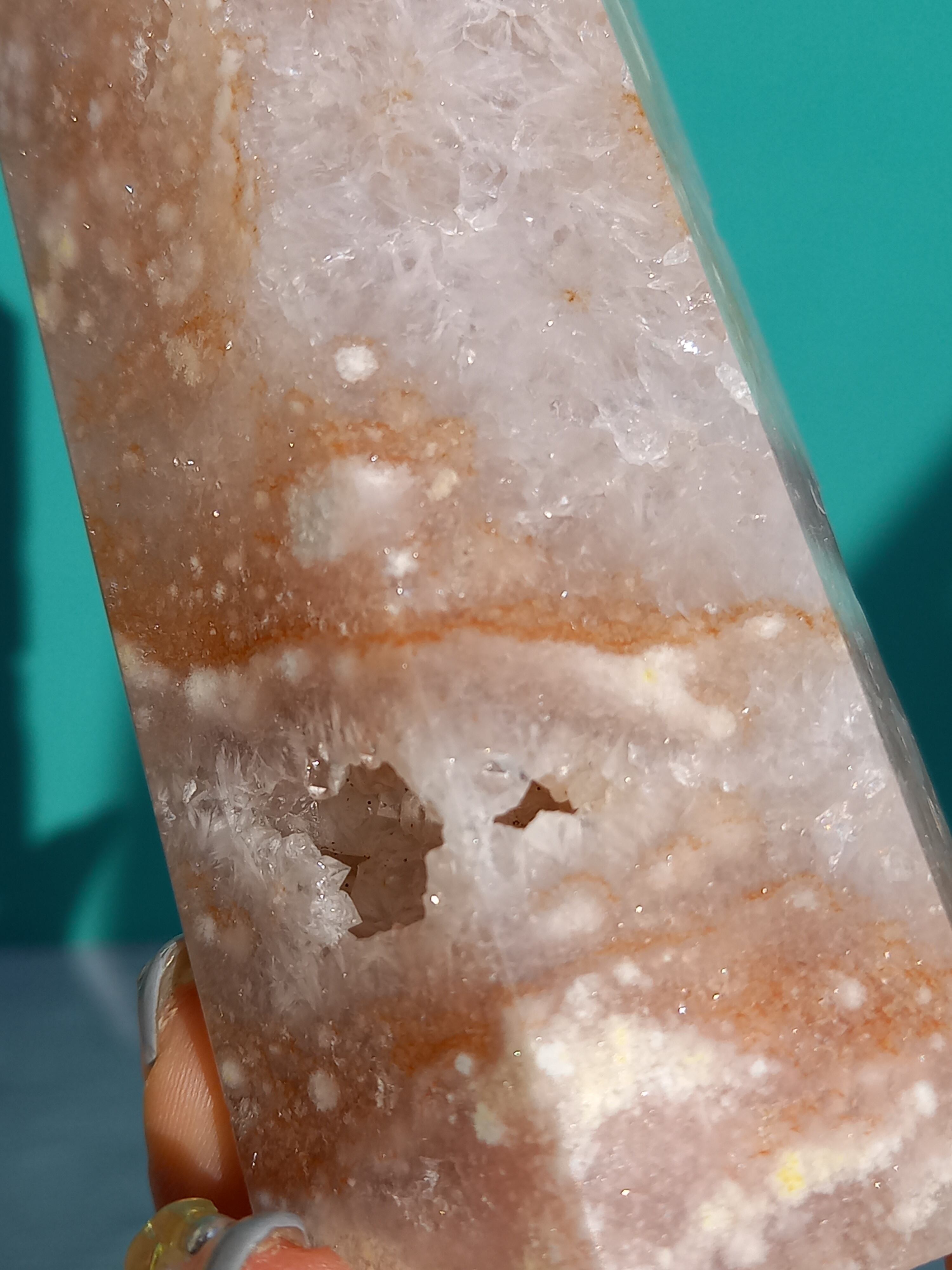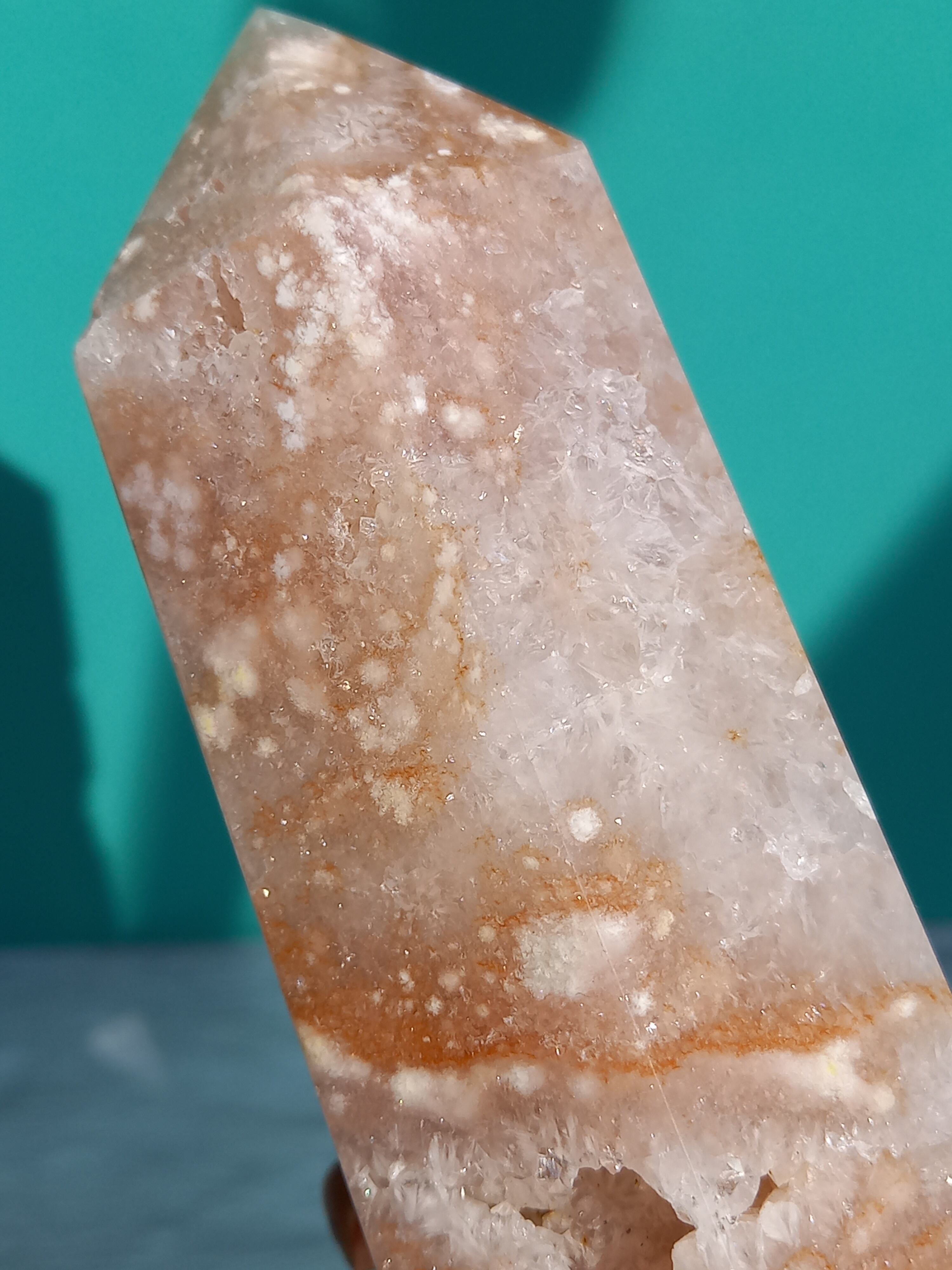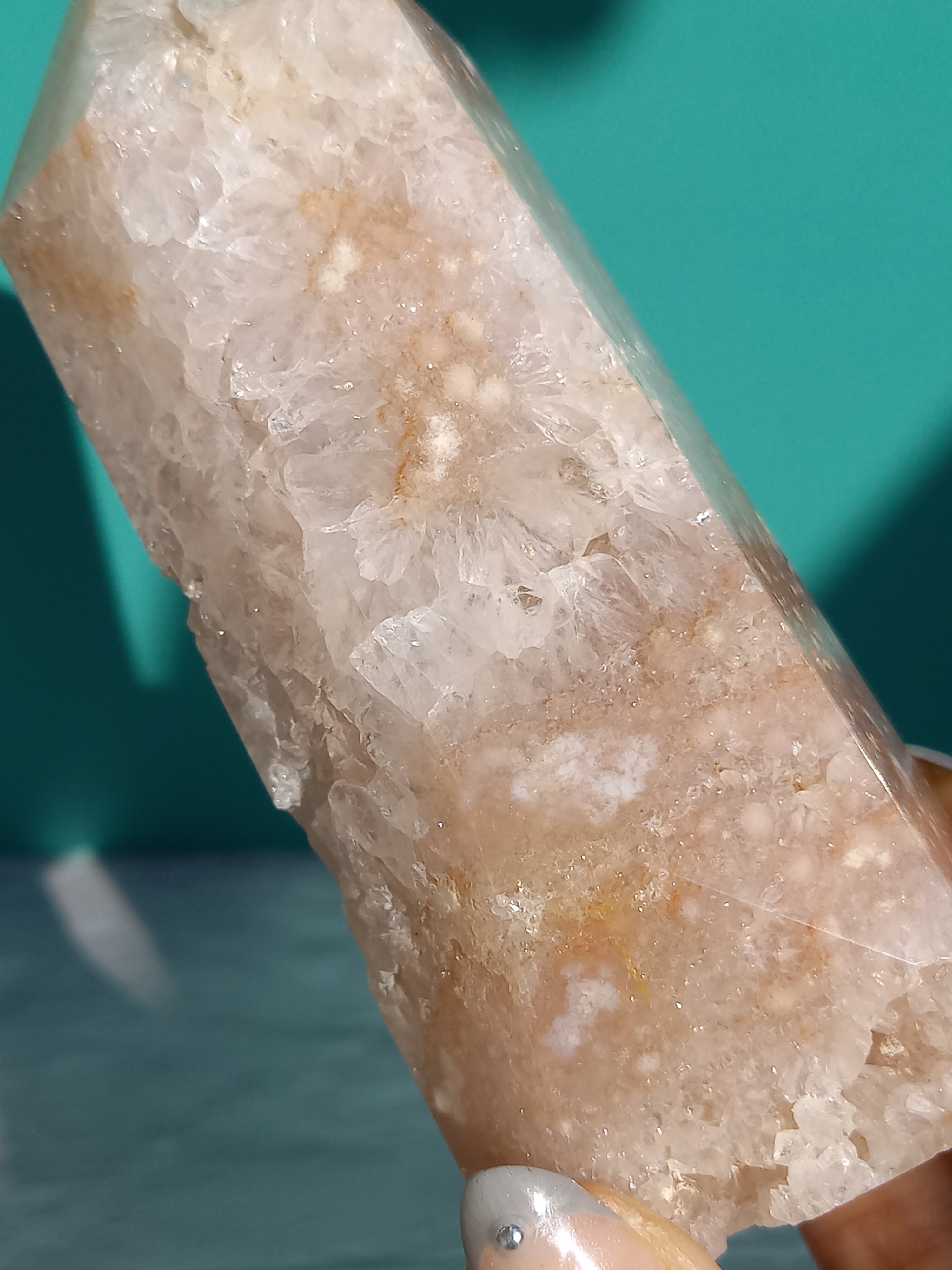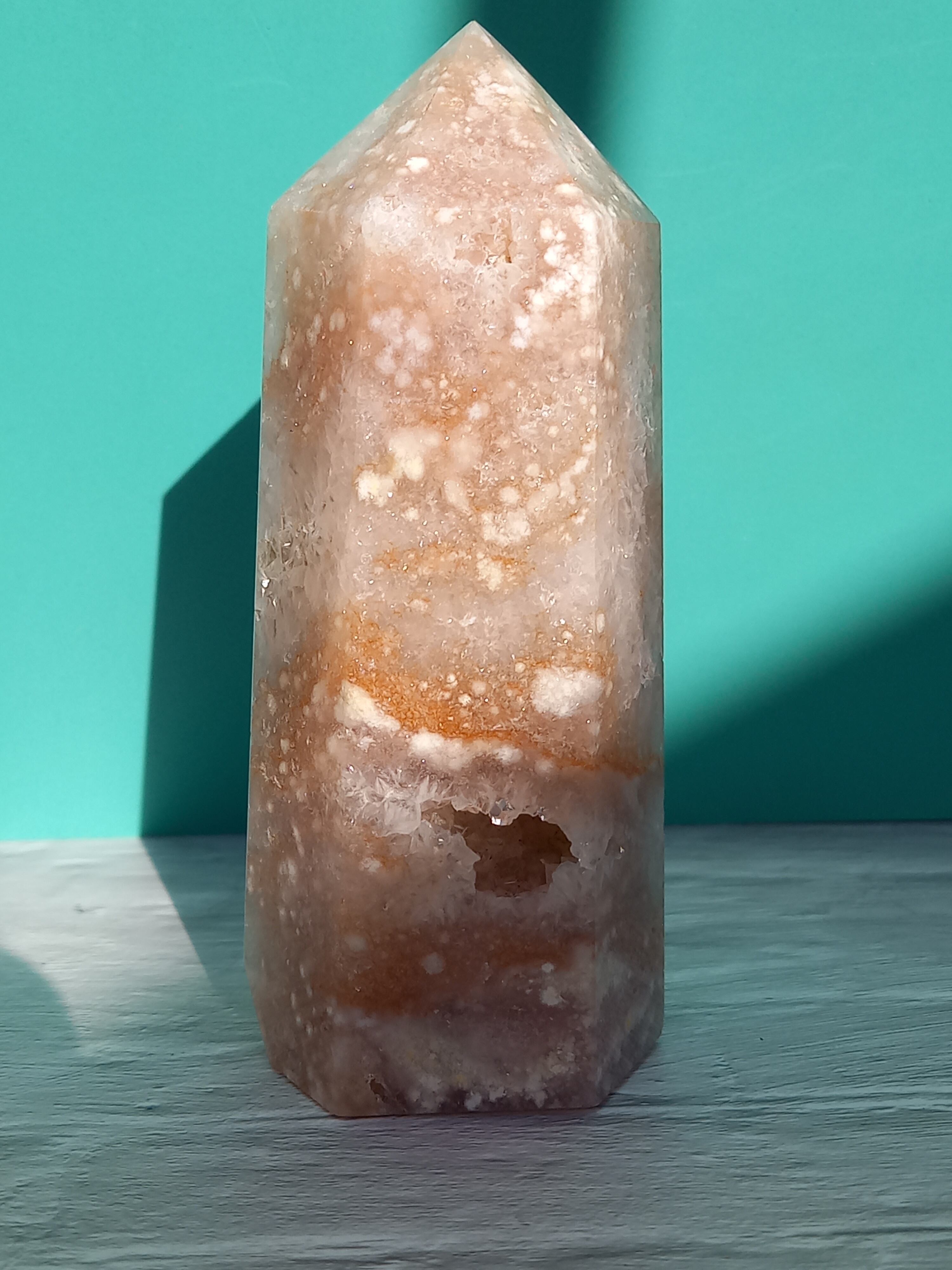 ピンクアメジストに、フラワーアゲートが共生したポイントタワーになります。