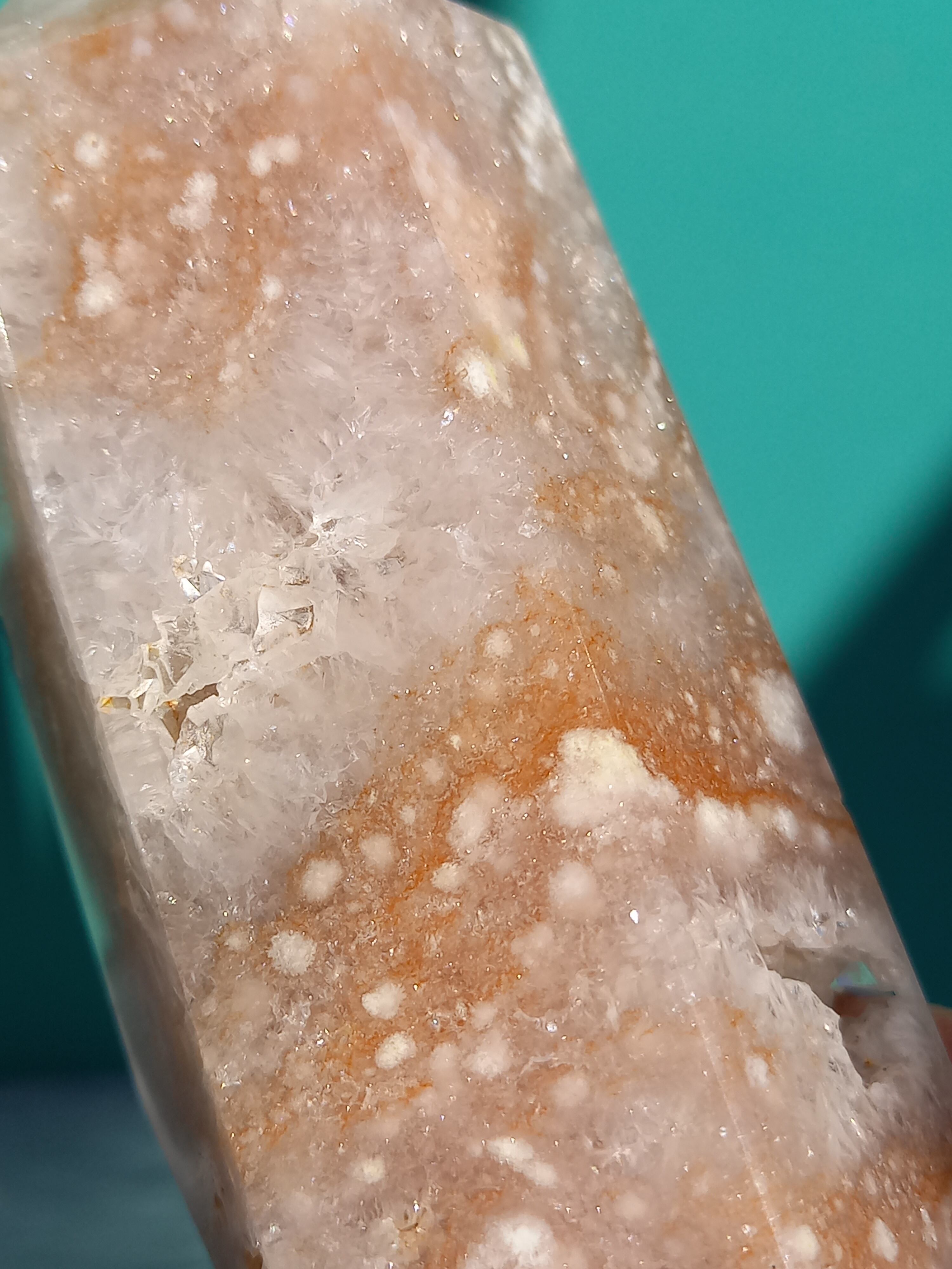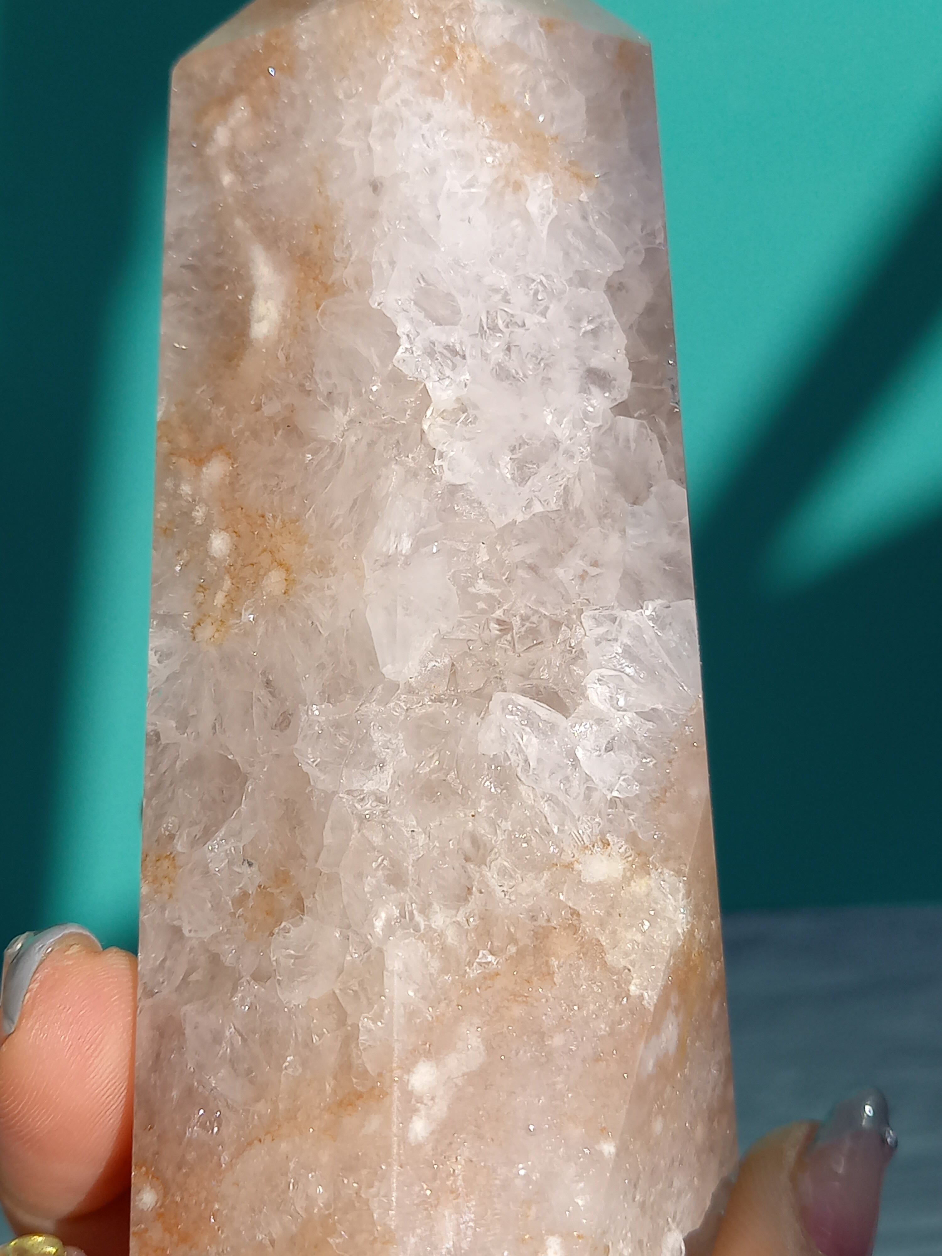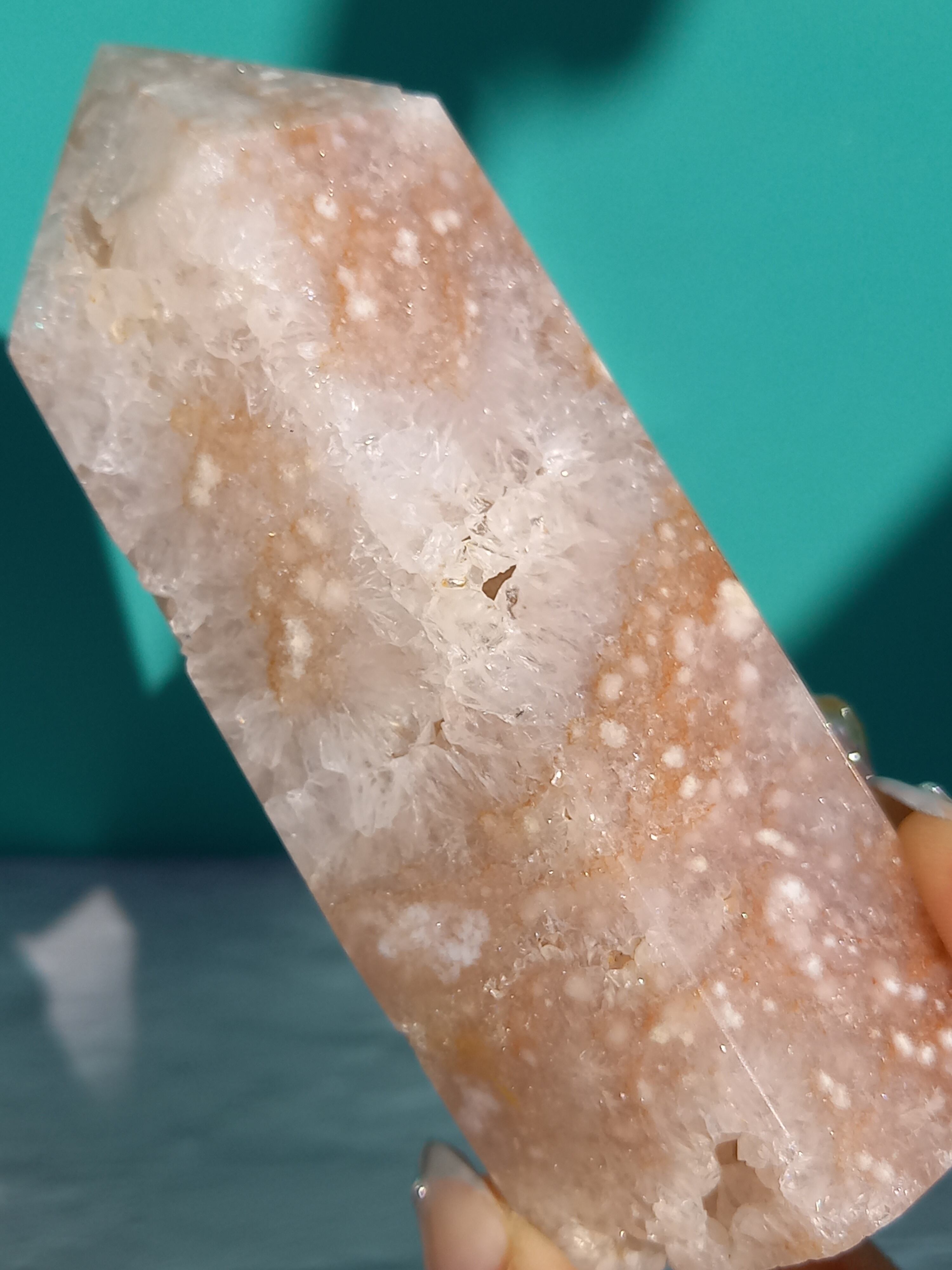 ピンクアメジストに、フラワーアゲートが共生したポイントタワーになります。