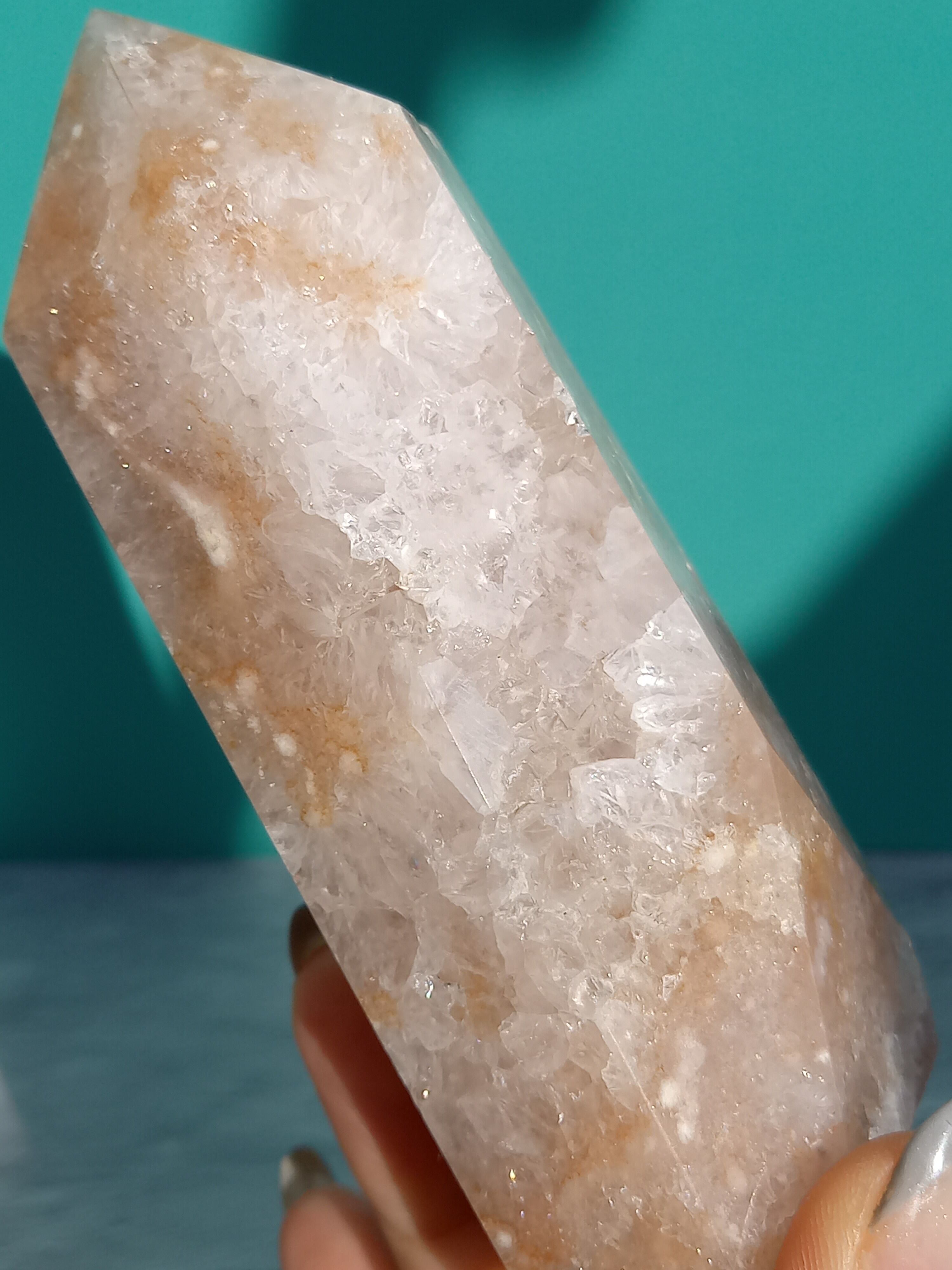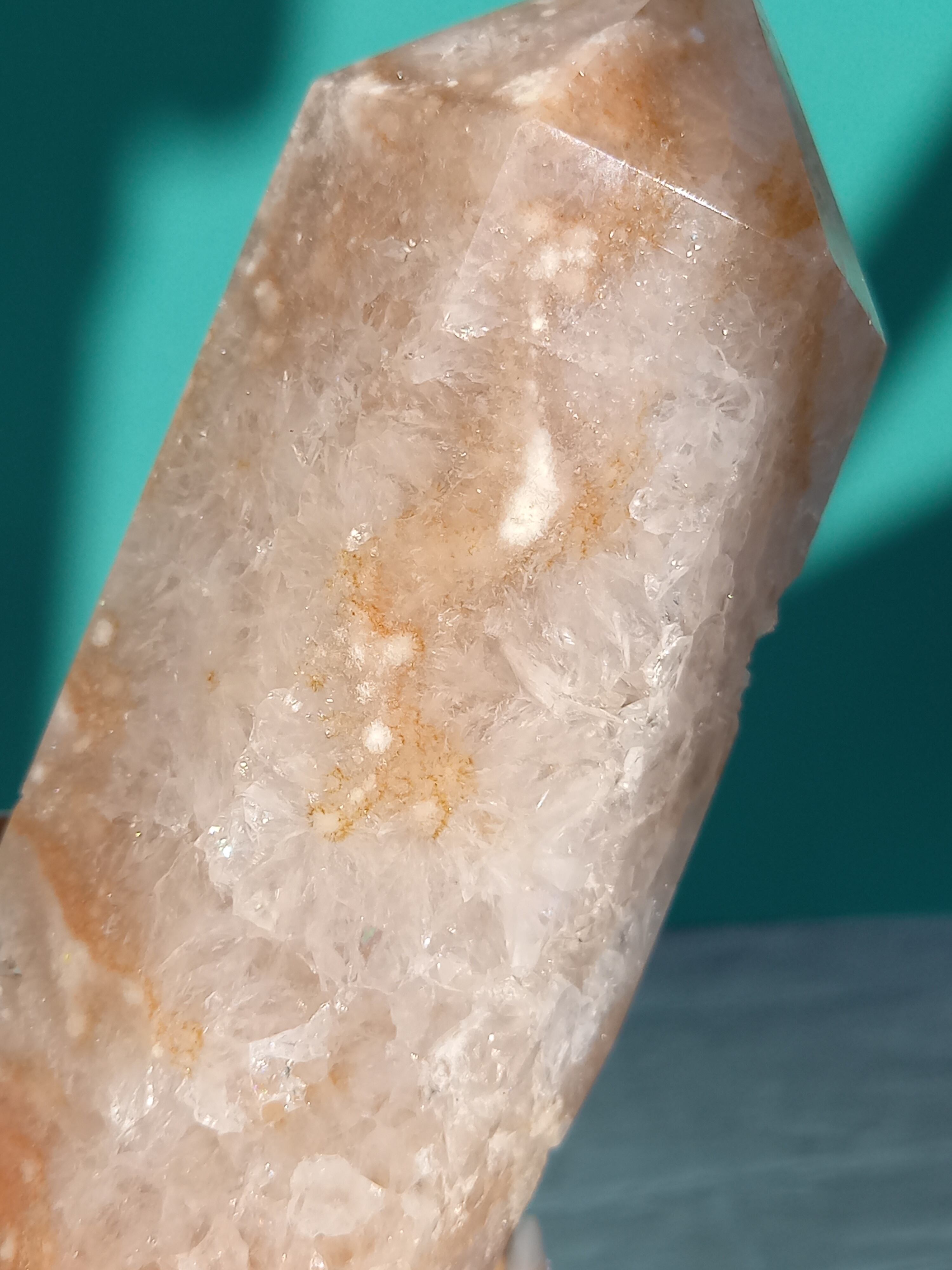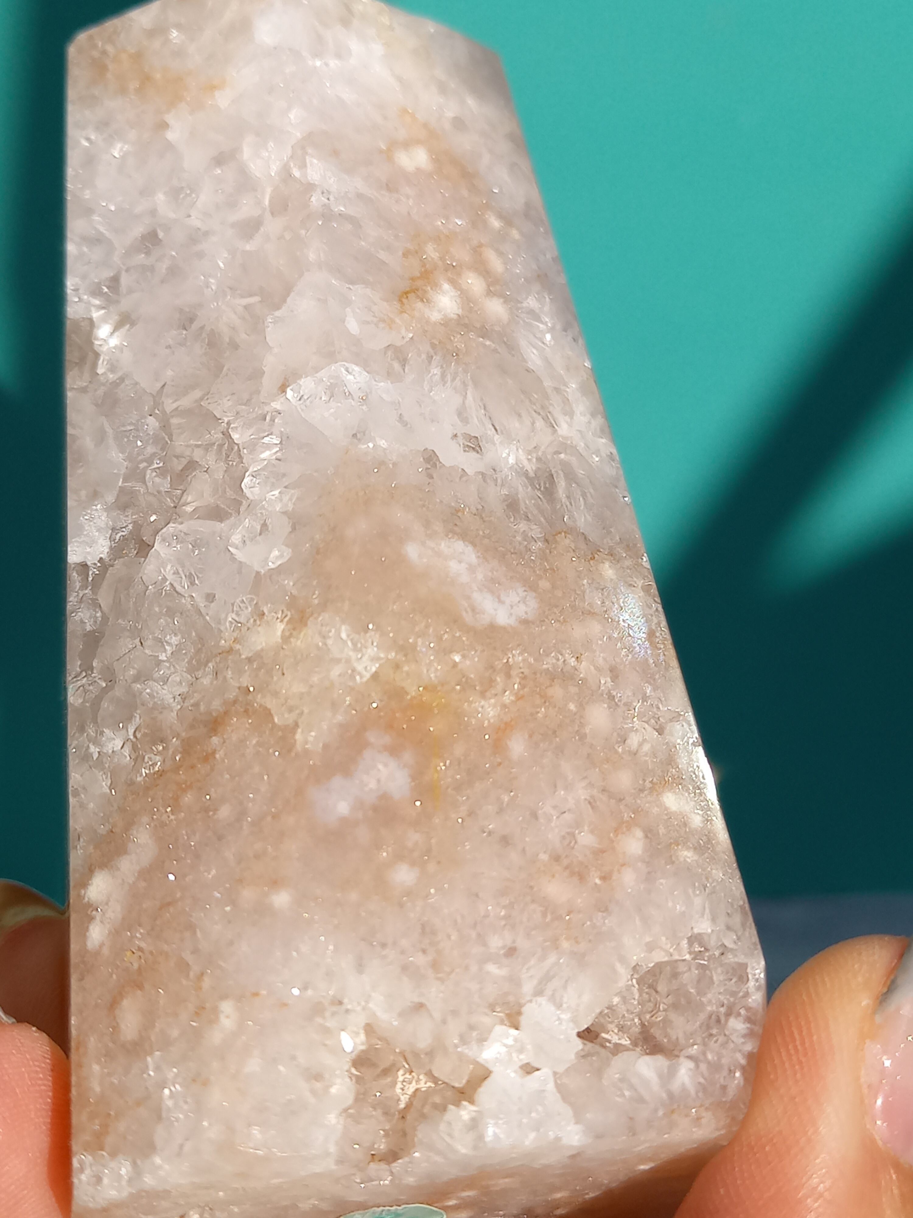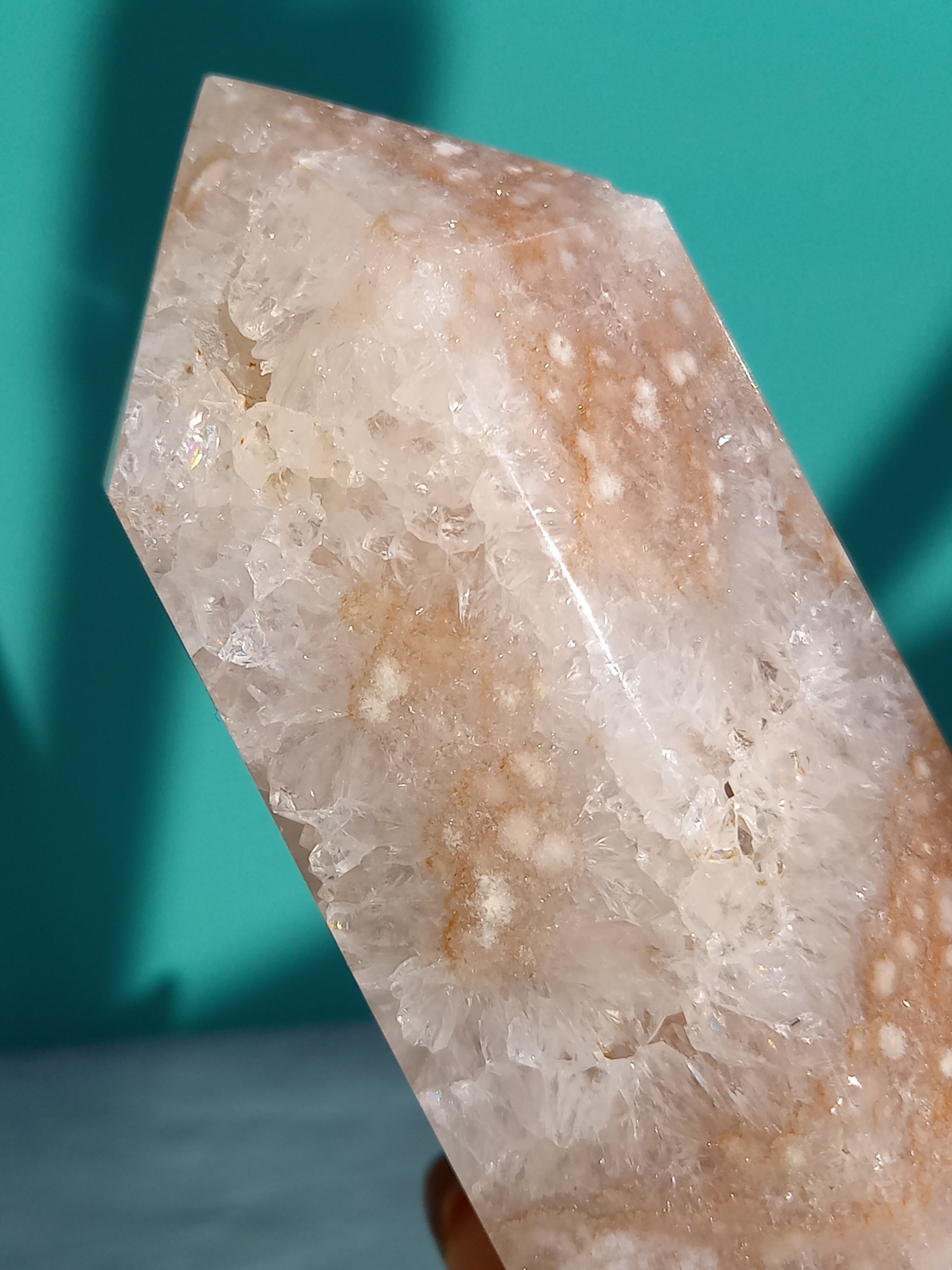ピンクアメジストに、フラワーアゲートが共生したポイントタワーになります。