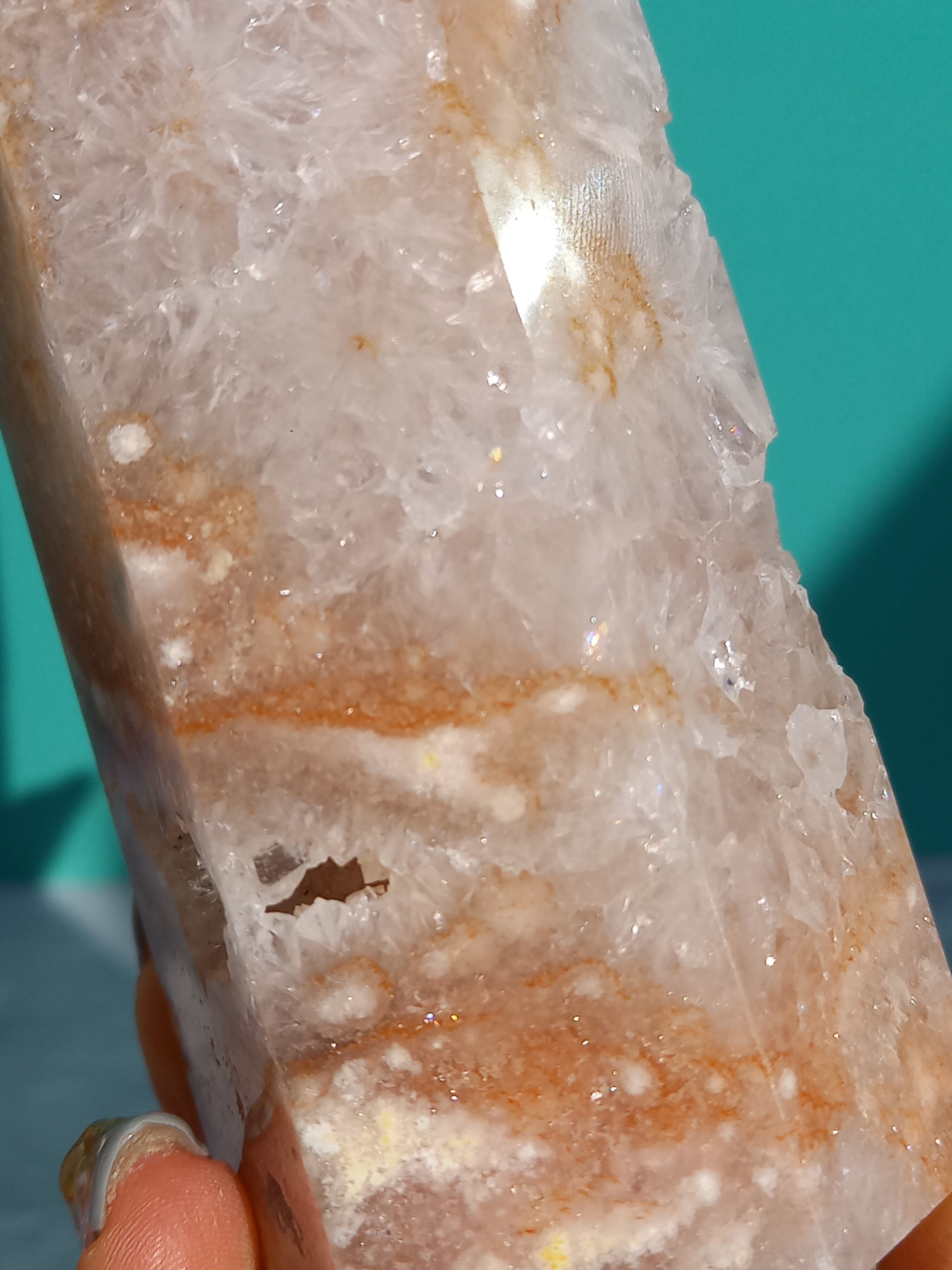 ざくざく結晶で、虹も見えジオード部分もとても素敵です。