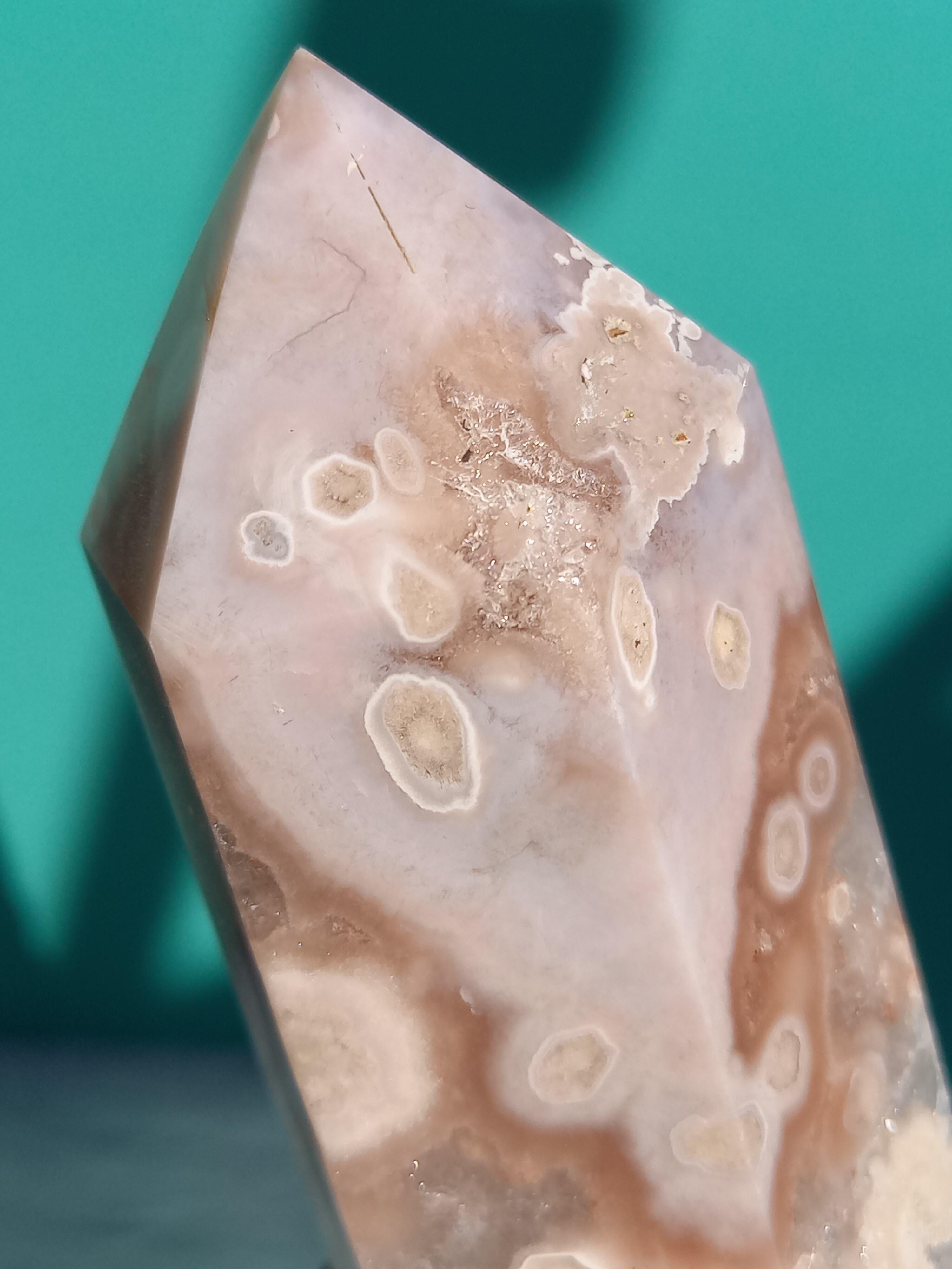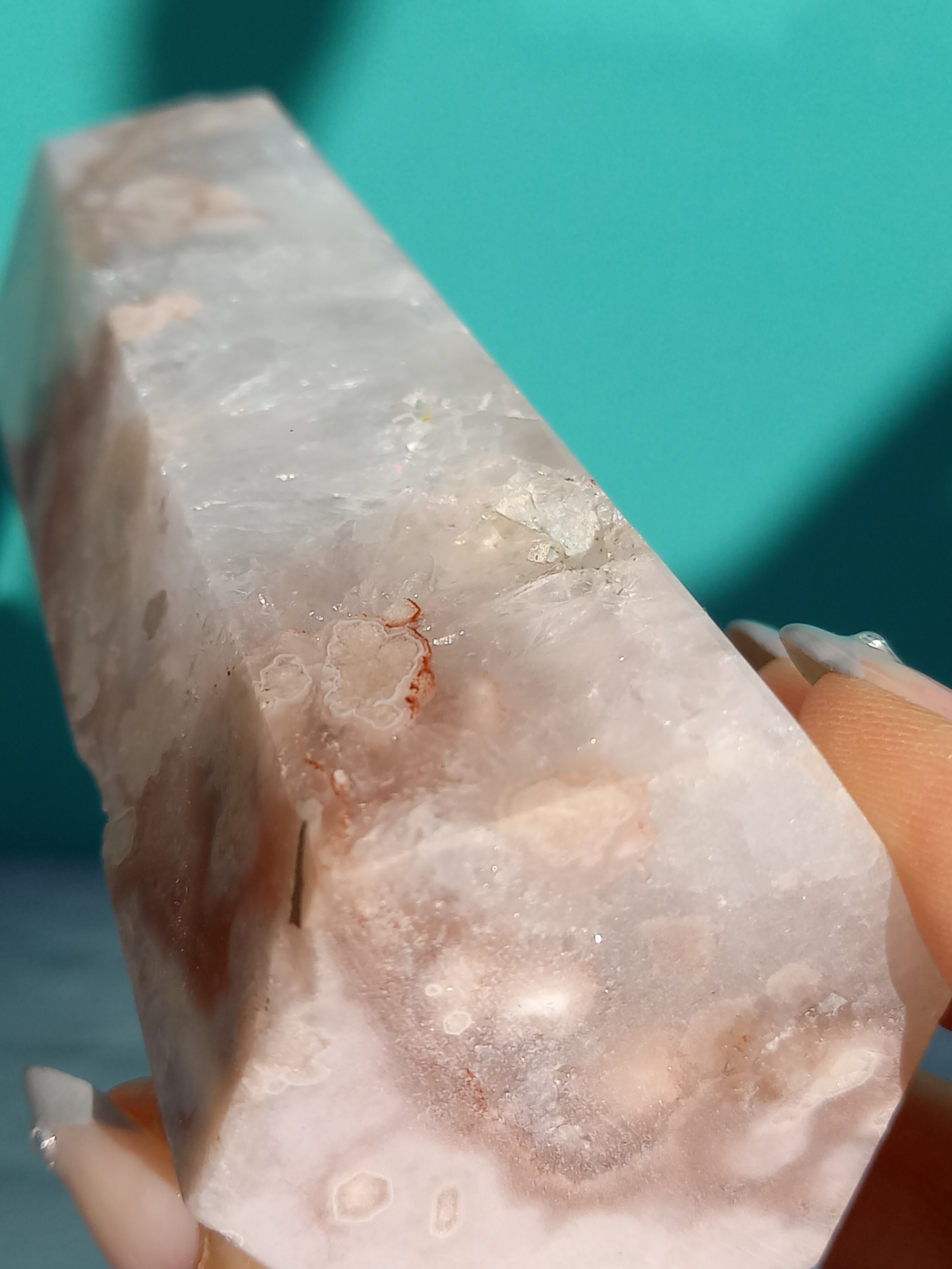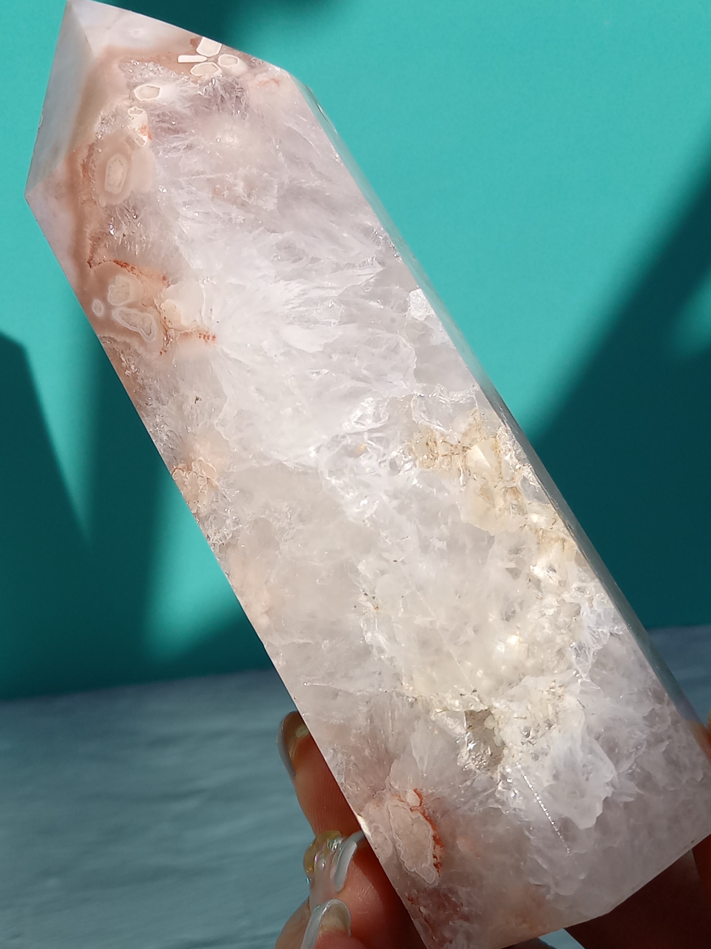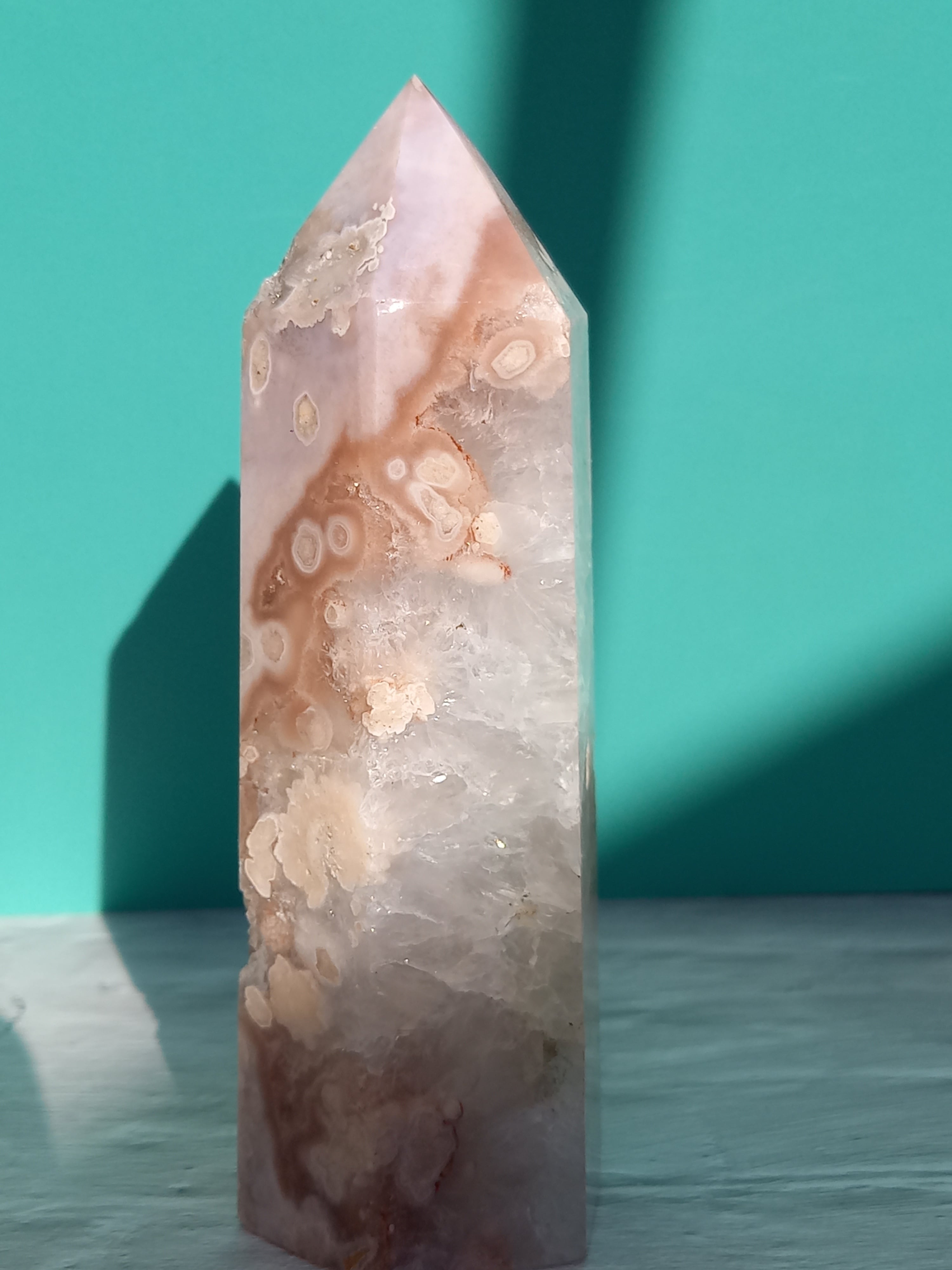 ピンクアメジストに、フラワーアゲートが共生したポイントタワーになります。