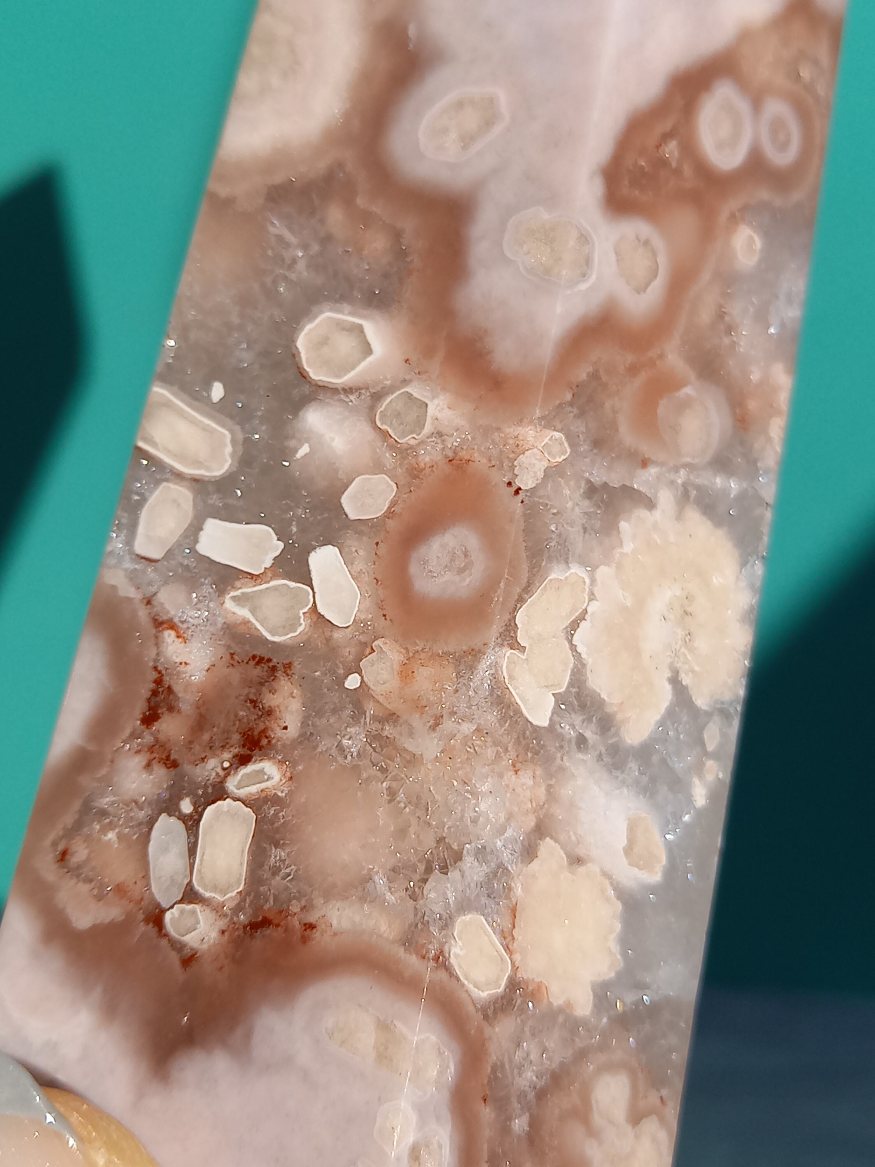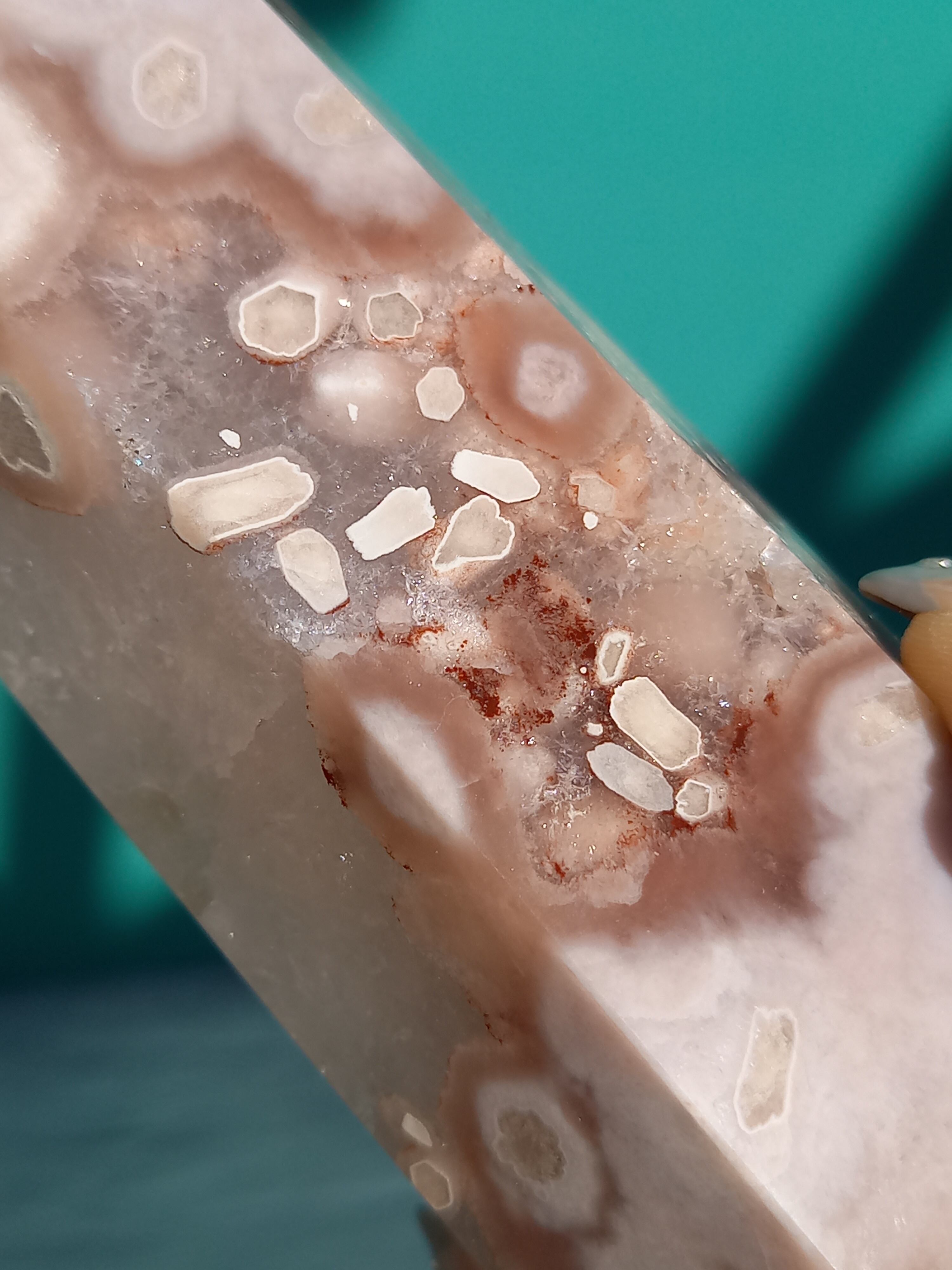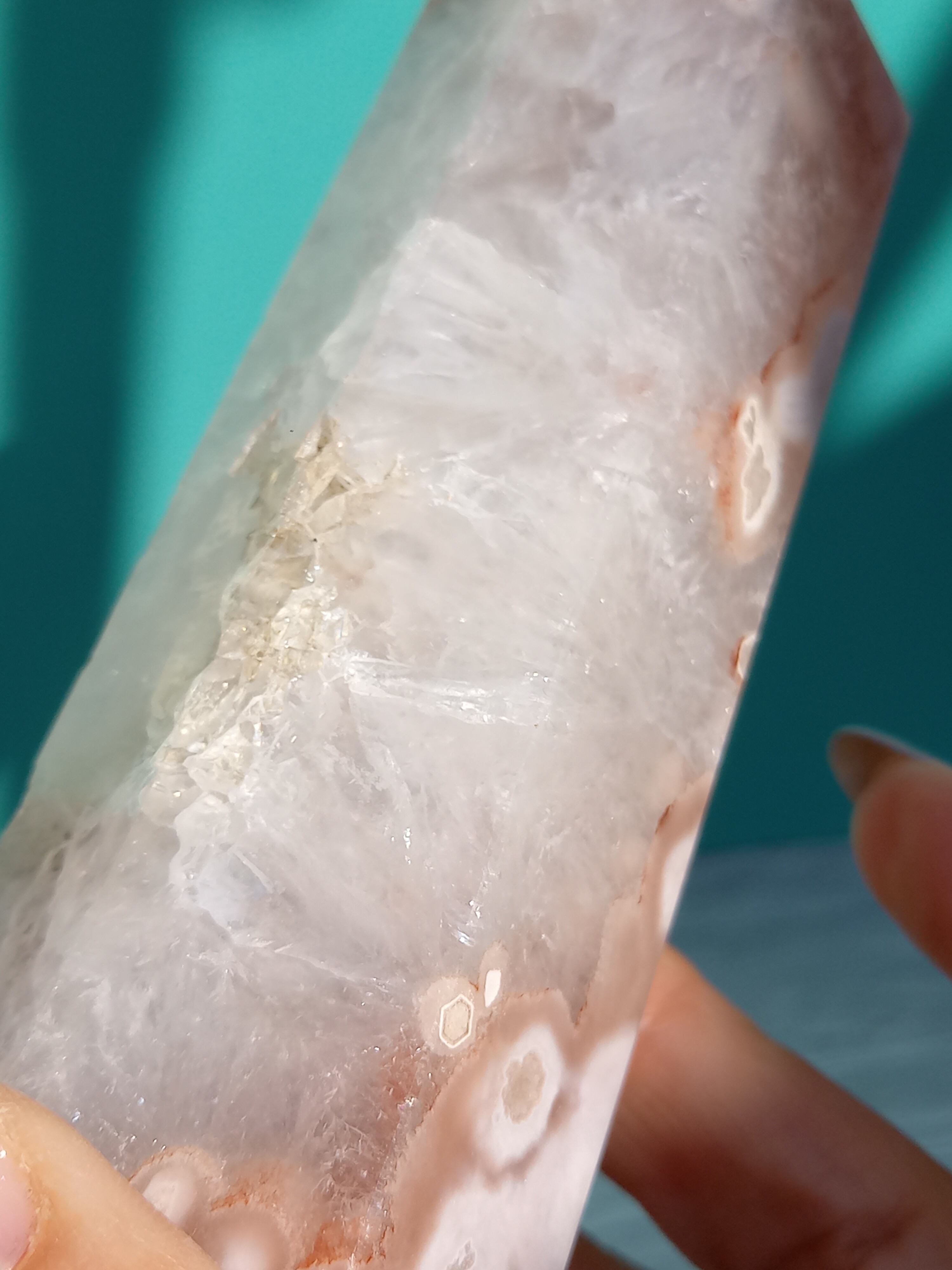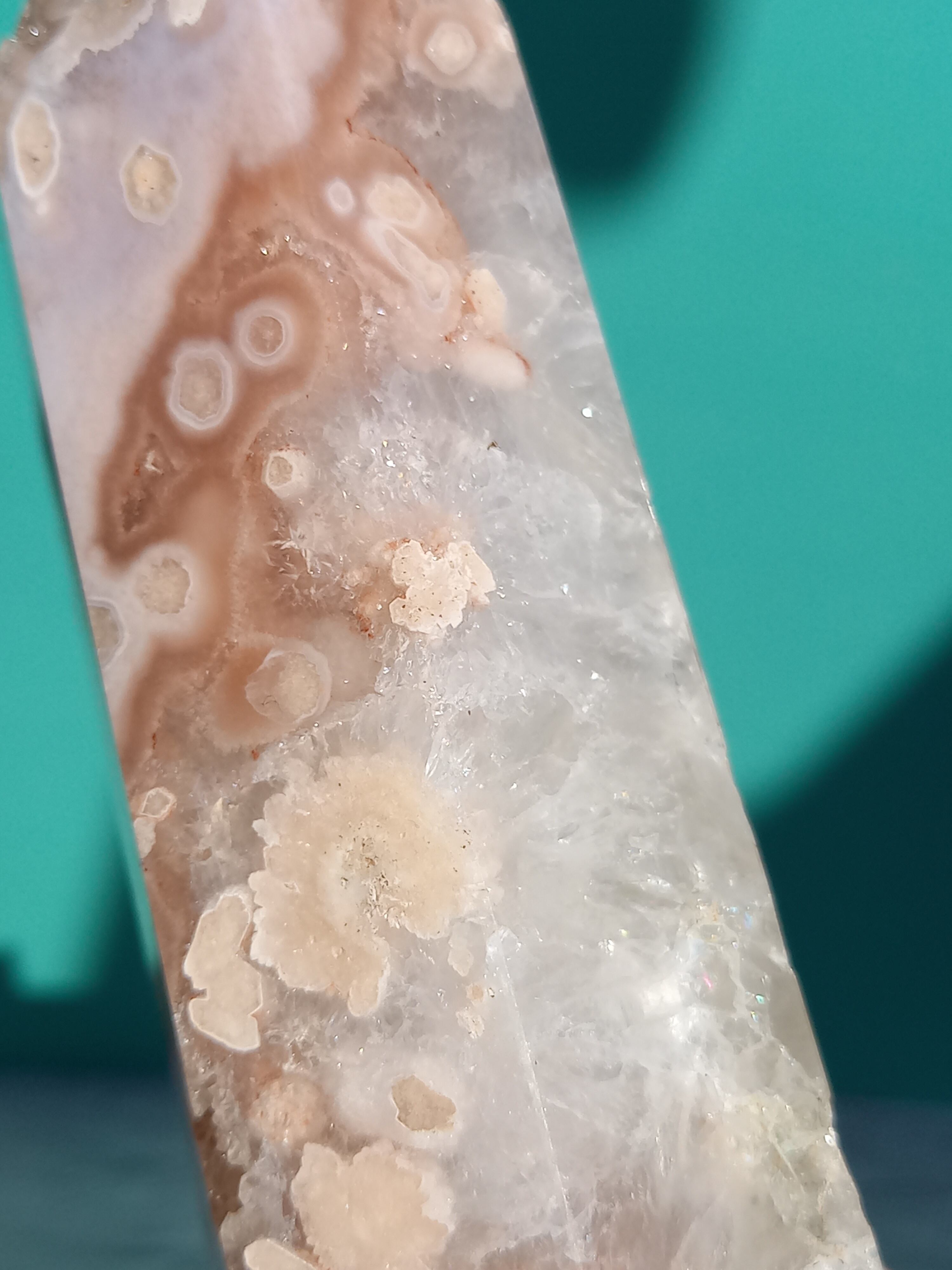 ピンクアメジストに、フラワーアゲートが共生したポイントタワーになります。