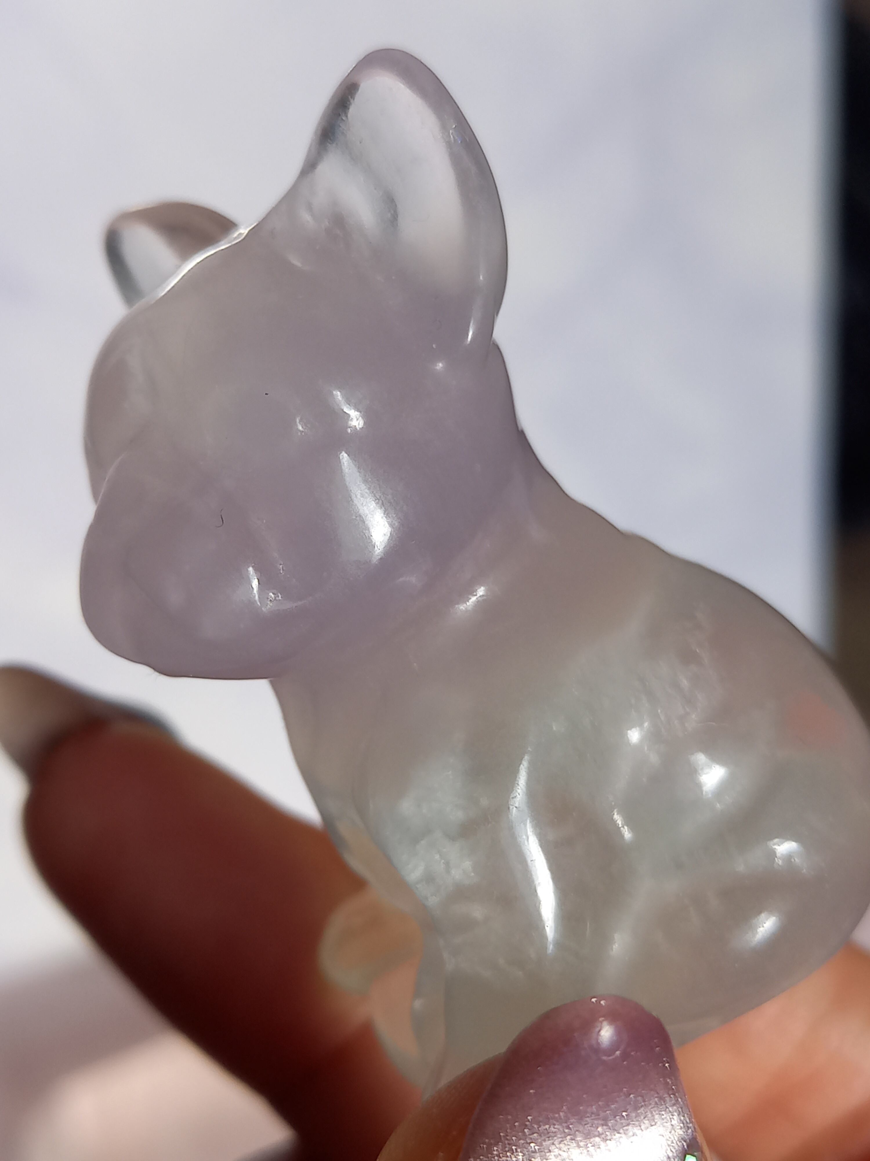 イットリウムフローライト(パステルフローライト)フレンチブルドッグカービングです。