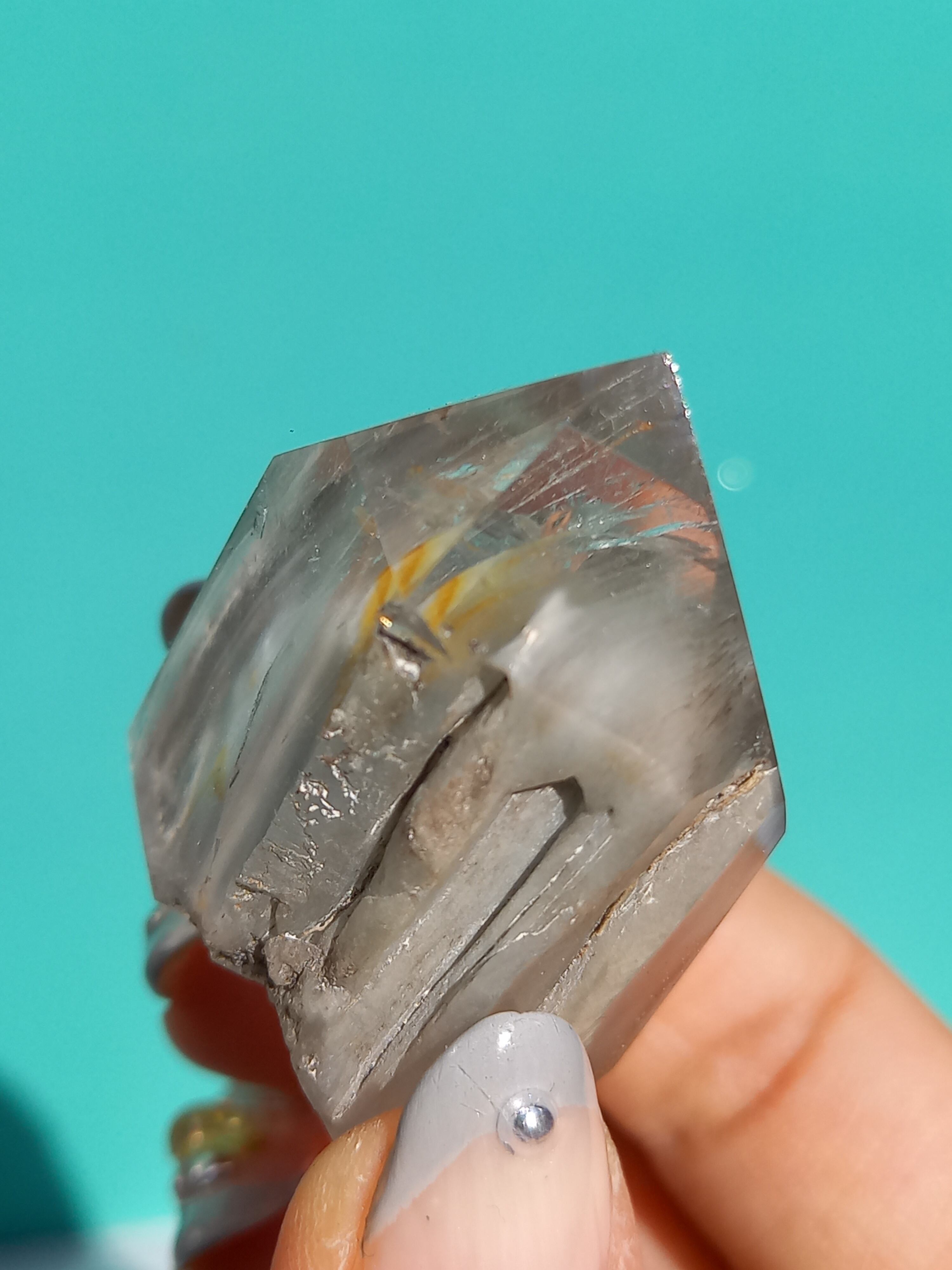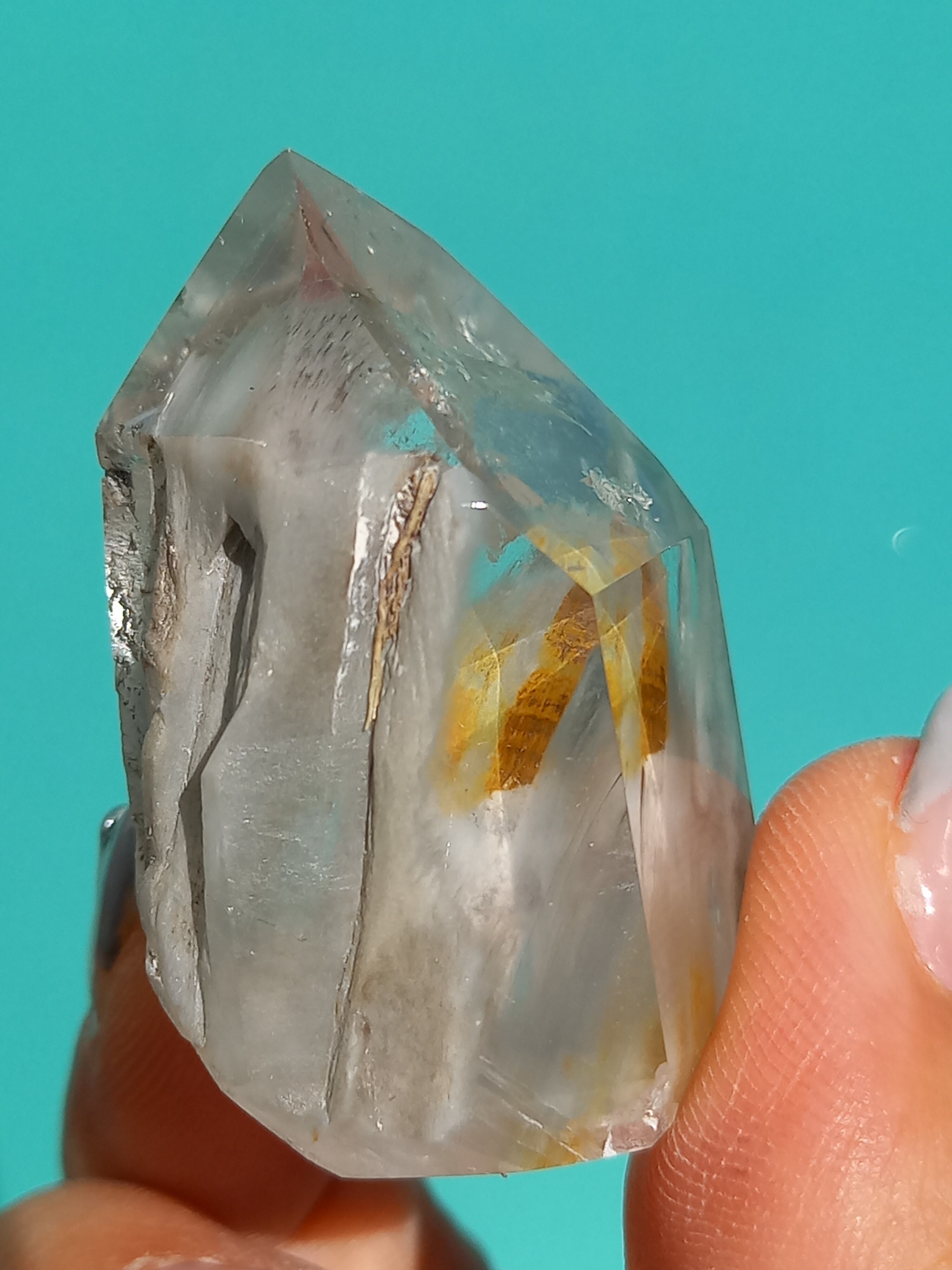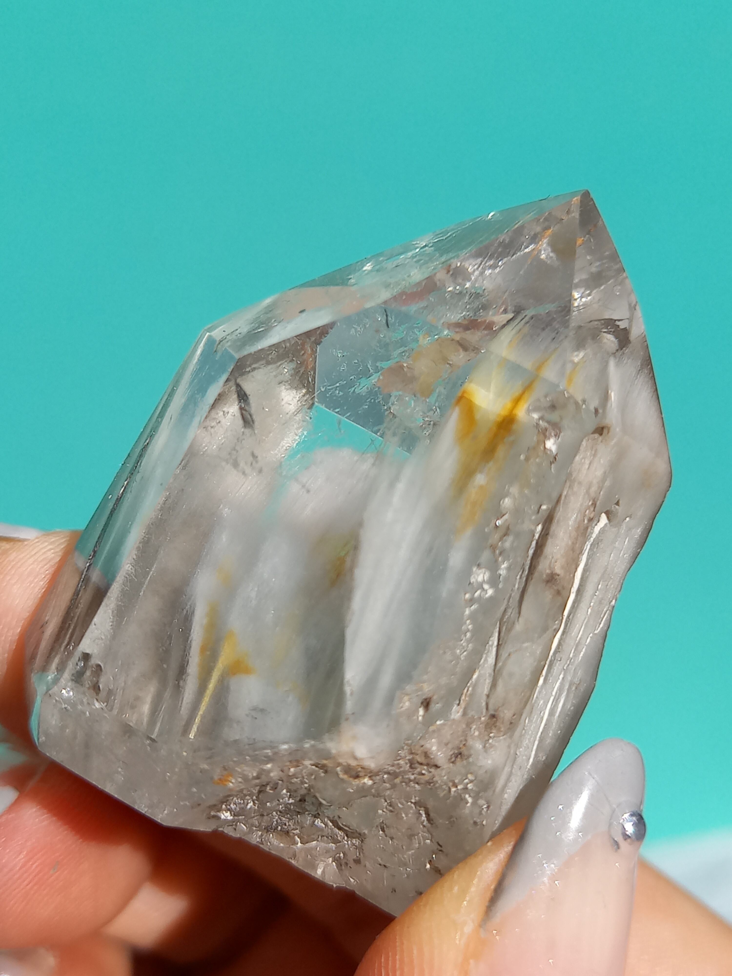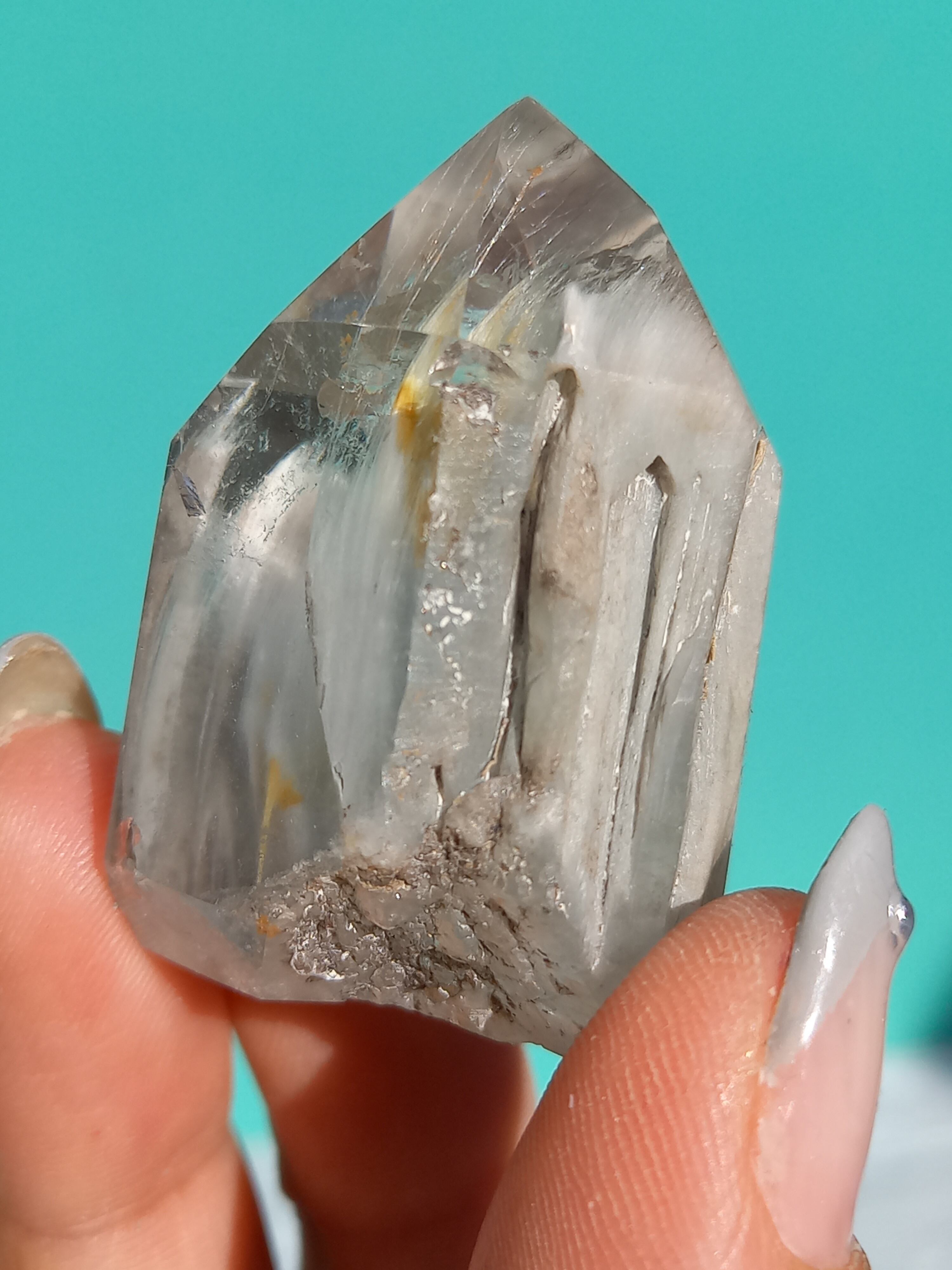 ブルーターラクォーツは、リーベカイトやオレナイトのインクルージョンにより青灰色に色付いた水晶です。「ブルーターラ」の名はチベット仏教で信仰されるターラ菩薩に由来しています。