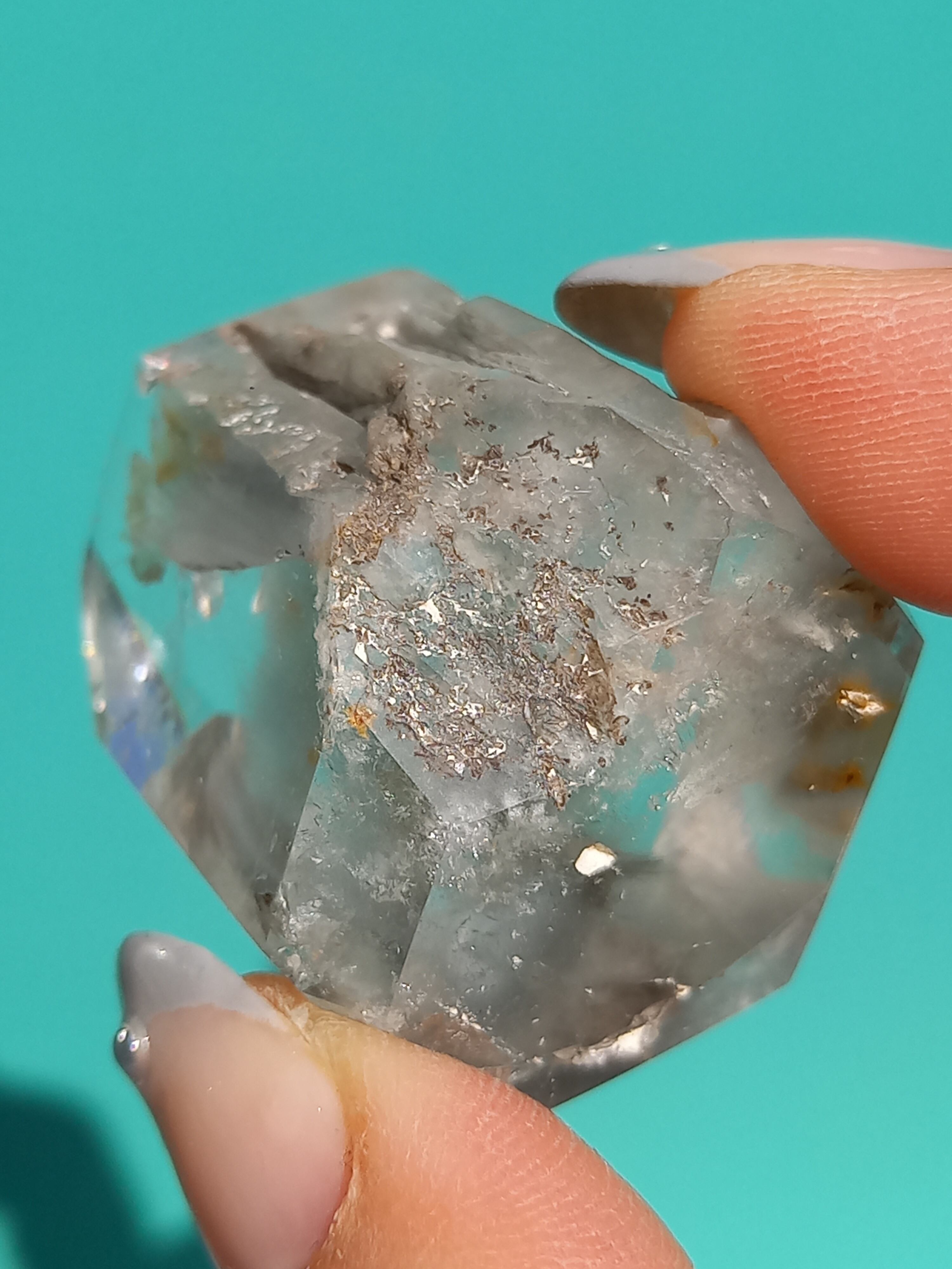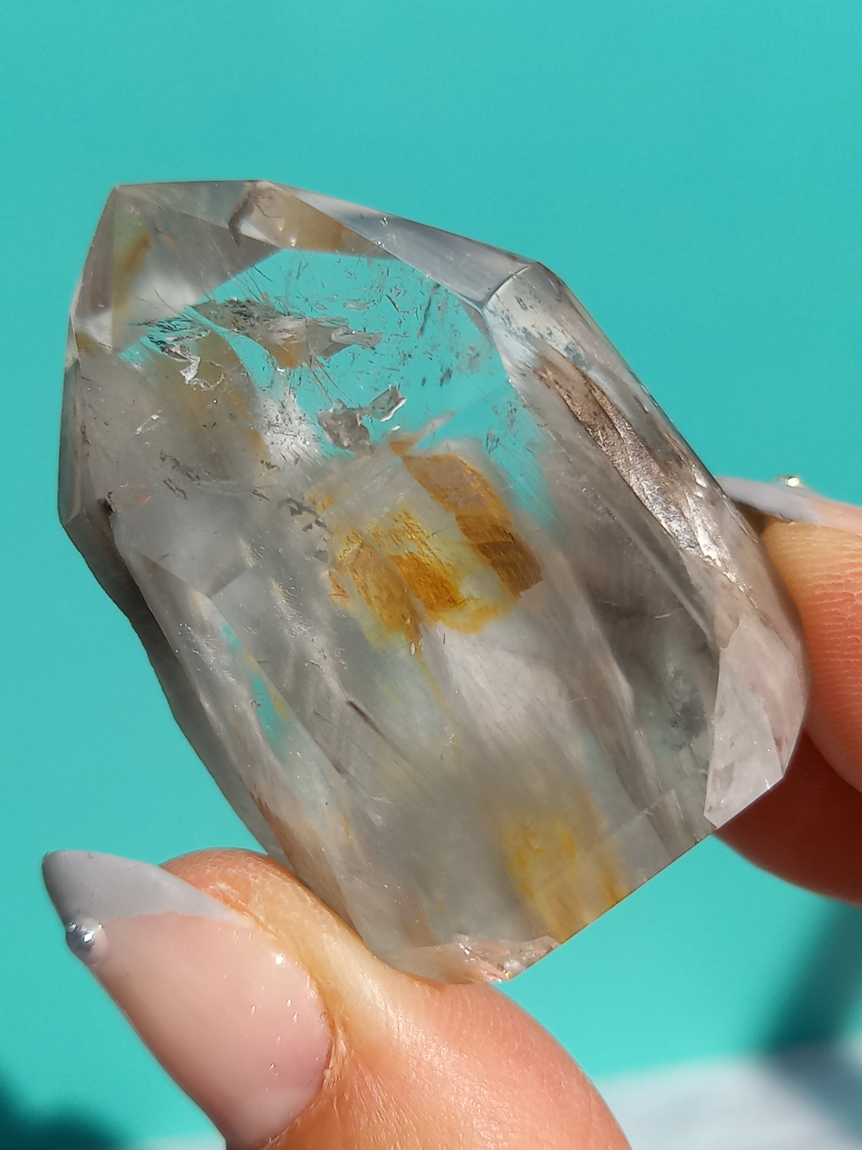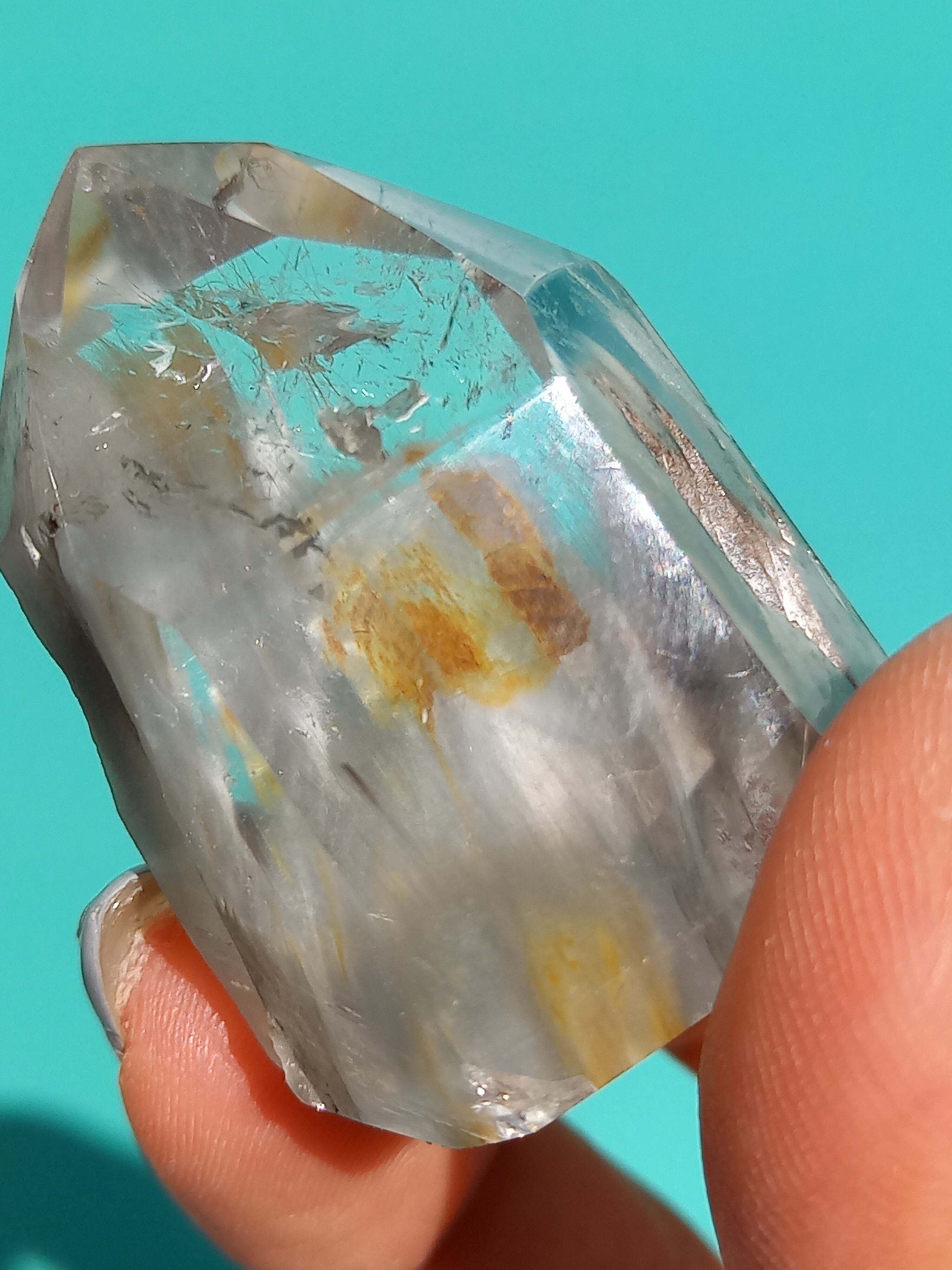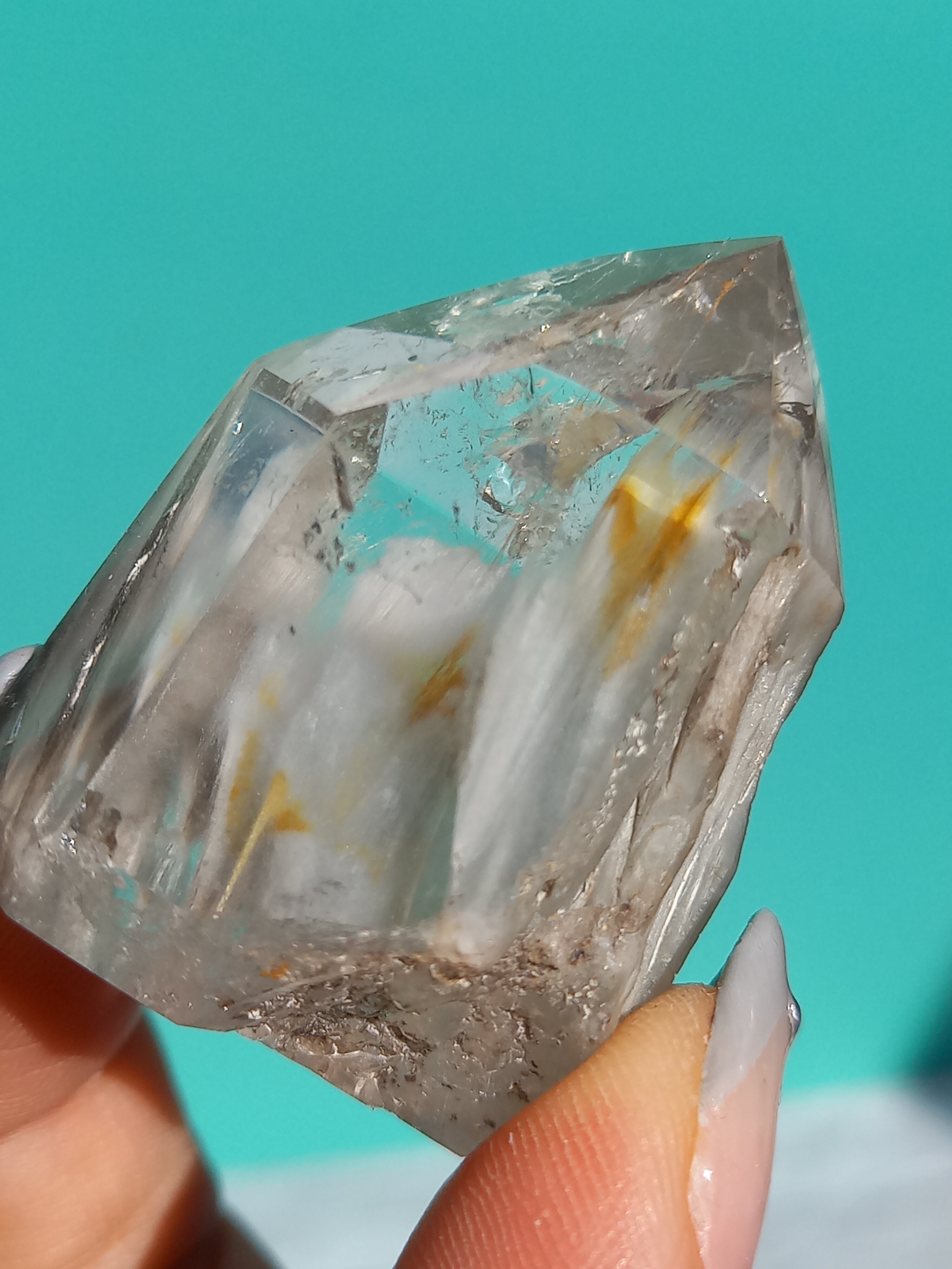ブルーターラクォーツは、リーベカイトやオレナイトのインクルージョンにより青灰色に色付いた水晶です。「ブルーターラ」の名はチベット仏教で信仰されるターラ菩薩に由来しています。
