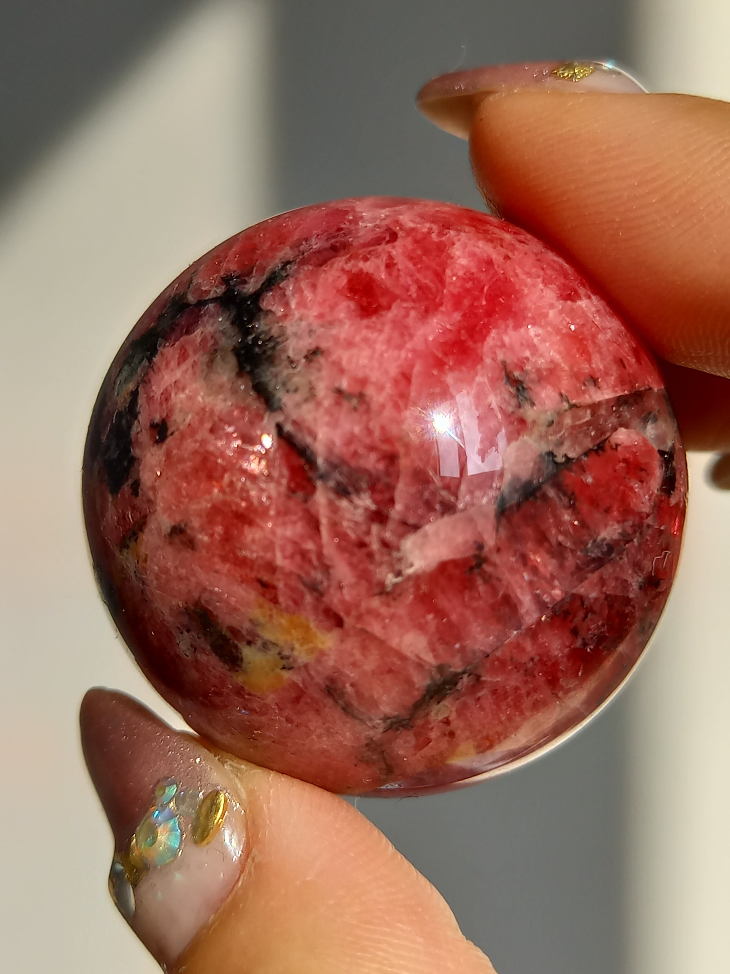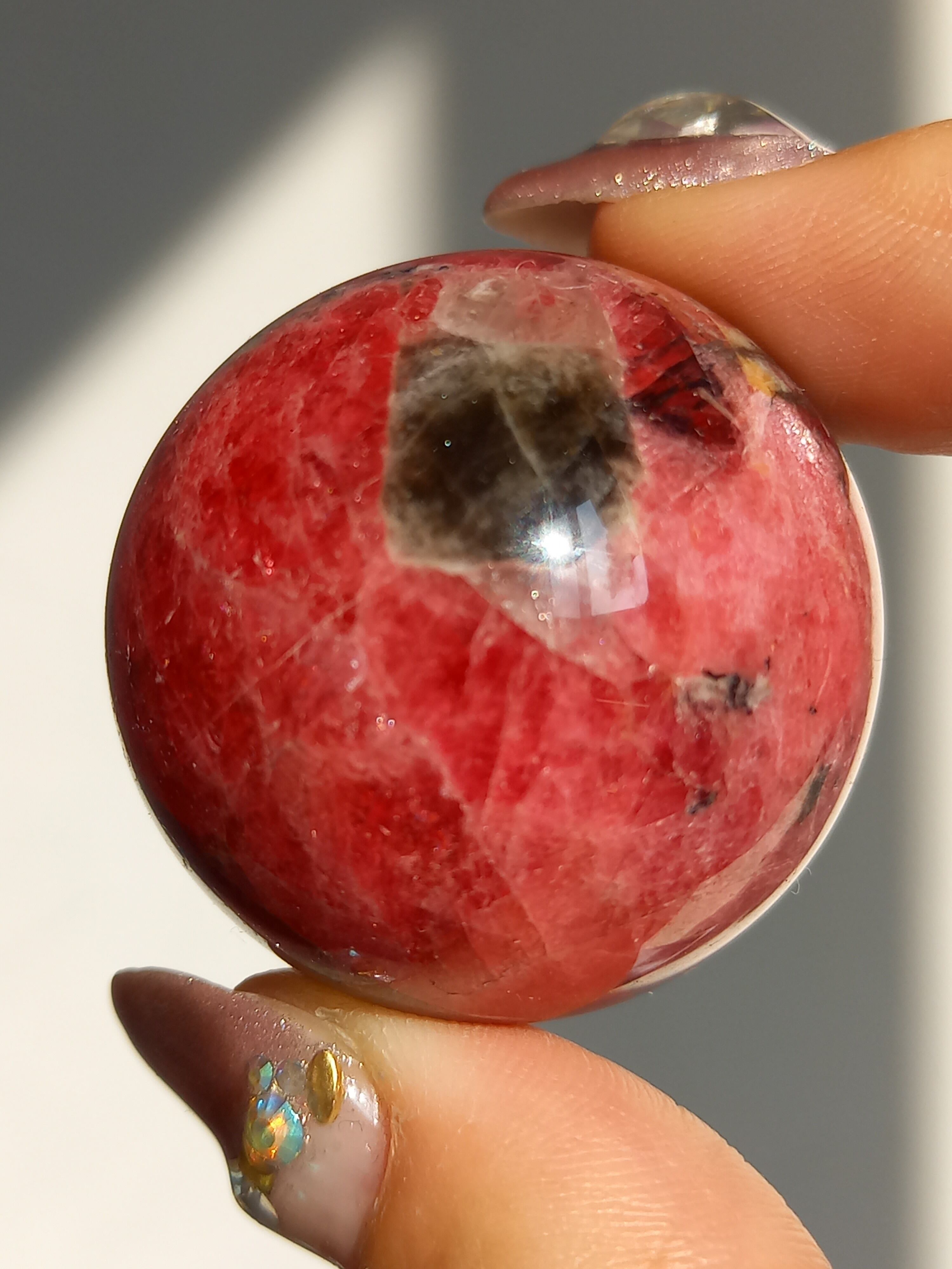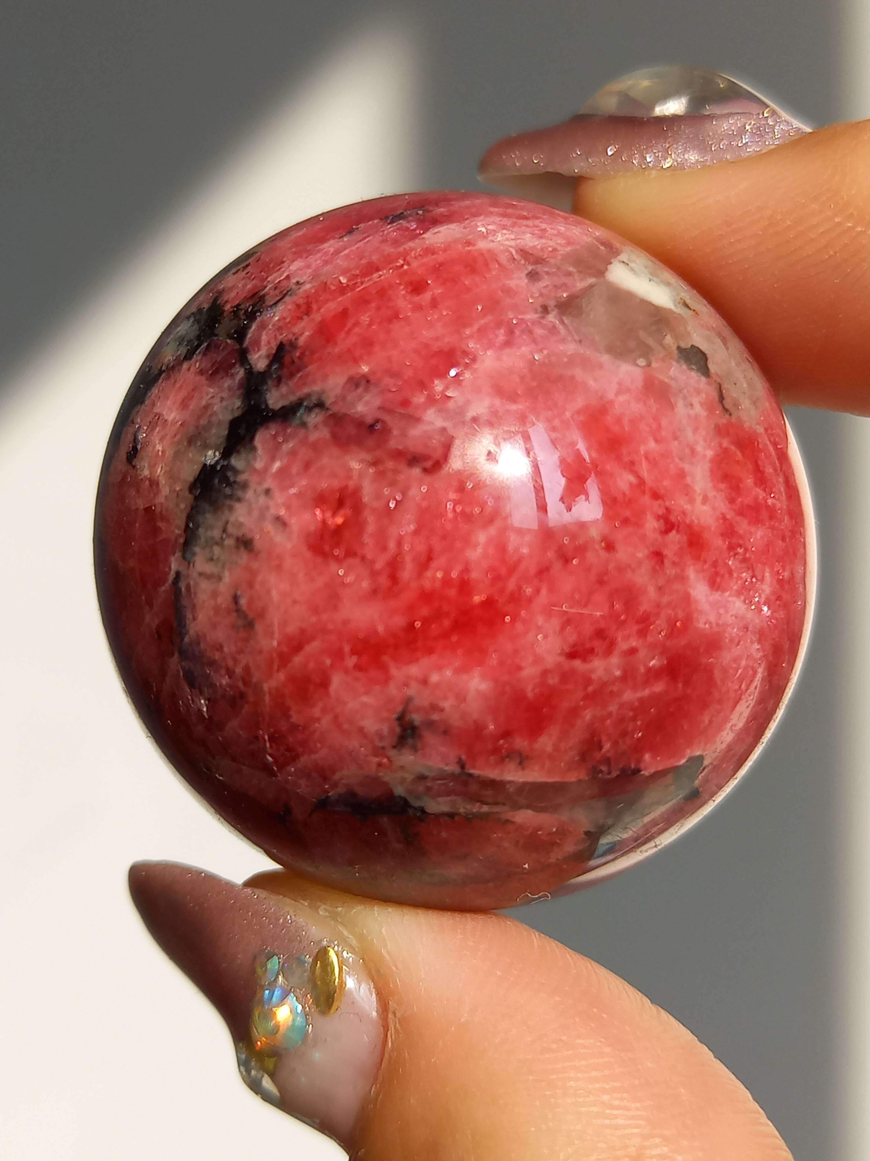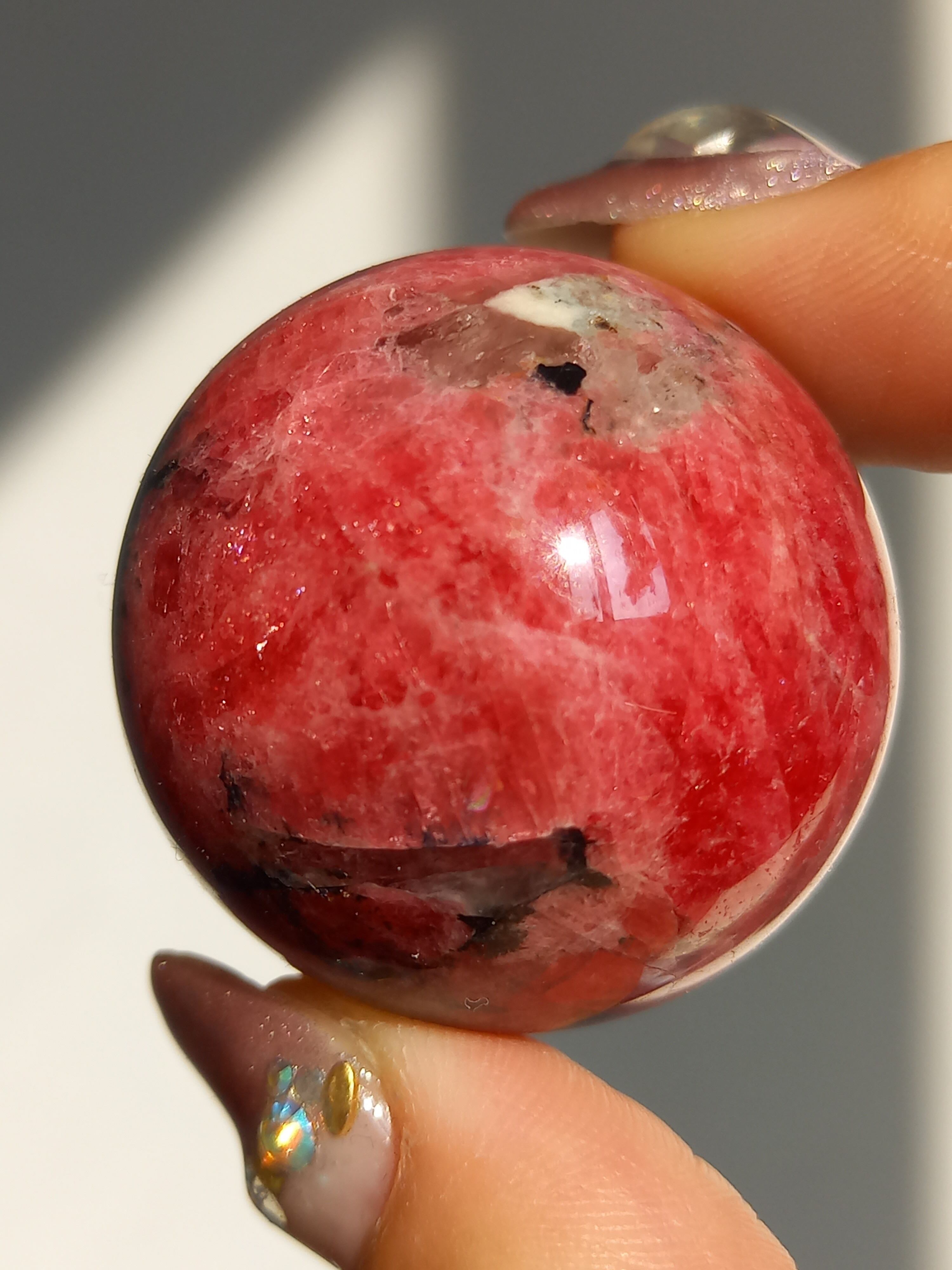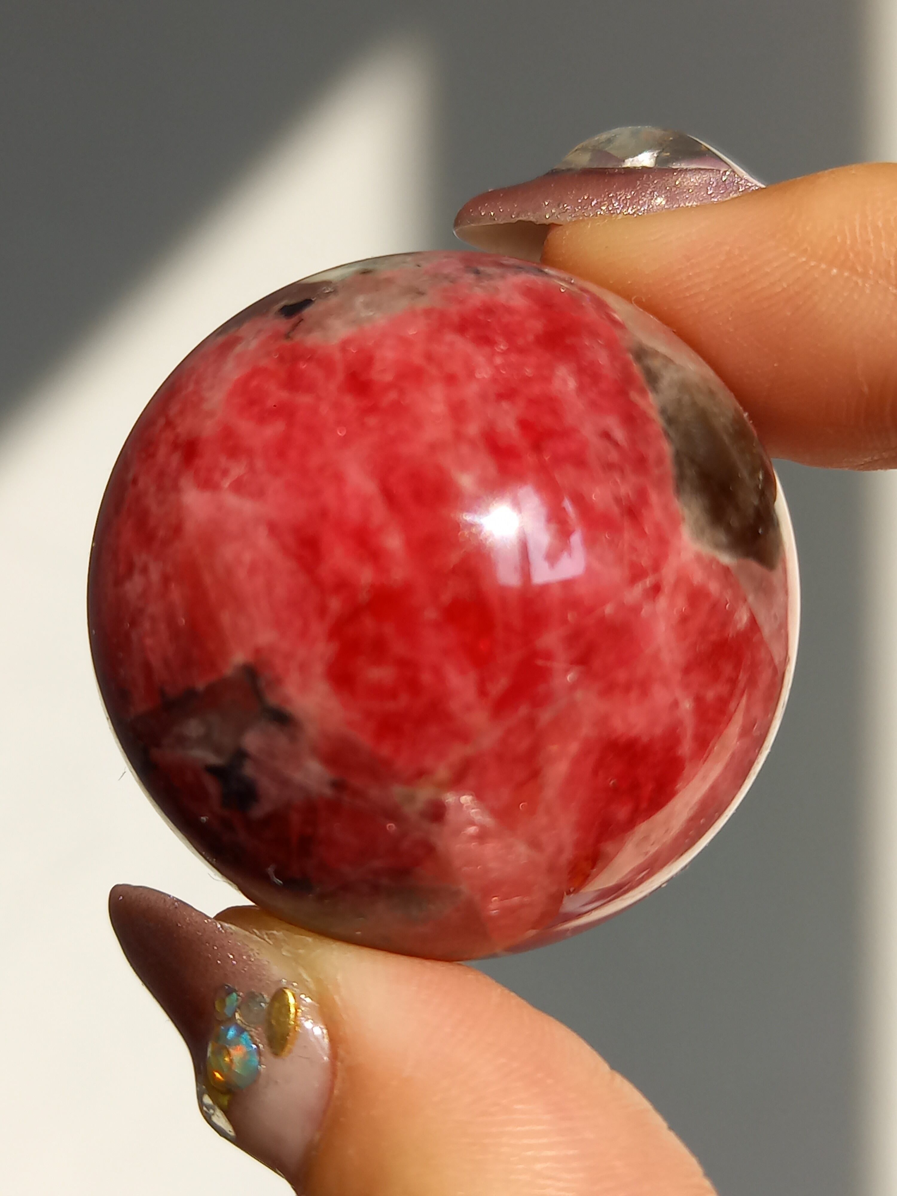 鮮やかなピンクが素敵な子です。マンガンの含有量によって、黒い部分が出ます。