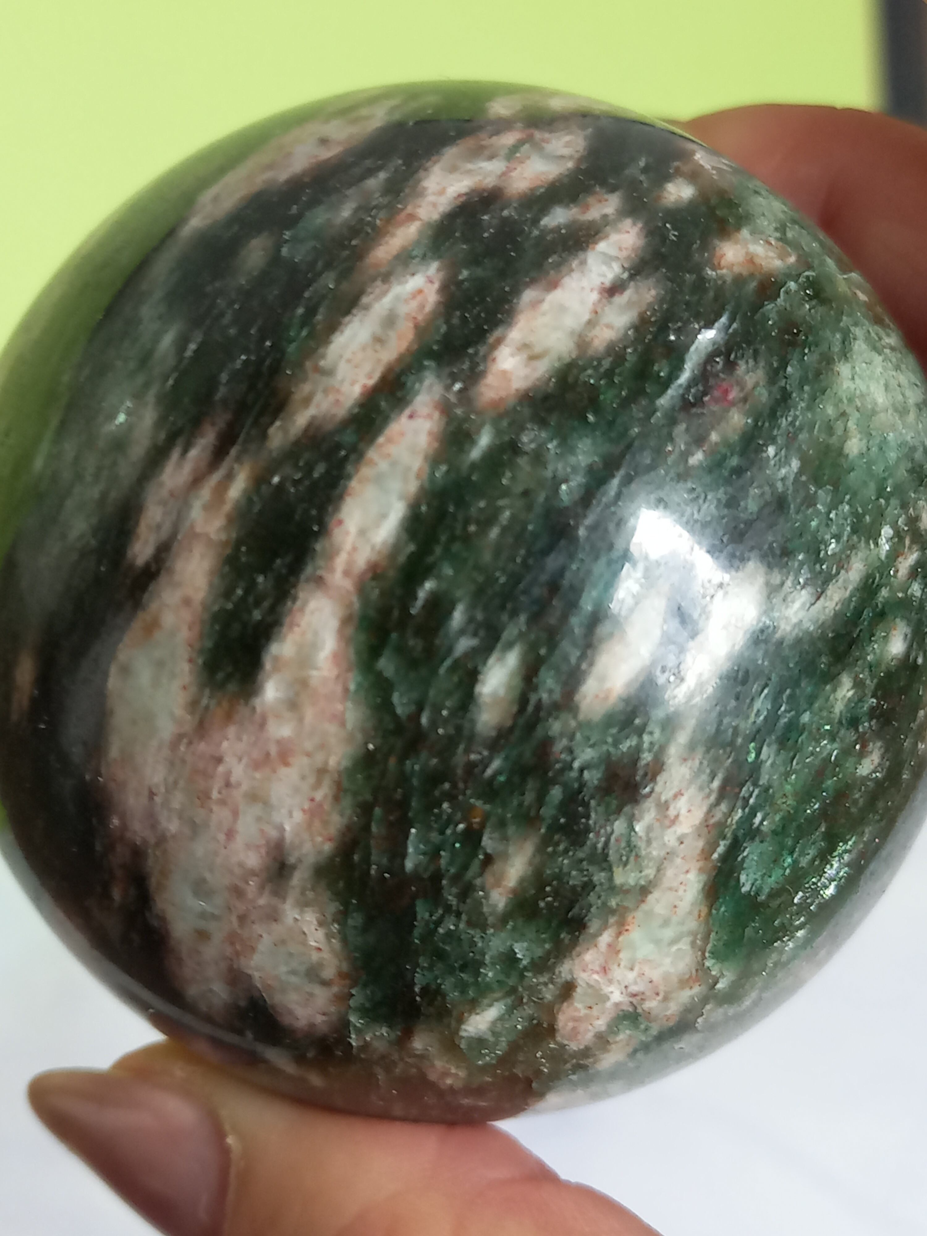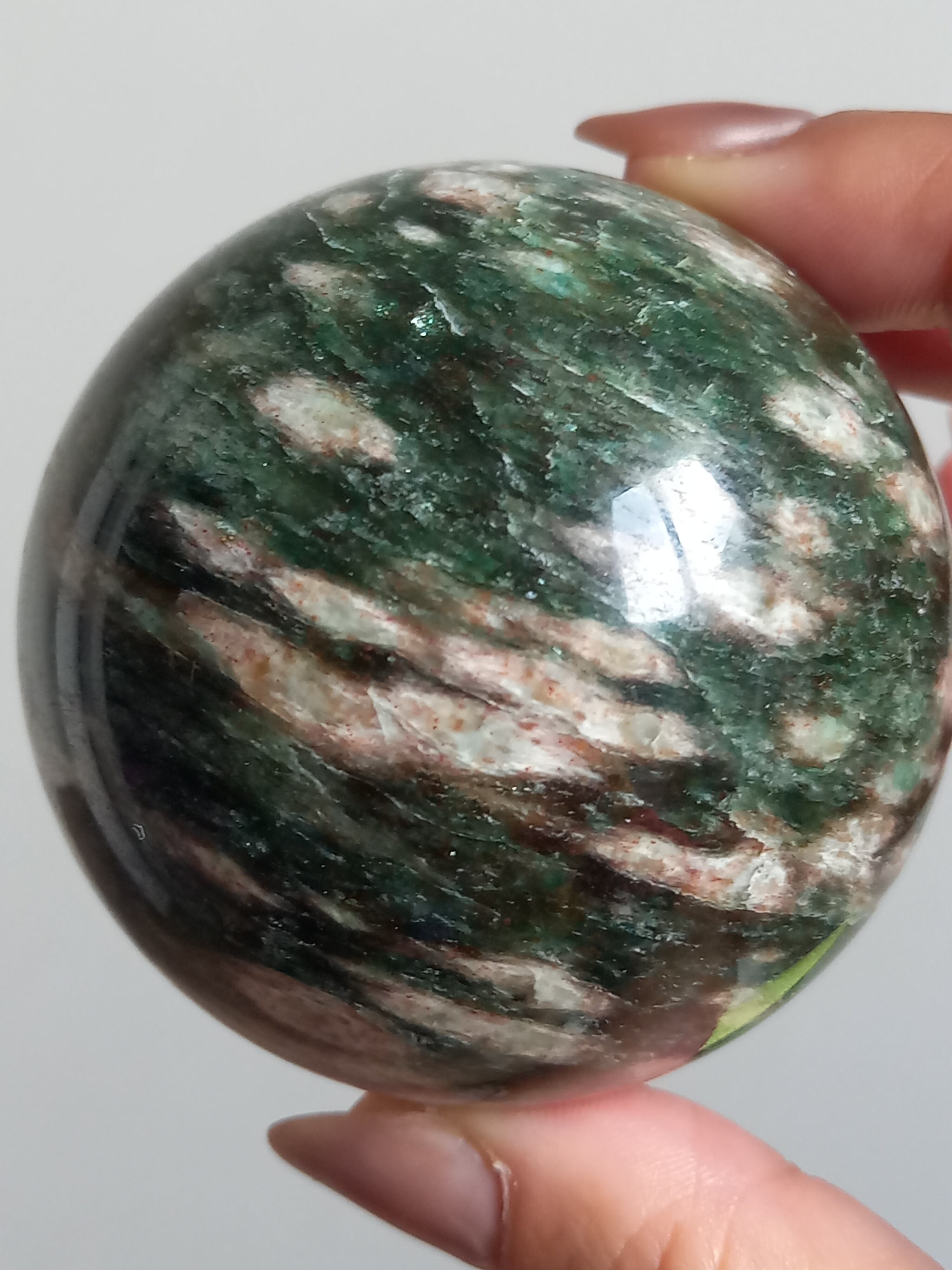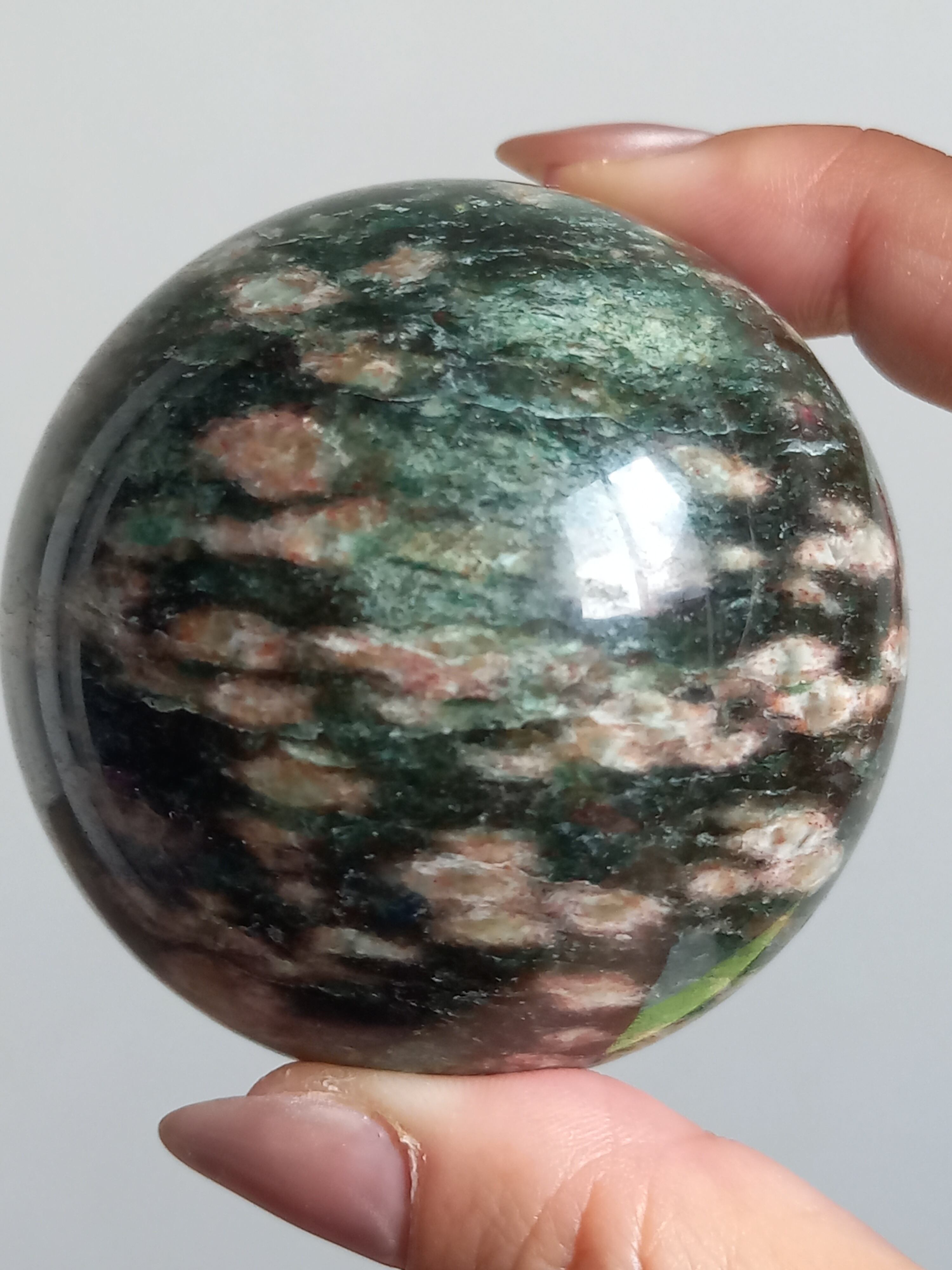 グリーンマイカ×ピンクトルマリンのスフィアです。